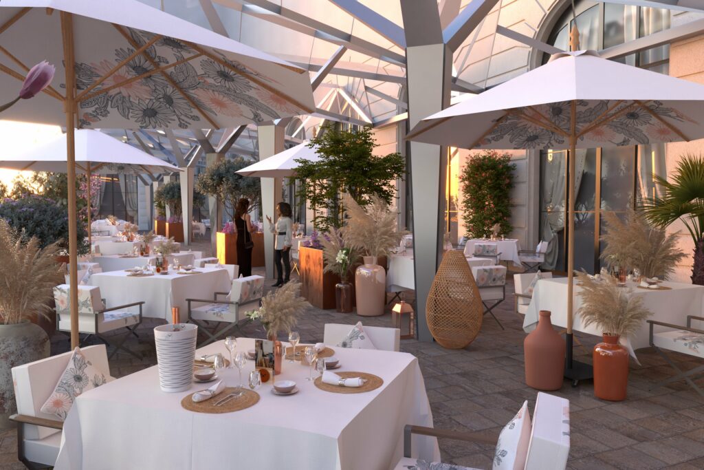 Le Chef étoilé David Bizet et la Cheffe Pâtissière Anne Coruble y révèlent leur talent. Le carpaccio de poulpe à la rose fraîche et à l’ail noir surprend autant que la framboise en pavlova, aux amandes fraîches et à la rose. L’ambiance estivale est sublimée par des cocktails inspirés de l’univers floral, comme « La Vie en Rose », un mélange délicat de gin à la pêche de vigne, vin rosé de Provence, eau de rose, verjus et kombucha aux feuilles de Cassissier.