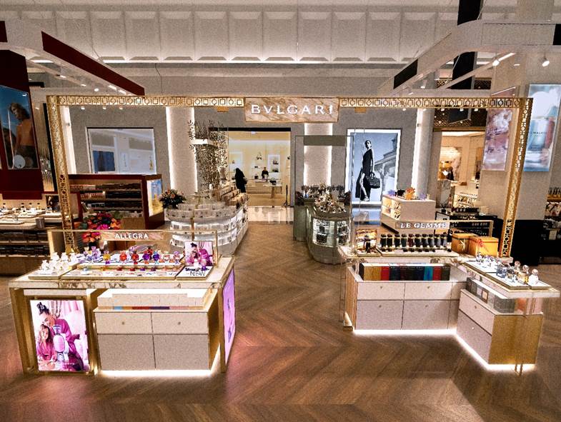 The perfume counter showcases two high perfumery collections: BVLGARI LE GEMME, inspired by the Bulgari Gems Road, and BVLGARI ALLEGRA, a celebration of the emotions of the Italian lifestyle. Visitors can sample the extensive fragrance lines and discover the latest launches, including BVLGARI ALLEGRA MA’MAGNIFICA and MAGNIFYING SANDALWOOD.
