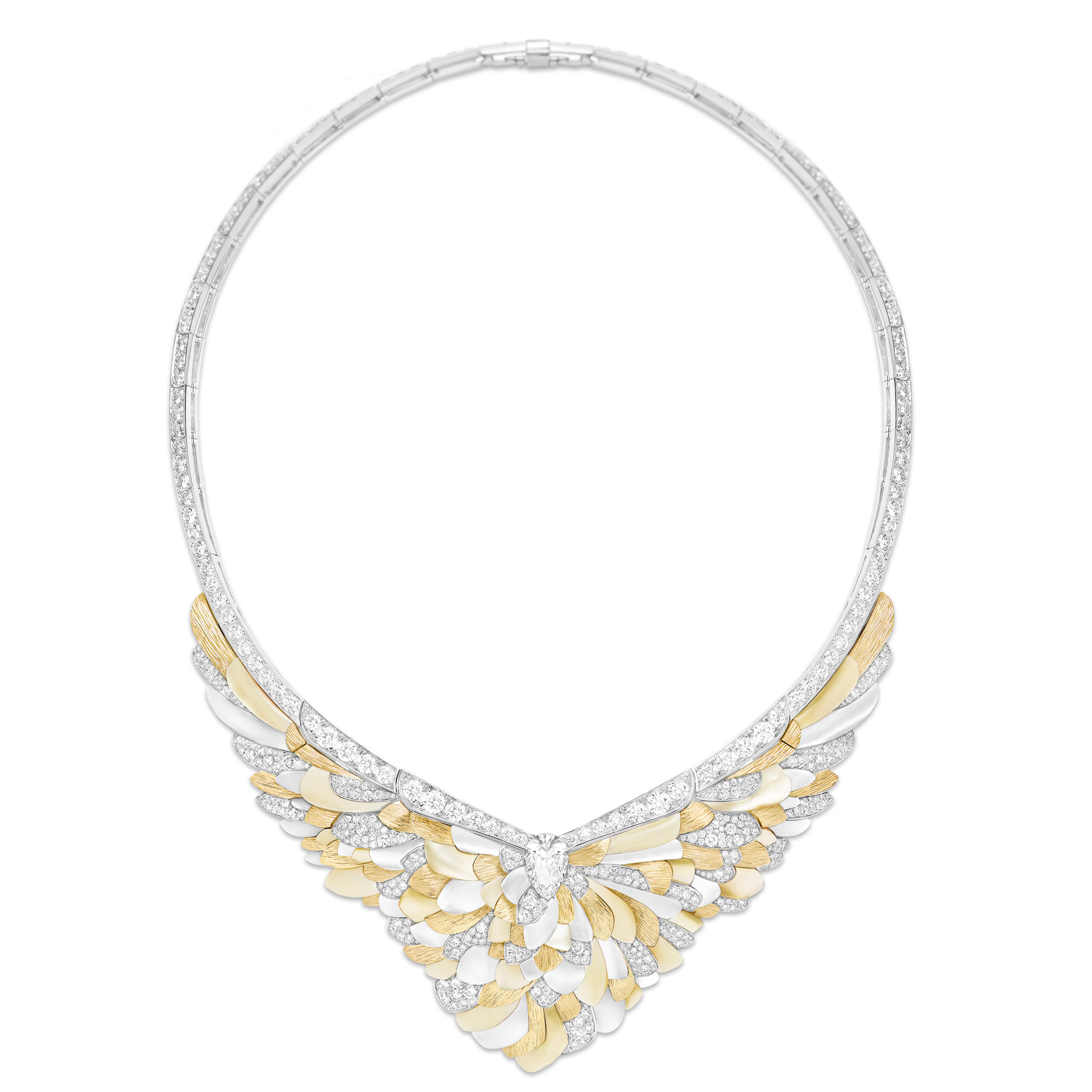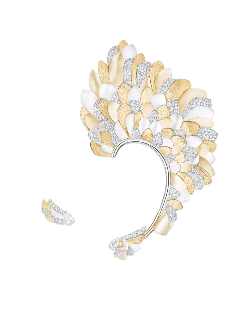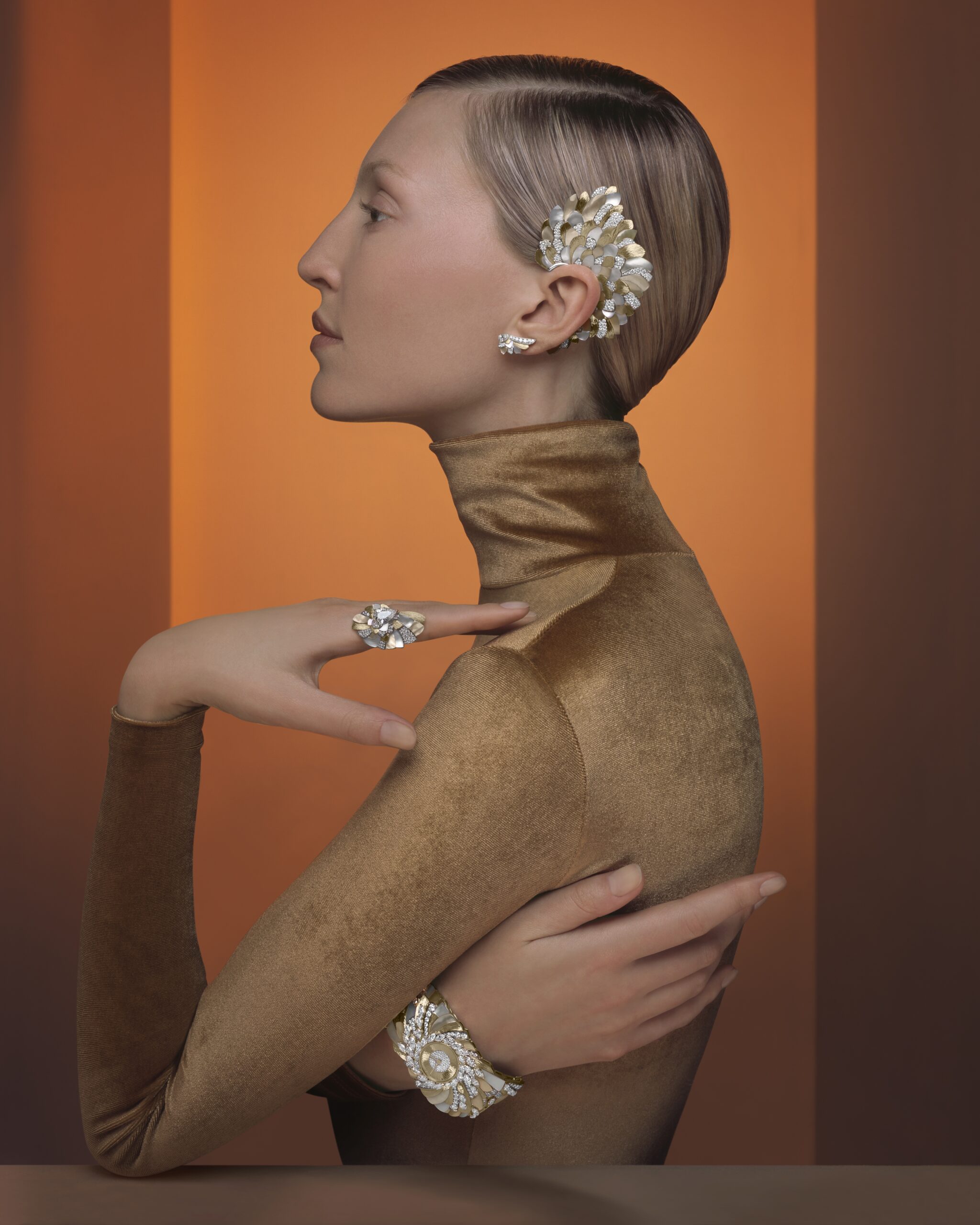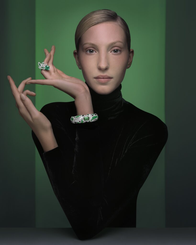 Au-delà de ces pièces phares, Metaphoria regorge de créations uniques et surprenantes, telles que les ensembles Alatura et Undulata, qui fusionnent l’or, les nacres, les diamants et les feuillages pour créer des pièces à la fois étoffées et déstructurées. Chaque bijou et chaque montre de cette collection est le résultat d’un travail d’orfèvre, mettant en valeur les matériaux les plus précieux et les techniques les plus raffinées.