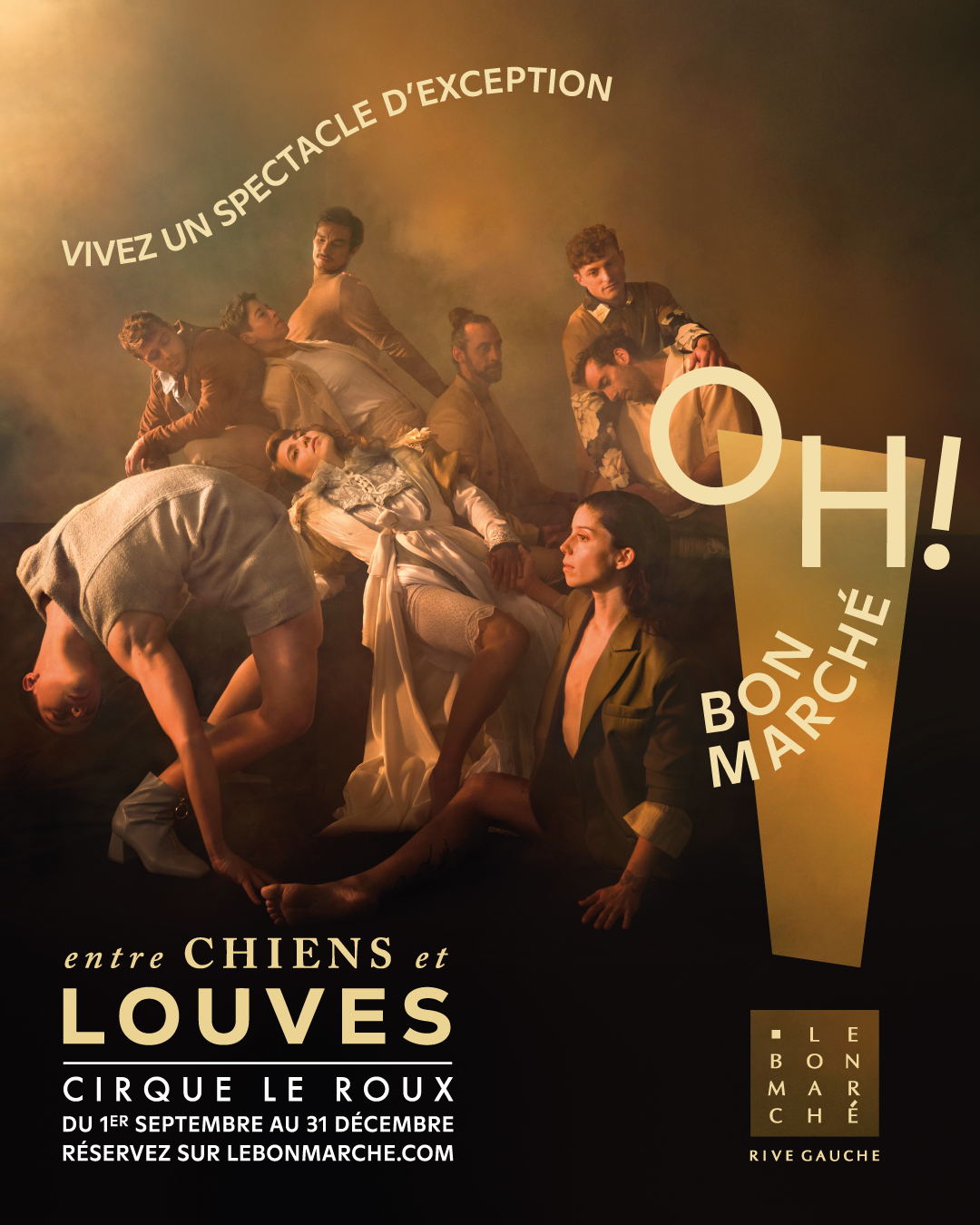 Le Bon Marché Rive Gauche frappe une nouvelle fois les trois coups avec l’annonce de son spectacle annuel 2023 : « Entre Chiens et Louves ». Après le succès du théâtre immersif « Au Bonheur des Dames » en 2022, le plus audacieux des grands magasins fait appel à la célèbre compagnie de cirque contemporain, Cirque Le Roux, pour une création exclusive.