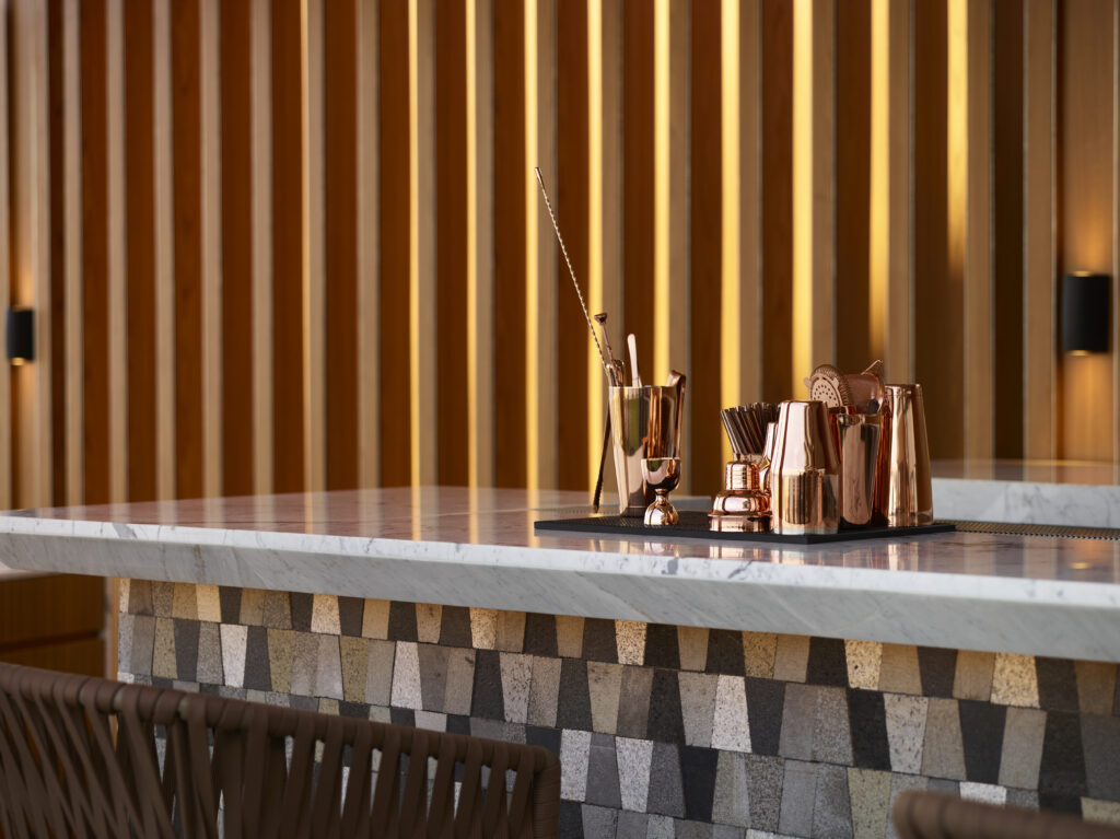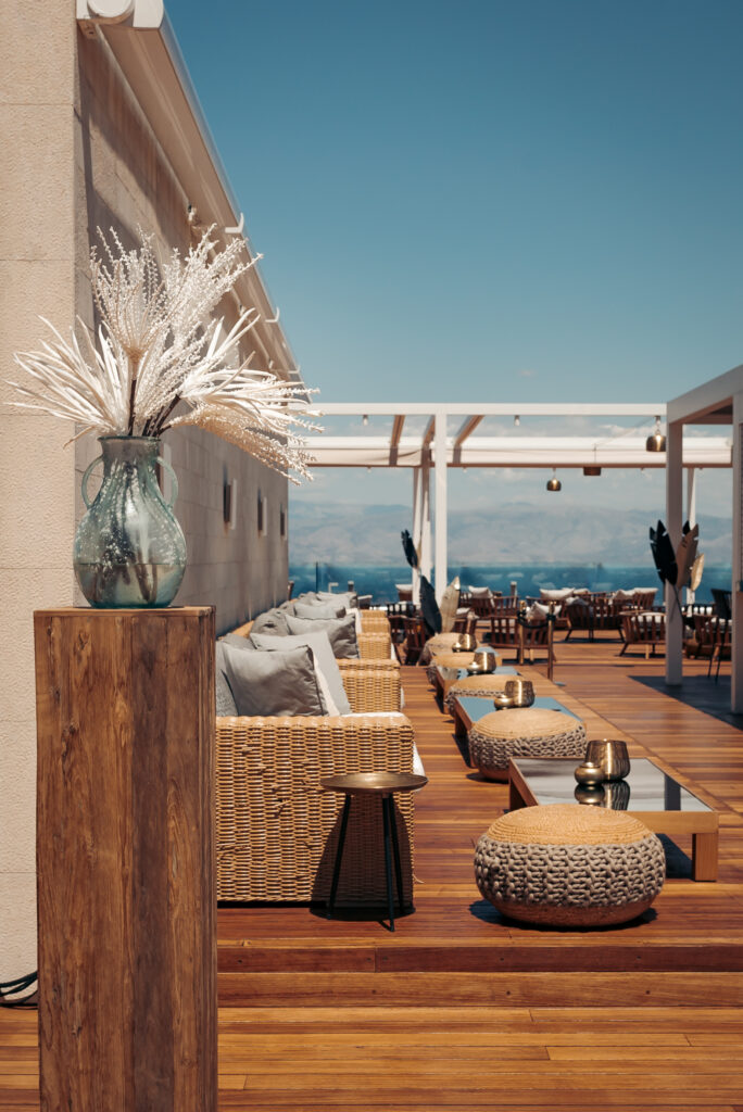 Ne vous y trompez pas, le Vertigo n’est pas qu’un simple bar. Il s’agit d’un espace dual, composé du Vertigo Skybar et du Vertigo Restaurant. Le restaurant propose une carte mystère élaborée à partir de produits de producteurs locaux. Le Skybar, quant à lui, est un savant mélange de modernité et de vintage, inspiré par l’architecture majestueuse des demeures corfiotes. Avec ses voiles qui dansent au rythme de la brise ionienne, ses tapis colorés et ses espaces lounge, le bar de l’Angsana Corfu s’est rapidement imposé comme un lieu de fête et de rassemblement depuis son ouverture en 2022. Son éclairage habilement conçu donne l’illusion aux visiteurs les plus cosmopolites de se trouver au sommet d’un gratte-ciel new-yorkais.
