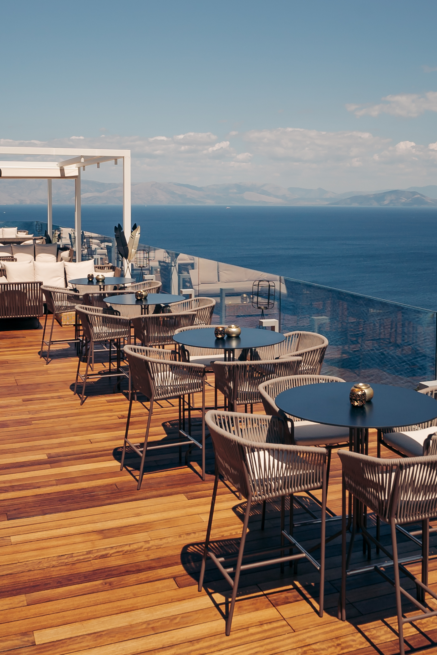 Ne vous y trompez pas, le Vertigo n’est pas qu’un simple bar. Il s’agit d’un espace dual, composé du Vertigo Skybar et du Vertigo Restaurant. Le restaurant propose une carte mystère élaborée à partir de produits de producteurs locaux. Le Skybar, quant à lui, est un savant mélange de modernité et de vintage, inspiré par l’architecture majestueuse des demeures corfiotes. Avec ses voiles qui dansent au rythme de la brise ionienne, ses tapis colorés et ses espaces lounge, le bar de l’Angsana Corfu s’est rapidement imposé comme un lieu de fête et de rassemblement depuis son ouverture en 2022. Son éclairage habilement conçu donne l’illusion aux visiteurs les plus cosmopolites de se trouver au sommet d’un gratte-ciel new-yorkais.