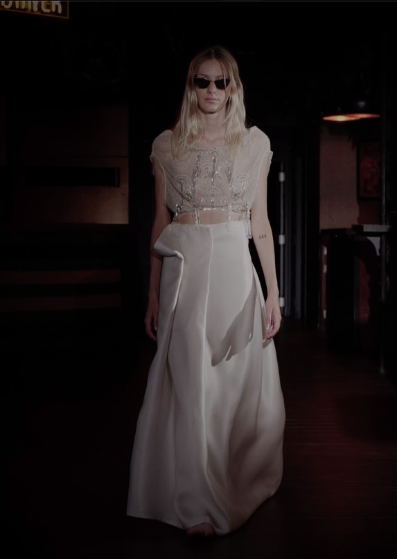 Un matin de printemps, Sofia, flânant parmi les pierres inégales de la cour carrée du Louvre à Paris, est inspirée par la délicate fleur blanche qu’elle y découvre. Sa fragilité contraste avec la grandeur de l’architecture environnante, évoquant une dualité qui alimente l’inspiration pour sa dernière collection.