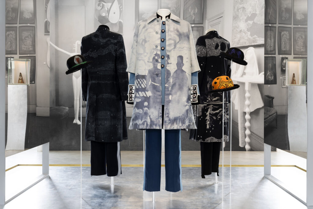 Les silhouettes pensées par Kim Jones s’exposent également pour la première fois, notamment dans la salle « Affinités artistiques » qui se métamorphose pour célébrer les multiples collaborations initiées par le Directeur Artistique des collections masculines ; à l’instar des looks faisant rayonner les œuvres des peintres et plasticiens Raymond Pettibon (pour le défilé Hiver 2019-2020) et Peter Doig (pour l’Hiver 2021-2022), invitant à une captivante immersion dans le récit singulier qui unit Dior et l’art contemporain.