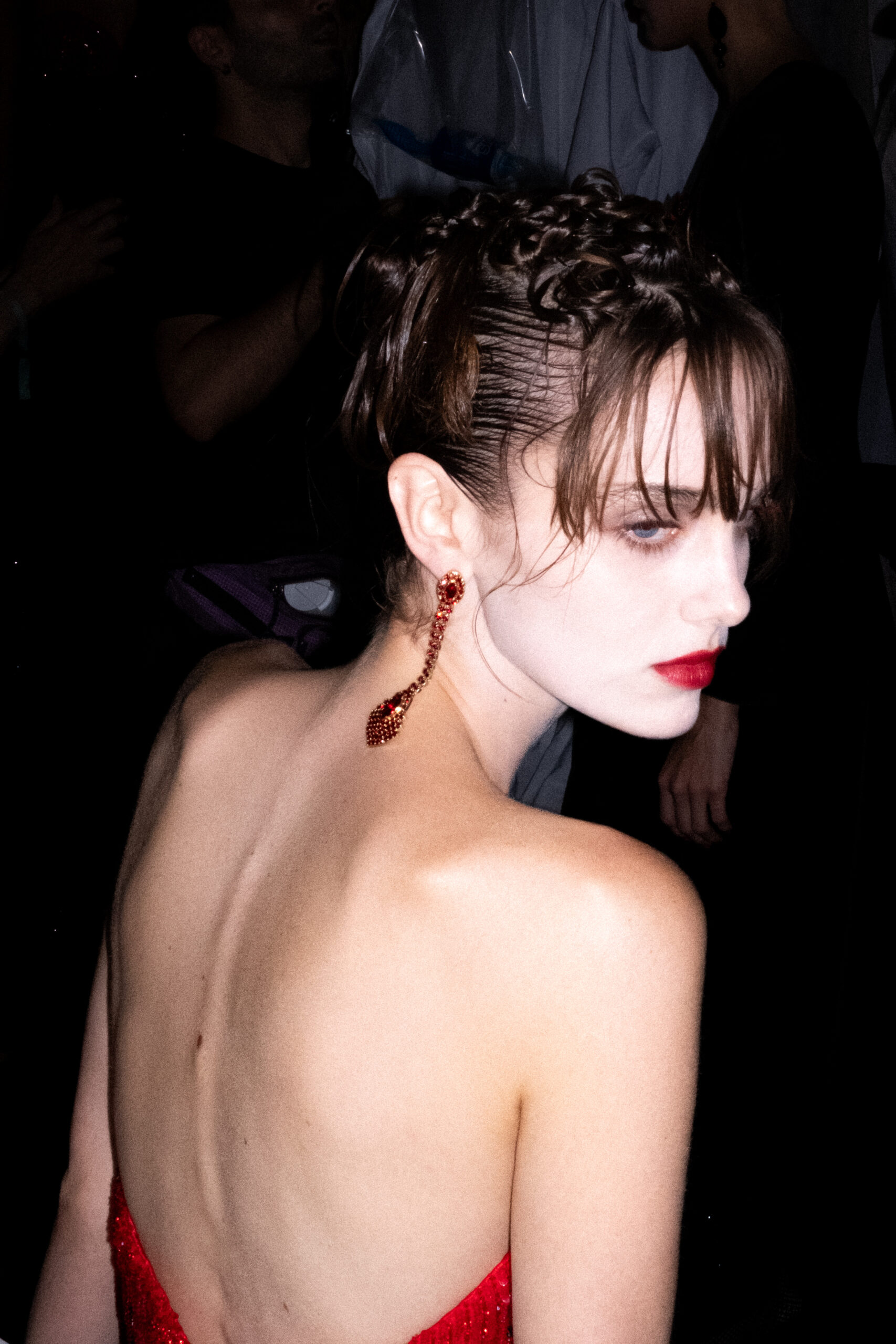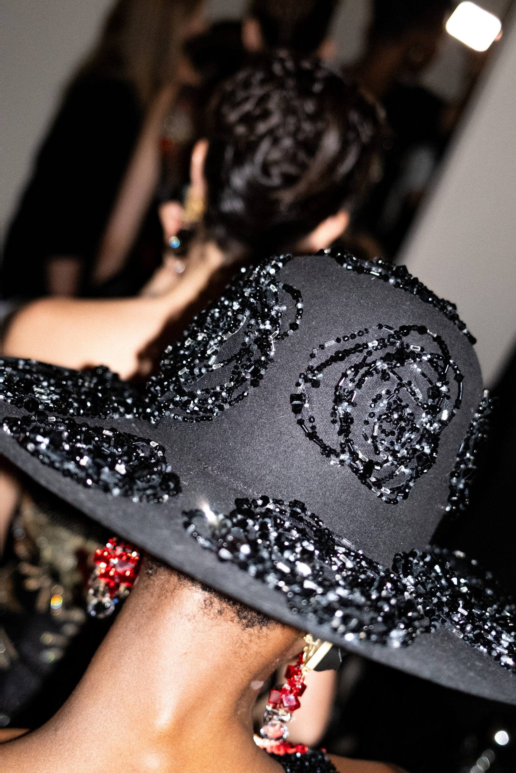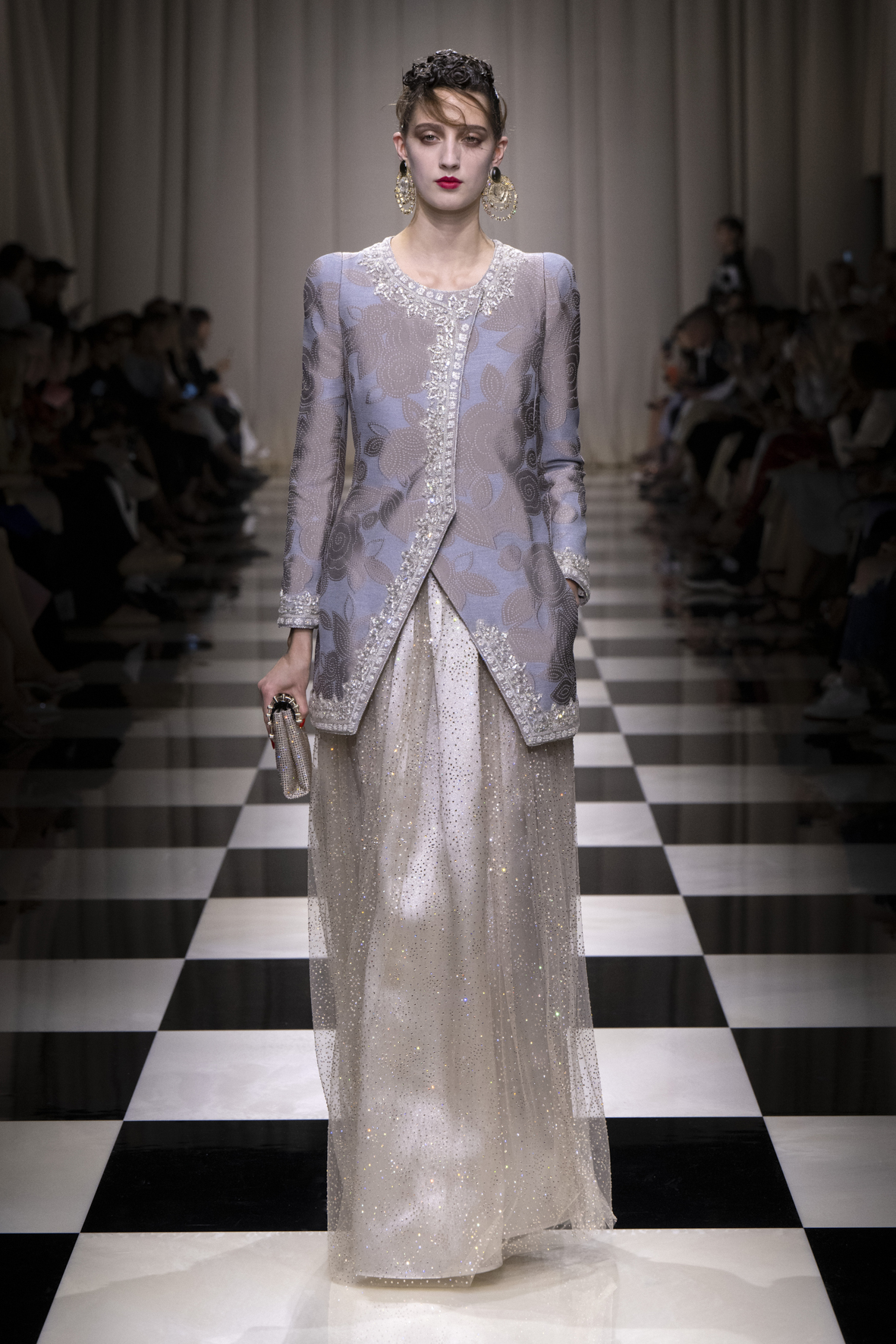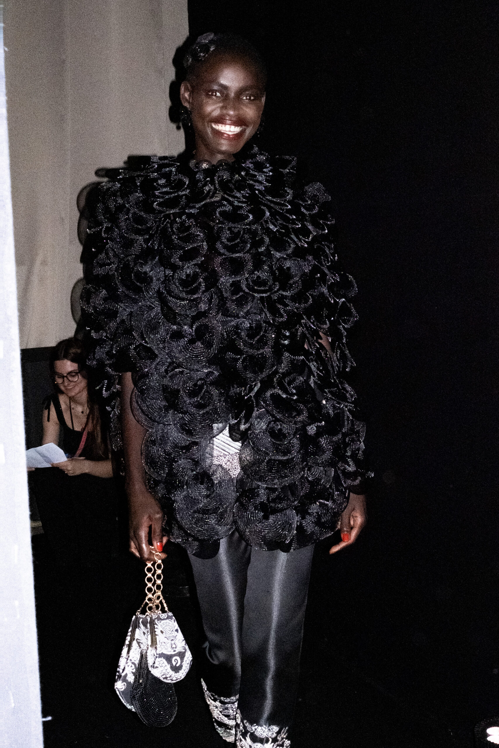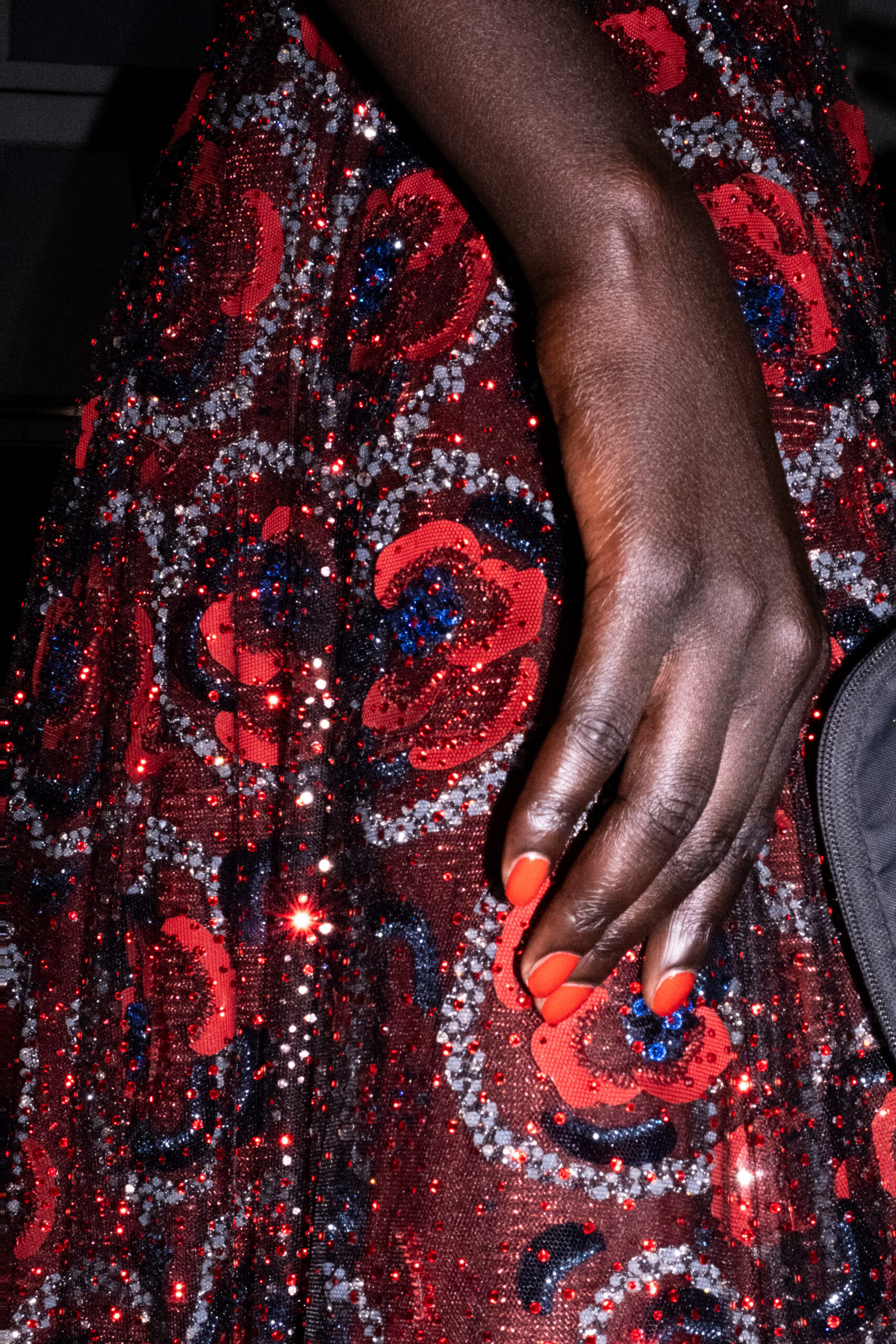 Une charnelle, séduisante et mystérieuse éclosion de roses rouges. Des roses laquées, brillantes, embossées d’un motif graphique noir aux accents dorés brillants. Un voyage de l’occident à l’orient à travers des silhouettes allongées, pour une collection revisitant, sans cliché romantique, la fleur la plus emblématique qui soit.