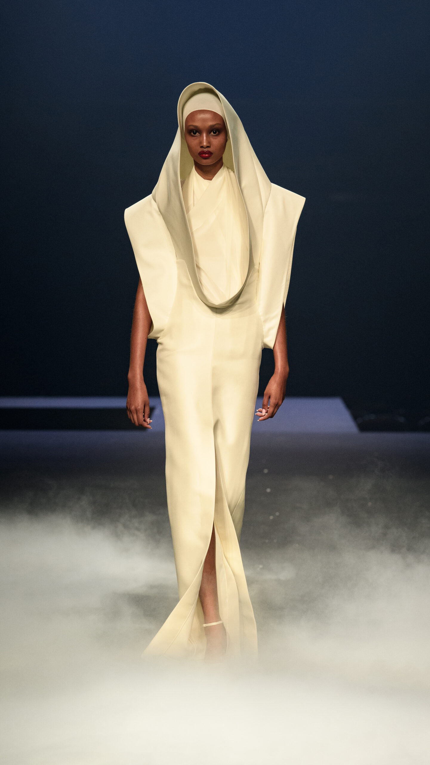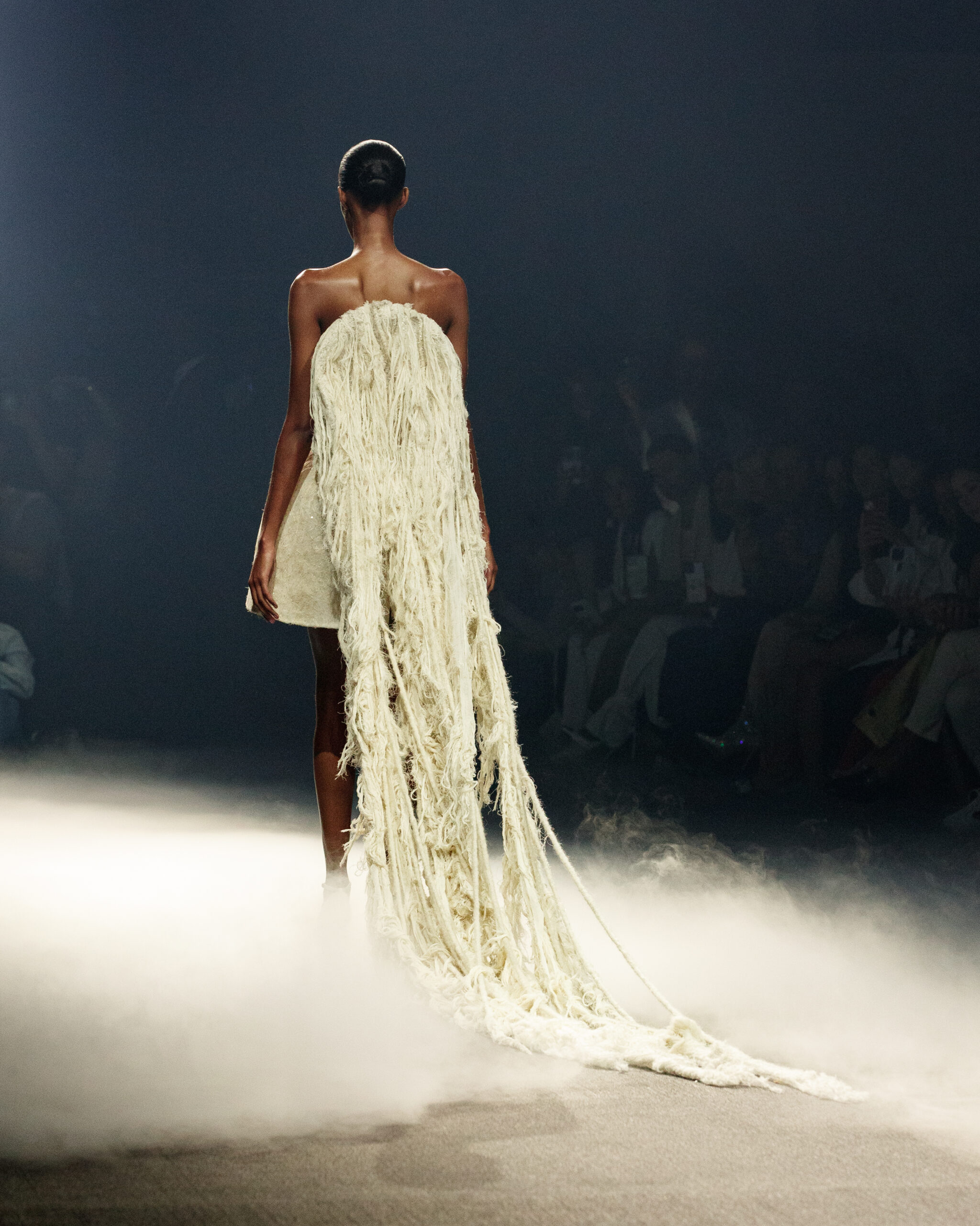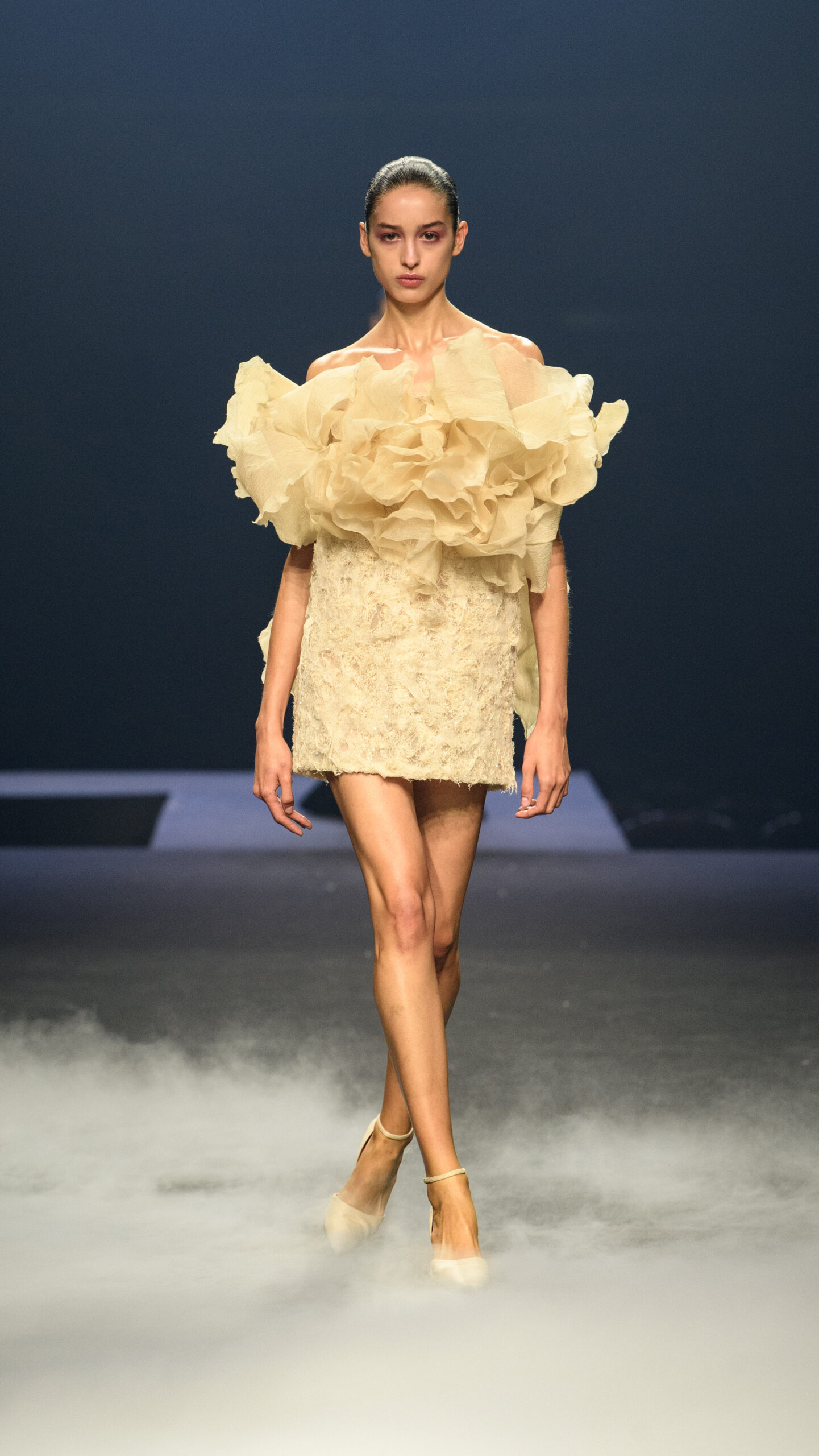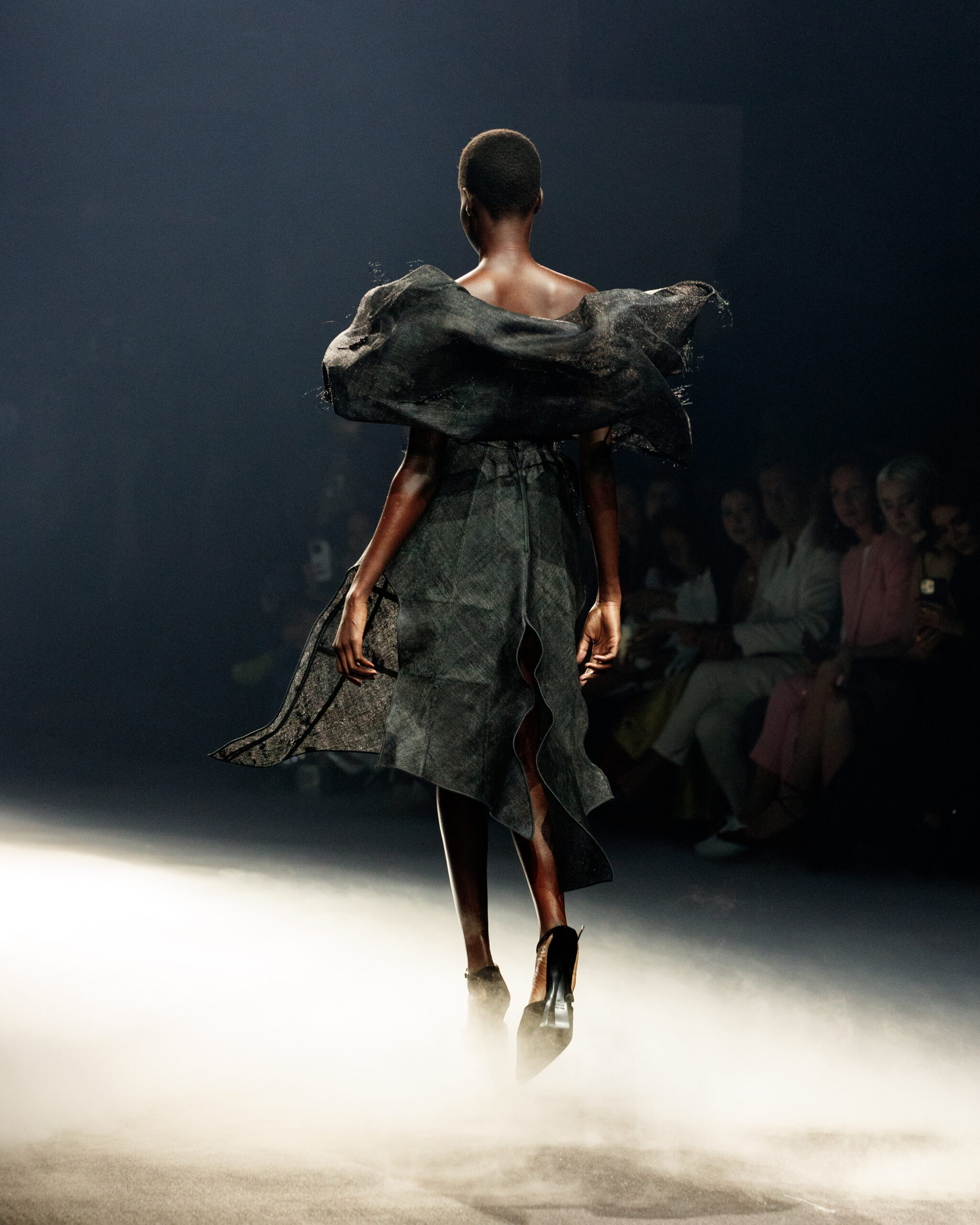 Passion, obsession, and mystery permeate dramatic silhouettes, embodying the visceral quest for the ultimate expression of an art. Just as extraction transforms the soul of a plant into scent, Ashi uses meticulous craftsmanship to reconstruct immaterial notions of memory, yearning, and fragrance into couture.
