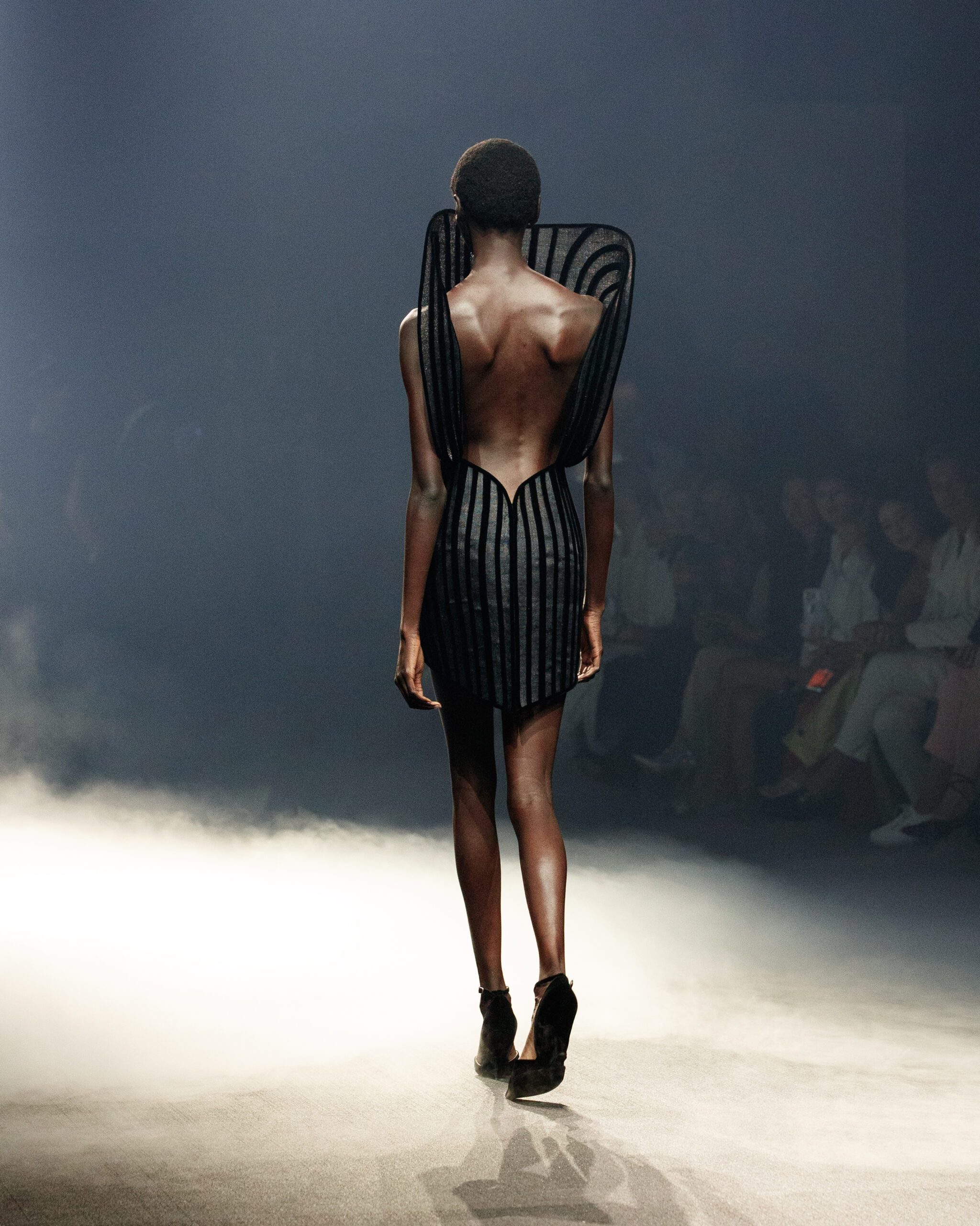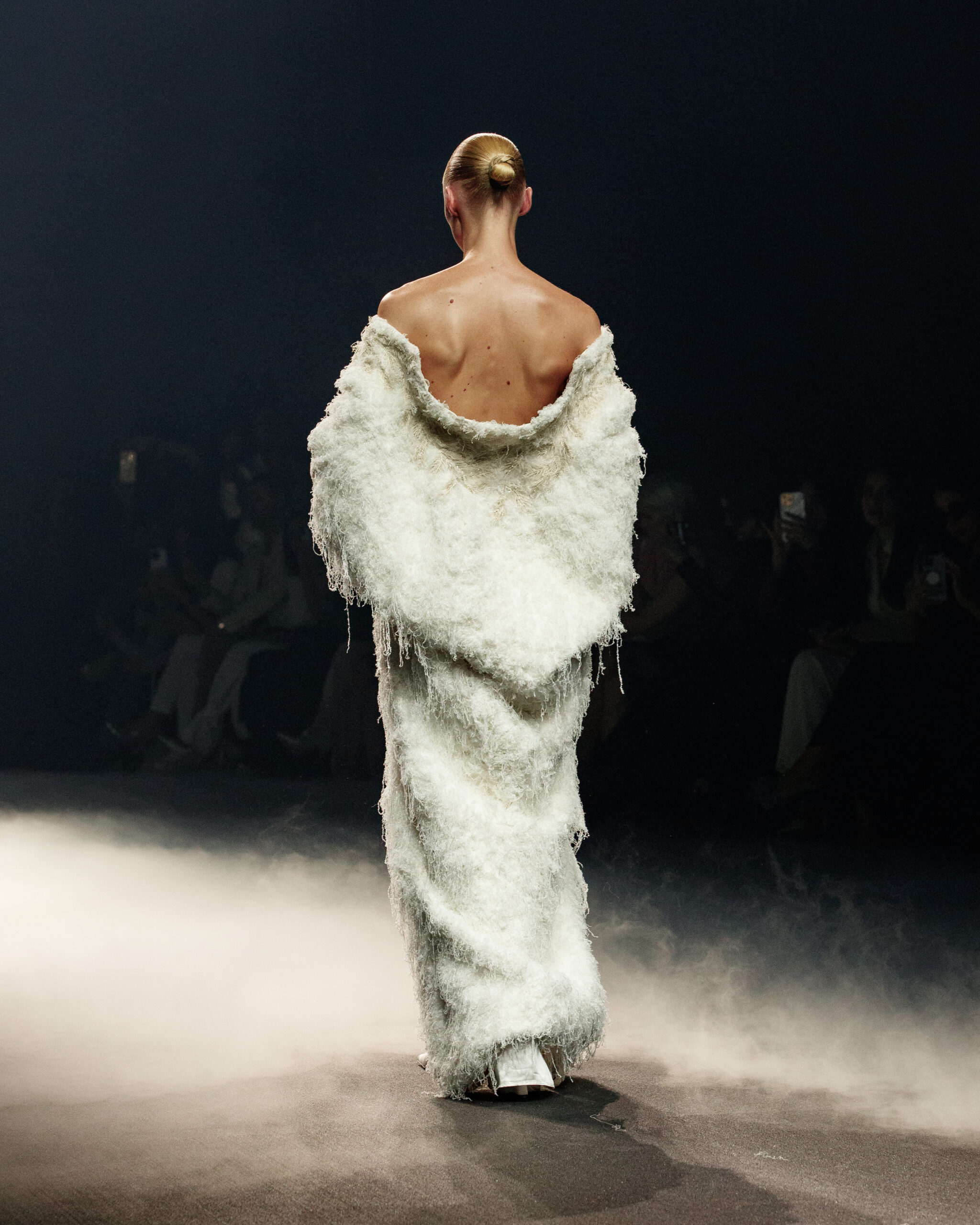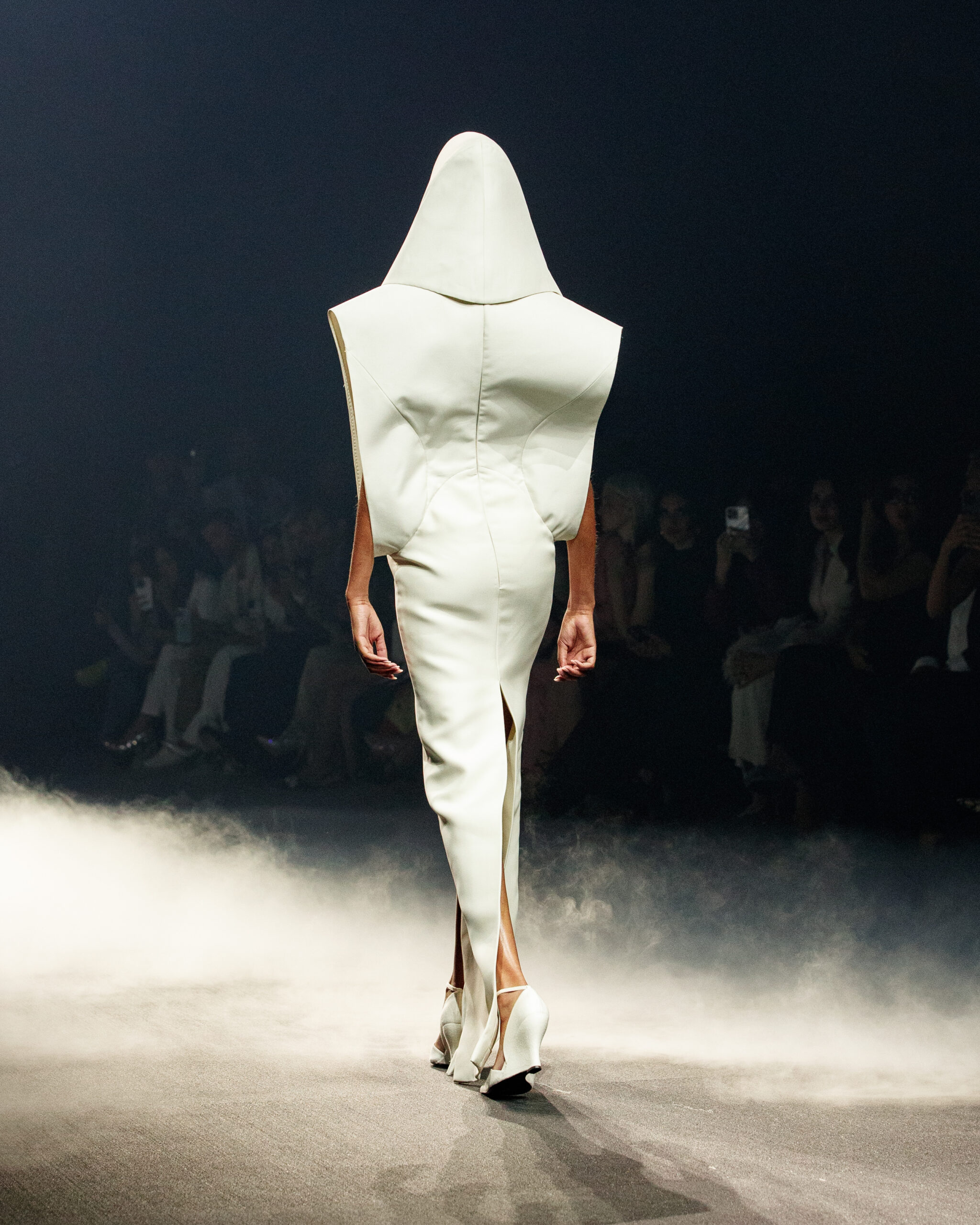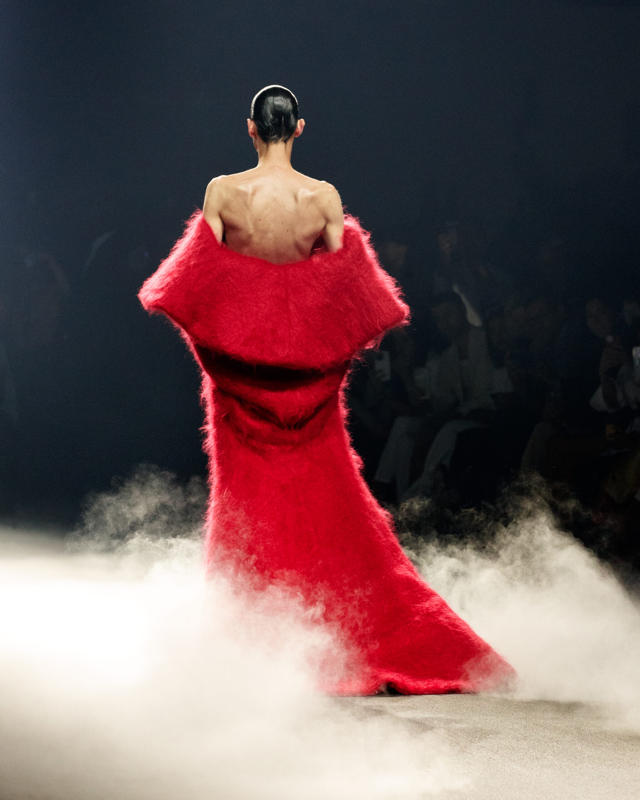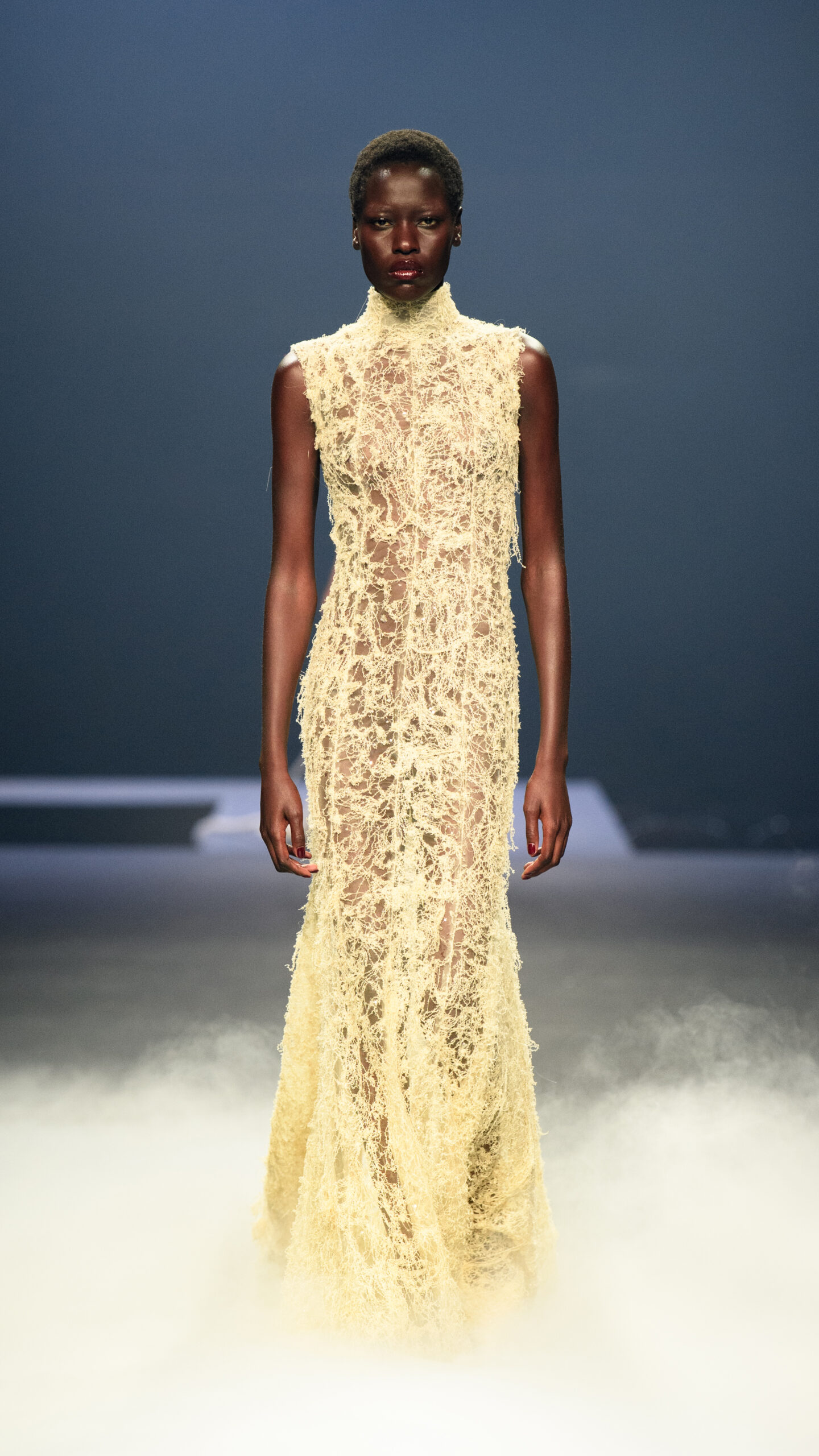 Passion, obsession, and mystery permeate dramatic silhouettes, embodying the visceral quest for the ultimate expression of an art. Just as extraction transforms the soul of a plant into scent, Ashi uses meticulous craftsmanship to reconstruct immaterial notions of memory, yearning, and fragrance into couture.