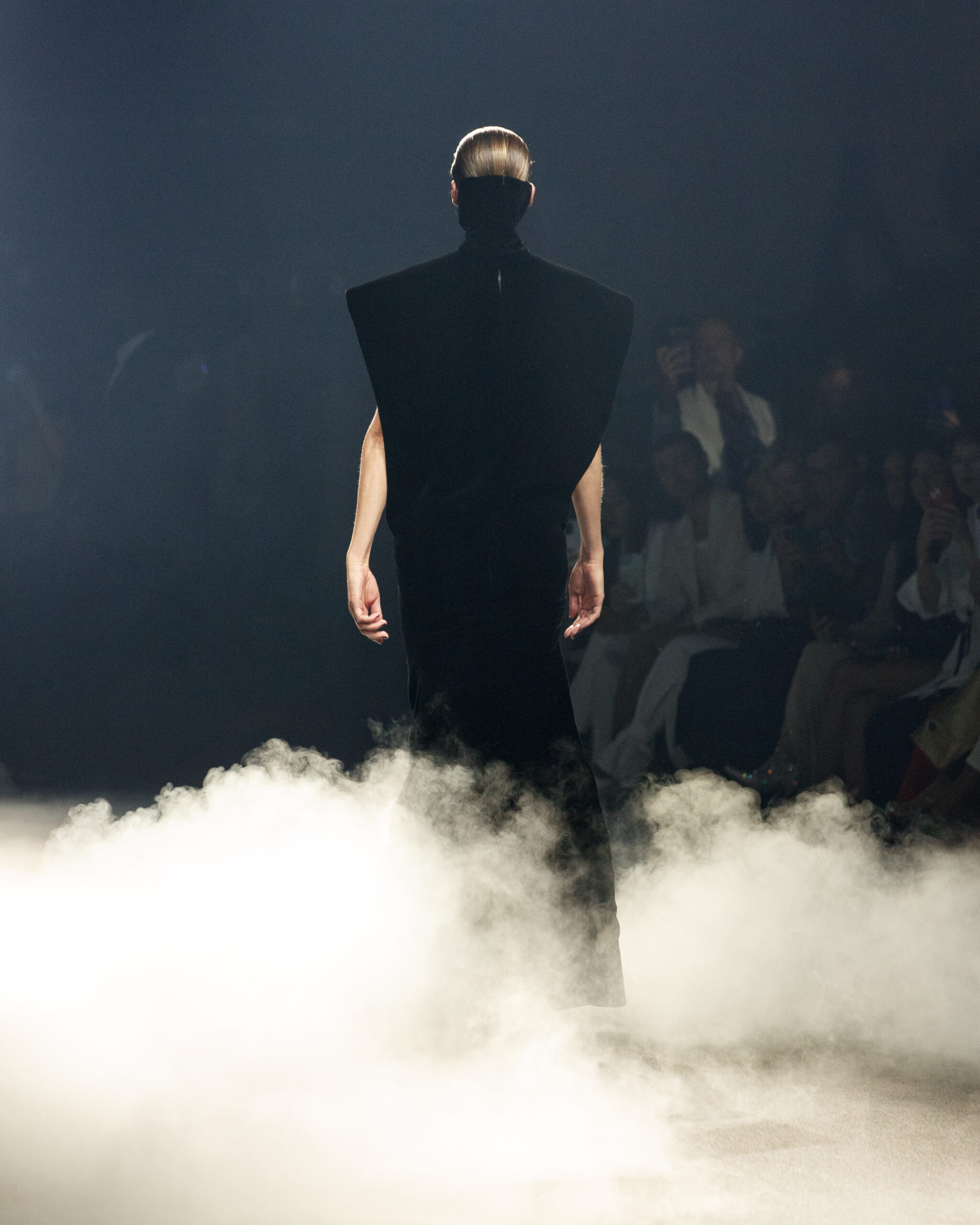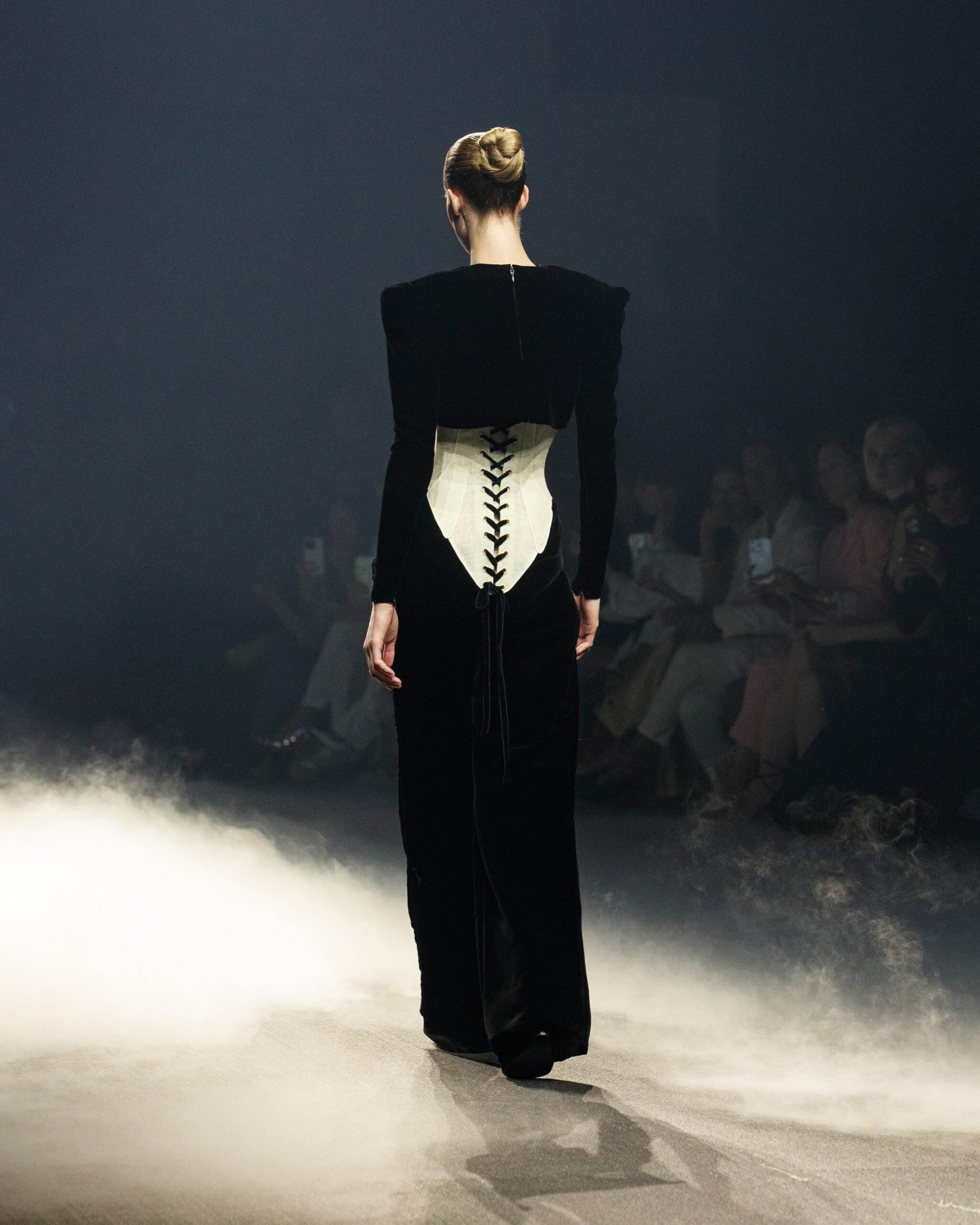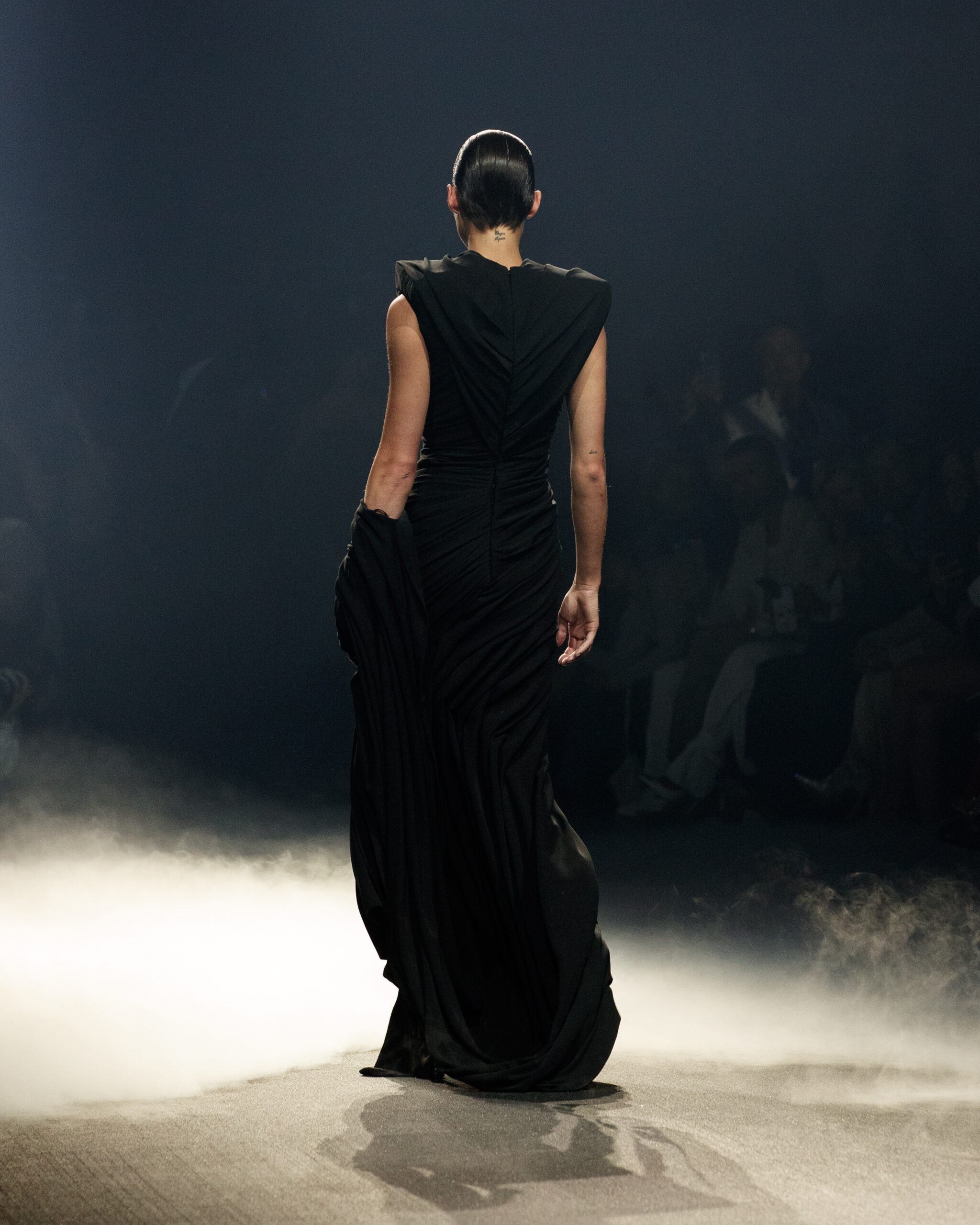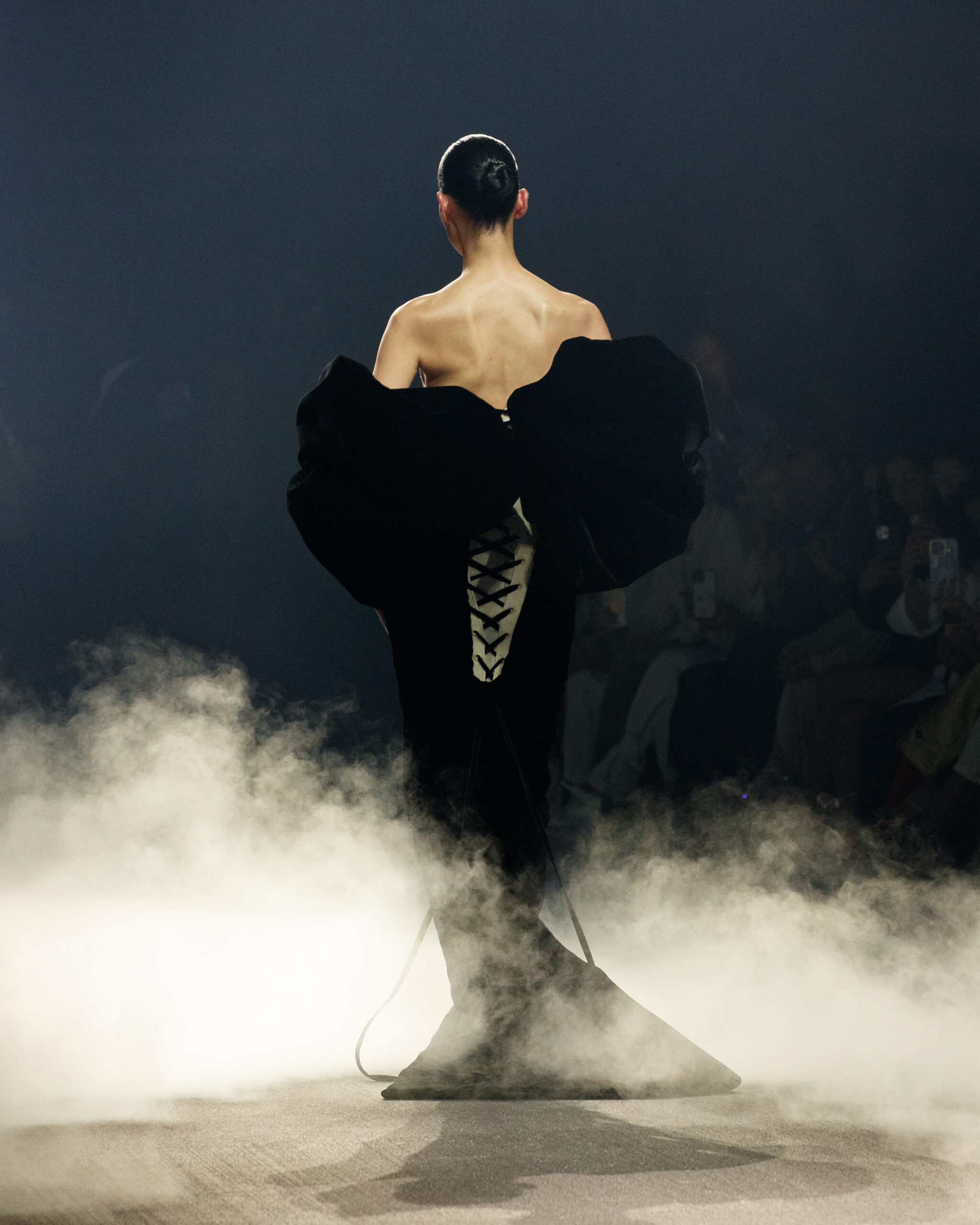 Passion, obsession, and mystery permeate dramatic silhouettes, embodying the visceral quest for the ultimate expression of an art. Just as extraction transforms the soul of a plant into scent, Ashi uses meticulous craftsmanship to reconstruct immaterial notions of memory, yearning, and fragrance into couture.