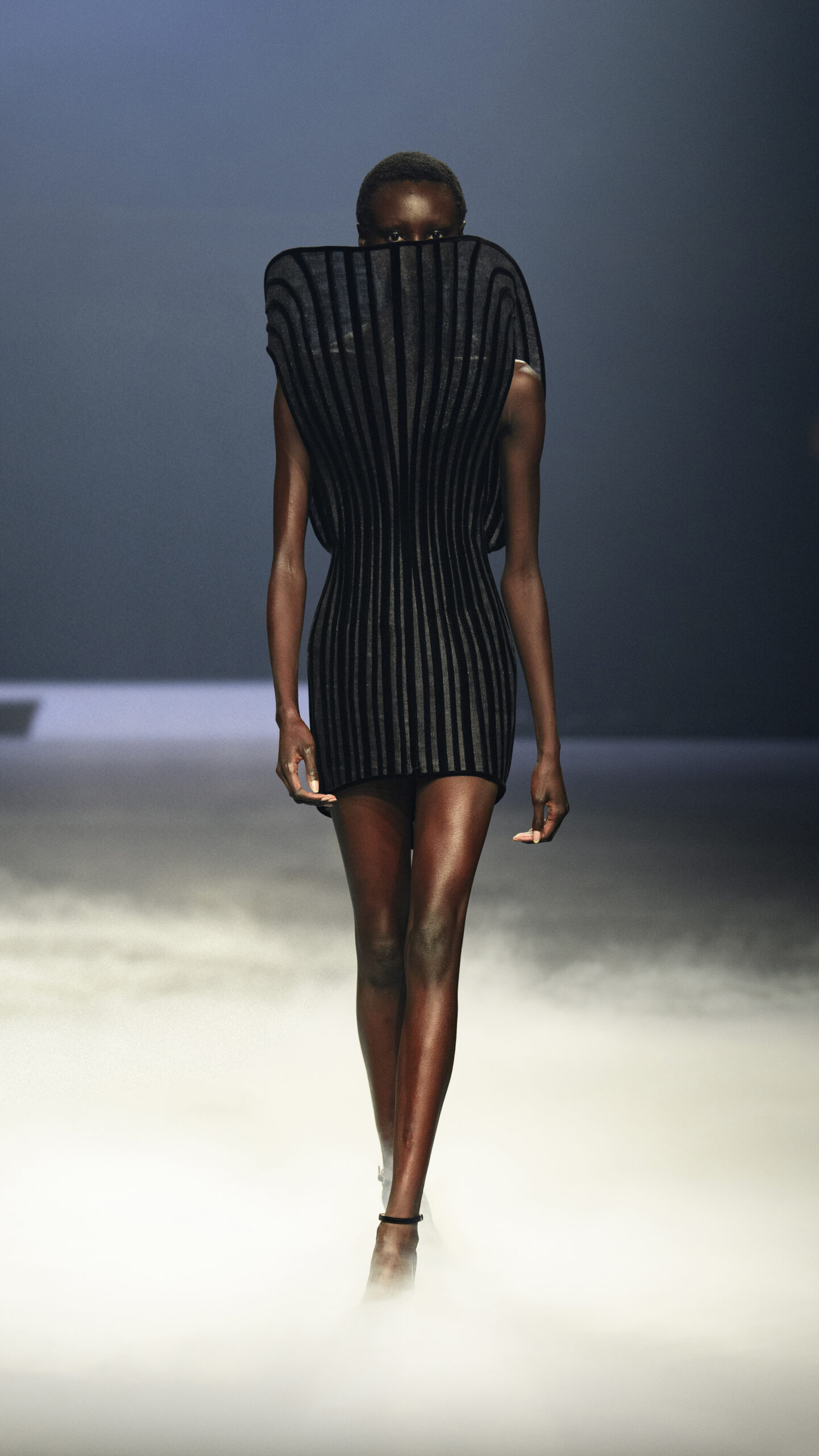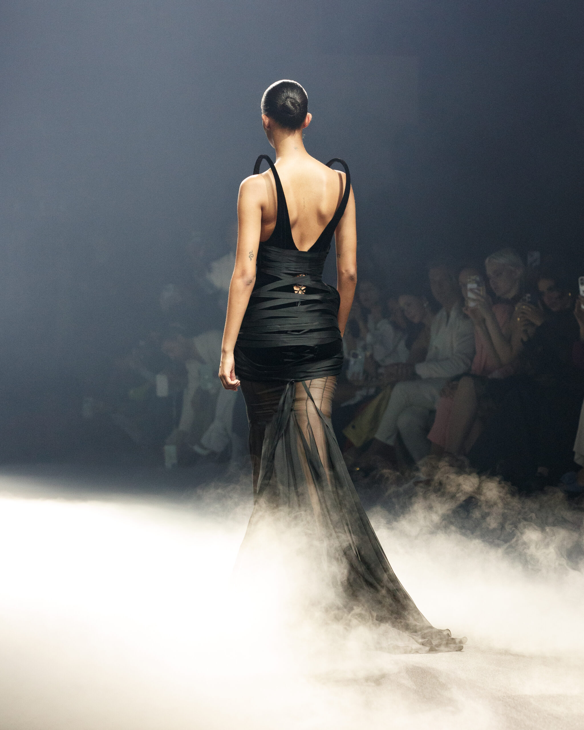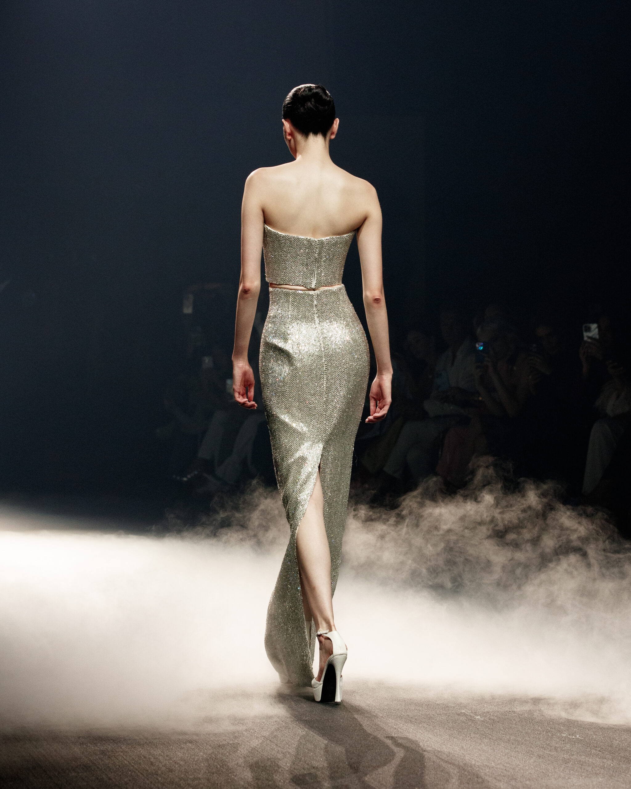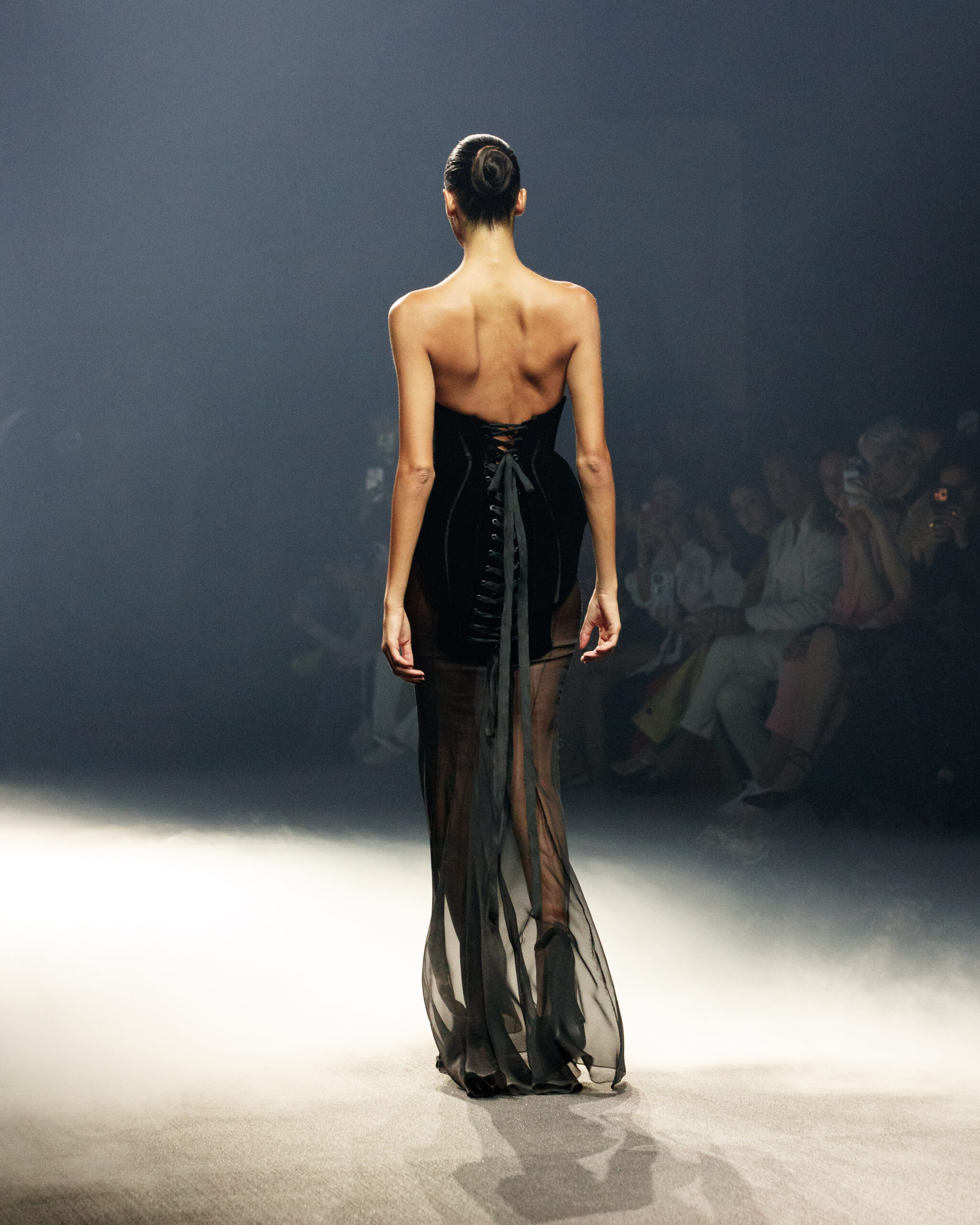 Passion, obsession, and mystery permeate dramatic silhouettes, embodying the visceral quest for the ultimate expression of an art. Just as extraction transforms the soul of a plant into scent, Ashi uses meticulous craftsmanship to reconstruct immaterial notions of memory, yearning, and fragrance into couture.