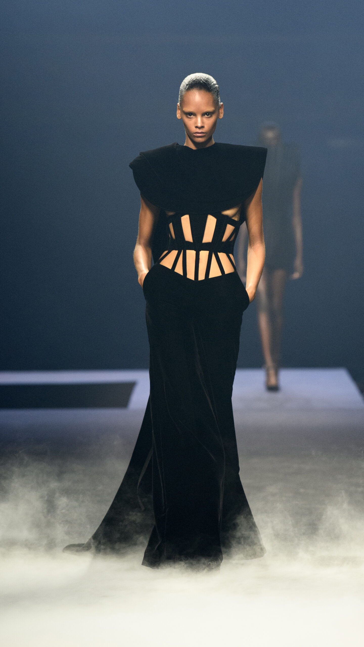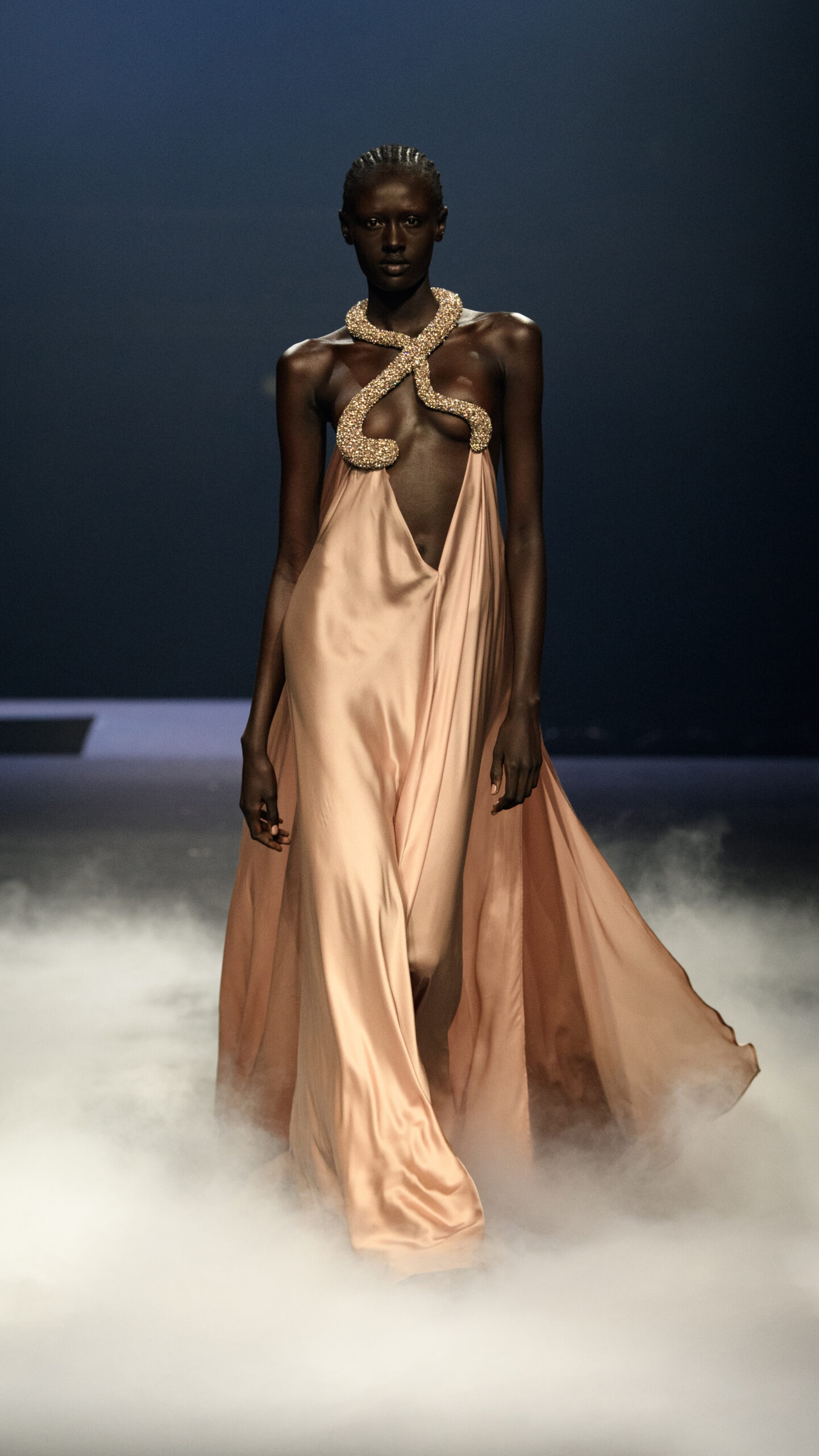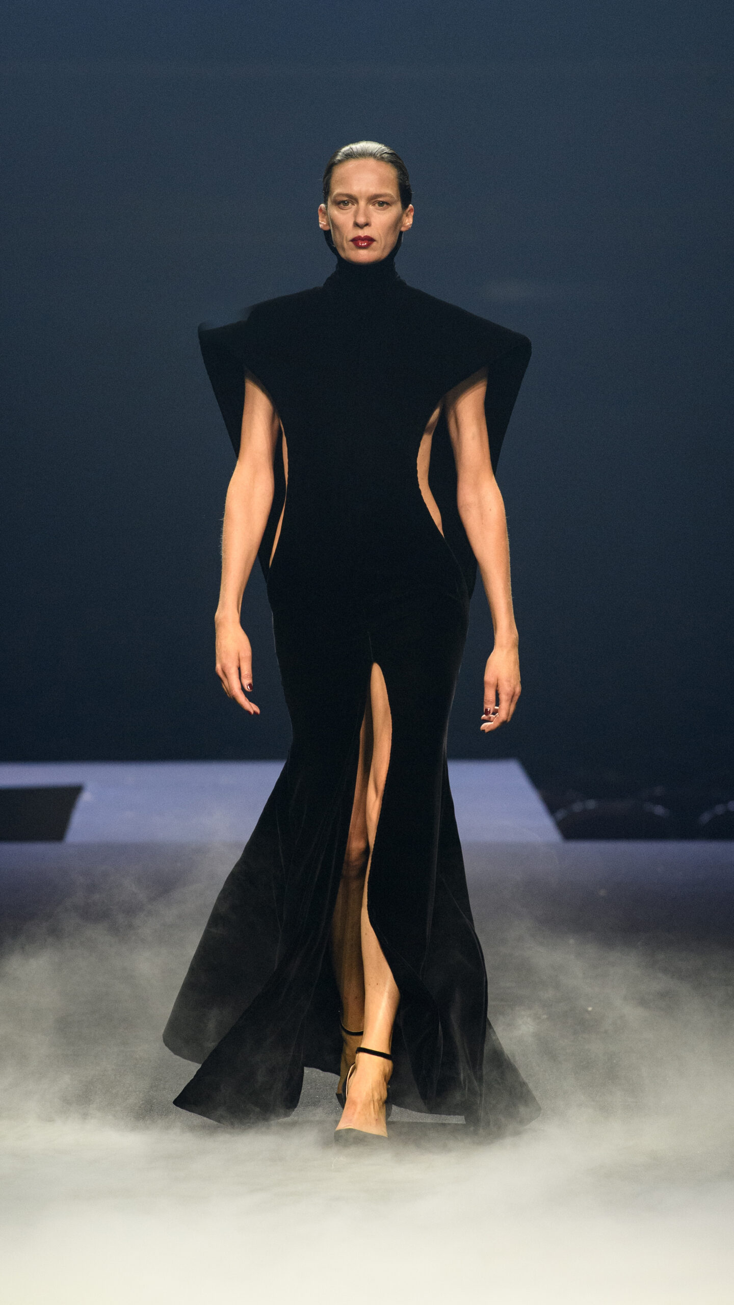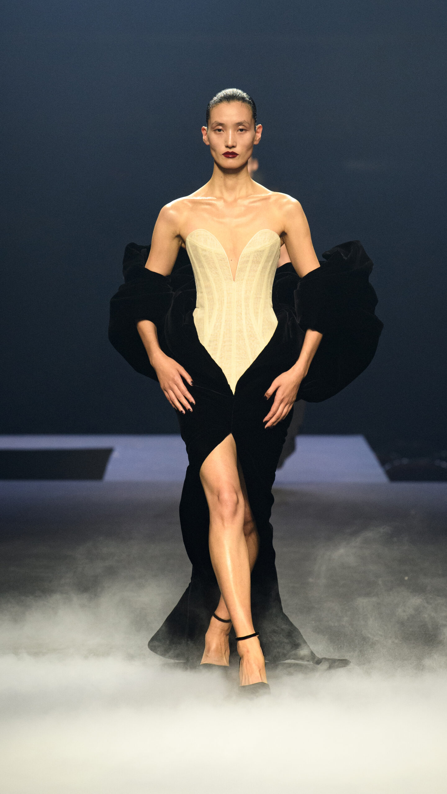 This poetic, enigmatic ode to dark romance is embodied by a cast whose diversity reflects Ashi’s Orientals origins. In keeping with the couturier’s flair for drama, it was unveiled onstage at the iconic Théatre du Châtelet in Paris. In that context, and with all the headiness of a signature perfume, the Ashi Fall-Winter 2023 couture collection celebrated self-expression, fluidity and voluptuousness tinged with danger.