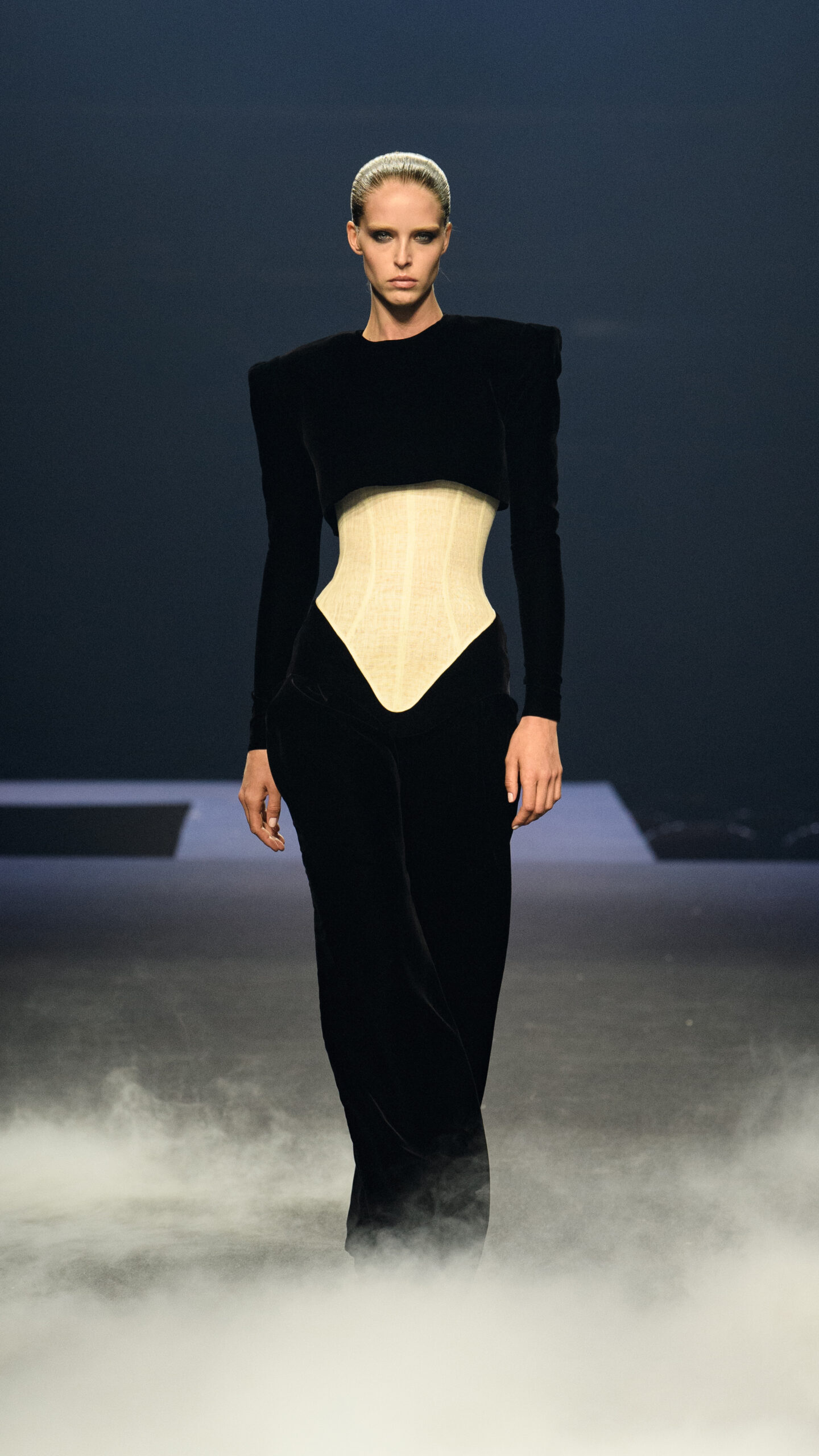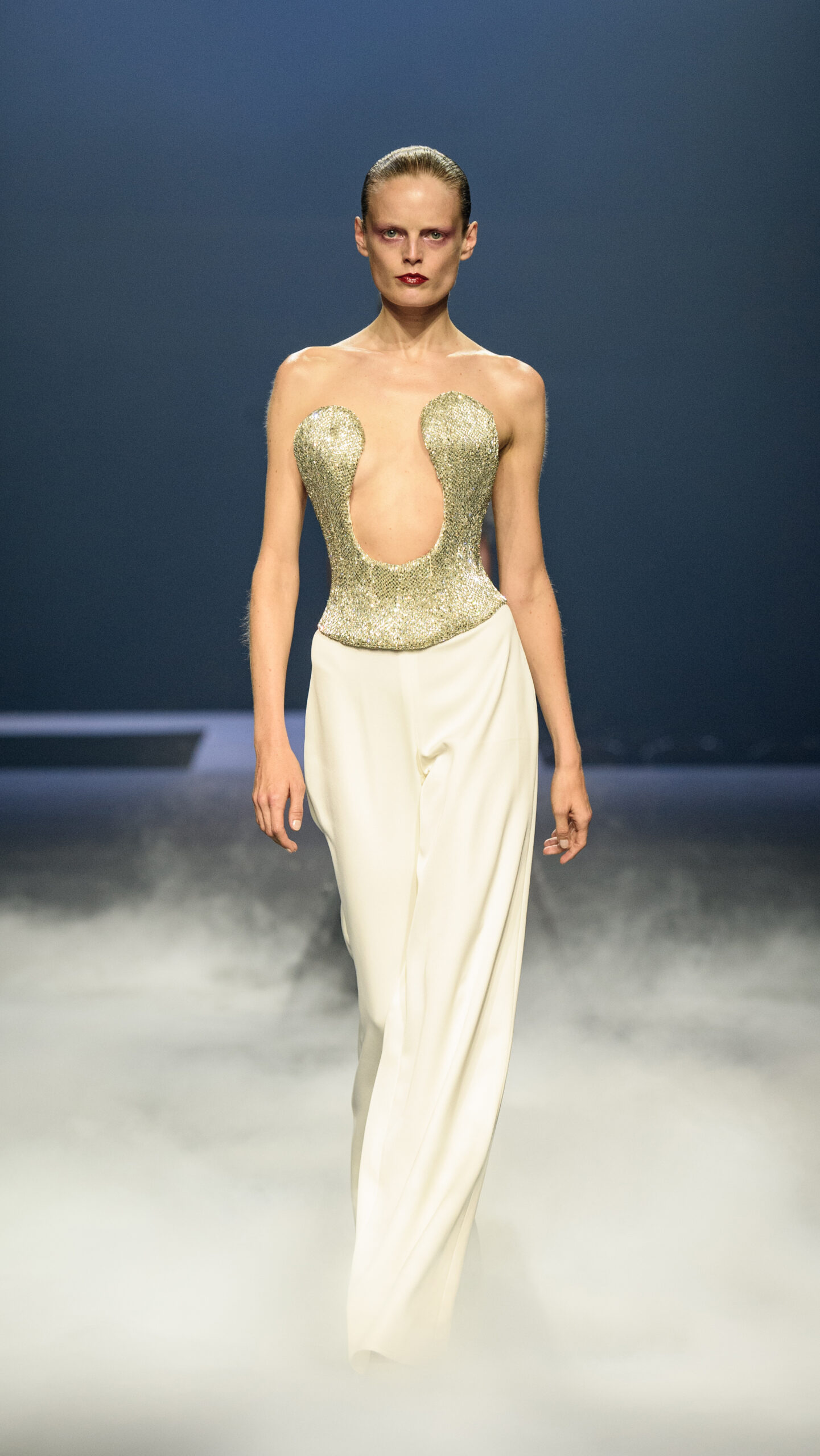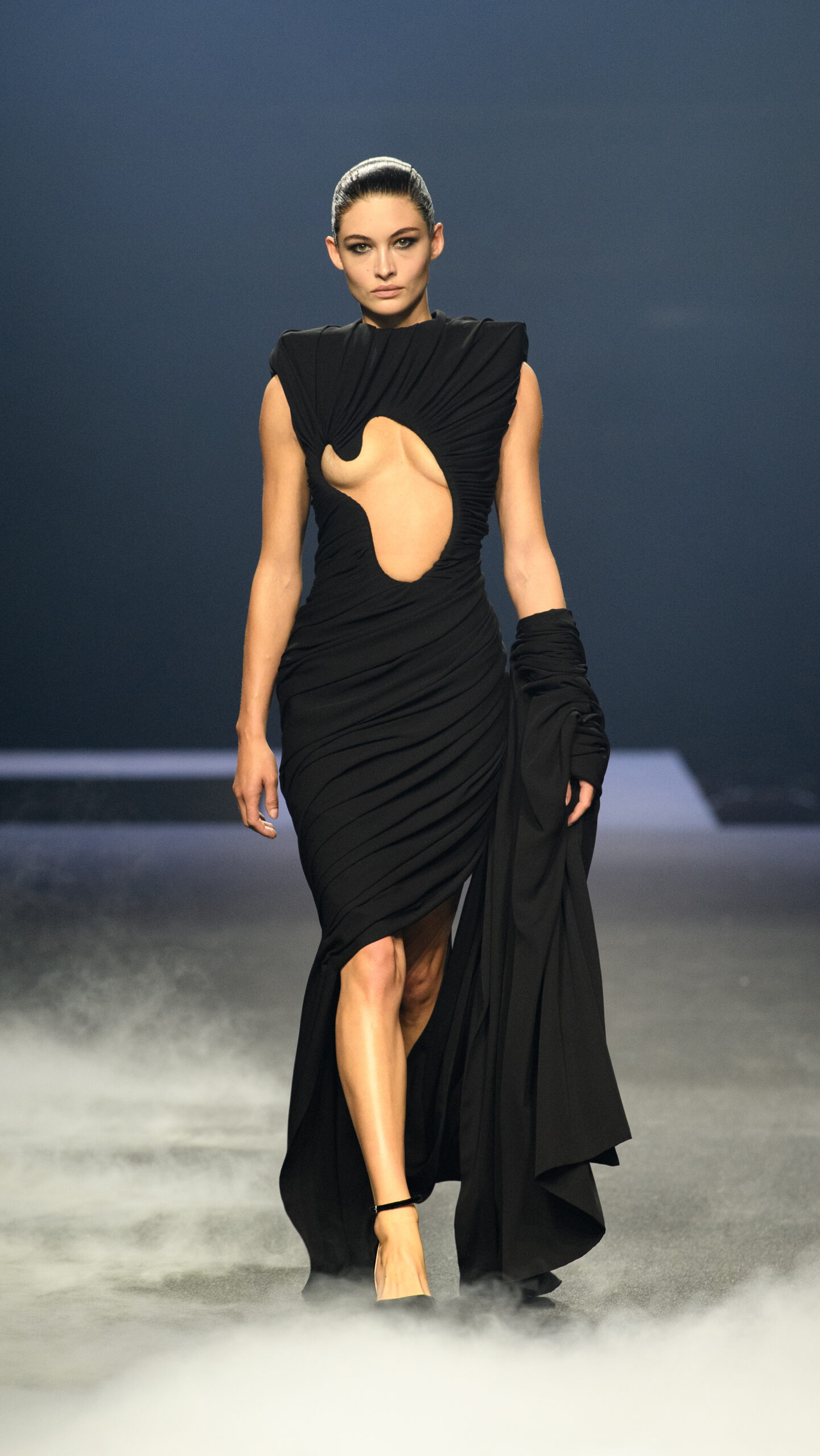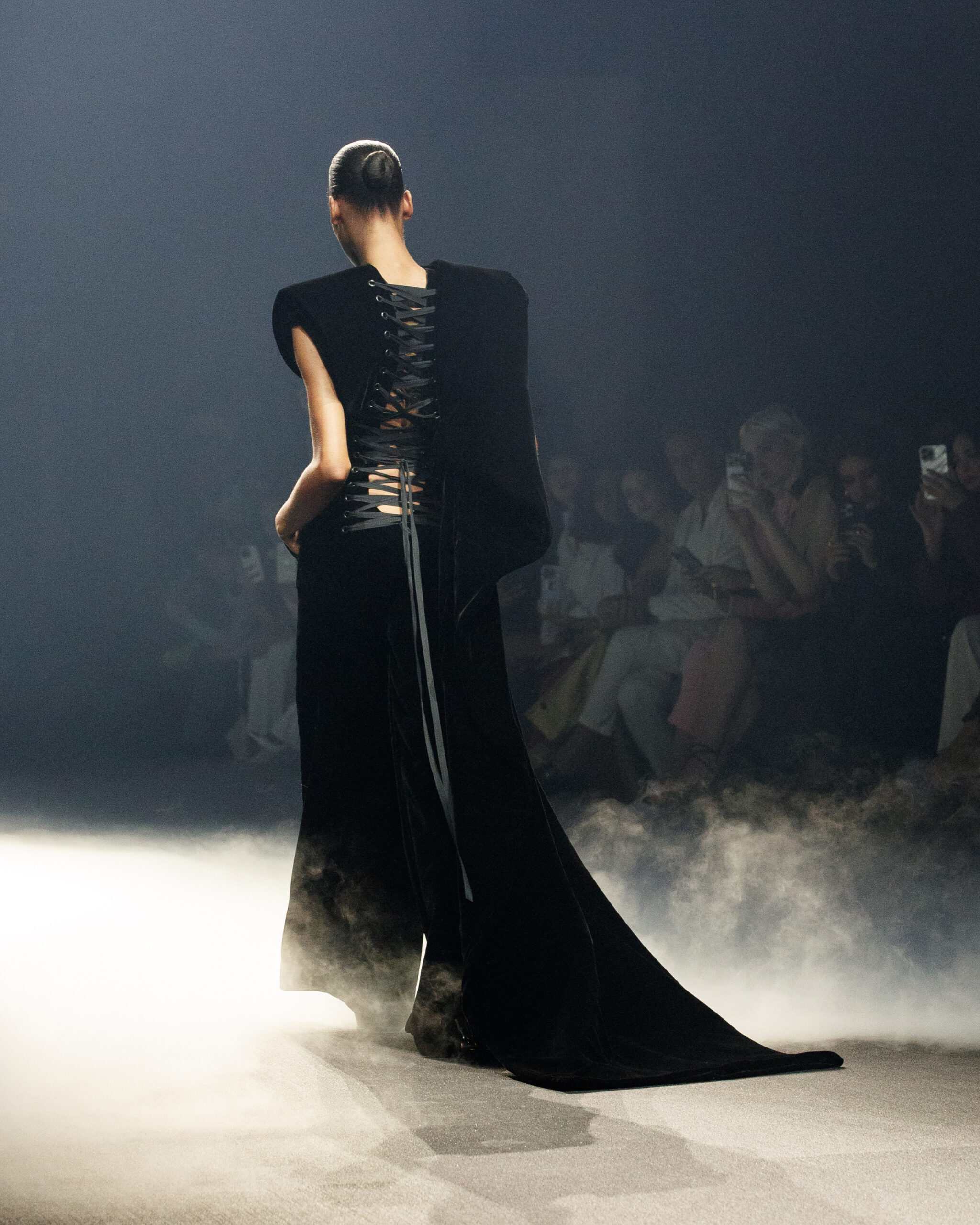 This poetic, enigmatic ode to dark romance is embodied by a cast whose diversity reflects Ashi’s Orientals origins. In keeping with the couturier’s flair for drama, it was unveiled onstage at the iconic Théatre du Châtelet in Paris. In that context, and with all the headiness of a signature perfume, the Ashi Fall-Winter 2023 couture collection celebrated self-expression, fluidity and voluptuousness tinged with danger.