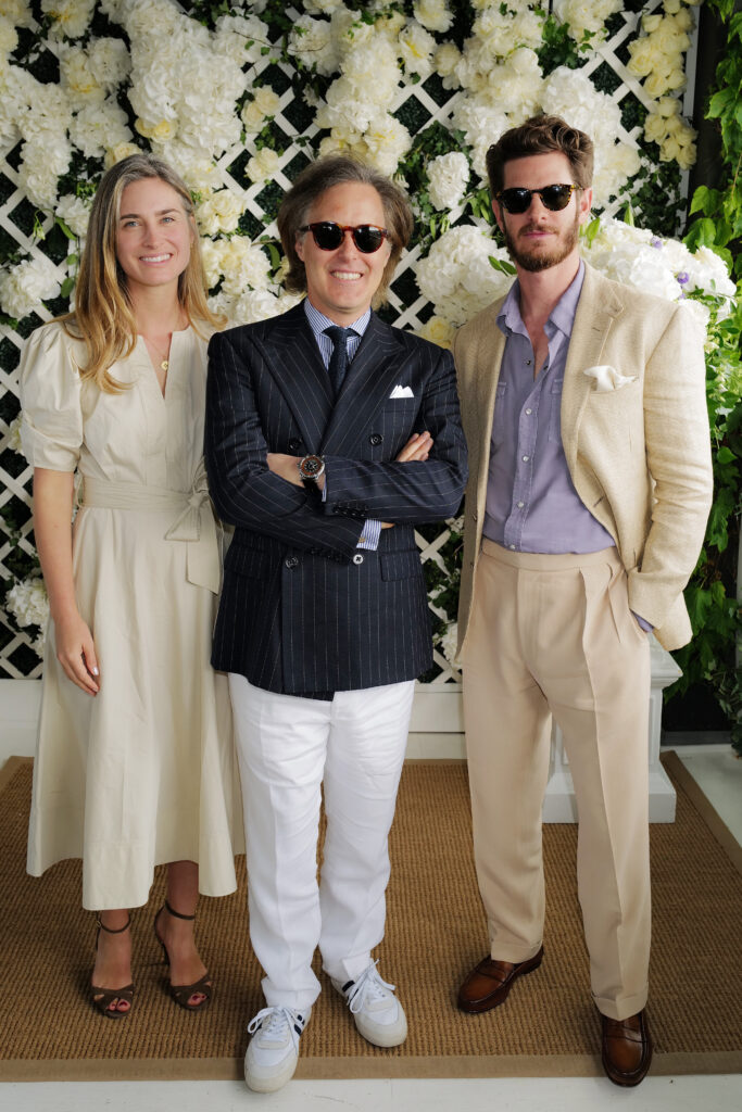 - WIMBLEDON, ENGLAND – JULY 16: Lauren Bush Lauren, David Lauren and Andrew Garfield wearing Ralph Lauren, attends the Ralph Lauren Suite during The Championships, Wimbledon at All England Lawn Tennis and Croquet Club on July 16, 2023 in Wimbledon, England. (Photo by Darren Gerrish/WireImage)
