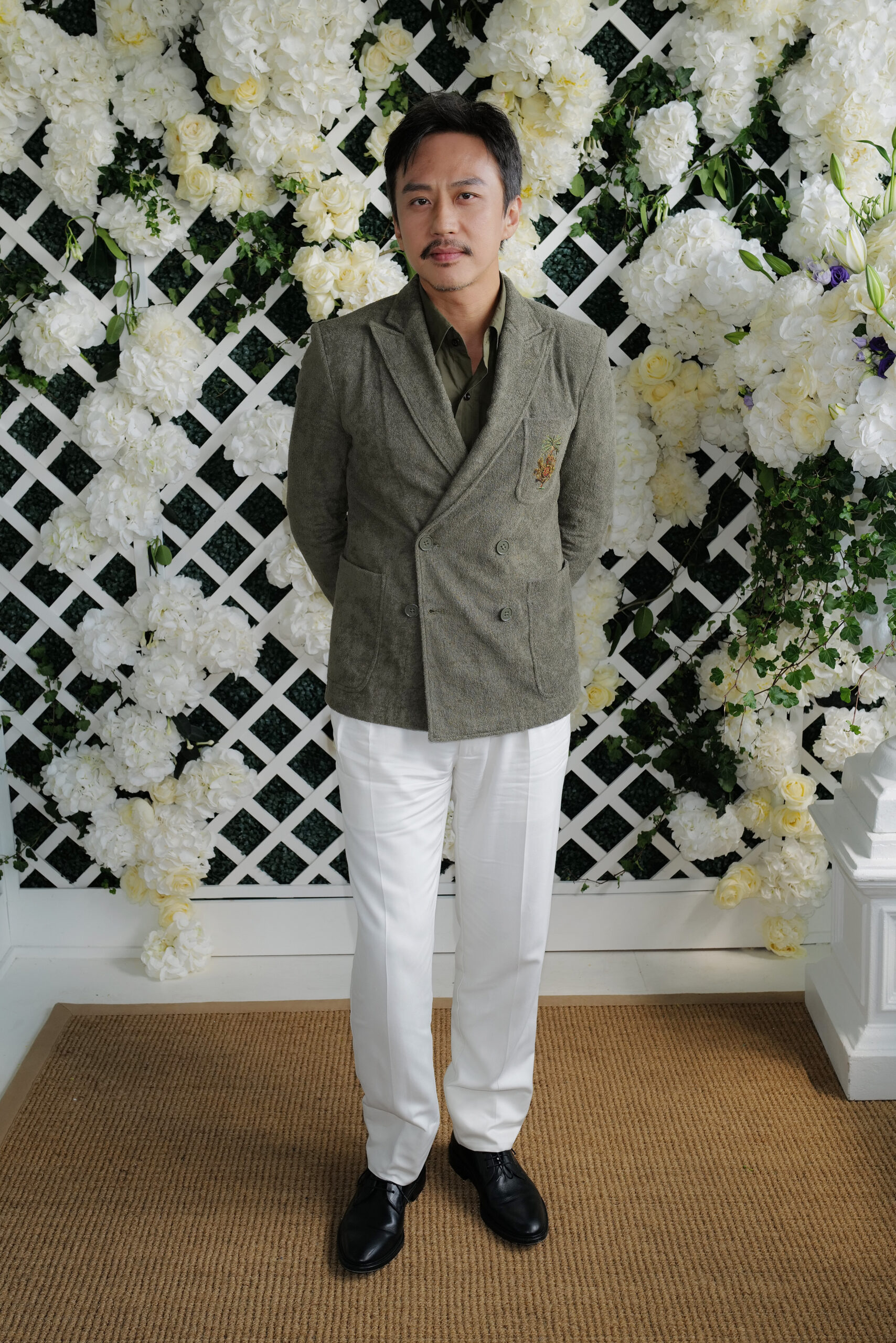 Deng Chao is wearing a Ralph Lauren Purple Label Sportscoat, Shirt and Trousers.