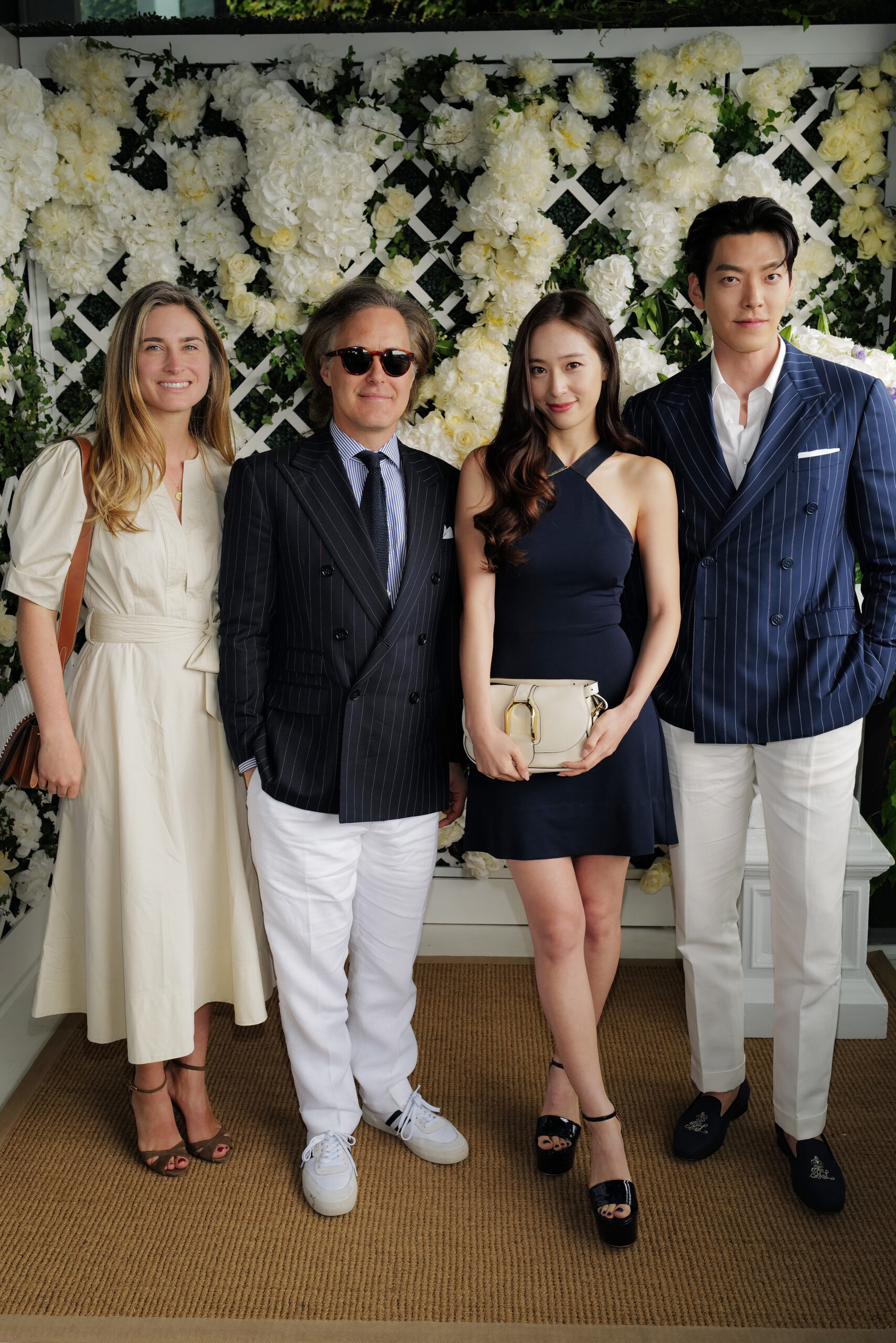 - WIMBLEDON, ENGLAND – JULY 16: (L-R) Lauren Bush Lauren, David Lauren, Krystal Jung and Woo Bin Kim wearing Ralph Lauren, attends the Ralph Lauren Suite during The Championships, Wimbledon at All England Lawn Tennis and Croquet Club on July 16, 2023 in Wimbledon, England. (Photo by Darren Gerrish/WireImage)
