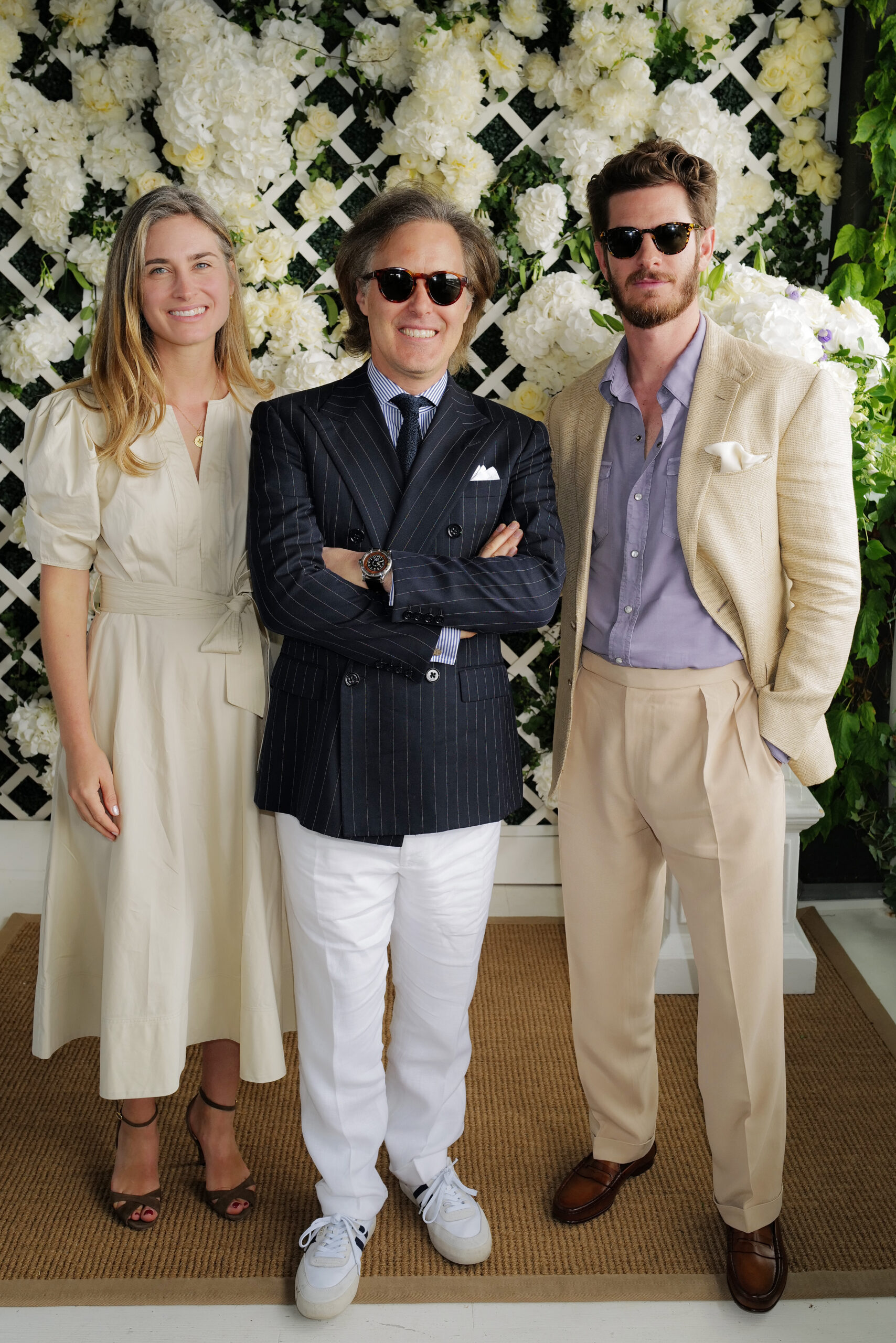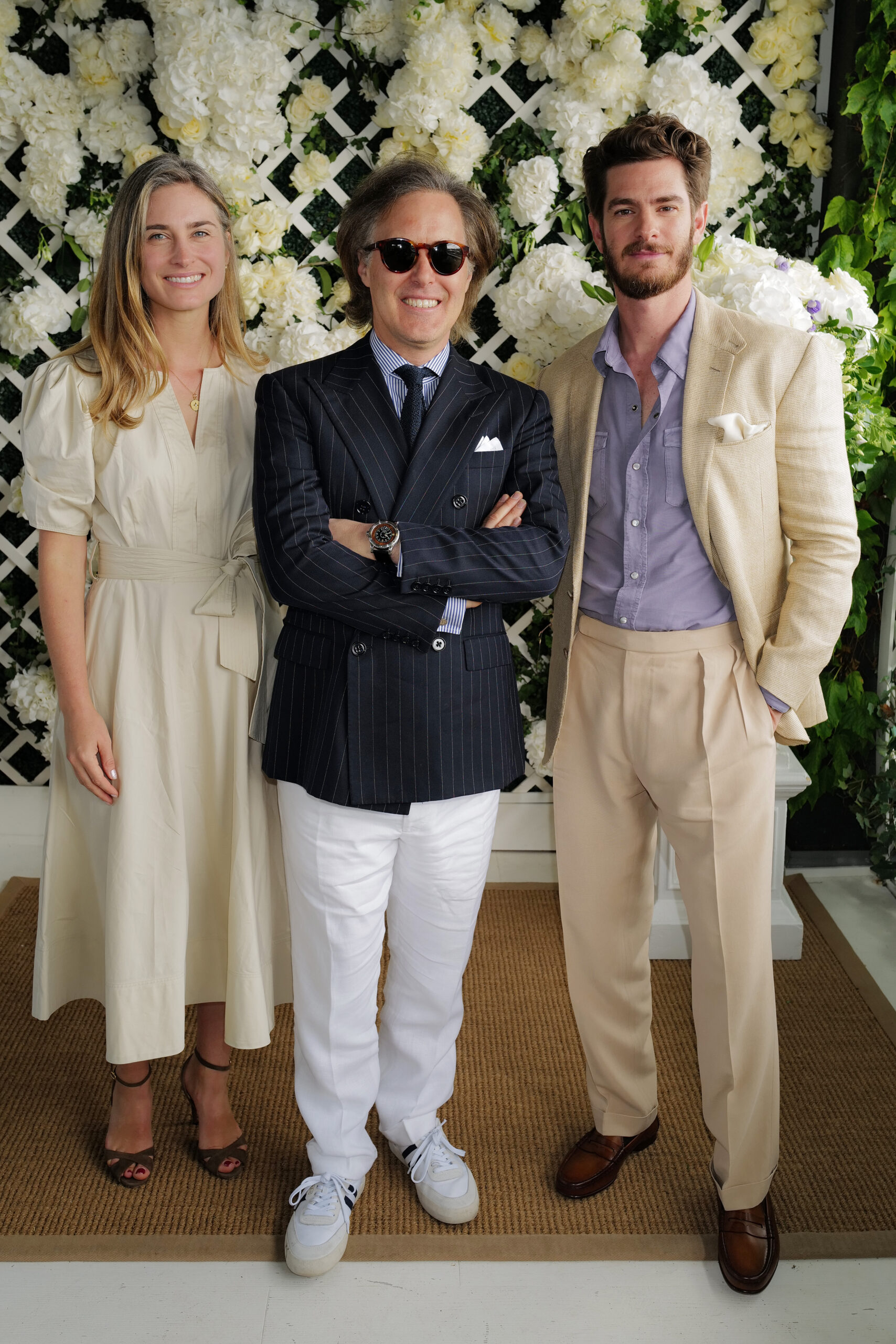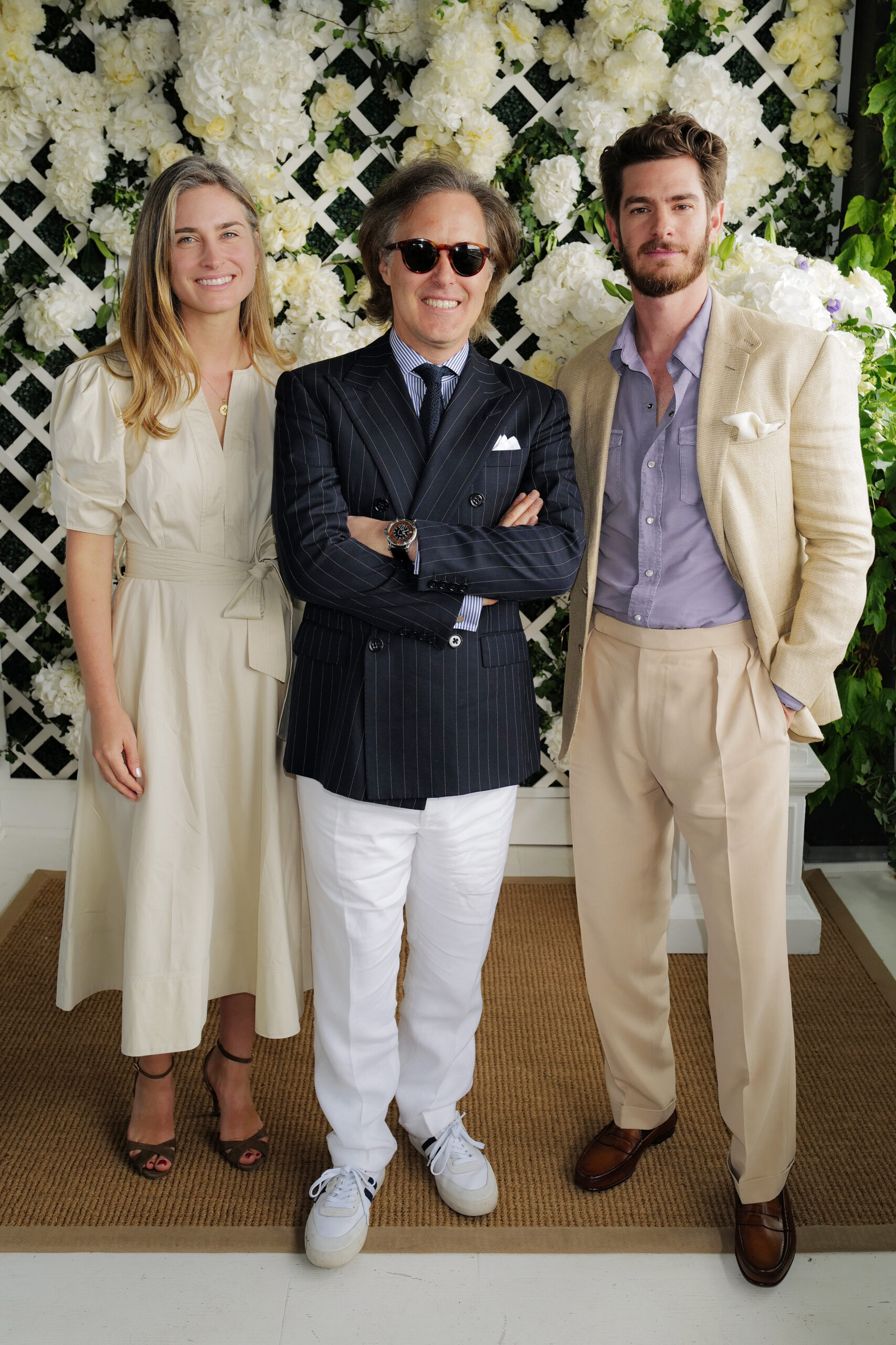 - WIMBLEDON, ENGLAND – JULY 16: Lauren Bush Lauren, David Lauren and Andrew Garfield wearing Ralph Lauren, attends the Ralph Lauren Suite during The Championships, Wimbledon at All England Lawn Tennis and Croquet Club on July 16, 2023 in Wimbledon, England. (Photo by Darren Gerrish/WireImage)
