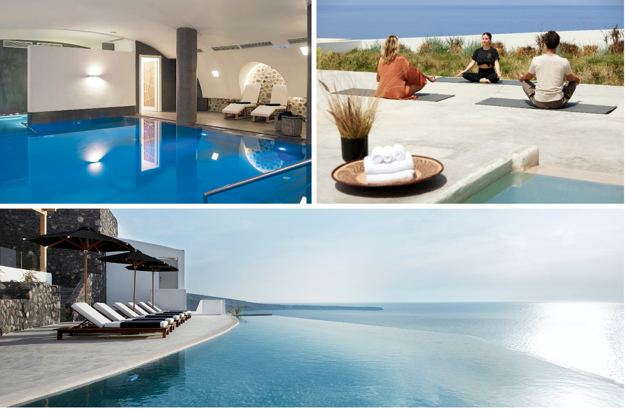 L’hôtel Santo Pure n’offre pas seulement des soins spa, mais aussi une gamme de commodités de détente. La piscine intérieure chauffée de 76 mètres carrés et le sauna en bois sont parfaits pour des moments de ressourcement. En plus, les convives peuvent profiter du centre de remise en forme face à la mer Égée, avec des programmes d’exercices personnalisés, guidés par une équipe de professionnels.