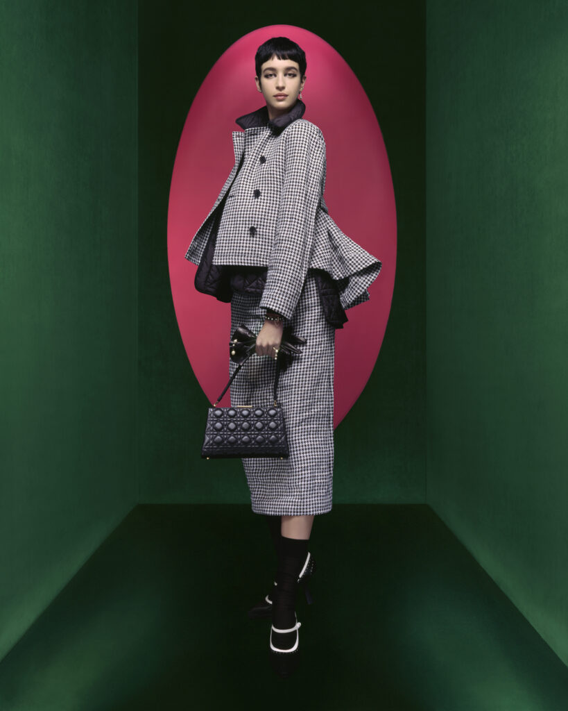 Maria Grazia Chiuri continues to explore the role and essence of clothing in its relationship to the body and fashion with the Dior ready-to-wear autumn-winter 2023-2024 line. Redrawing the founding shapes of the 1950s wardrobe, the Creative Director celebrates more than ever the history of Dior and Parisian elegance around three extraordinary personalities: Catherine Dior, Édith Piaf and Juliette Gréco. Iconic figures driven by a spirit of independence, audacity and freedom, all reflected in a unique campaign. A (re)reading of the Dior allure that comes to life through a series of shots by photographer Brigitte Niedermair*, exalting a reinvented, powerful, almost rebellious femininity. Between light and shadow, the decor is refined and graphic, with a dash of vivid colors echoing those subtly punctuating the collection – ruby, emerald, blue – which contrast with the shades of black magnifying the pieces. The looks tell the story of a symbolic encounter that combines precise reference to the archives and the desire for innovation so dear to the House. The models fuse past and future: leopard and houndstooth motifs – eternal Dior fundamentals – adorn coats as well as long skirts, while crushed fabrics structured with metallic threads sublimate the outfits, mirroring the constantly renewed inventiveness of the Ateliers.