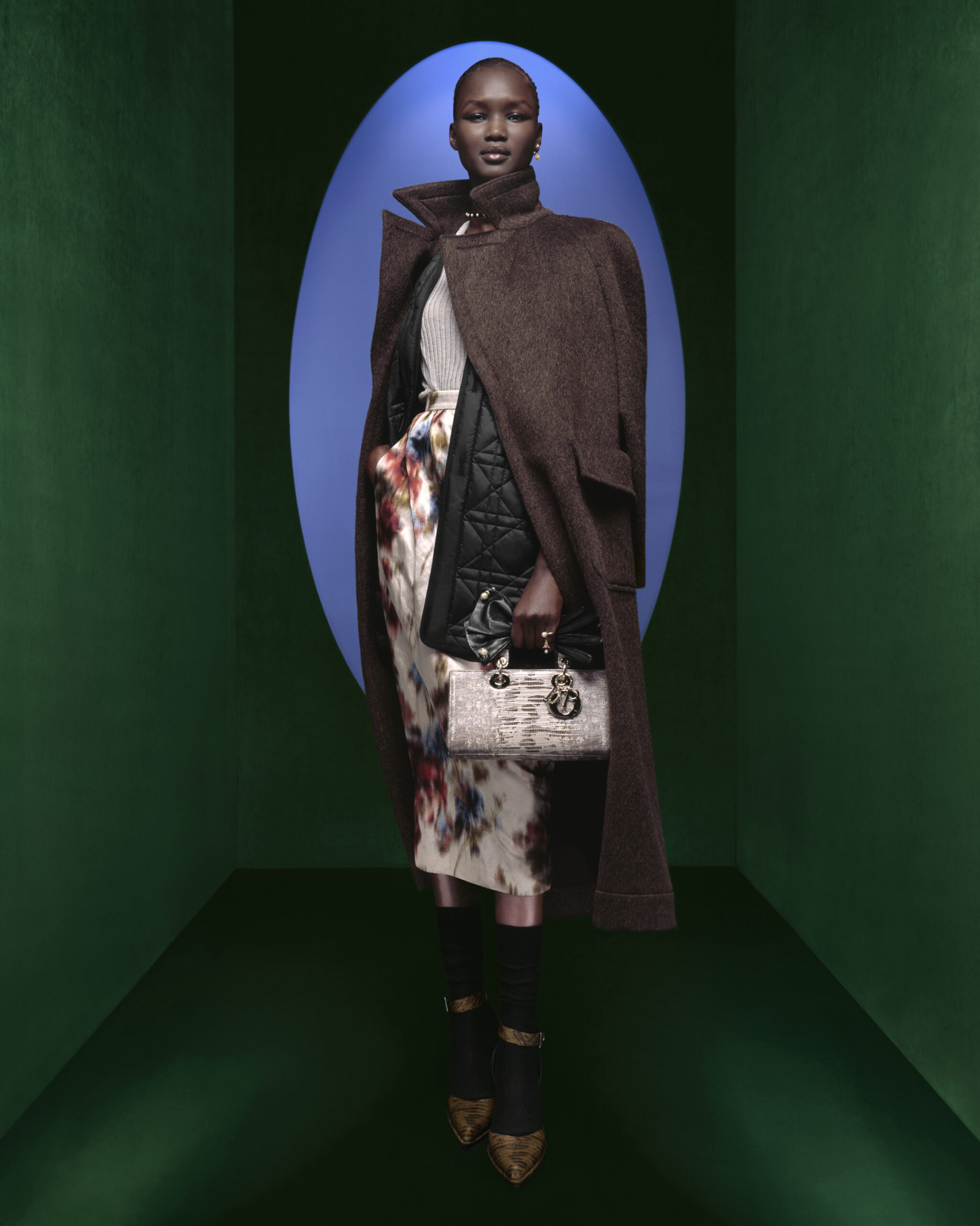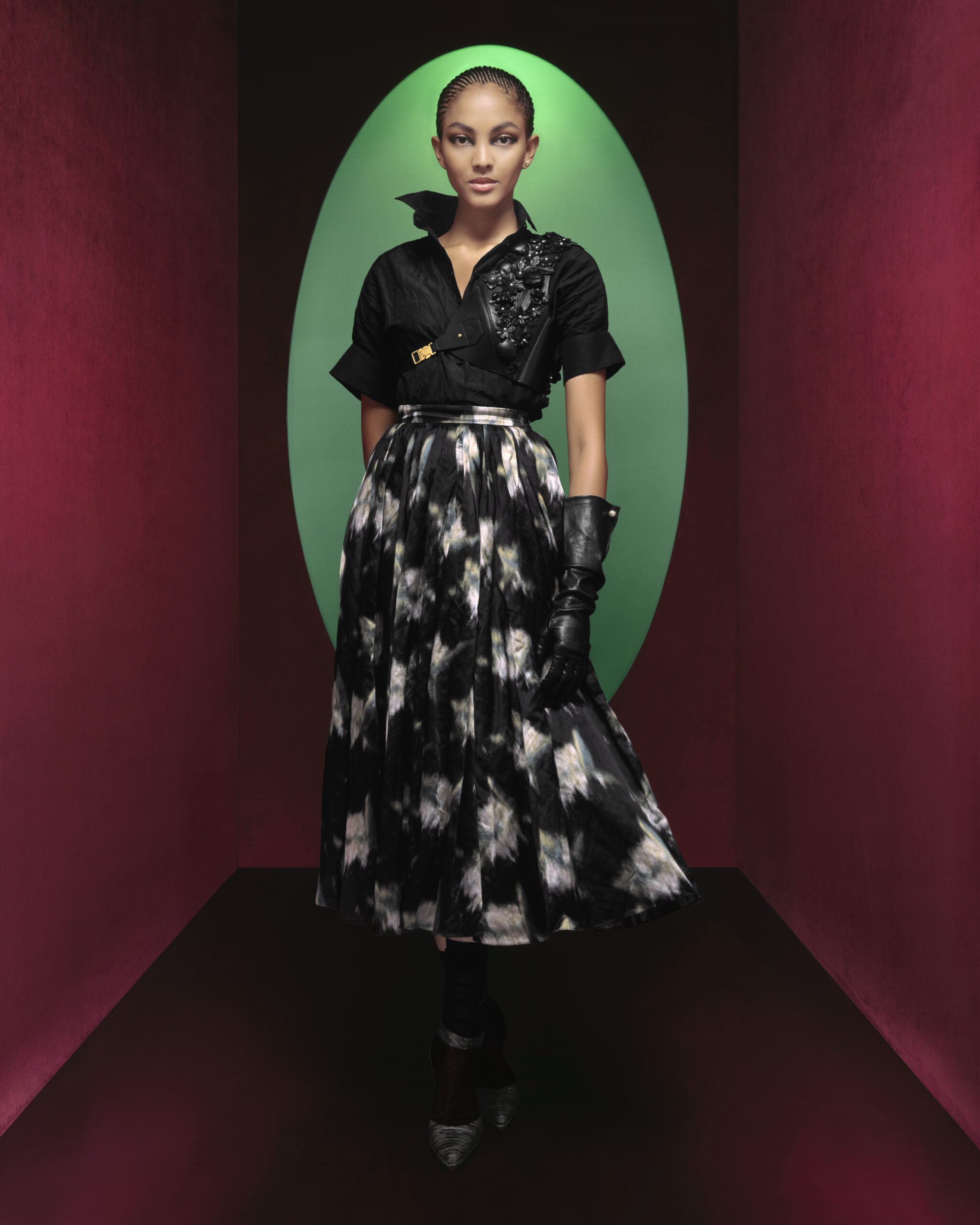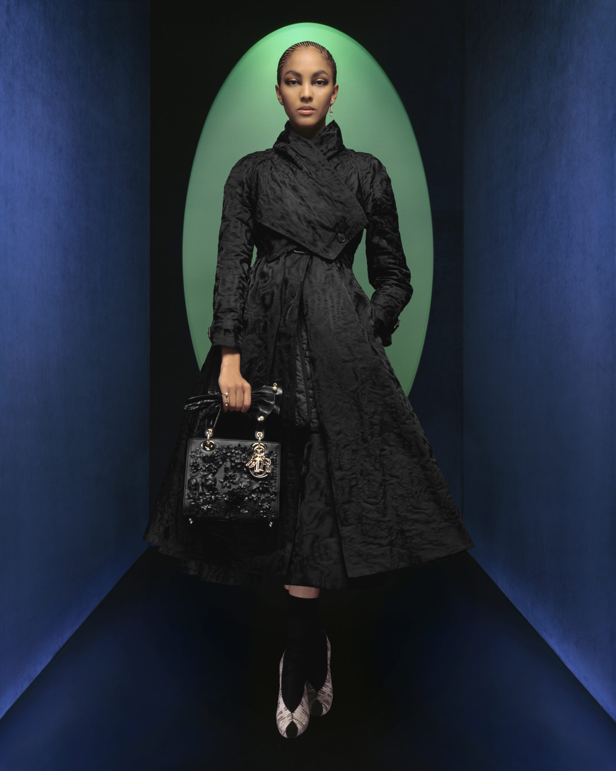 Maria Grazia Chiuri continues to explore the role and essence of clothing in its relationship to the body and fashion with the Dior ready-to-wear autumn-winter 2023-2024 line. Redrawing the founding shapes of the 1950s wardrobe, the Creative Director celebrates more than ever the history of Dior and Parisian elegance around three extraordinary personalities: Catherine Dior, Édith Piaf and Juliette Gréco. Iconic figures driven by a spirit of independence, audacity and freedom, all reflected in a unique campaign. A (re)reading of the Dior allure that comes to life through a series of shots by photographer Brigitte Niedermair*, exalting a reinvented, powerful, almost rebellious femininity. Between light and shadow, the decor is refined and graphic, with a dash of vivid colors echoing those subtly punctuating the collection – ruby, emerald, blue – which contrast with the shades of black magnifying the pieces. The looks tell the story of a symbolic encounter that combines precise reference to the archives and the desire for innovation so dear to the House. The models fuse past and future: leopard and houndstooth motifs – eternal Dior fundamentals – adorn coats as well as long skirts, while crushed fabrics structured with metallic threads sublimate the outfits, mirroring the constantly renewed inventiveness of the Ateliers.