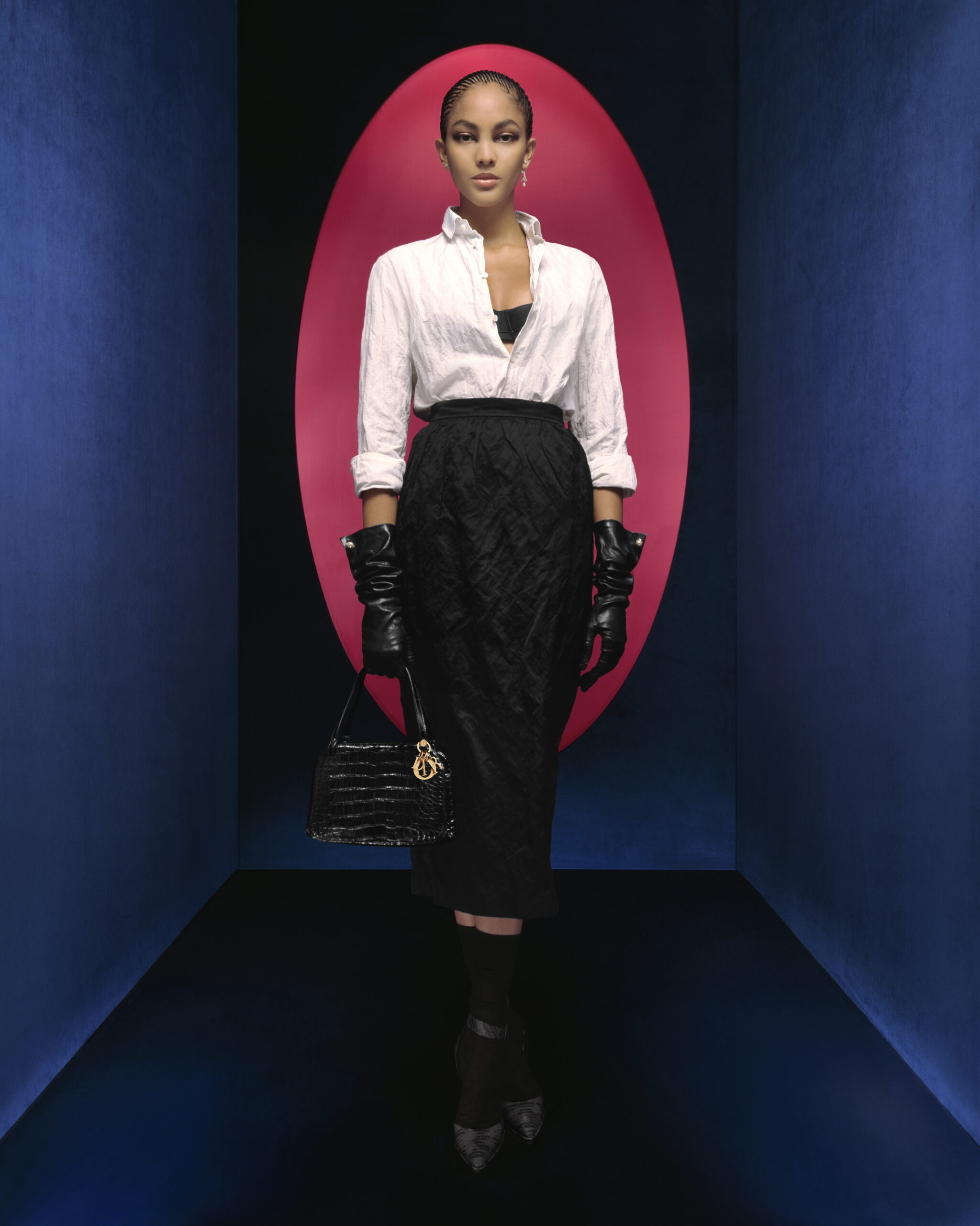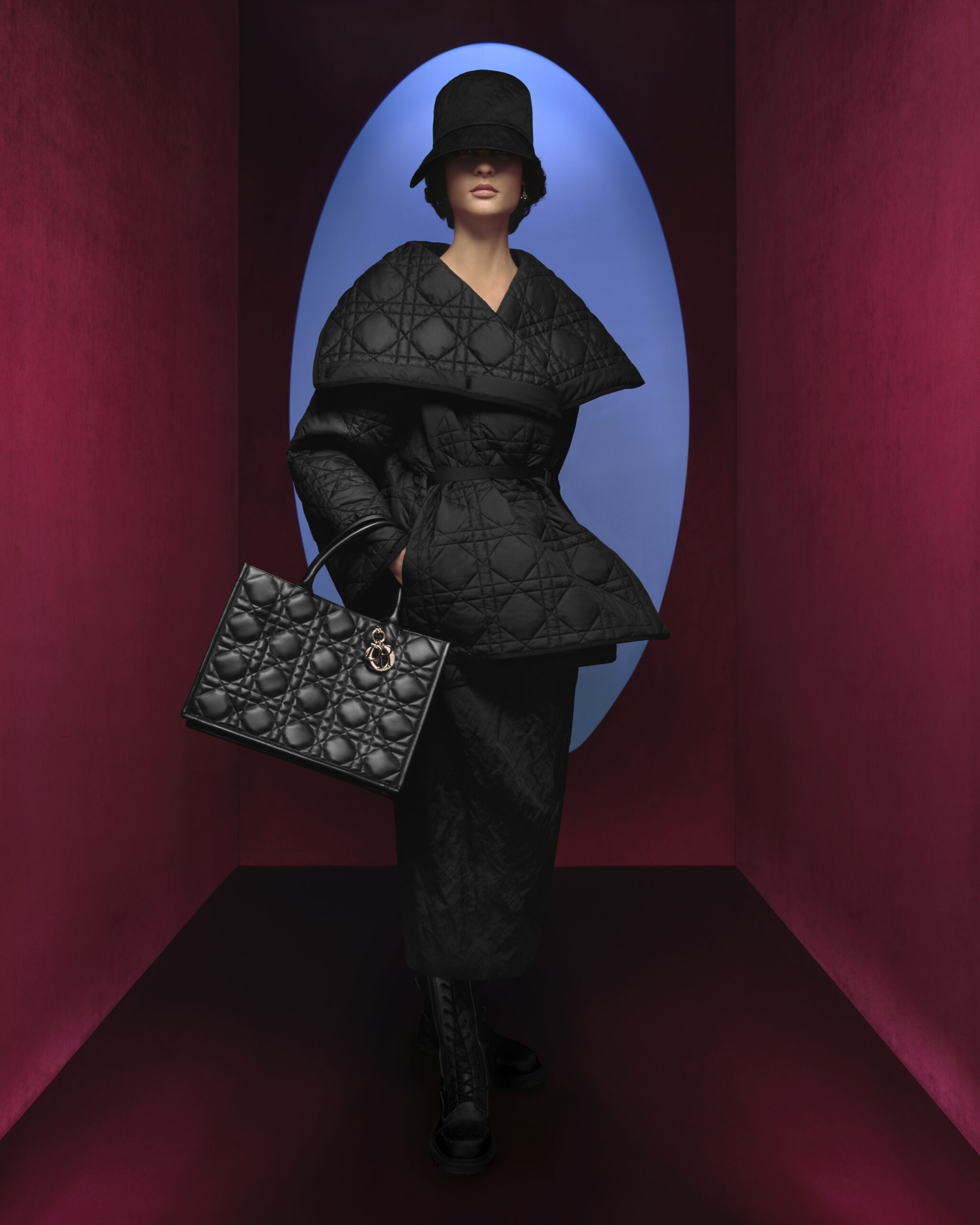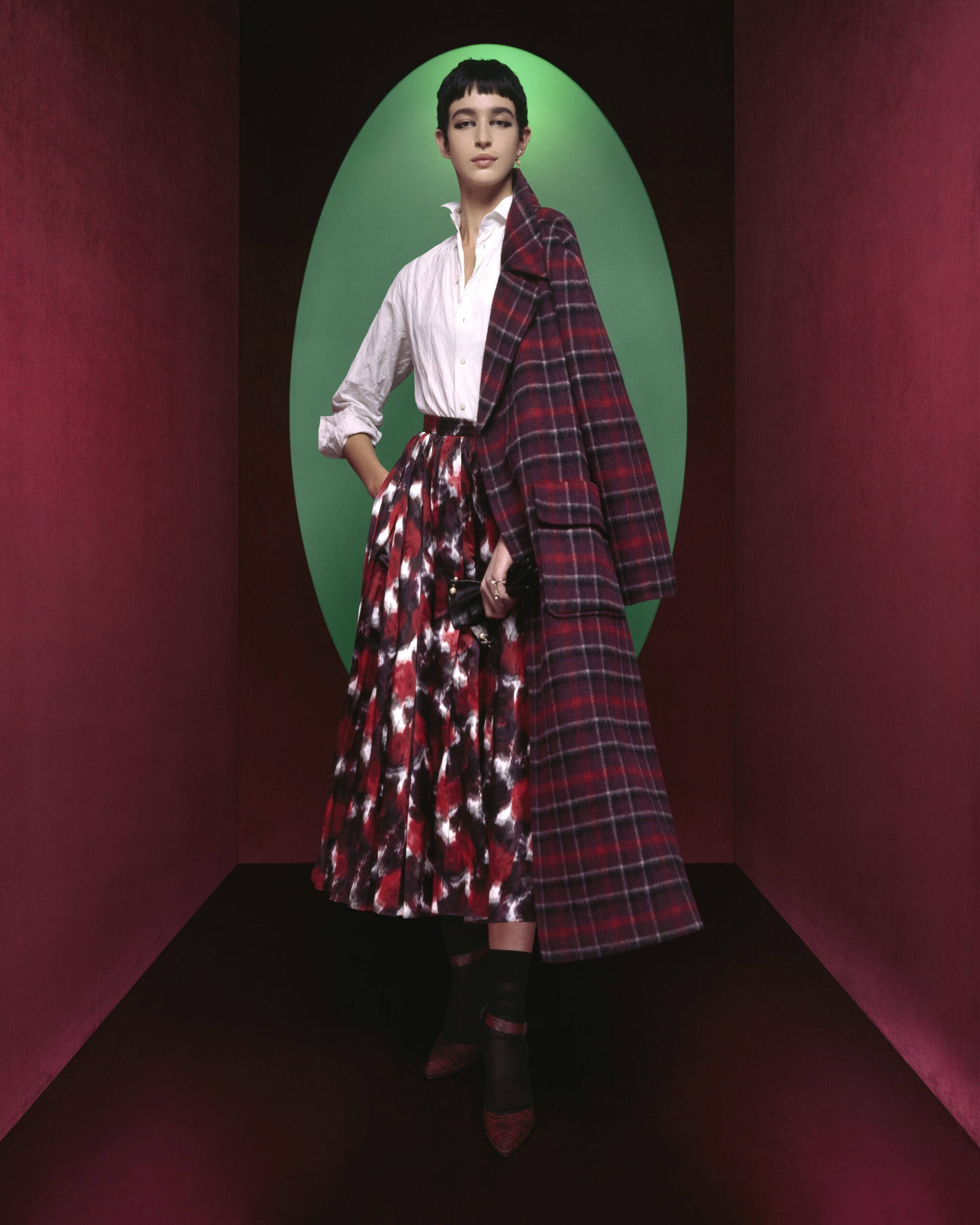 Maria Grazia Chiuri continue d’explorer, avec la ligne Dior prêt-à-porter automne-hiver 2023-2024, le rôle et l’essence du vêtement dans sa relation au(x) corps et à la mode. Redessinant les contours fondateurs du vestiaire des années 1950, la Directrice Artistique célèbre plus que jamais l’histoire de Dior et l’élégance parisienne autour de trois personnalités extraordinaires : Catherine Dior, Édith Piaf et Juliette Gréco. Des figures iconiques animées par un esprit d’indépendance, un élan d’audace et de liberté se lisant au sein d’une campagne unique. Une (re)lecture de l’allure Dior qui prend vie au gré d’une série de clichés capturés par la photographe Brigitte Niedermair*, exaltant une féminité réinventée, puissante, presque rebelle. Entre ombre et lumière, le décor, épuré et graphique, s’habille d’un jeu de couleurs vives faisant écho à celles ponctuant subtilement la collection – rubis, émeraude, bleu – qui contrastent avec les déclinaisons de noir magnifiant les créations. Les looks racontent cette rencontre symbolique entre un travail précis de référence aux archives et le désir d’innovation cher à la Maison. Les modèles allient passé et futur : les motifs léopard et pied-de-poule – codes Dior éternels –, parent des manteaux, mais aussi des jupes longues, tandis que des tissus froissés, structurés de fils métalliques, subliment les tenues, reflétant ainsi l’inventivité sans cesse renouvelée des Ateliers.