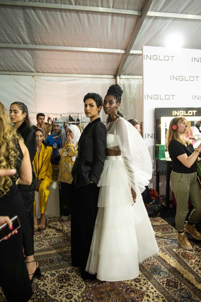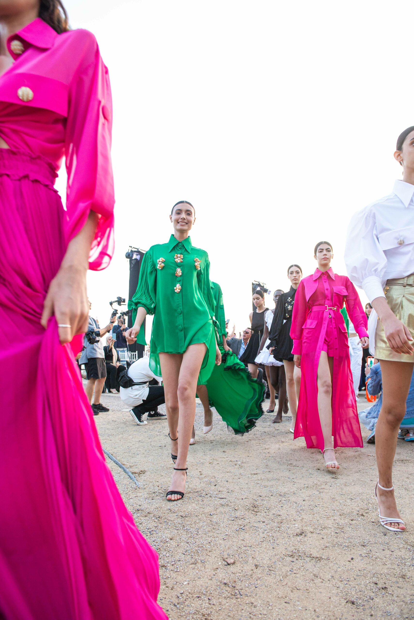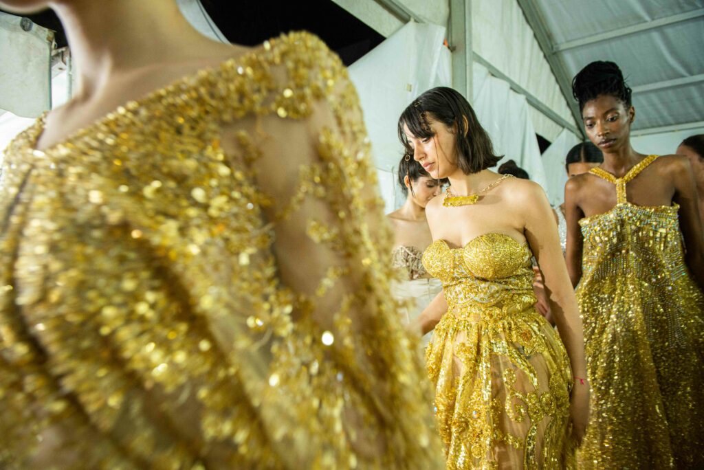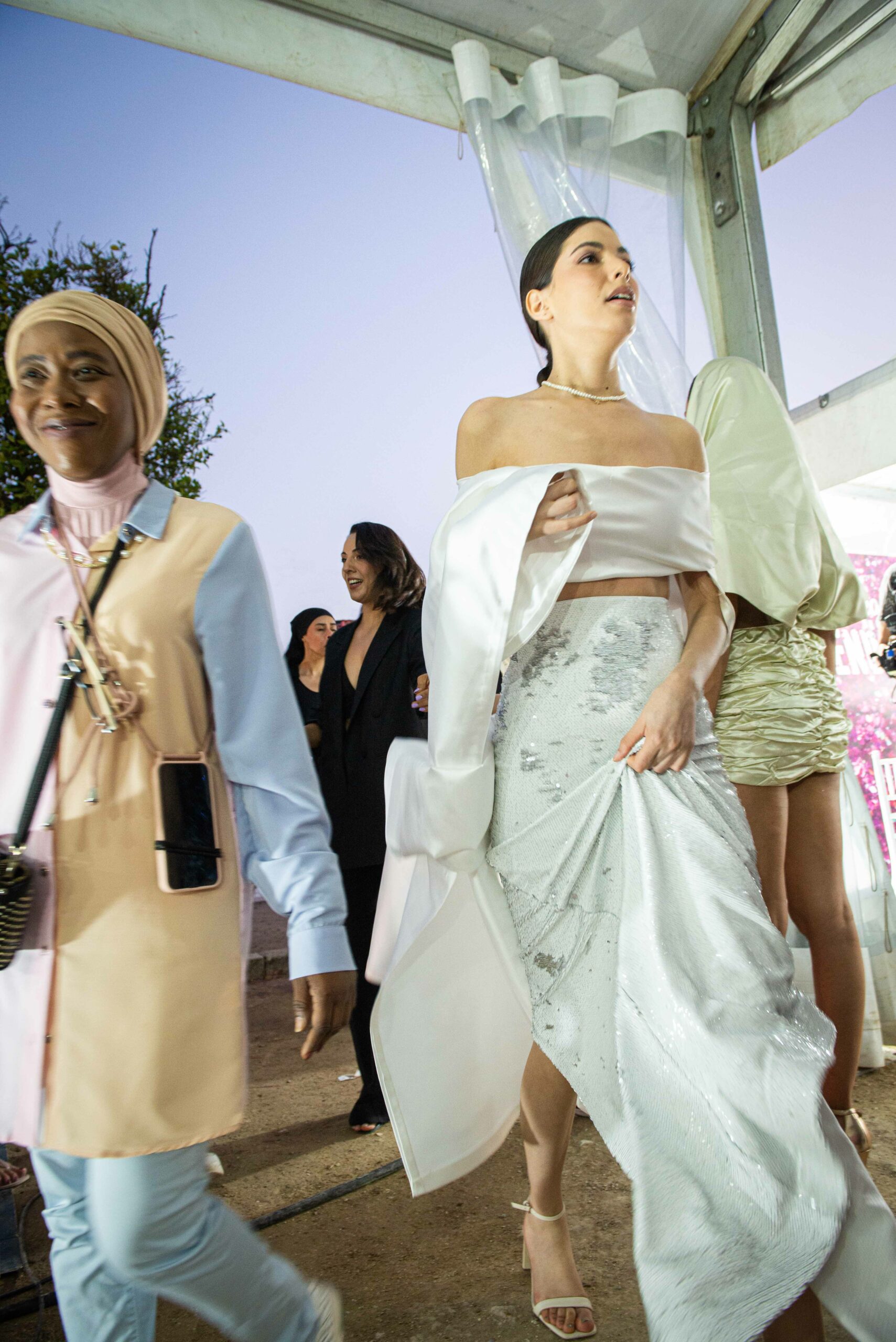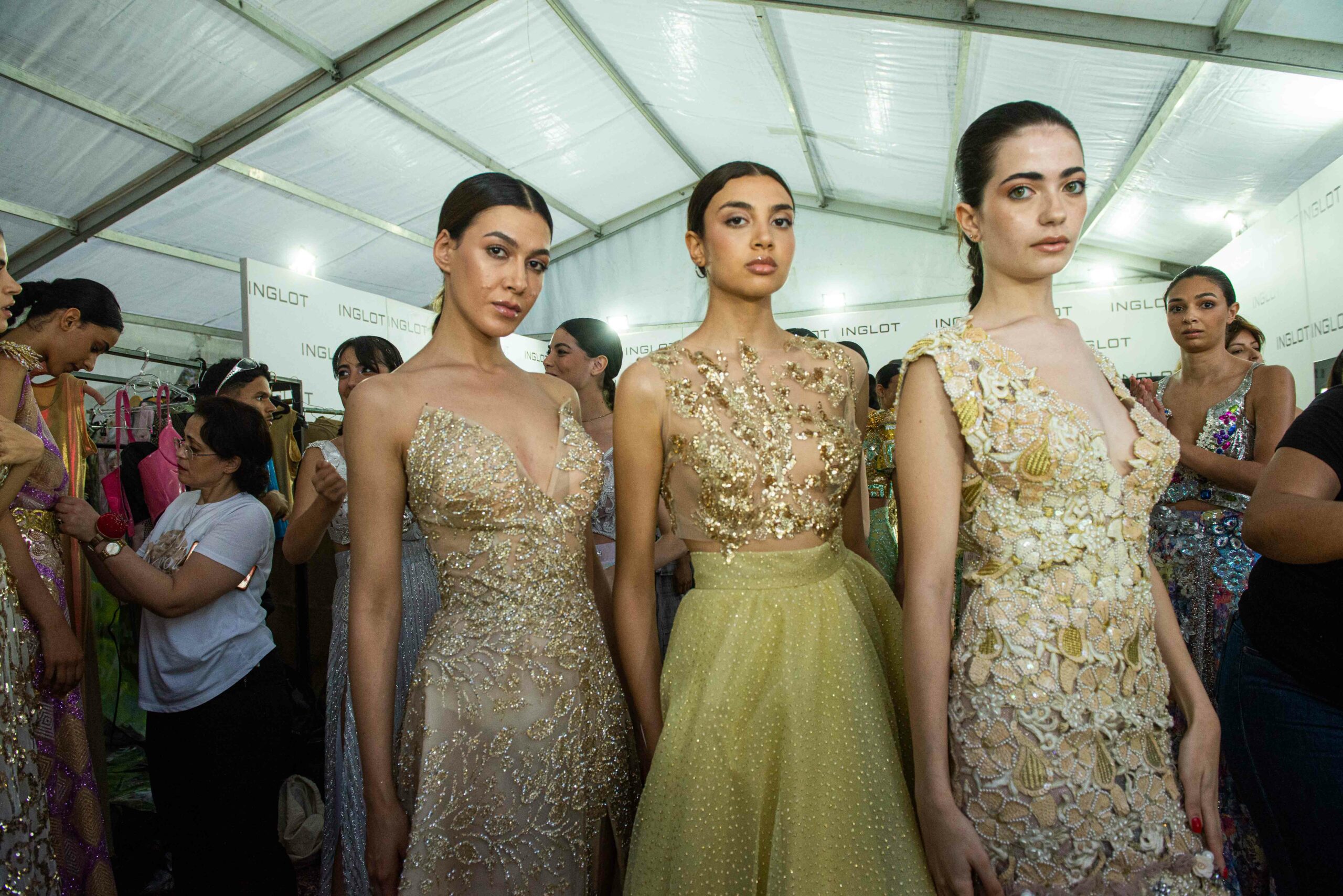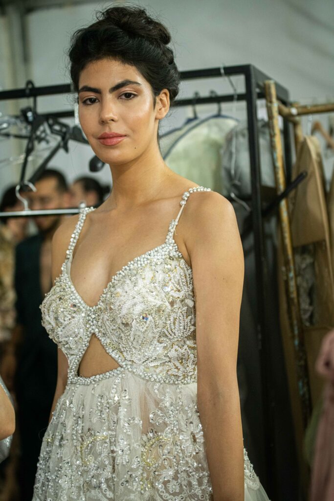 Cependant, ce qui diffère de ces dernières années, après deux ans de présence dans le désert de Tozeur, est l’influence orientale. Cela est particulièrement visible dans les premiers rangs, largement occupés par des influenceuses ou des VIP qui renouvellent le genre en recourant à une esthétique influencée par le modèle libanais.