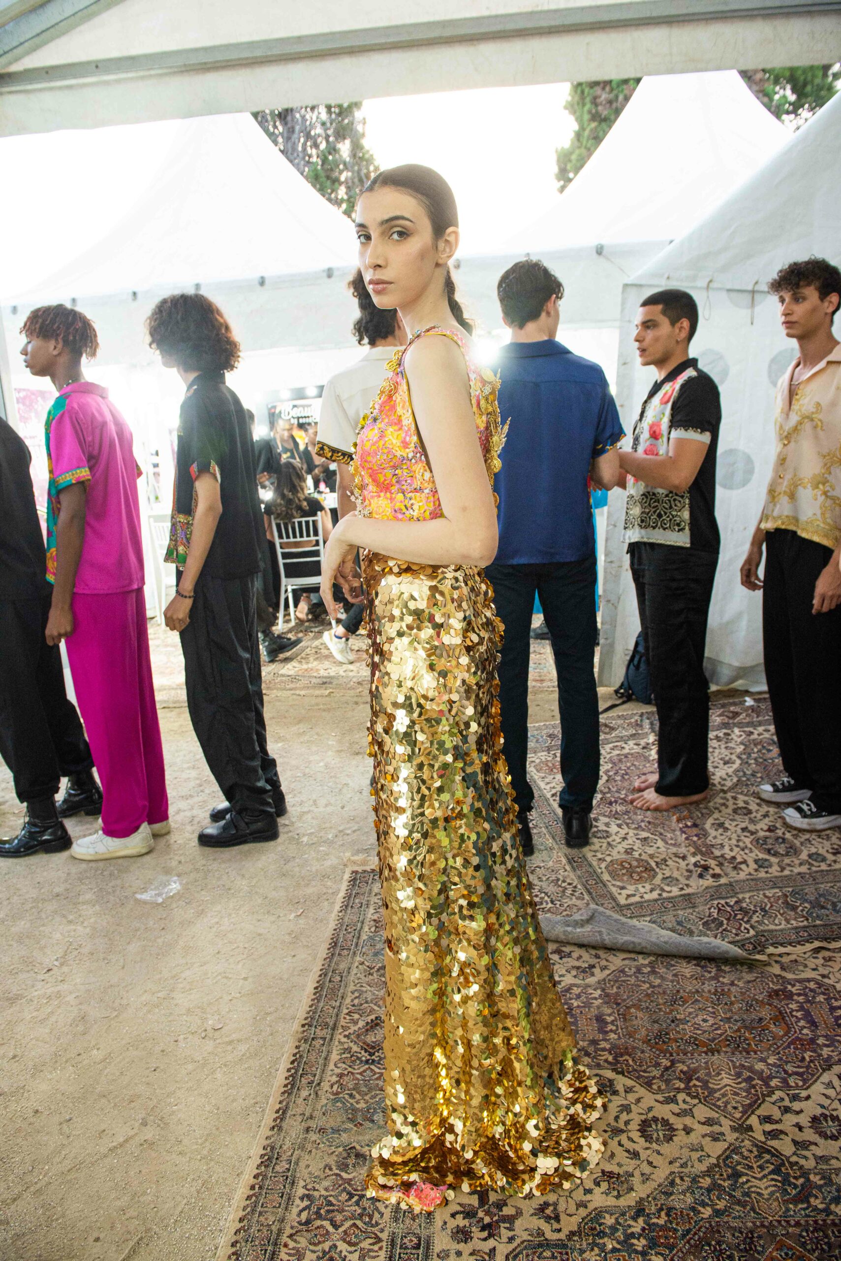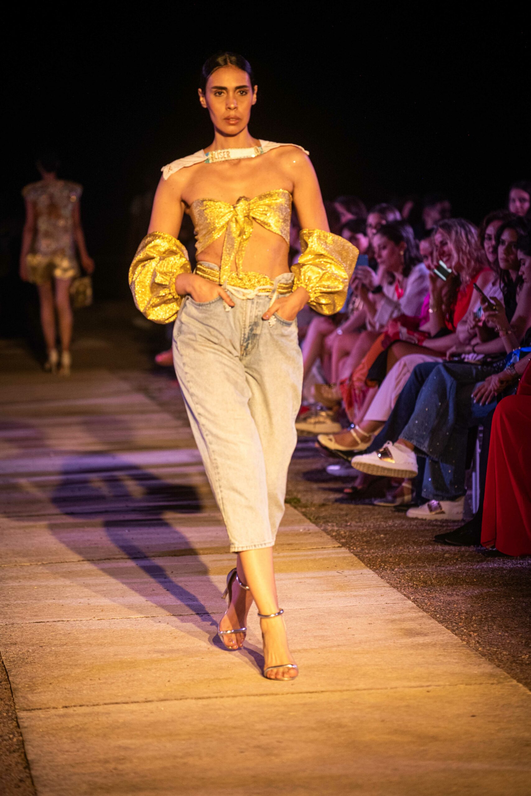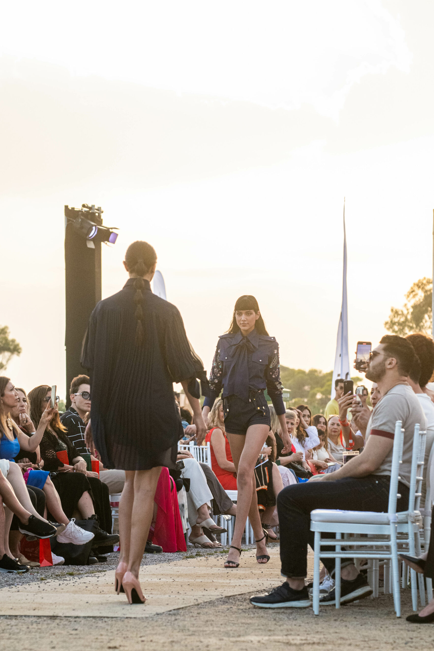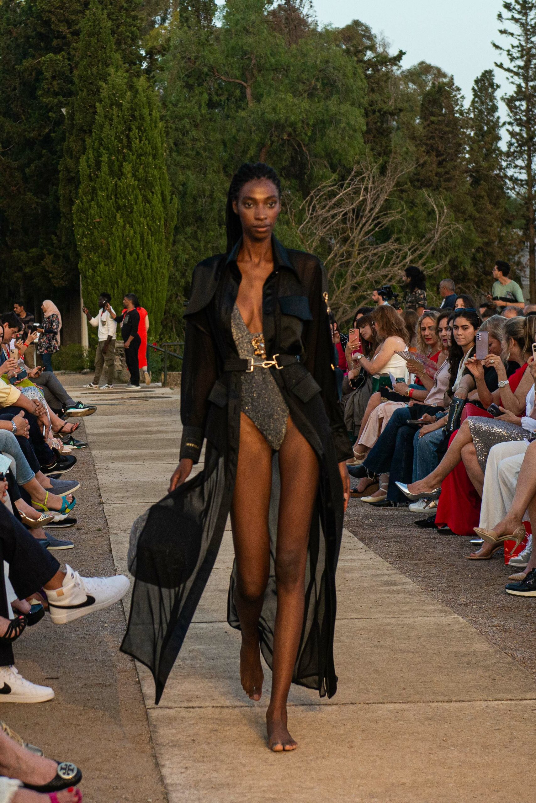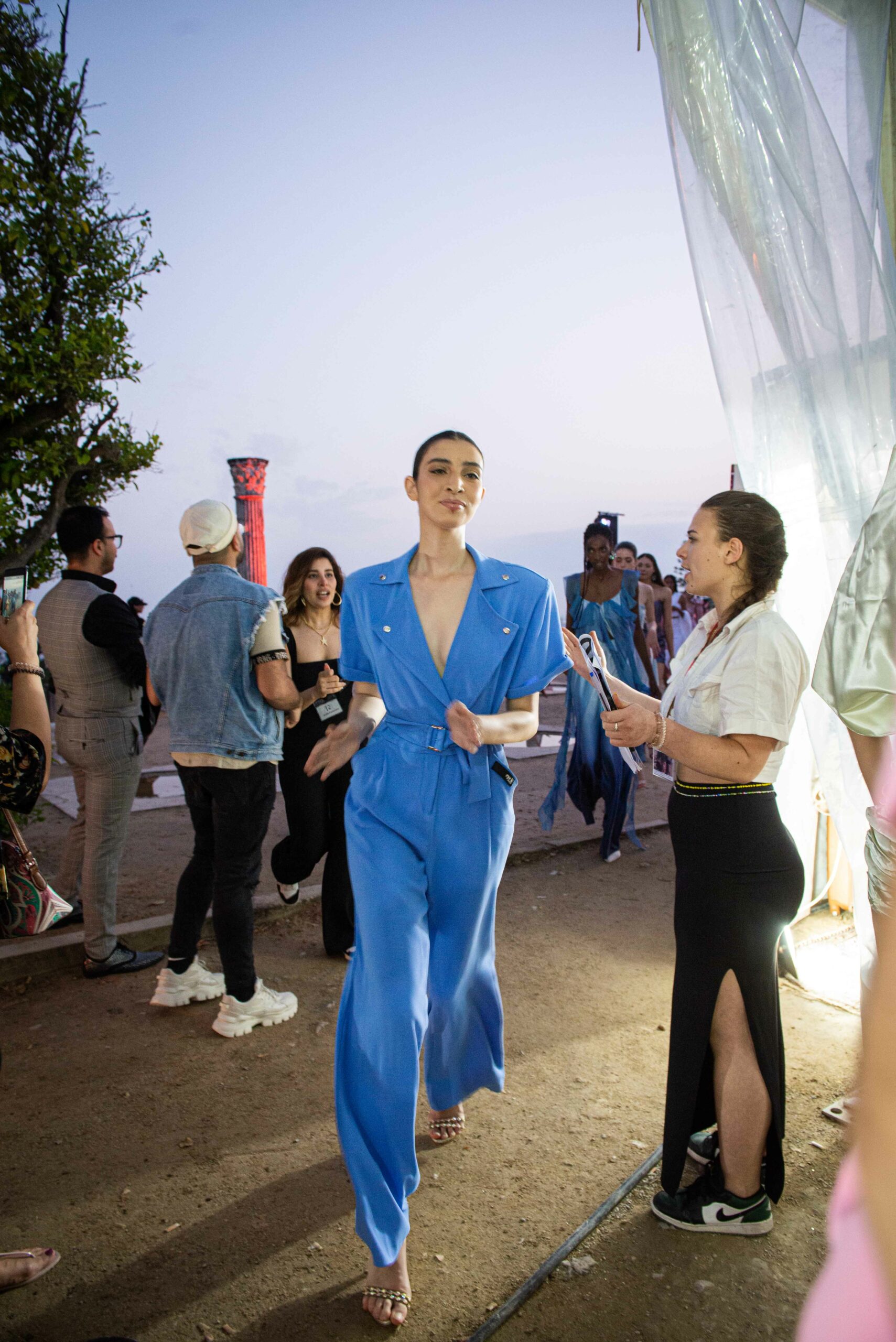 Cependant, ce qui diffère de ces dernières années, après deux ans de présence dans le désert de Tozeur, est l’influence orientale. Cela est particulièrement visible dans les premiers rangs, largement occupés par des influenceuses ou des VIP qui renouvellent le genre en recourant à une esthétique influencée par le modèle libanais.