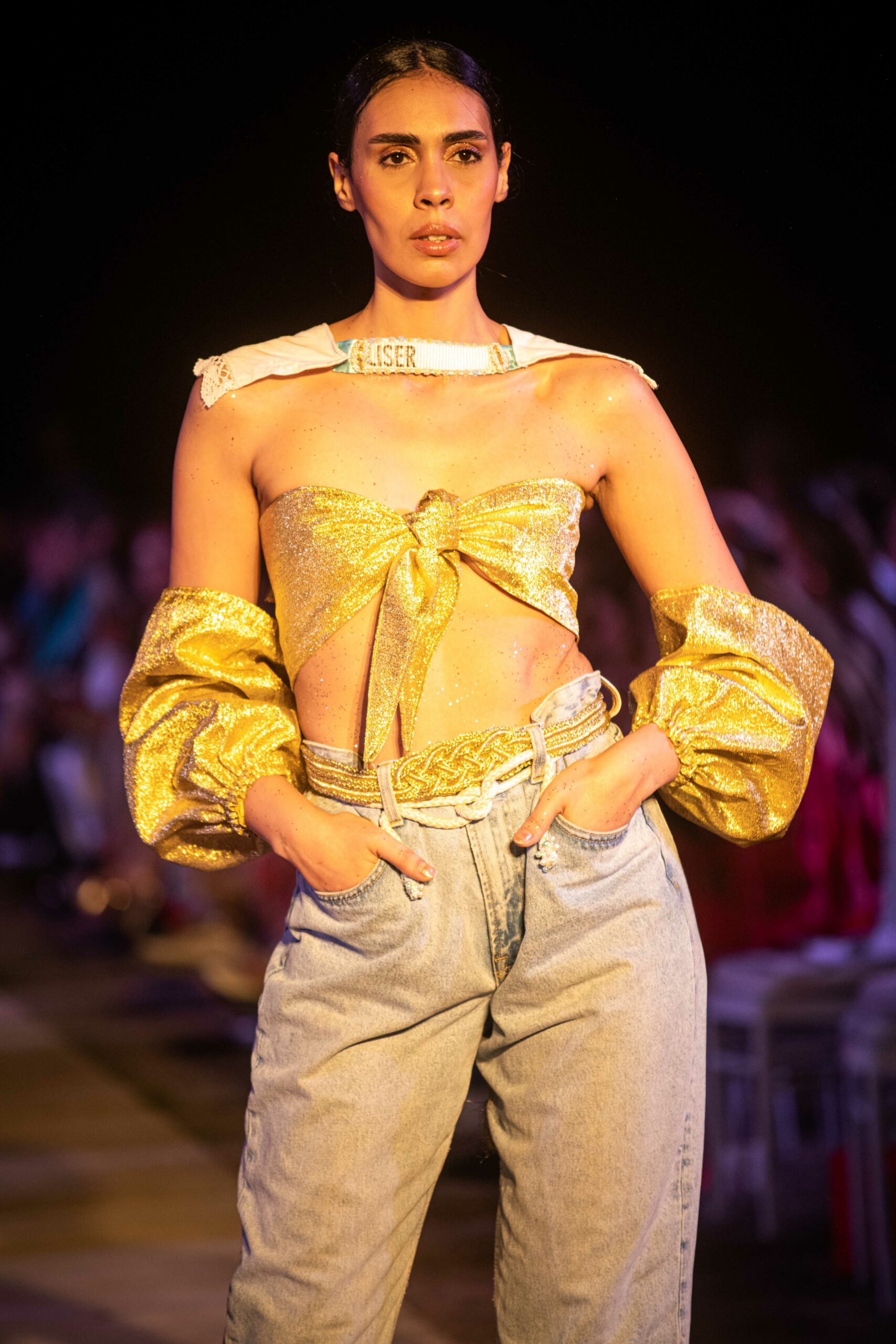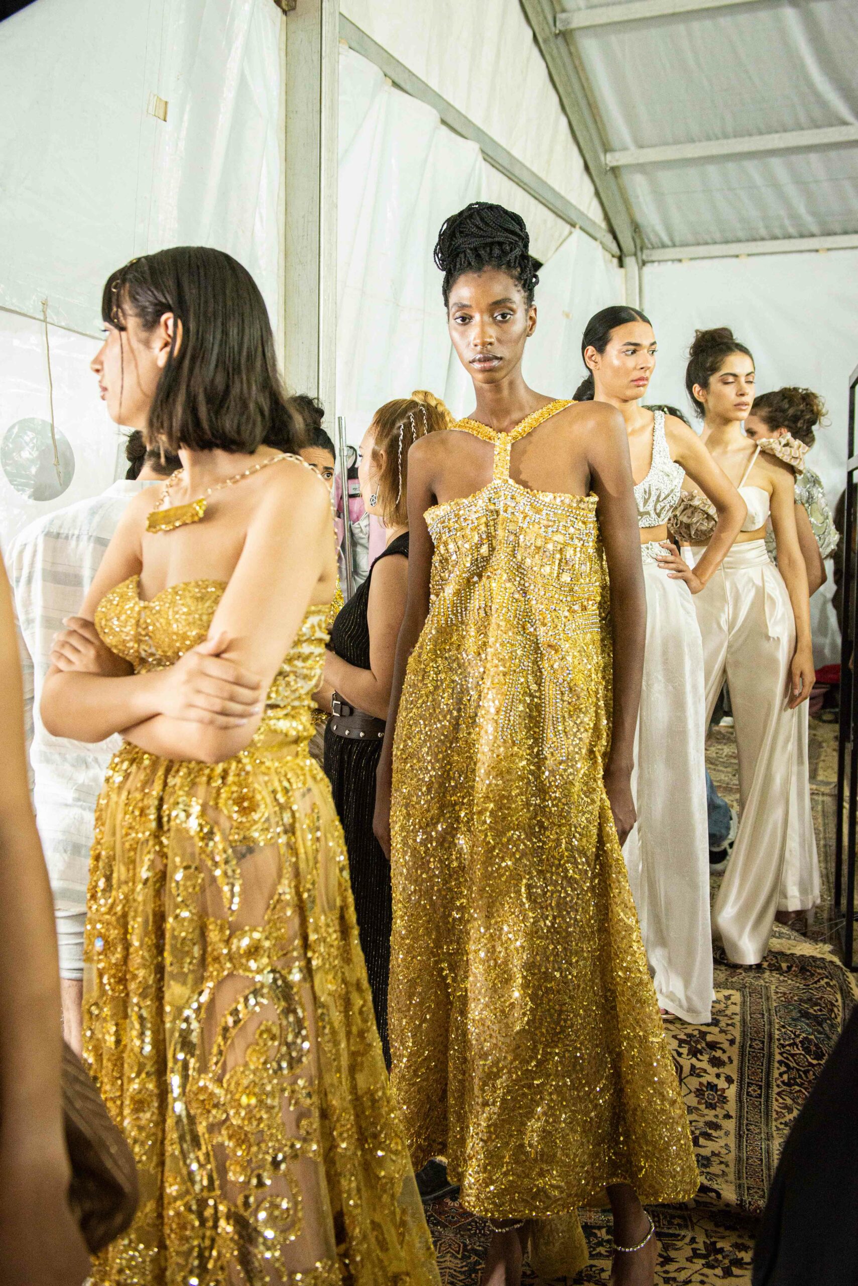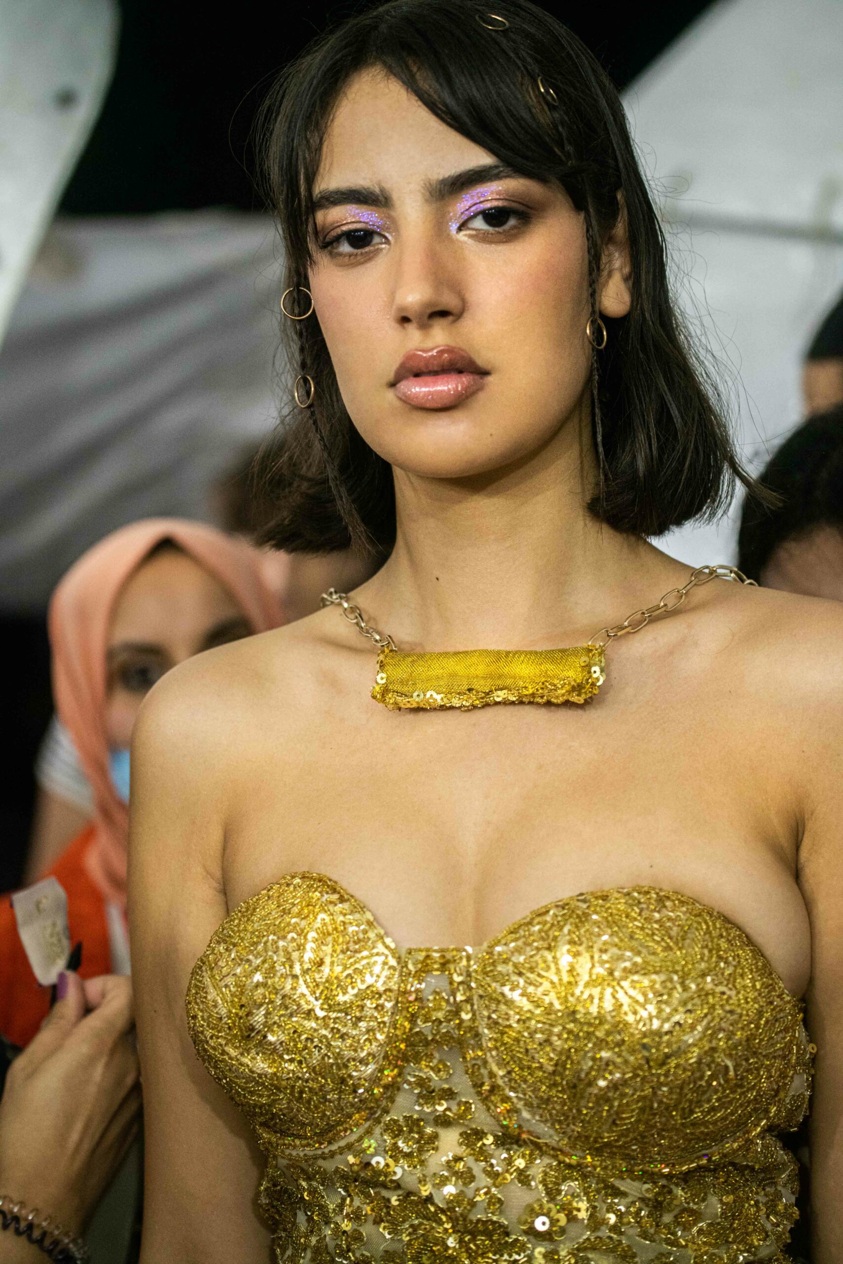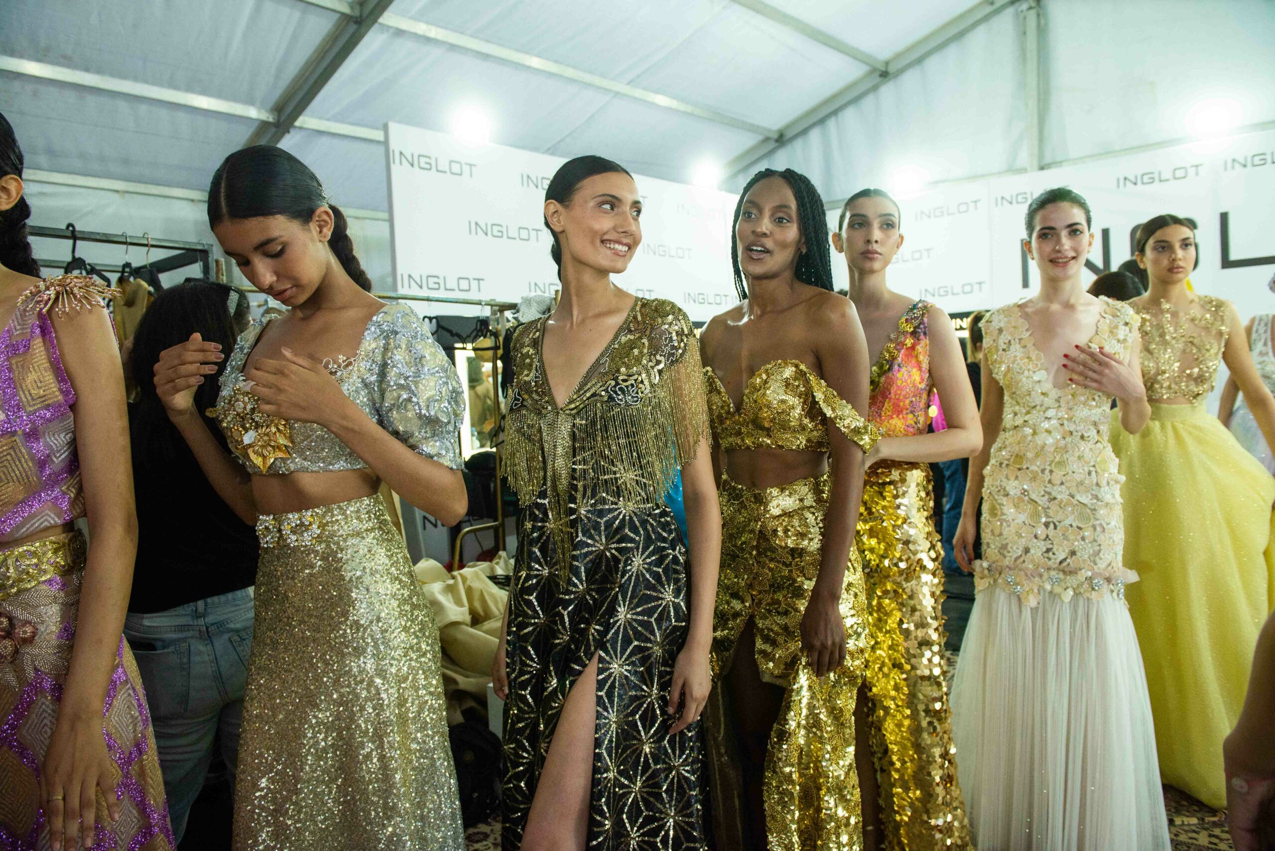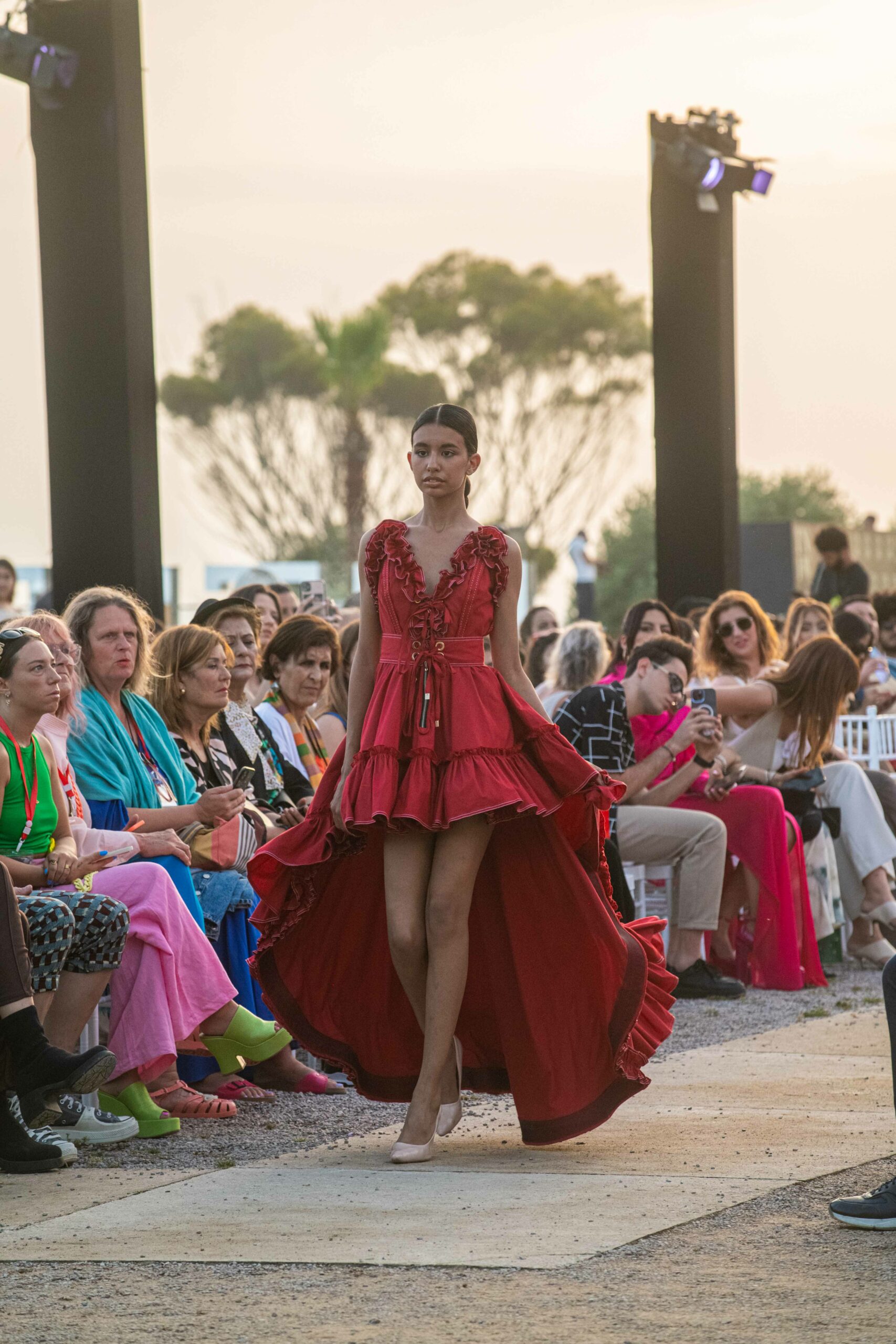 Cependant, ce qui diffère de ces dernières années, après deux ans de présence dans le désert de Tozeur, est l’influence orientale. Cela est particulièrement visible dans les premiers rangs, largement occupés par des influenceuses ou des VIP qui renouvellent le genre en recourant à une esthétique influencée par le modèle libanais.