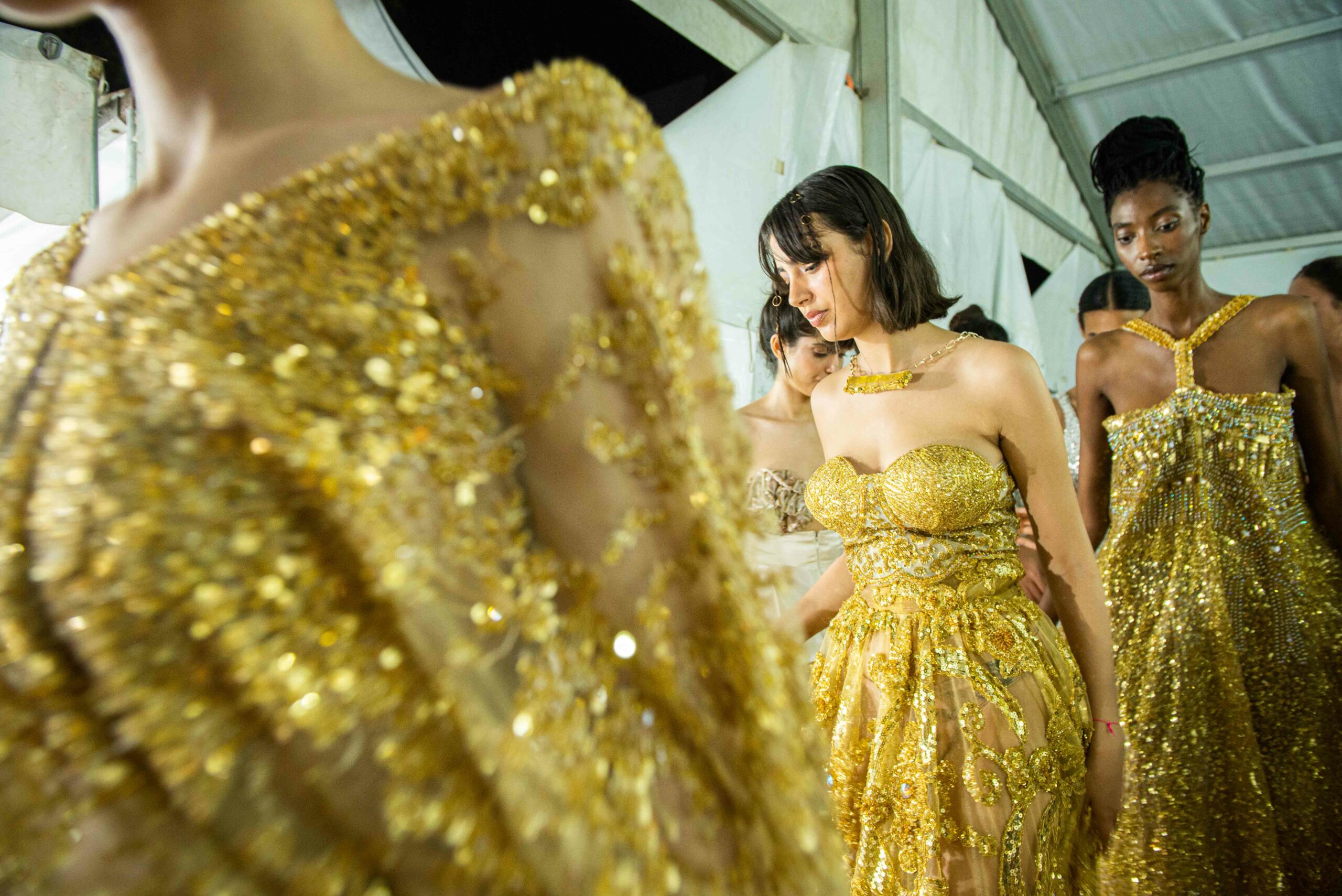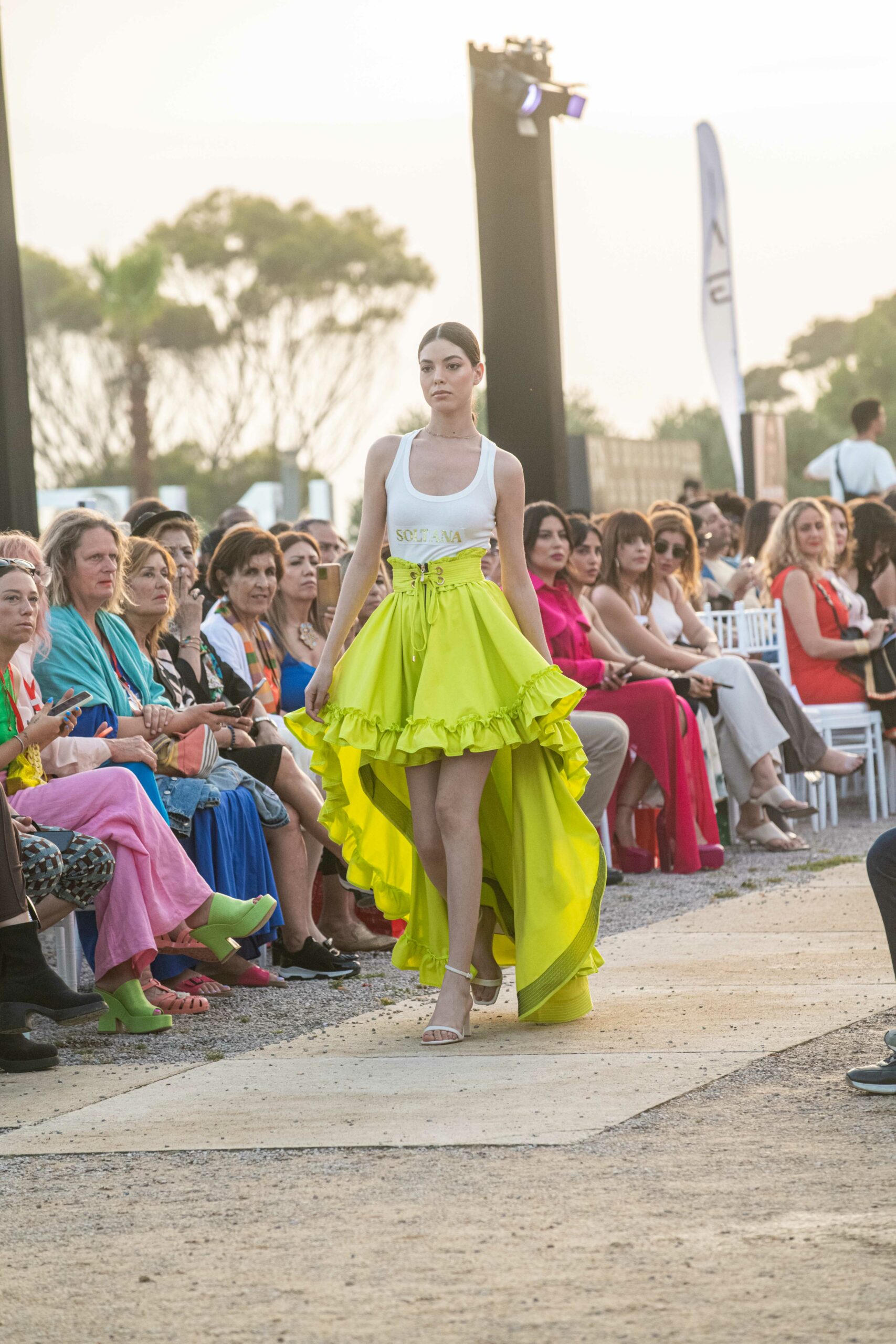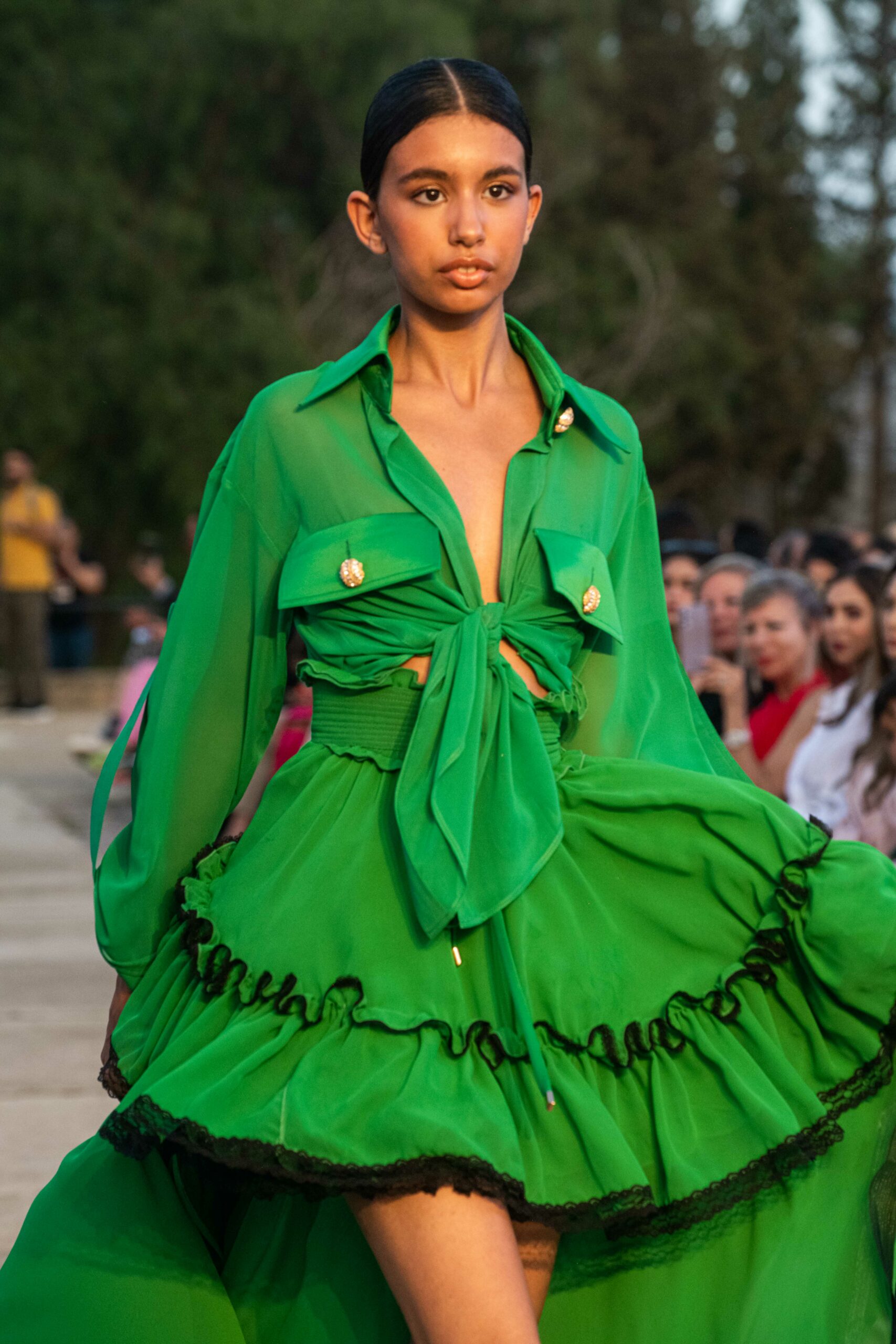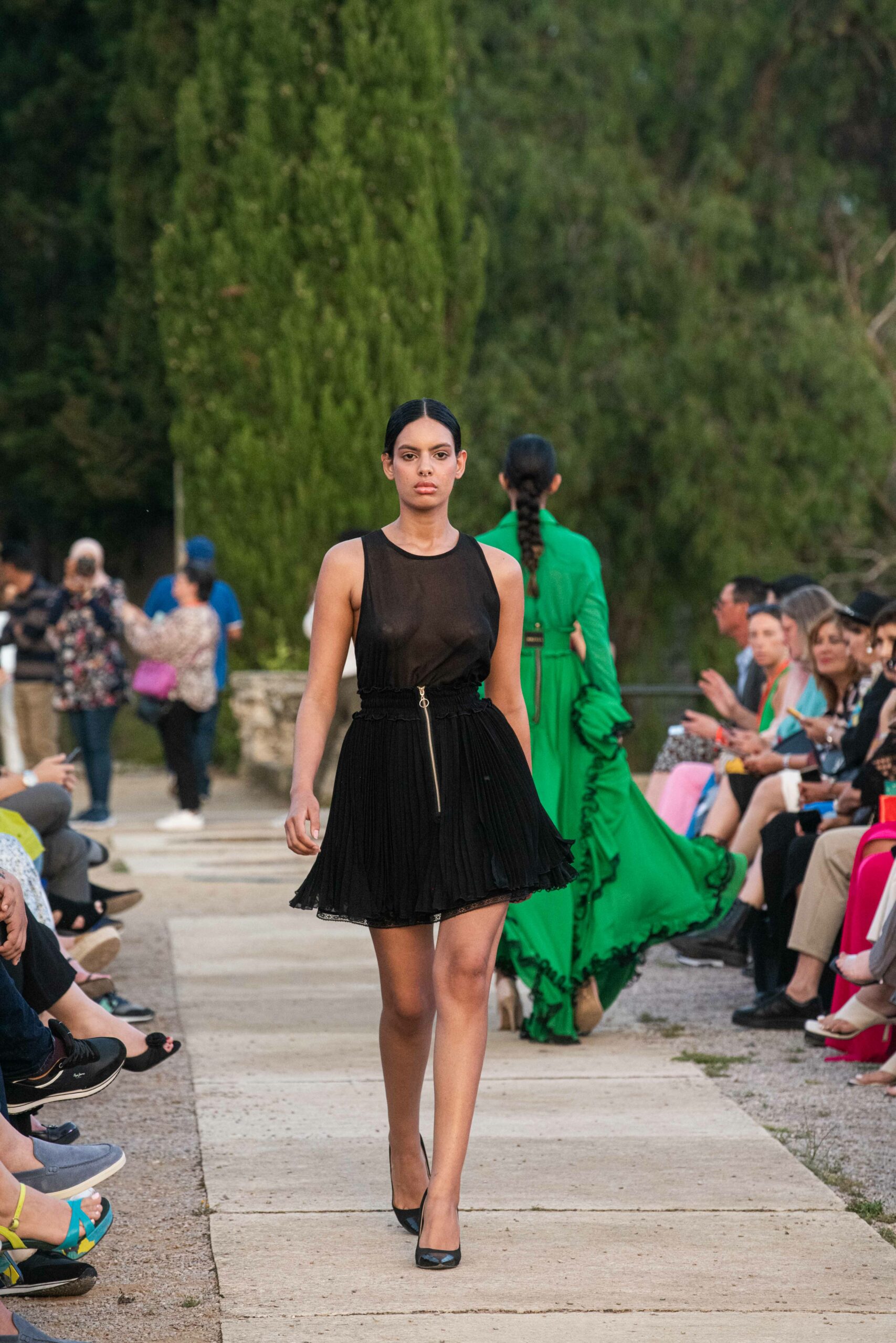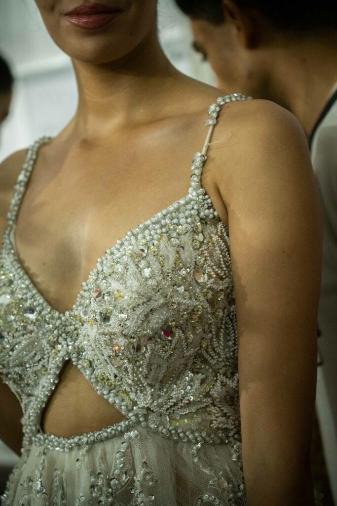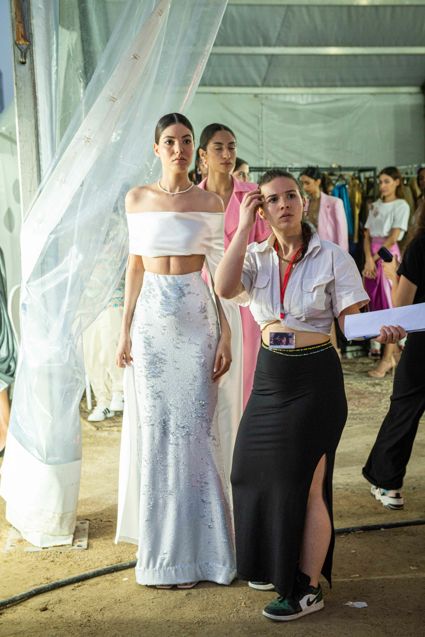 Cependant, ce qui diffère de ces dernières années, après deux ans de présence dans le désert de Tozeur, est l’influence orientale. Cela est particulièrement visible dans les premiers rangs, largement occupés par des influenceuses ou des VIP qui renouvellent le genre en recourant à une esthétique influencée par le modèle libanais.