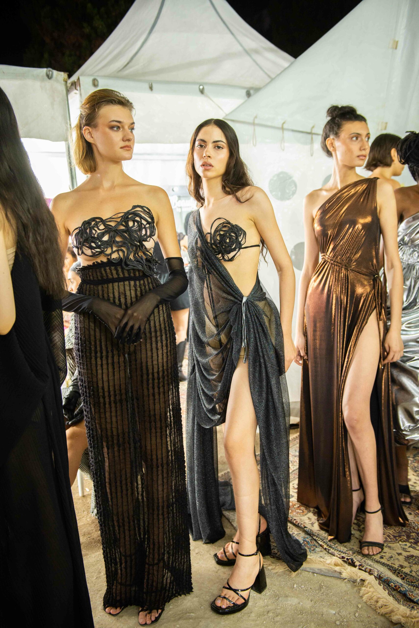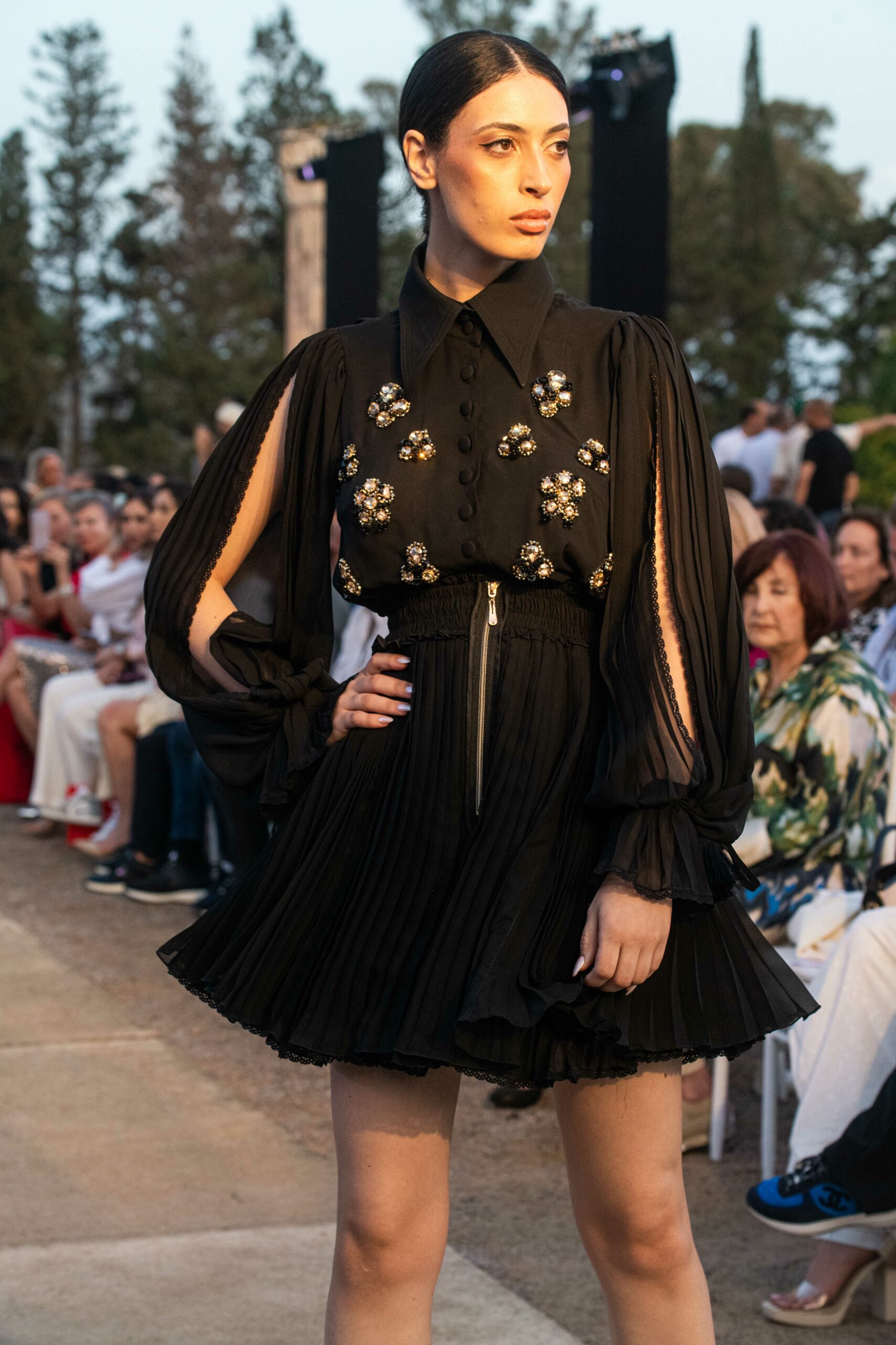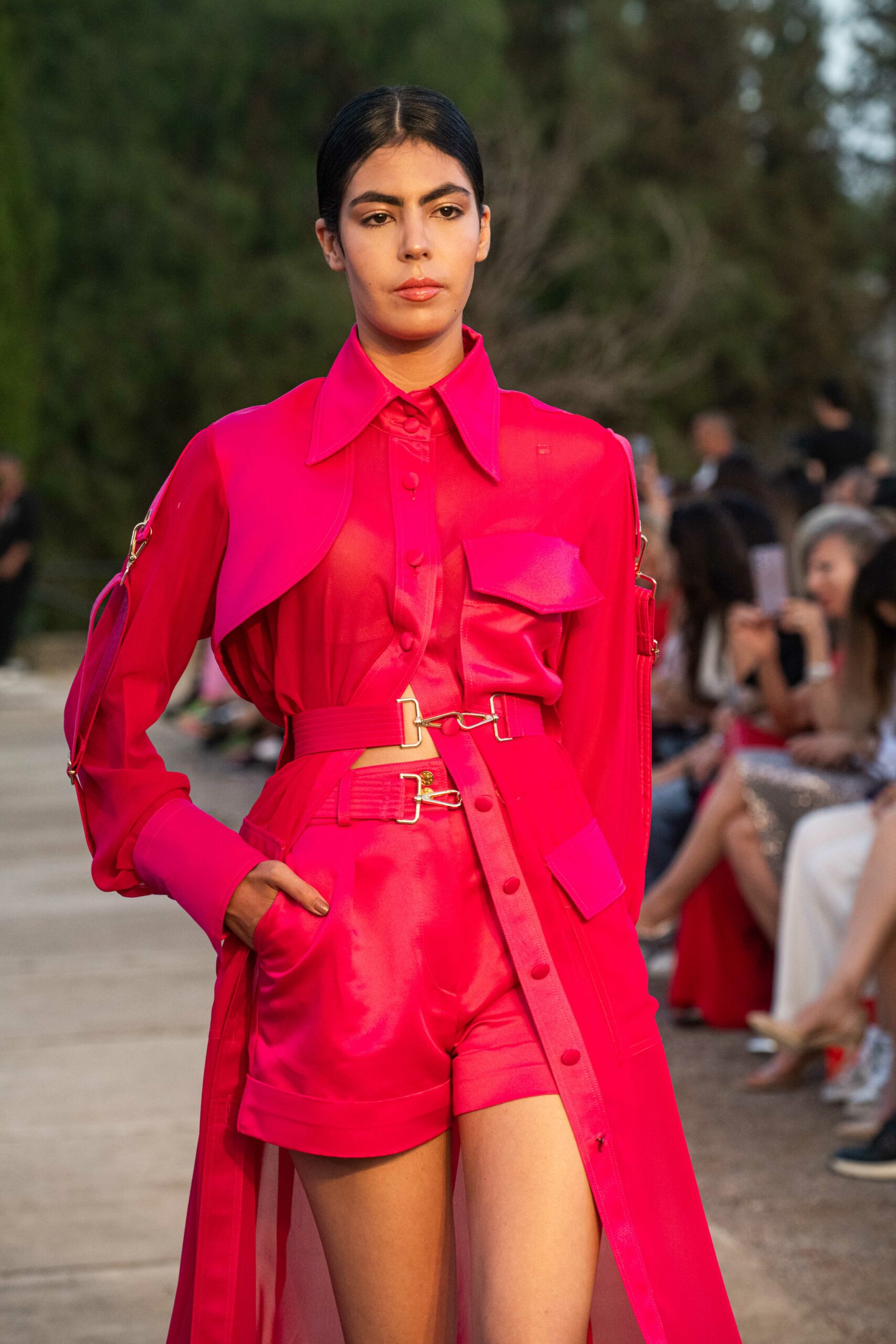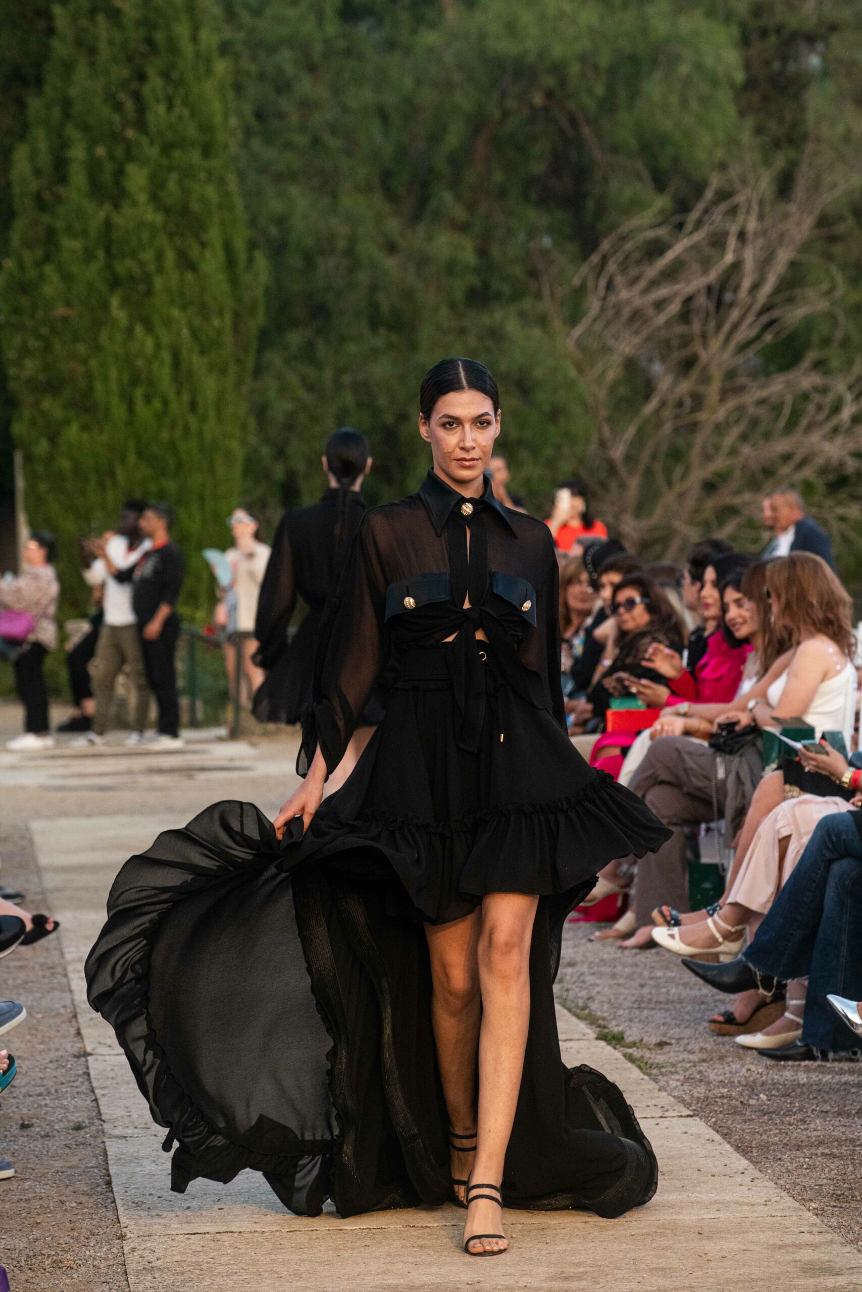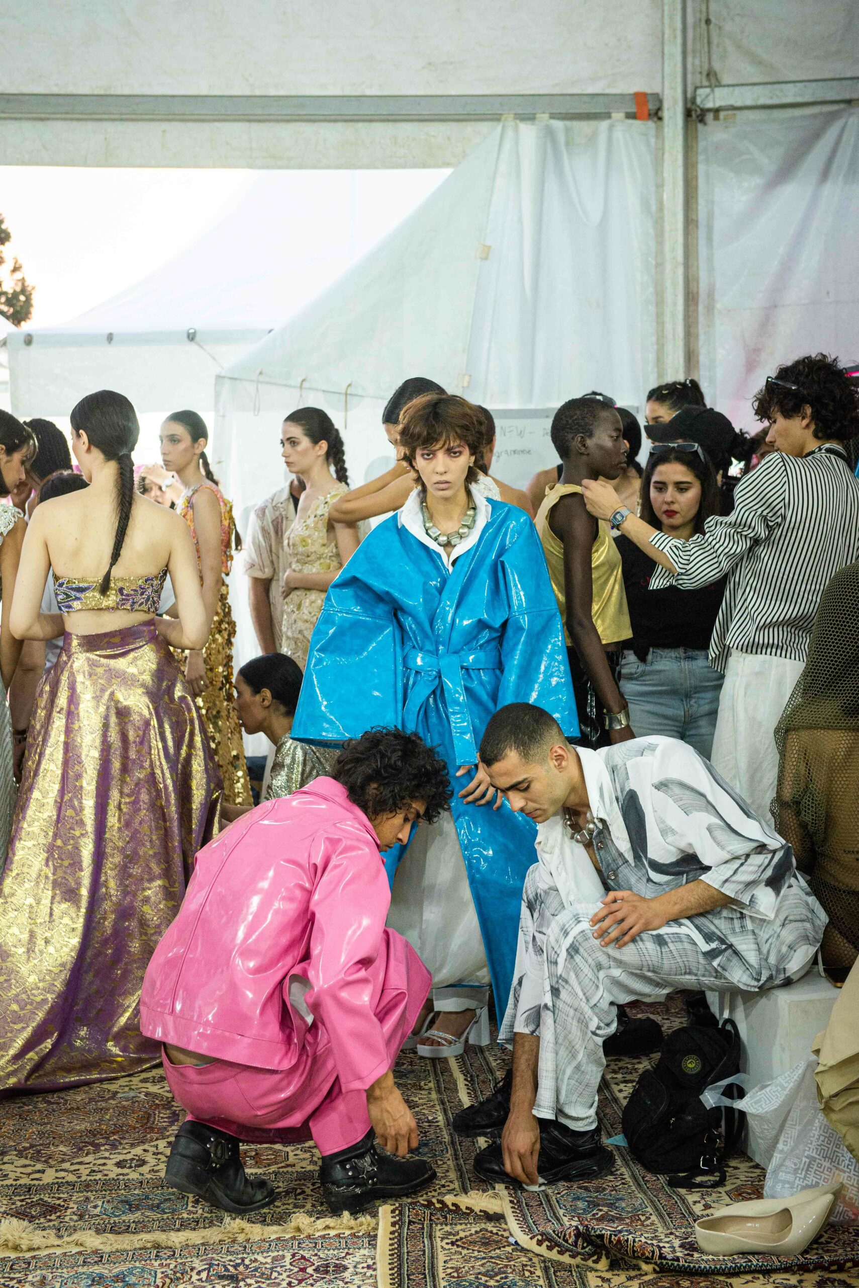 Cependant, ce qui diffère de ces dernières années, après deux ans de présence dans le désert de Tozeur, est l’influence orientale. Cela est particulièrement visible dans les premiers rangs, largement occupés par des influenceuses ou des VIP qui renouvellent le genre en recourant à une esthétique influencée par le modèle libanais.
