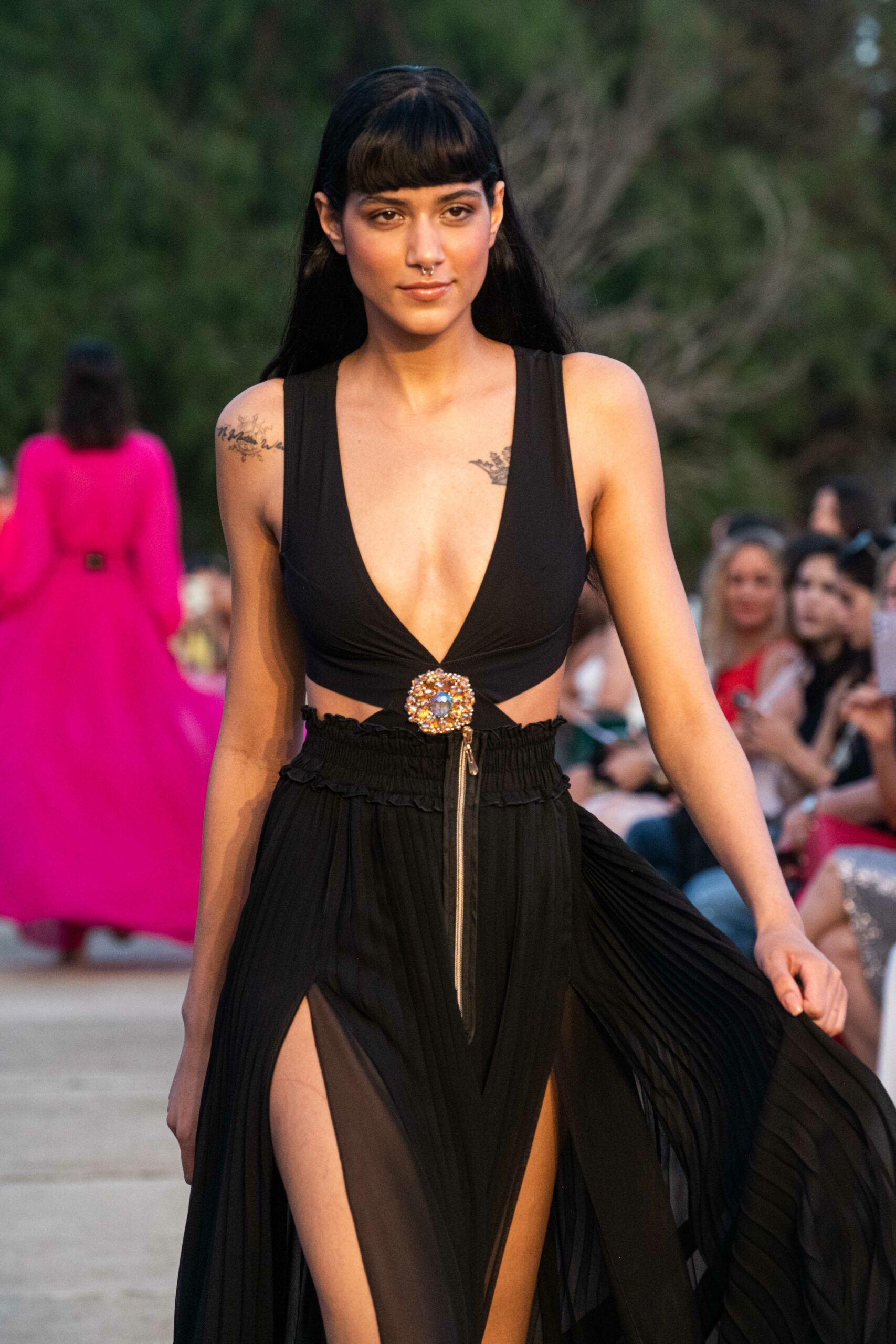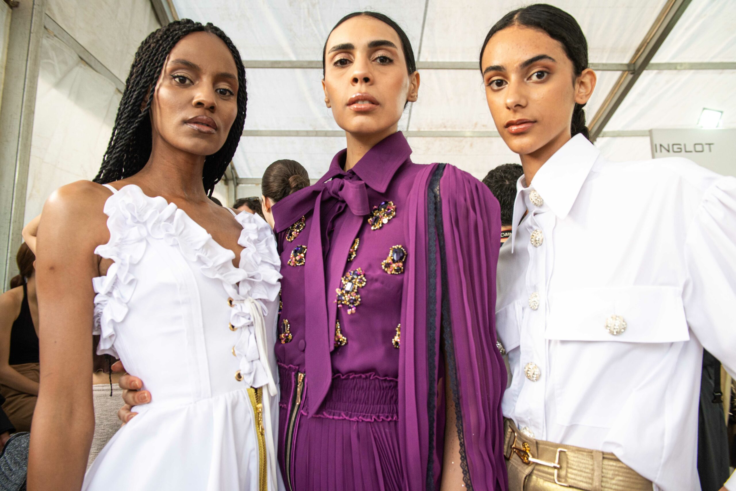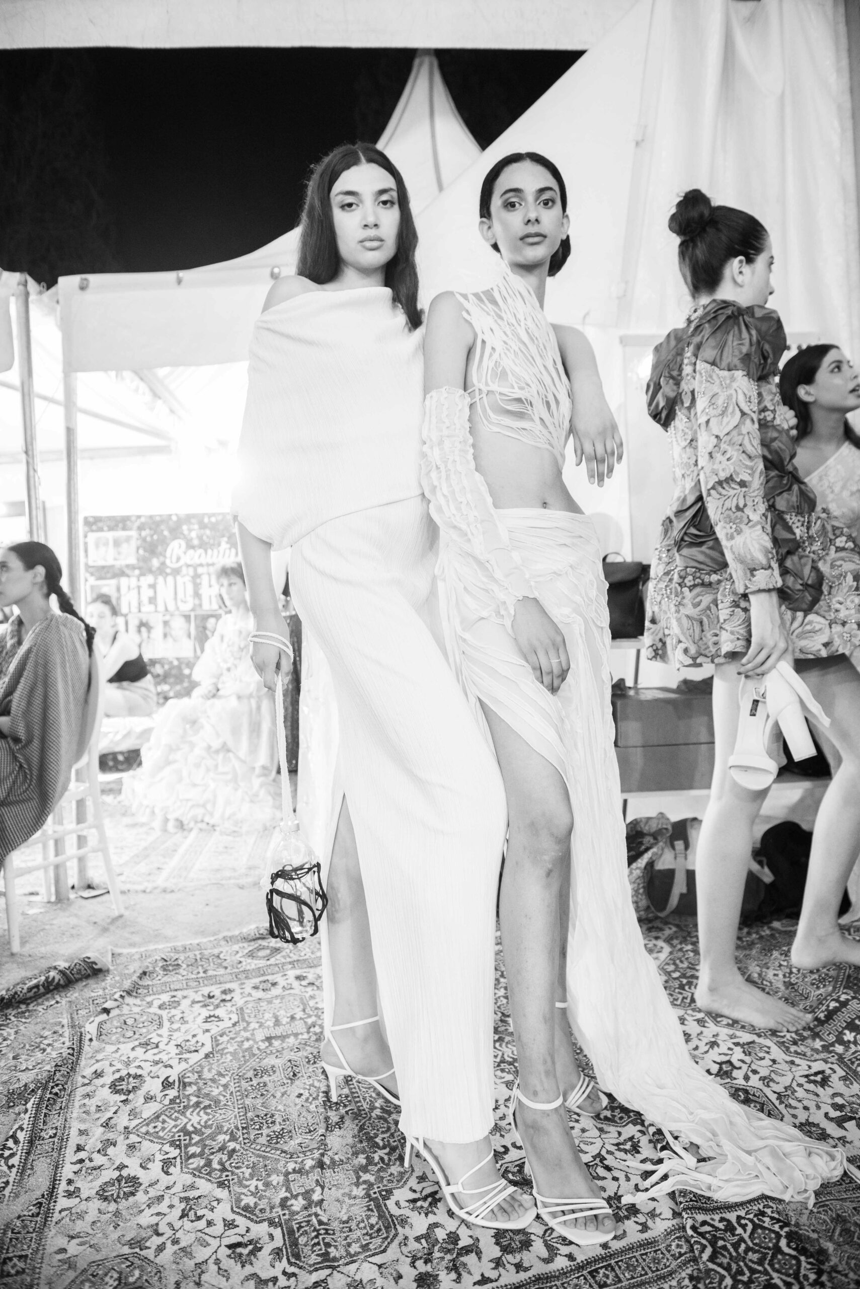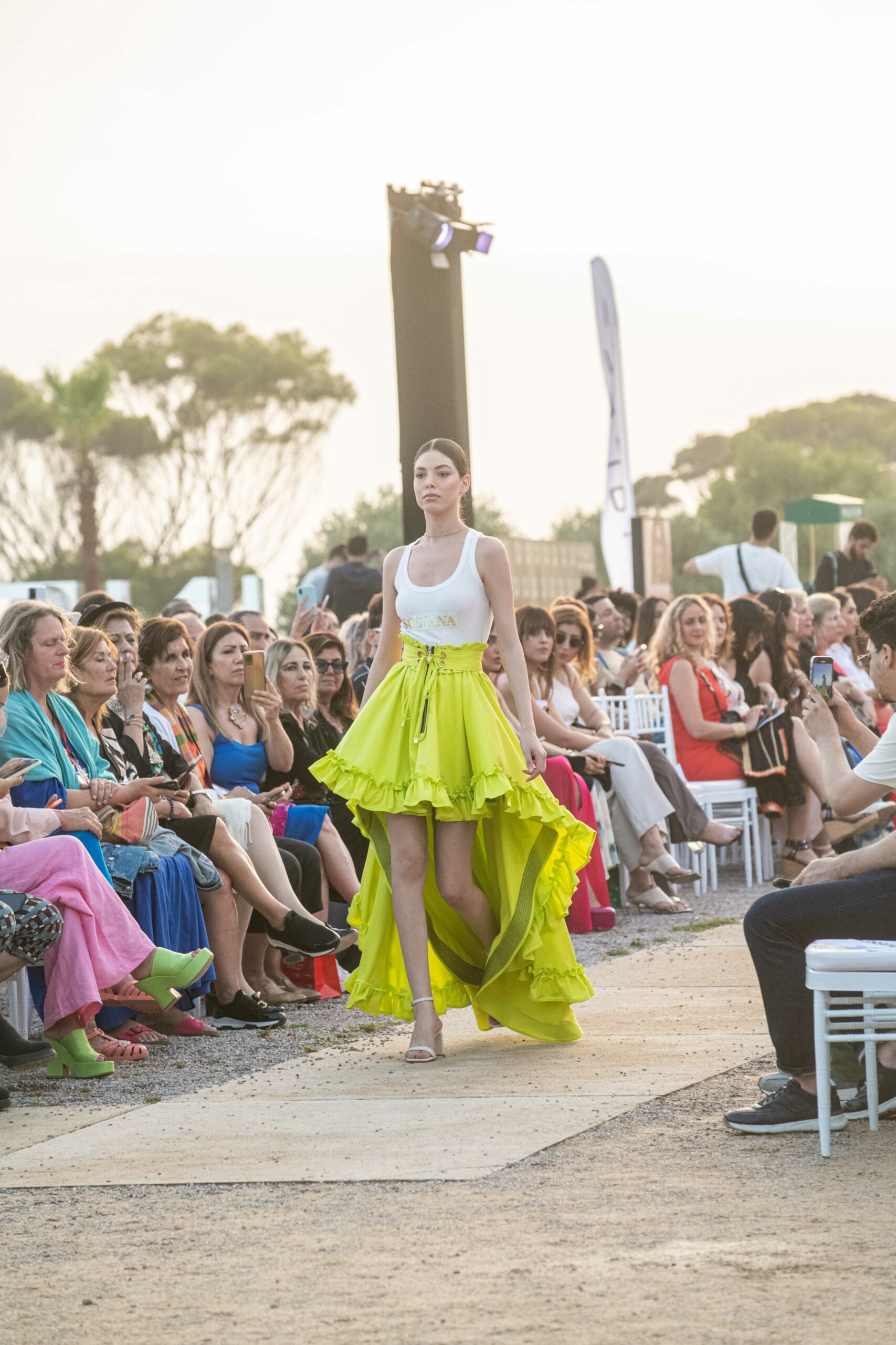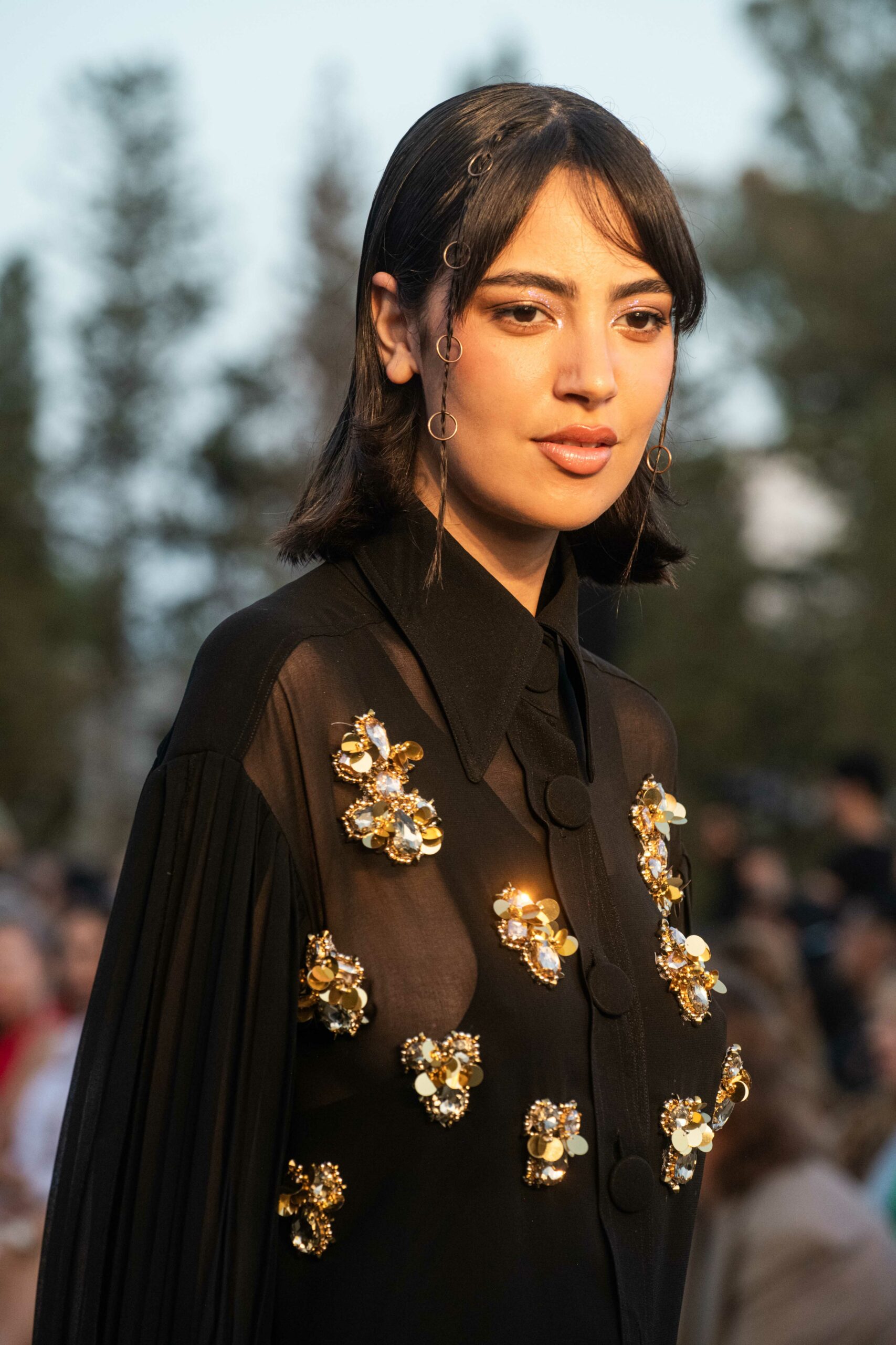 Cependant, ce qui diffère de ces dernières années, après deux ans de présence dans le désert de Tozeur, est l’influence orientale. Cela est particulièrement visible dans les premiers rangs, largement occupés par des influenceuses ou des VIP qui renouvellent le genre en recourant à une esthétique influencée par le modèle libanais.