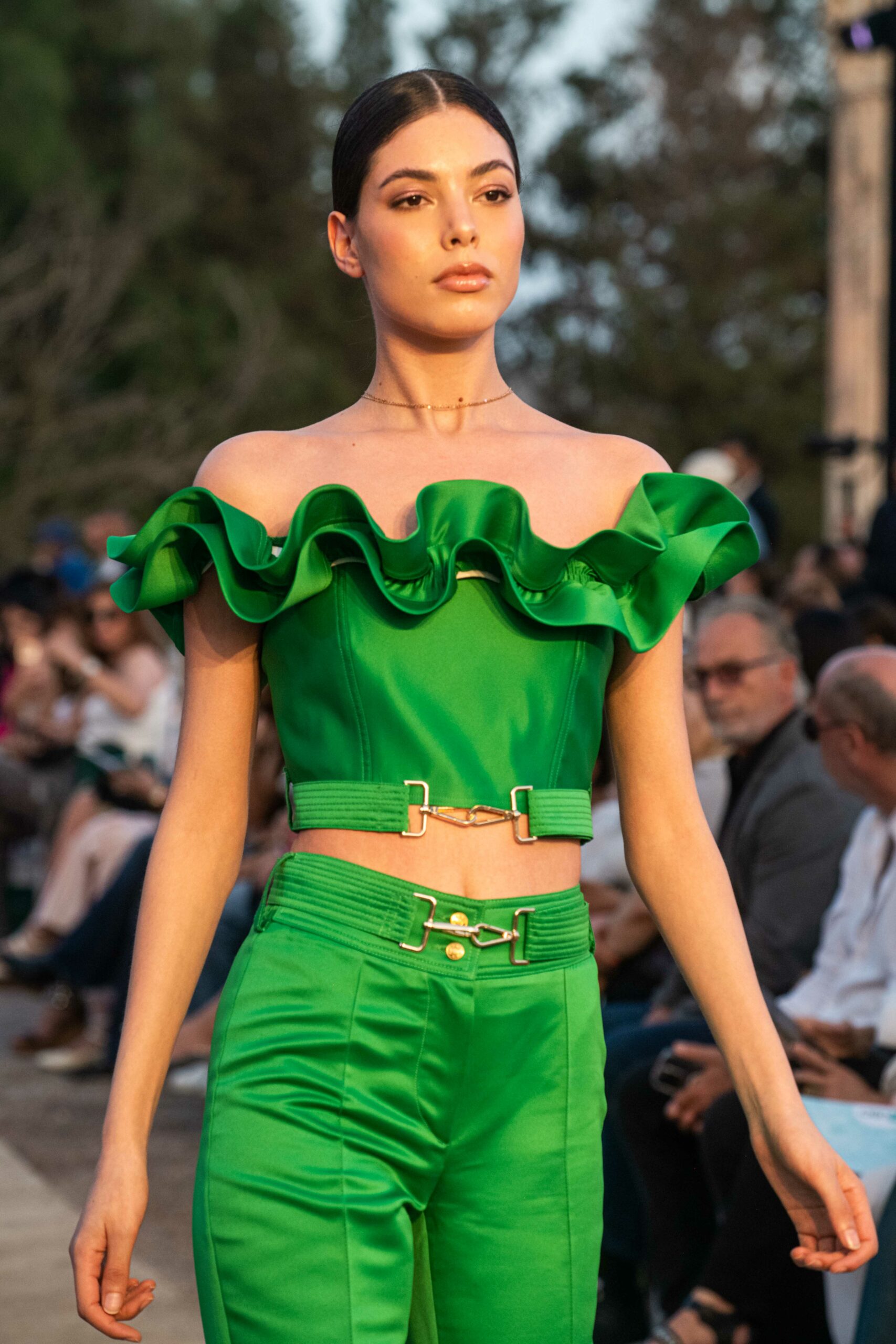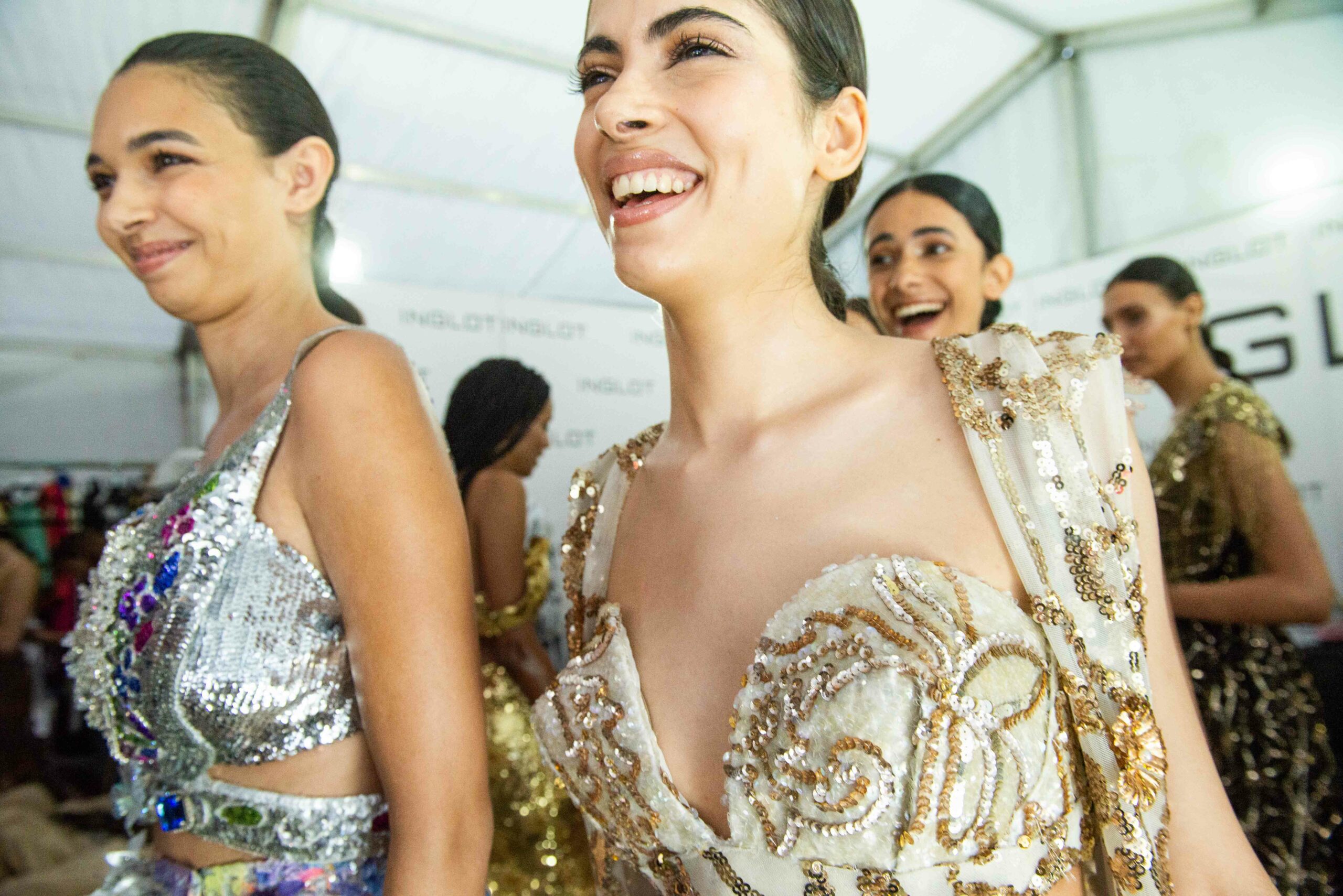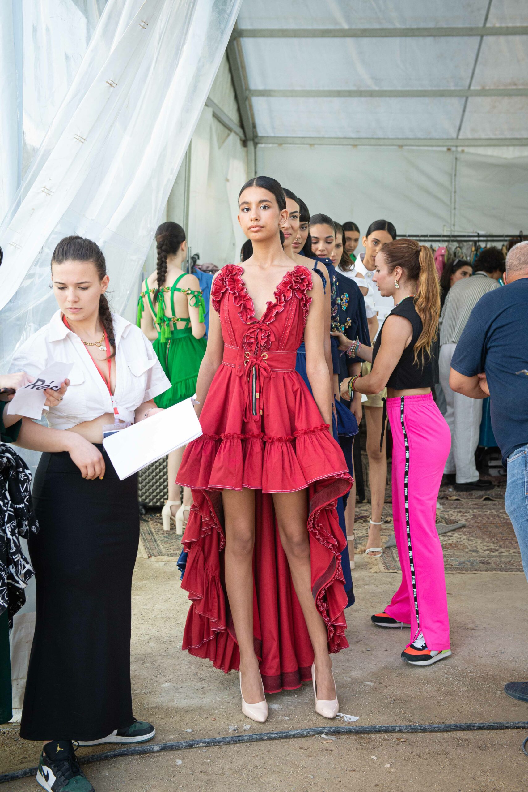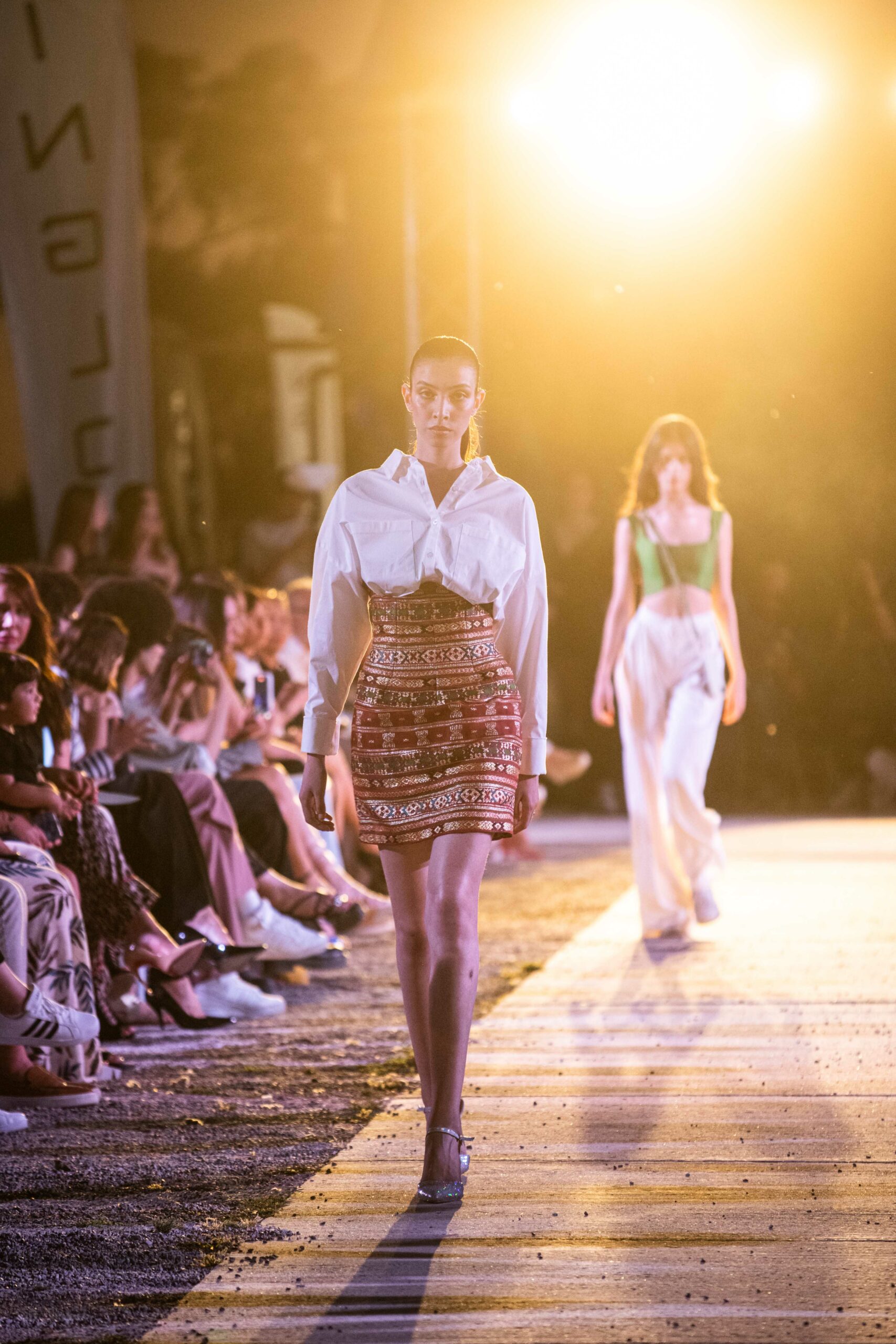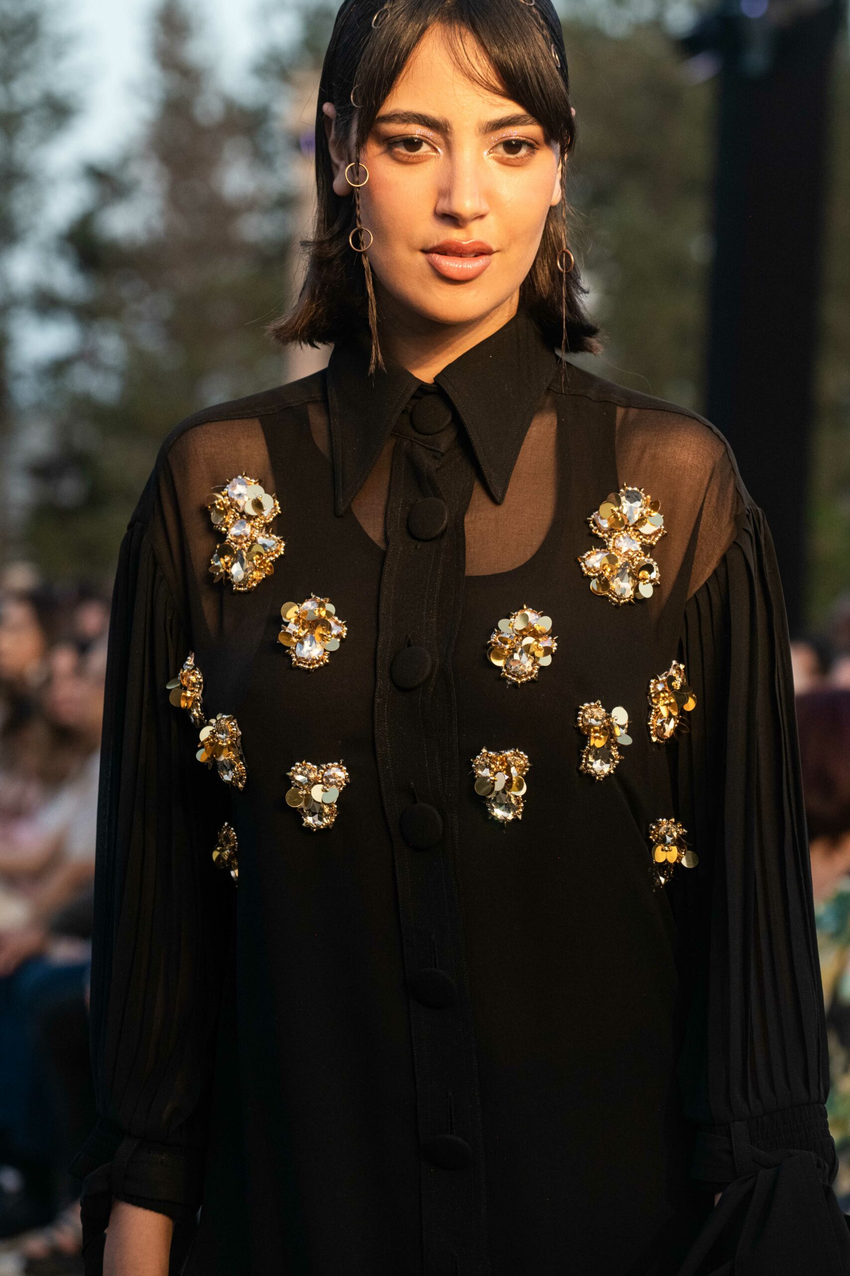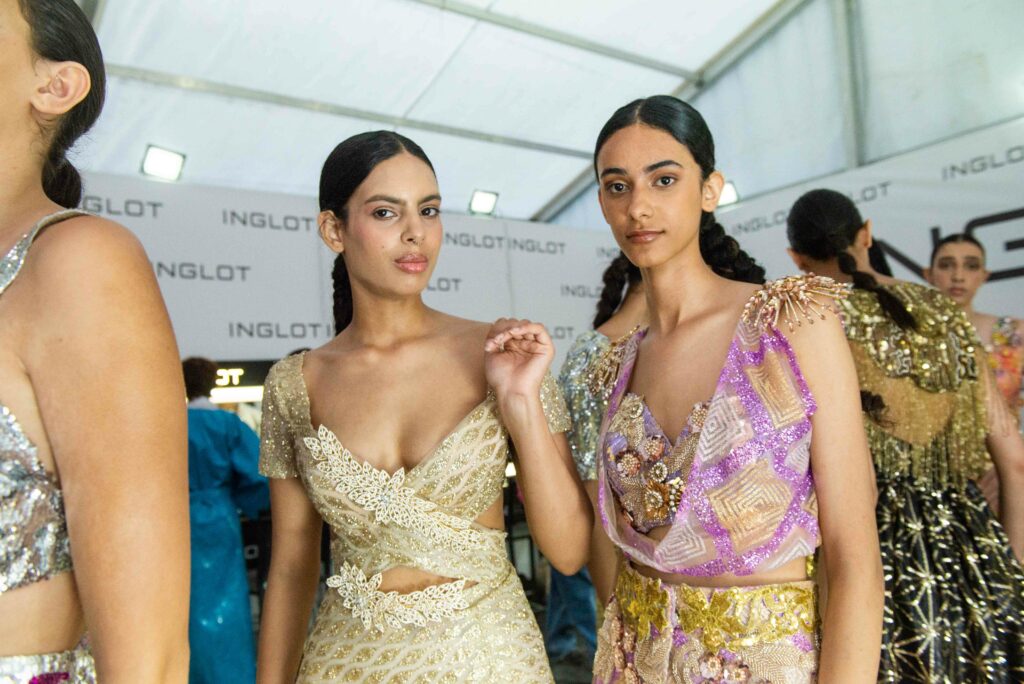 Cependant, ce qui diffère de ces dernières années, après deux ans de présence dans le désert de Tozeur, est l’influence orientale. Cela est particulièrement visible dans les premiers rangs, largement occupés par des influenceuses ou des VIP qui renouvellent le genre en recourant à une esthétique influencée par le modèle libanais.