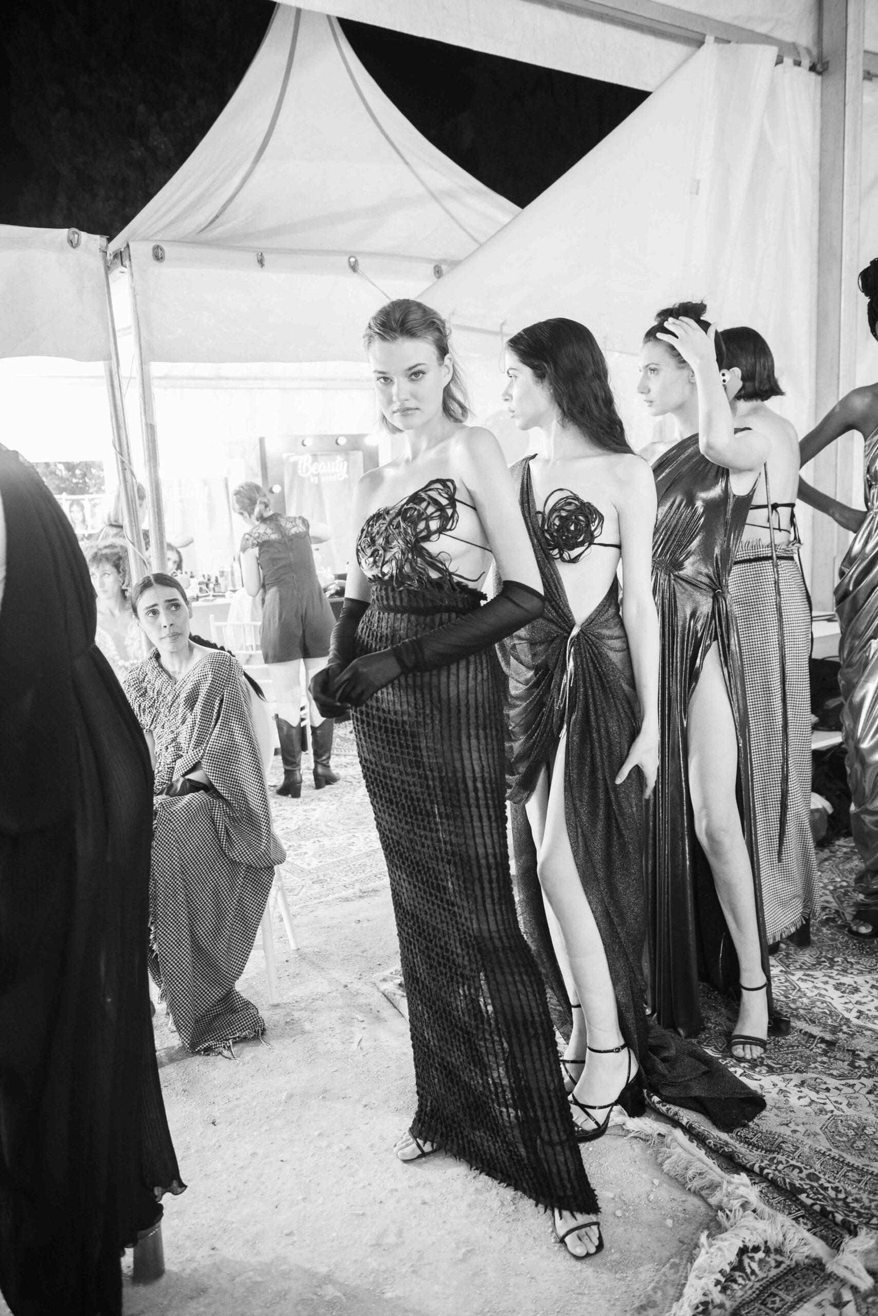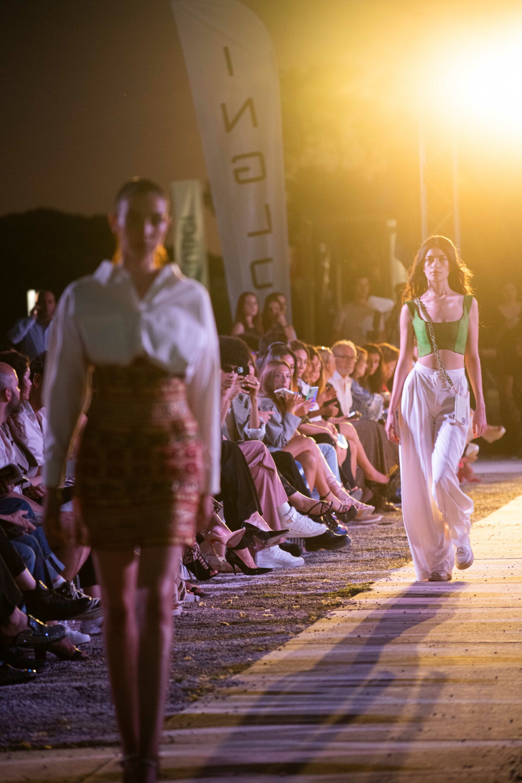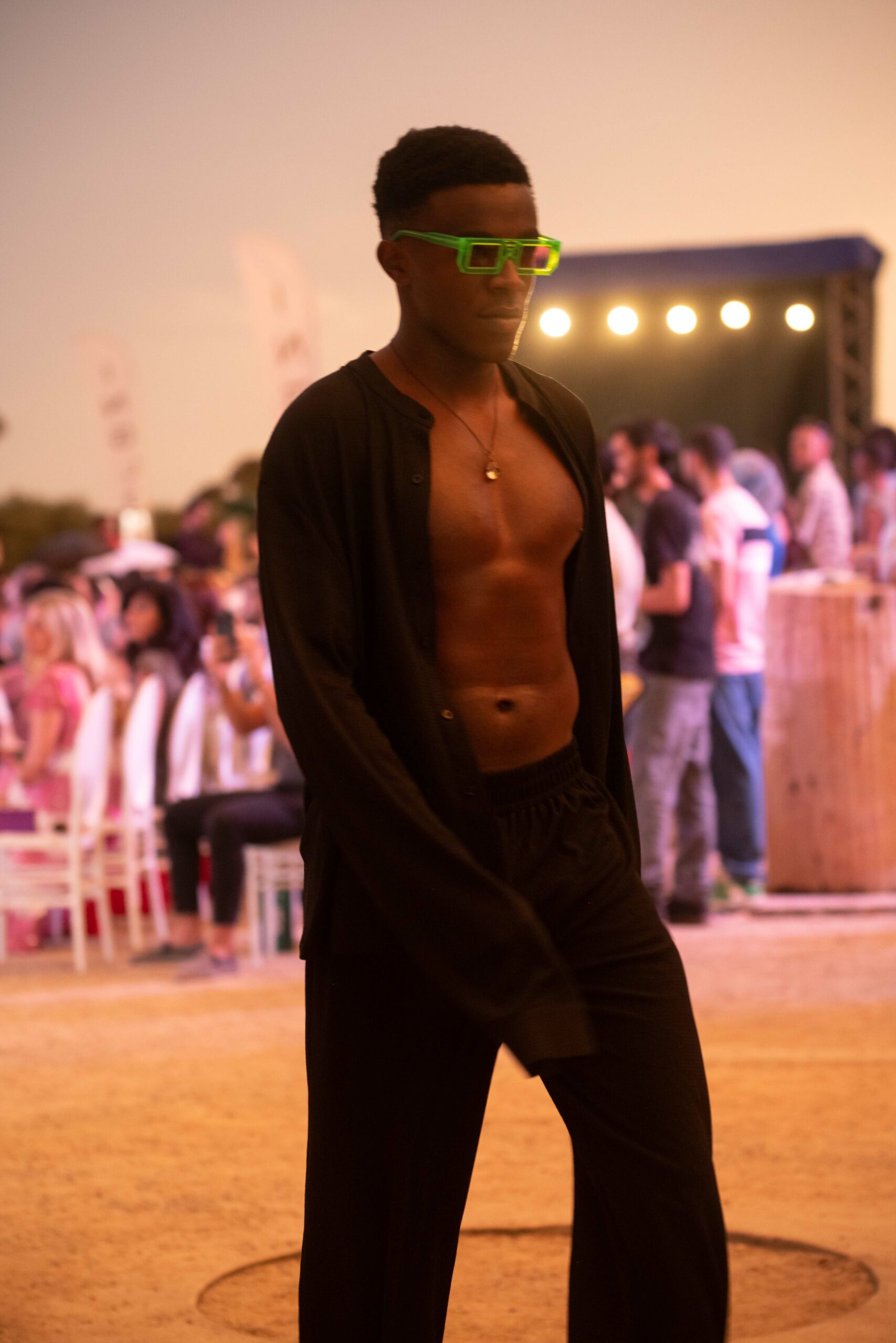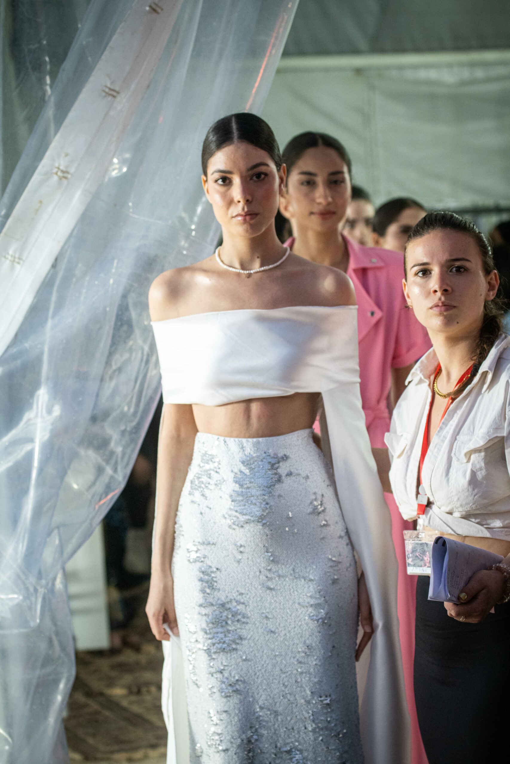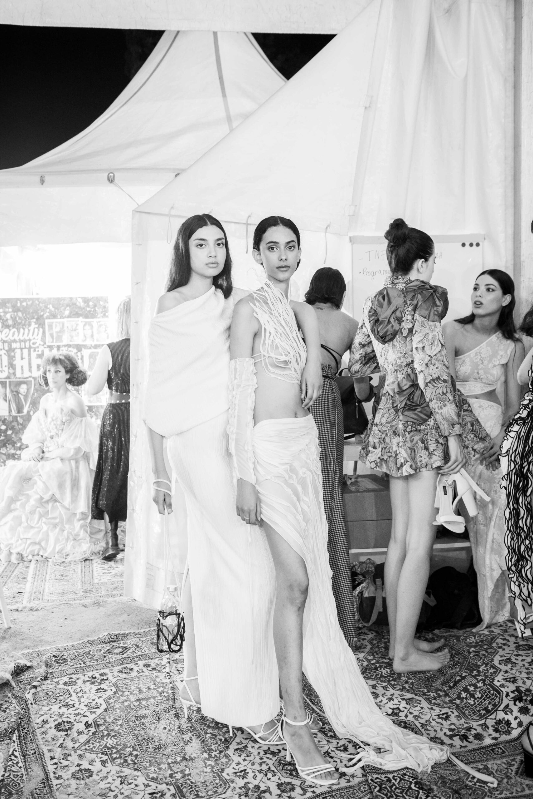 Cependant, ce qui diffère de ces dernières années, après deux ans de présence dans le désert de Tozeur, est l’influence orientale. Cela est particulièrement visible dans les premiers rangs, largement occupés par des influenceuses ou des VIP qui renouvellent le genre en recourant à une esthétique influencée par le modèle libanais.
