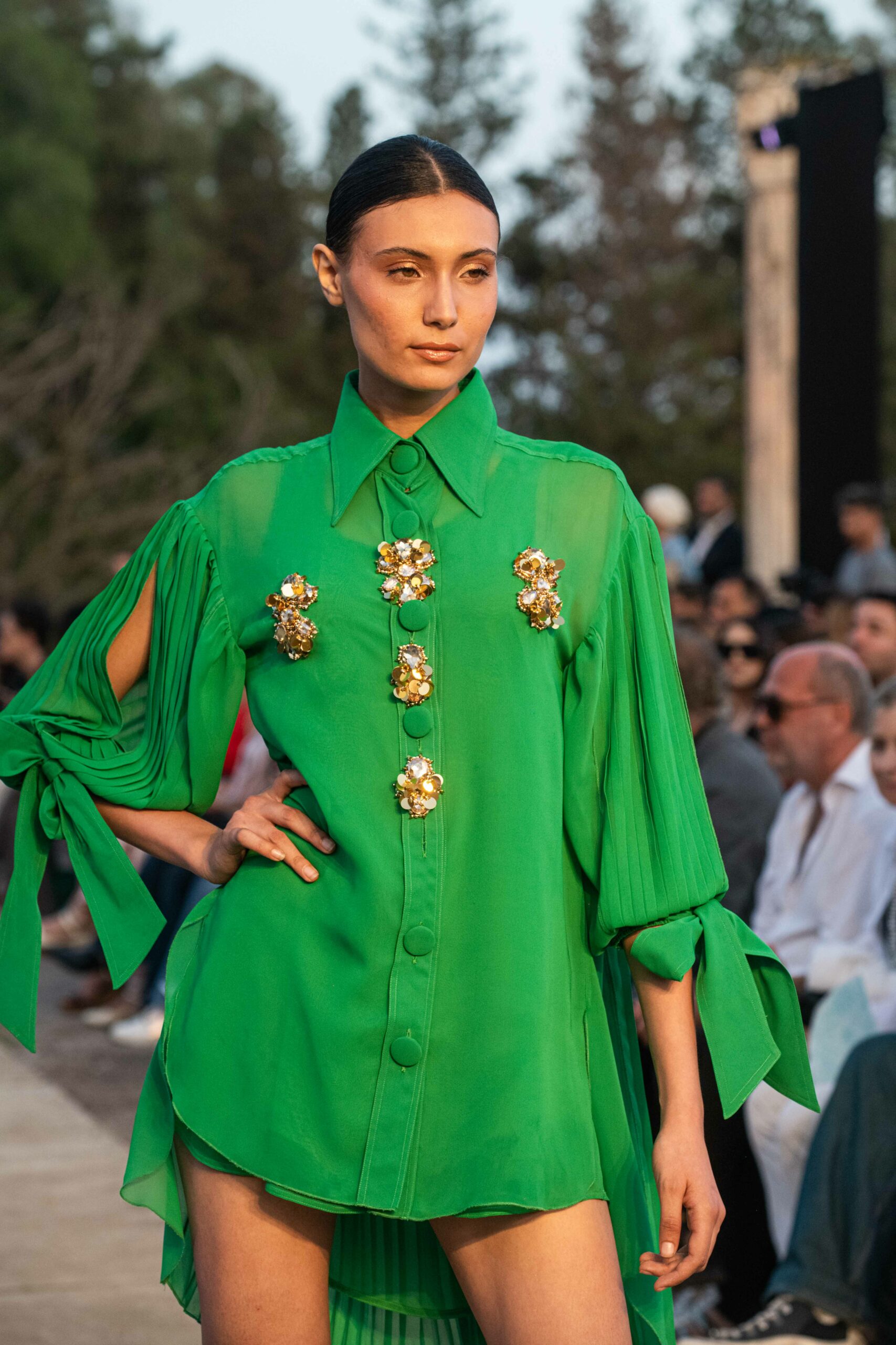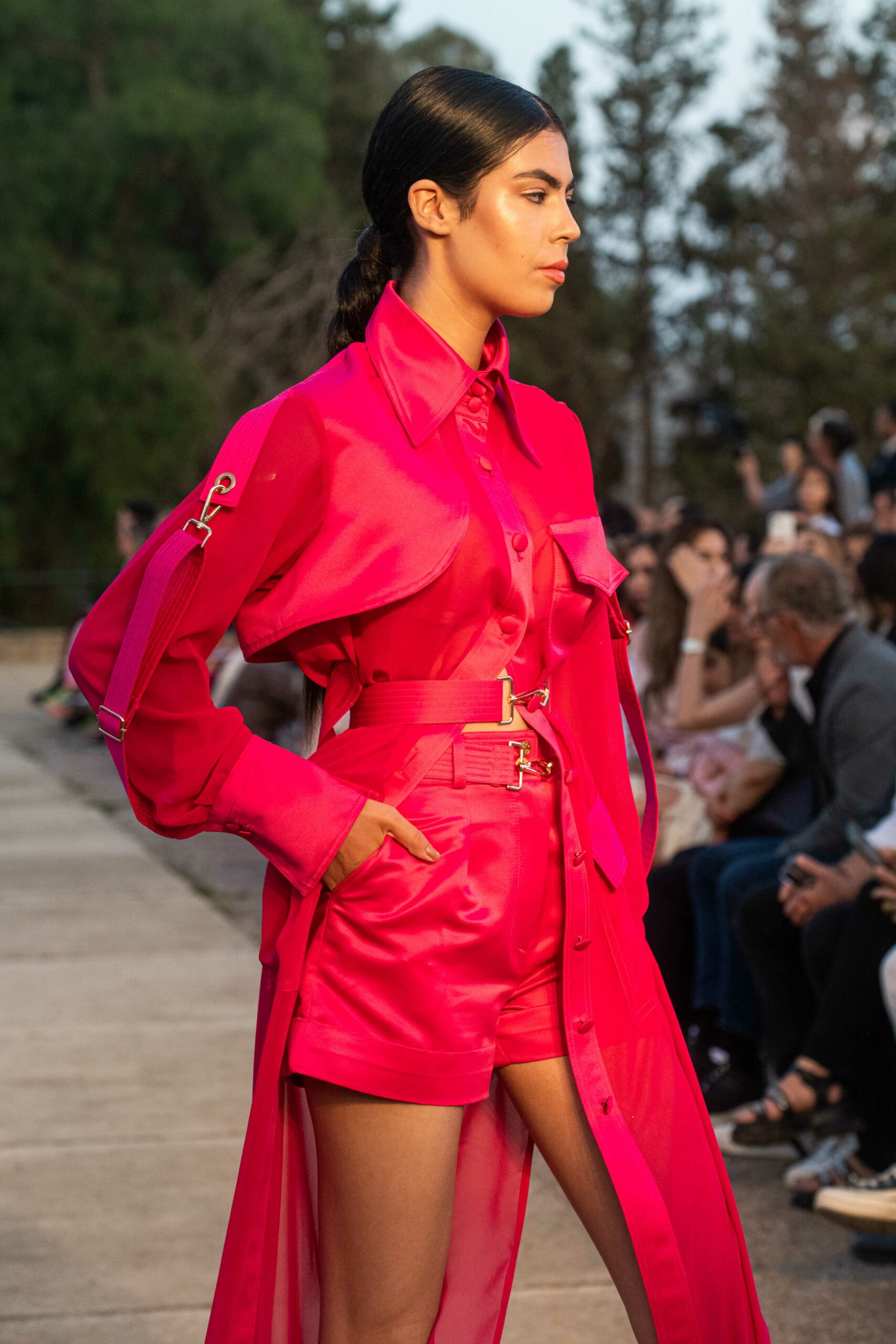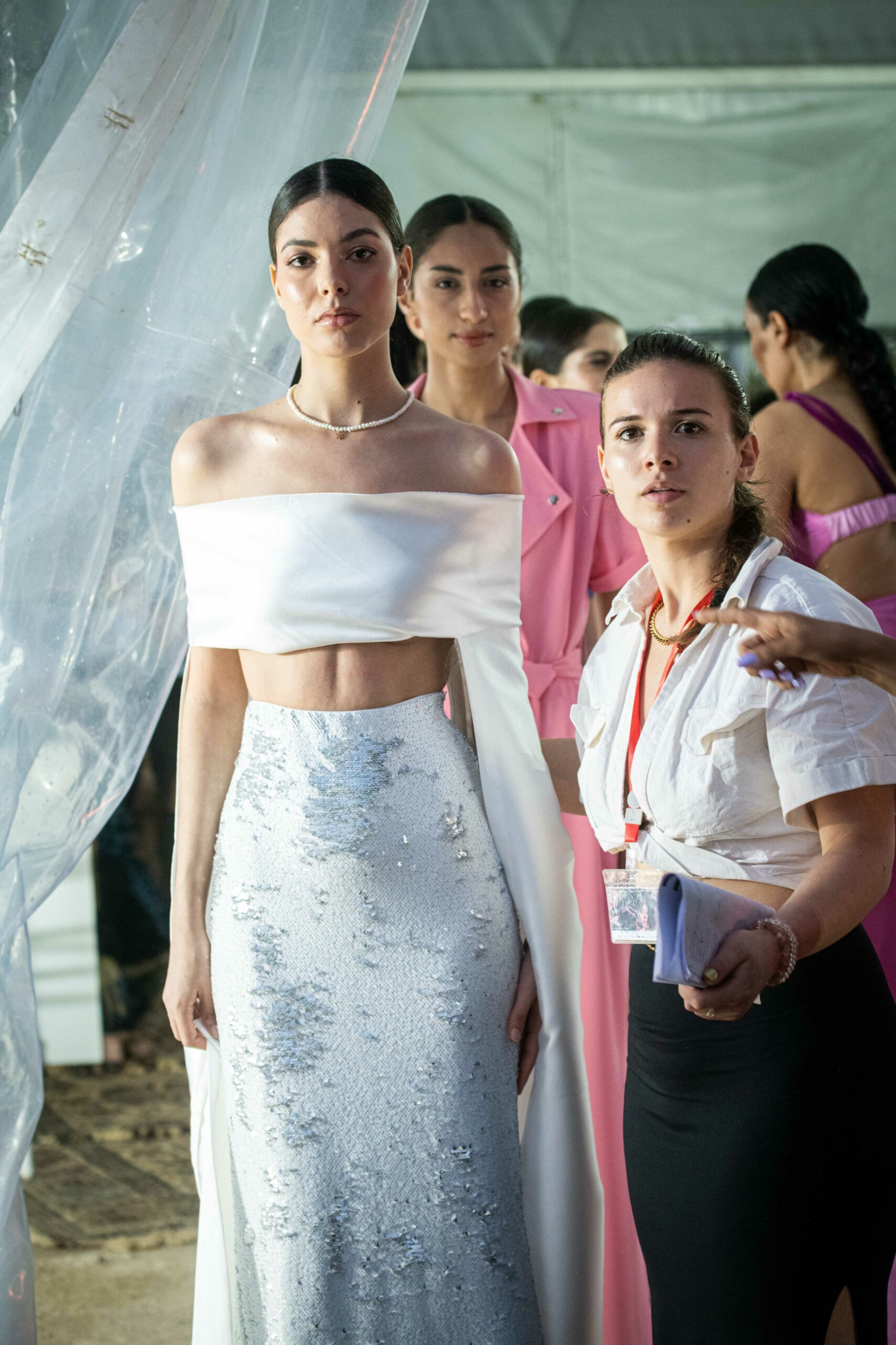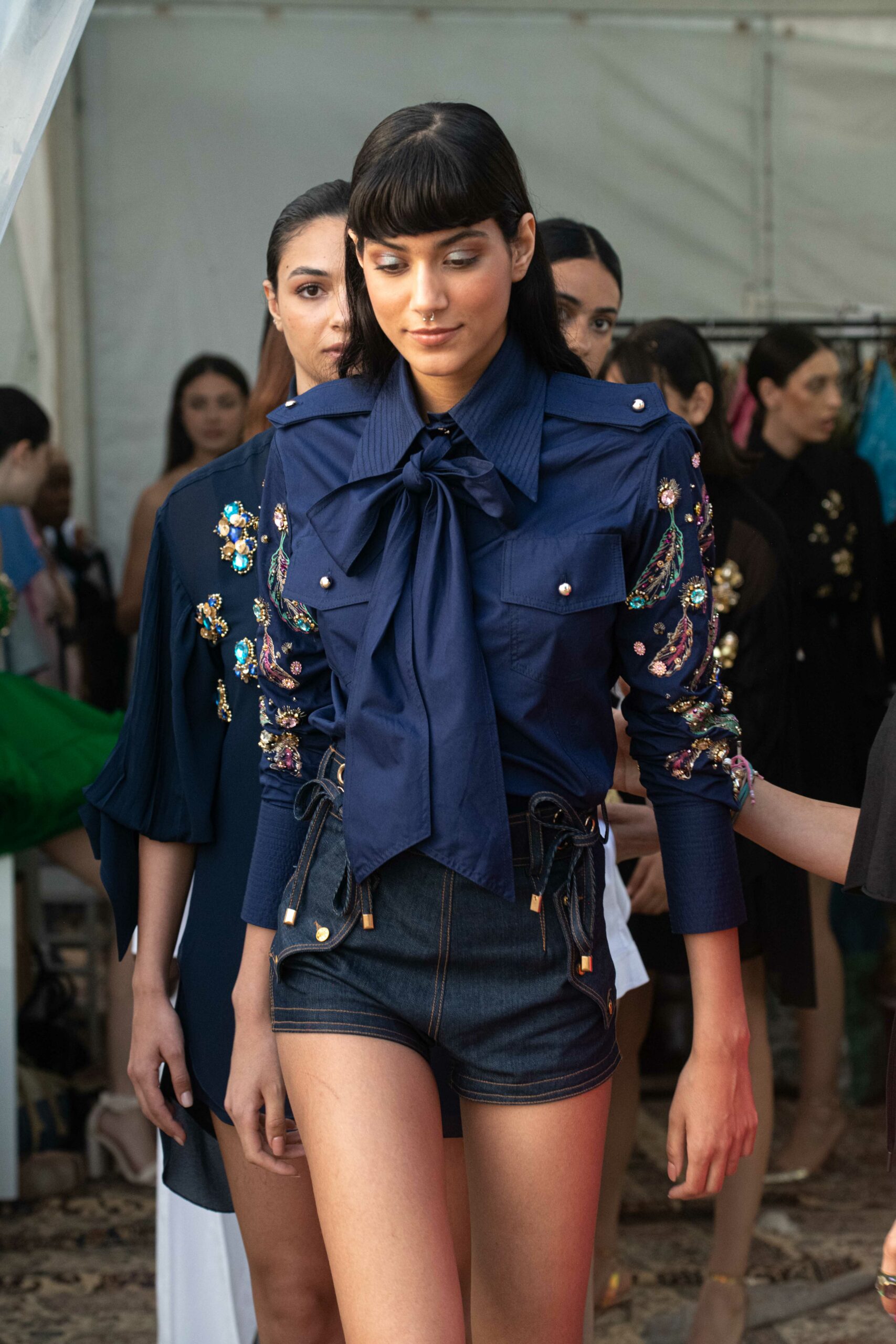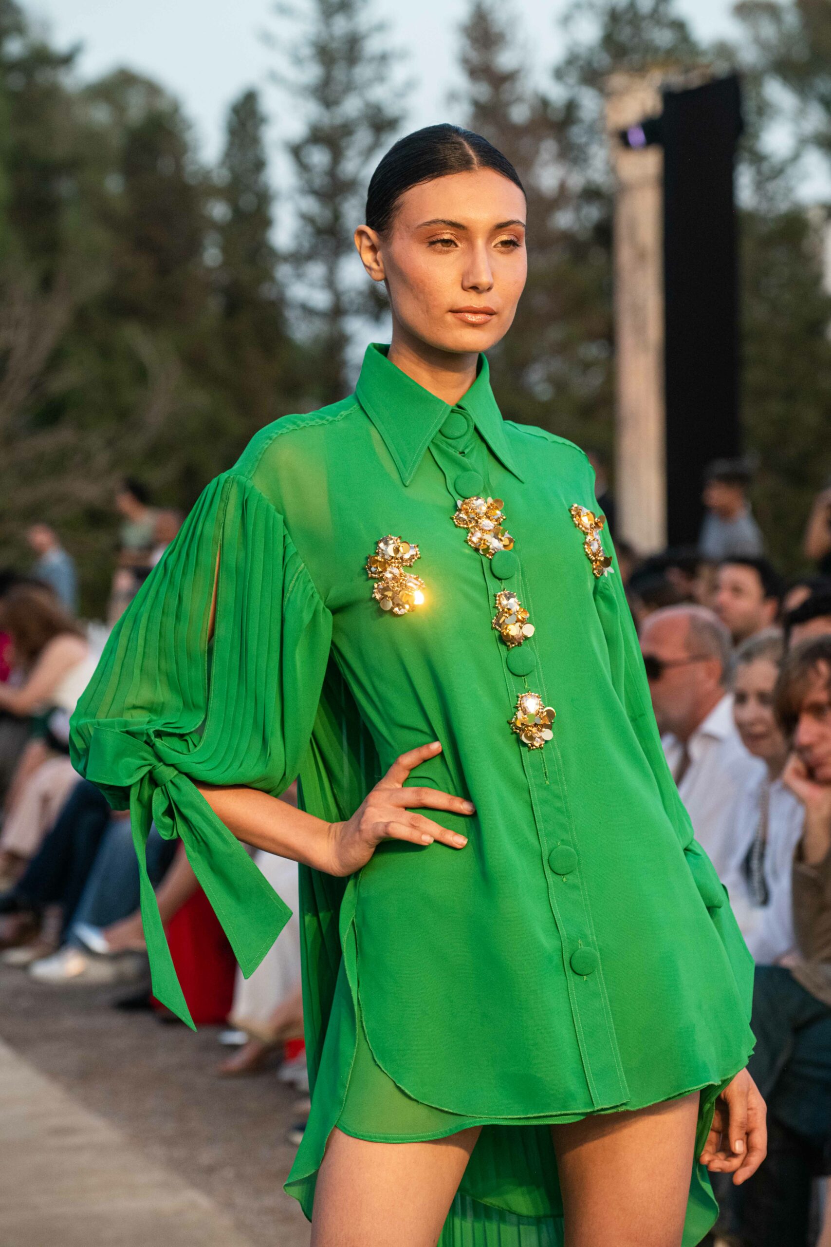 Cependant, ce qui diffère de ces dernières années, après deux ans de présence dans le désert de Tozeur, est l’influence orientale. Cela est particulièrement visible dans les premiers rangs, largement occupés par des influenceuses ou des VIP qui renouvellent le genre en recourant à une esthétique influencée par le modèle libanais.
