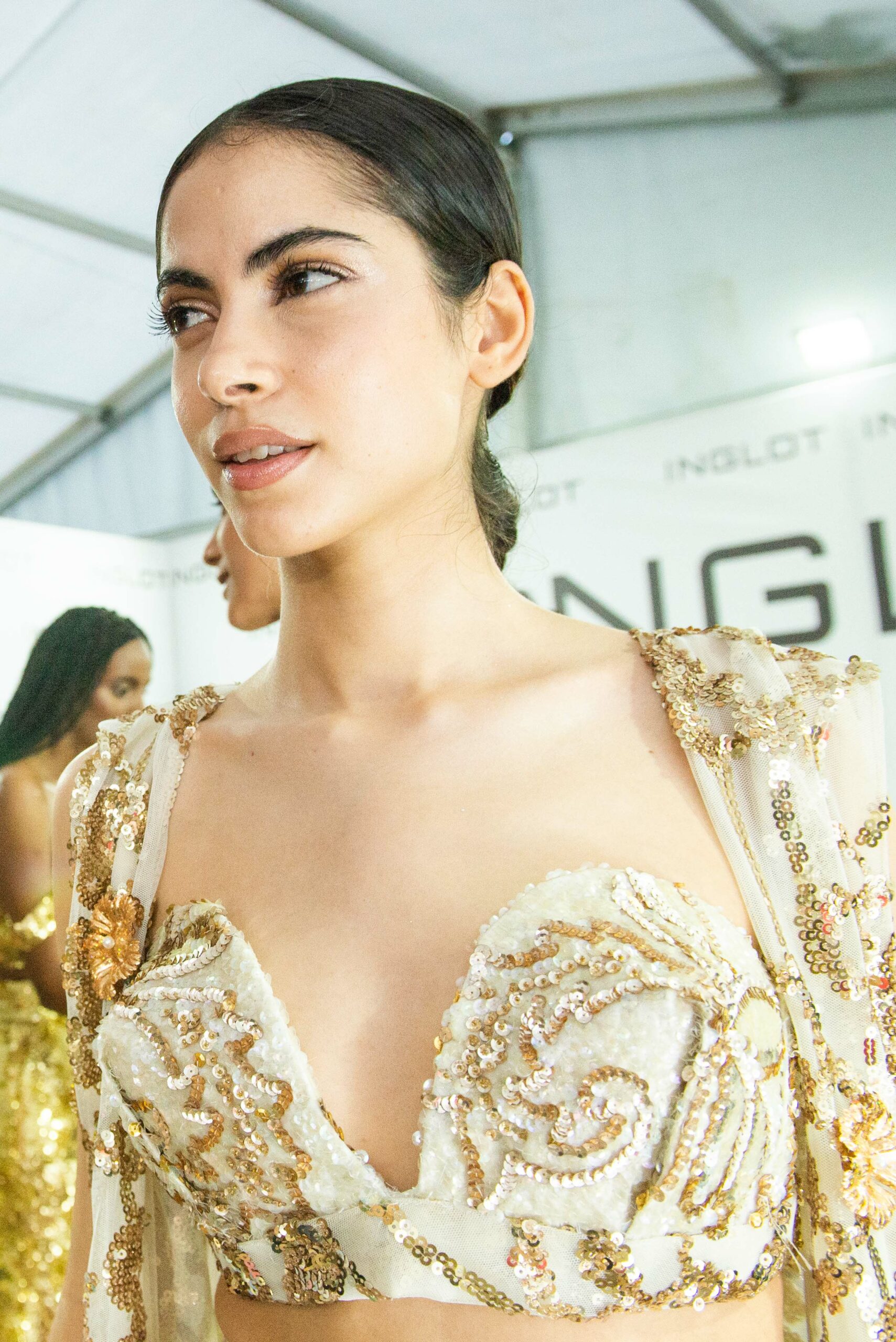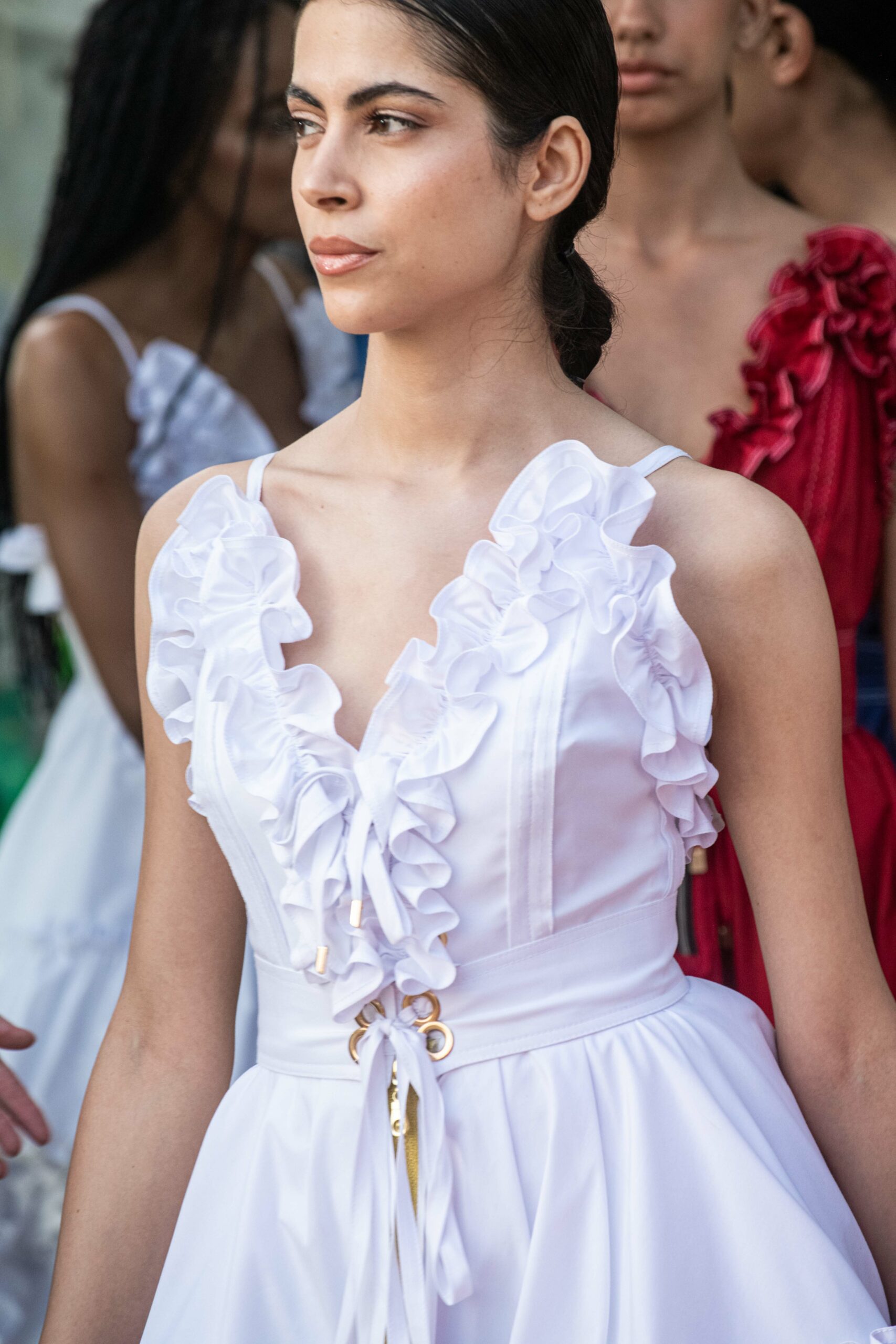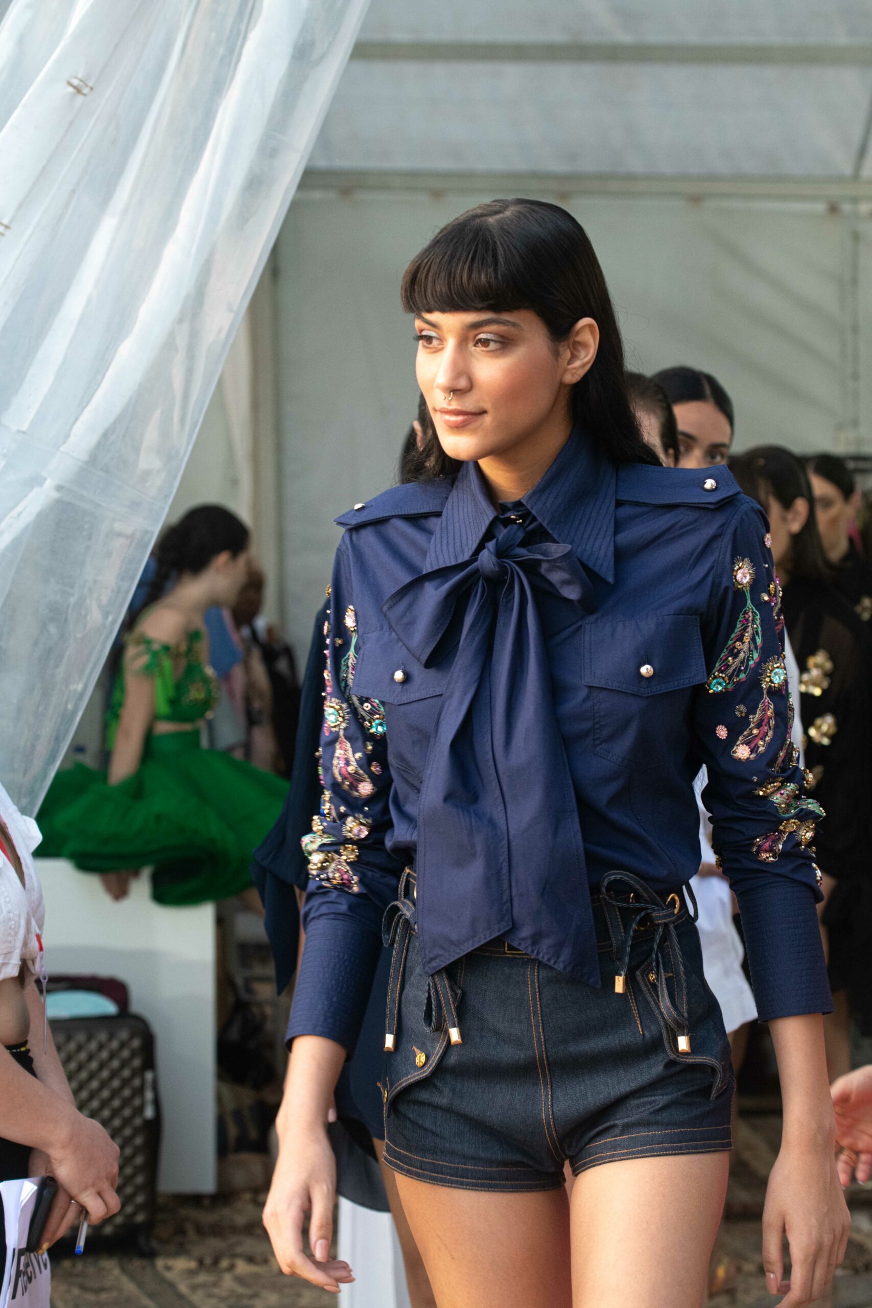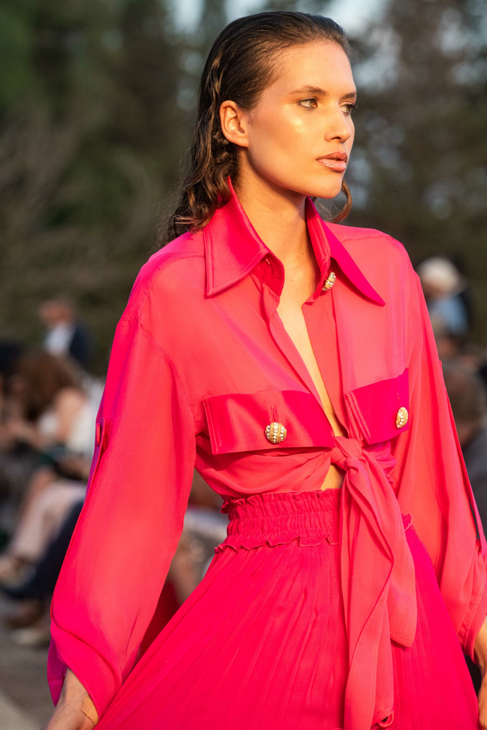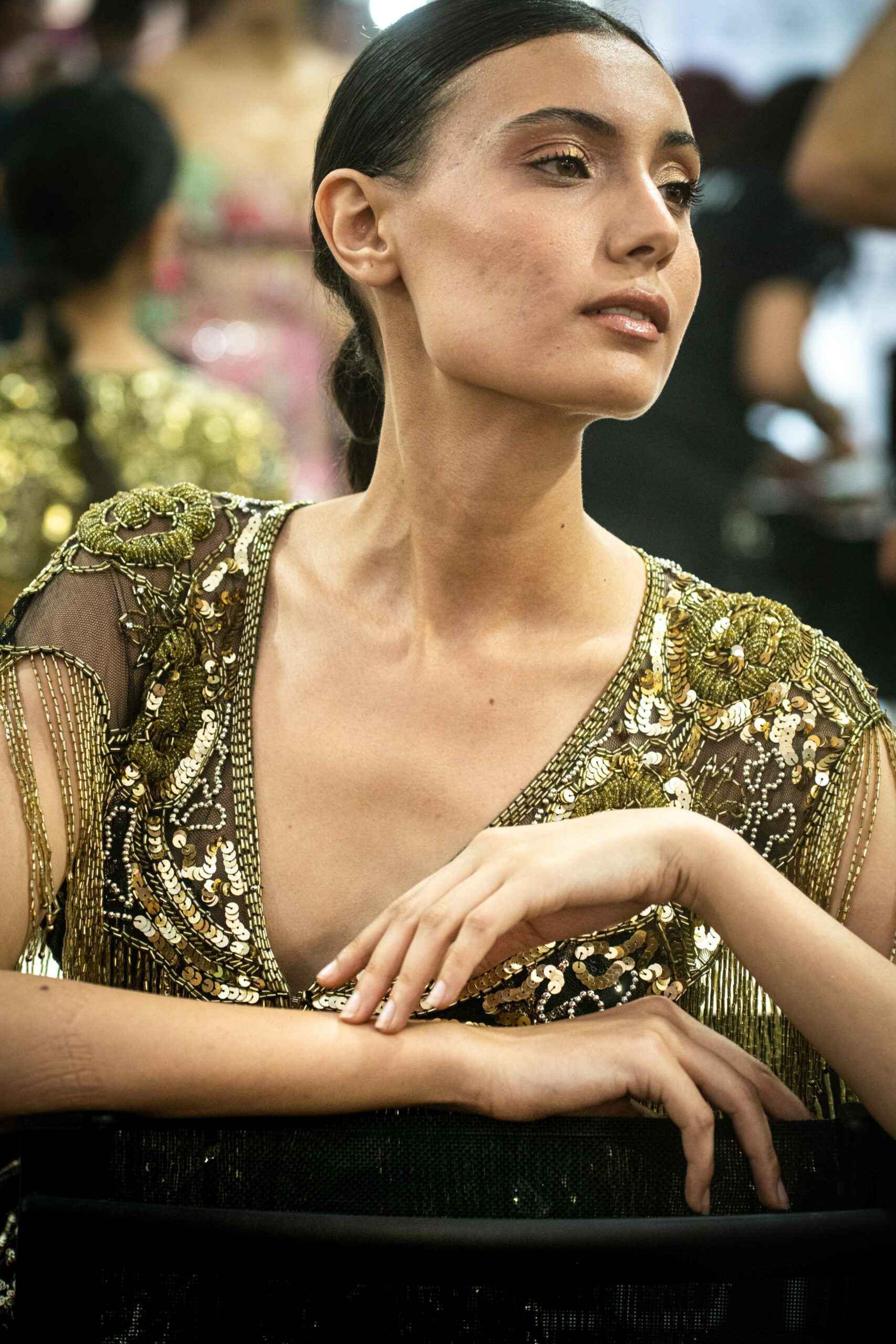 Cependant, ce qui diffère de ces dernières années, après deux ans de présence dans le désert de Tozeur, est l’influence orientale. Cela est particulièrement visible dans les premiers rangs, largement occupés par des influenceuses ou des VIP qui renouvellent le genre en recourant à une esthétique influencée par le modèle libanais.