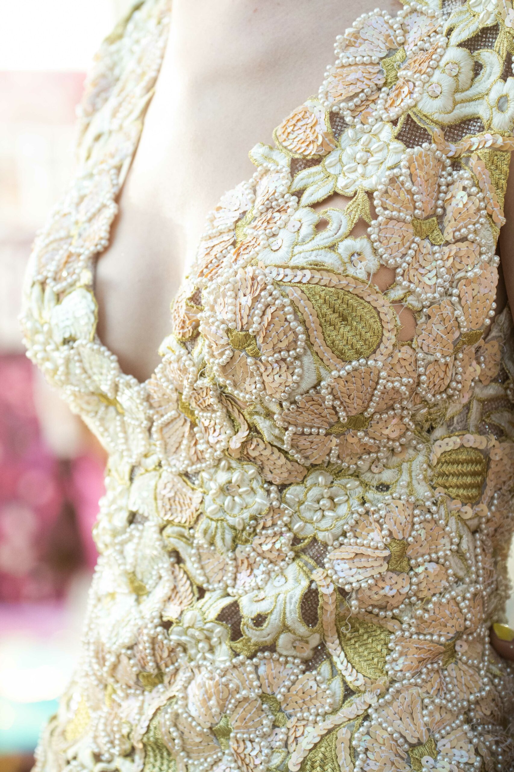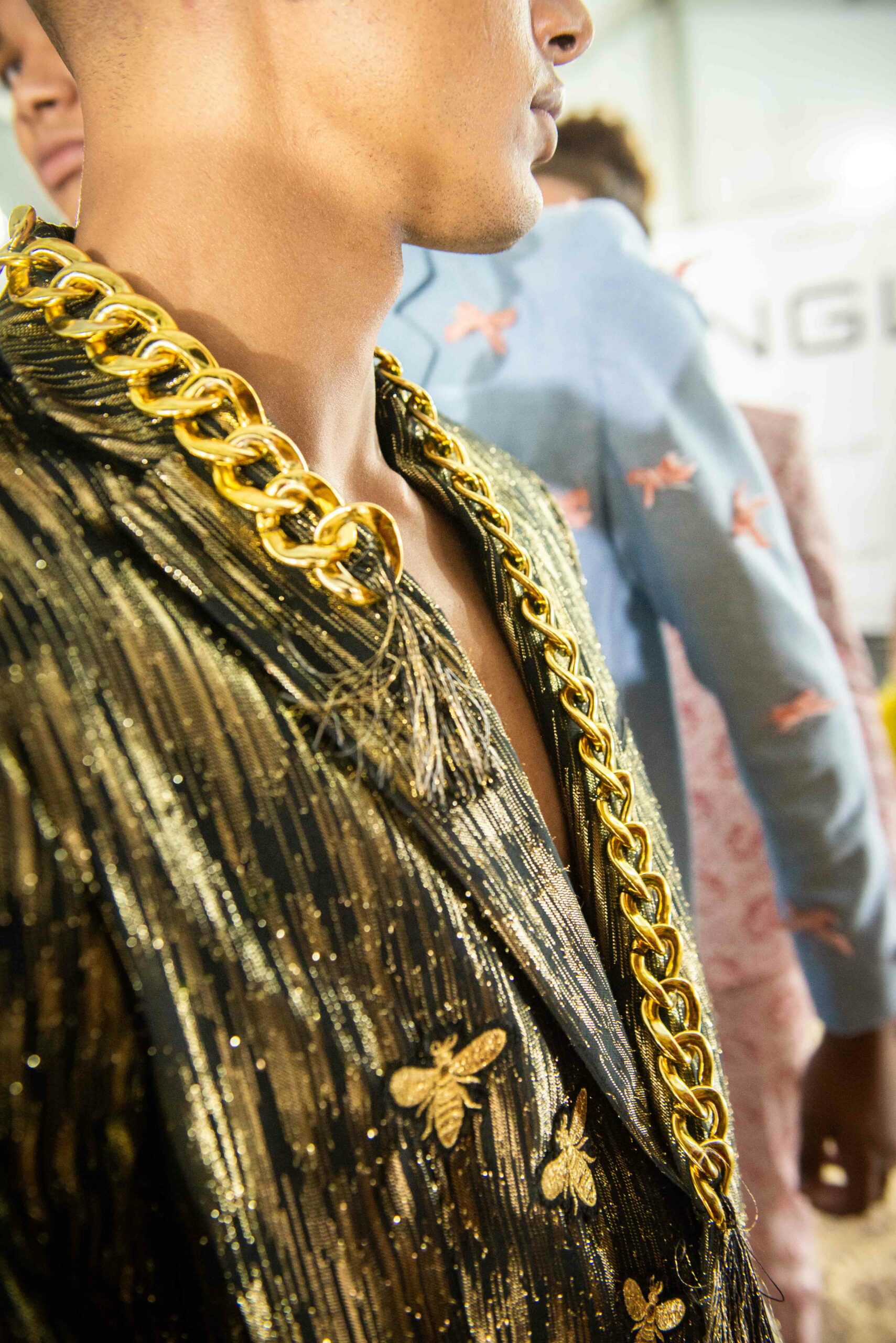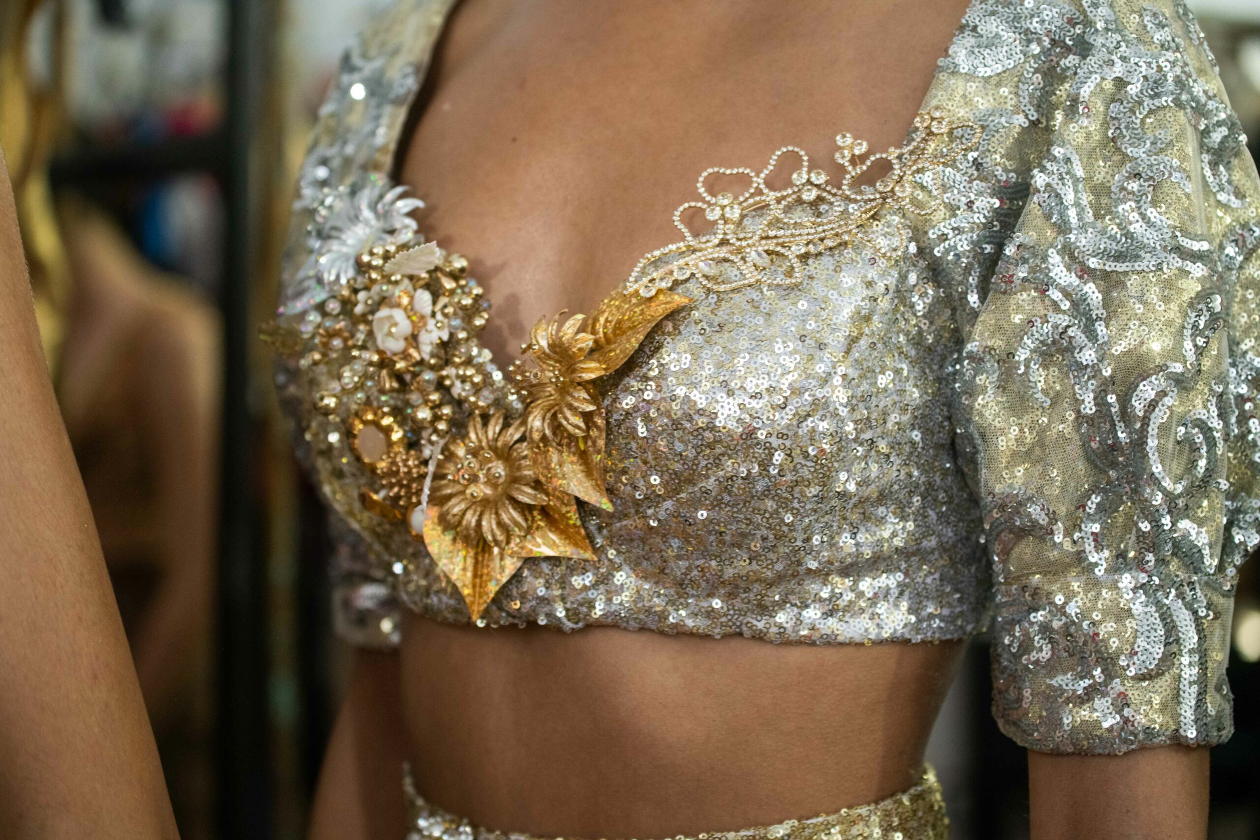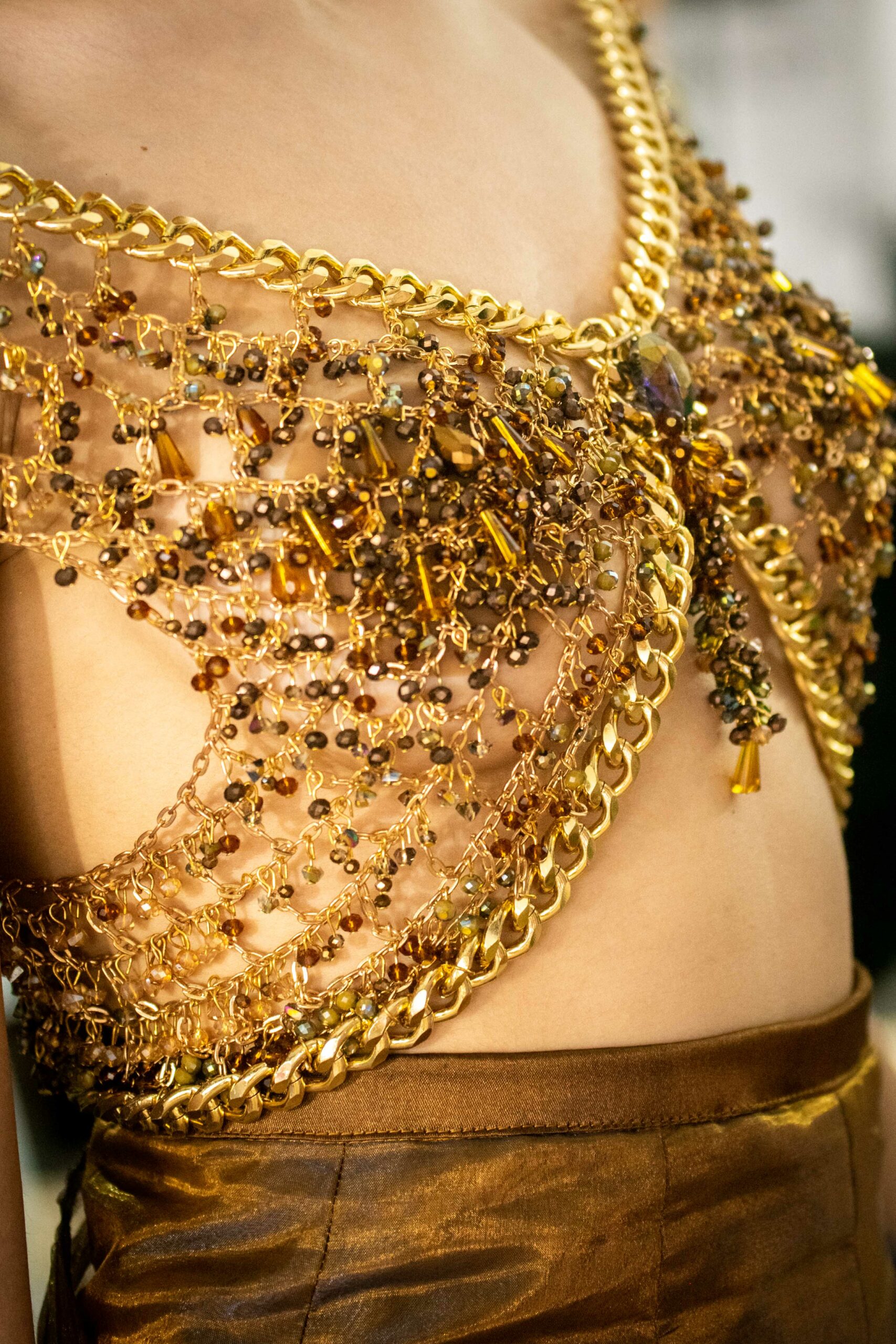 Sans doute inspirés par le succès d’Ali Karoui, créateur phare de la nouvelle génération basé à Dubaï, et sans aucun doute conscients des difficultés de pénétrer le marché occidental quand l’outil de production n’est pas adapté, certains créateurs ont présenté, plus que jamais auparavant, des tenues dorées, des matières scintillantes, des strass et d’autres éléments esthétiques propres à séduire les riches femmes algériennes, marocaines, saoudiennes, etc.