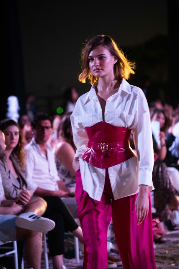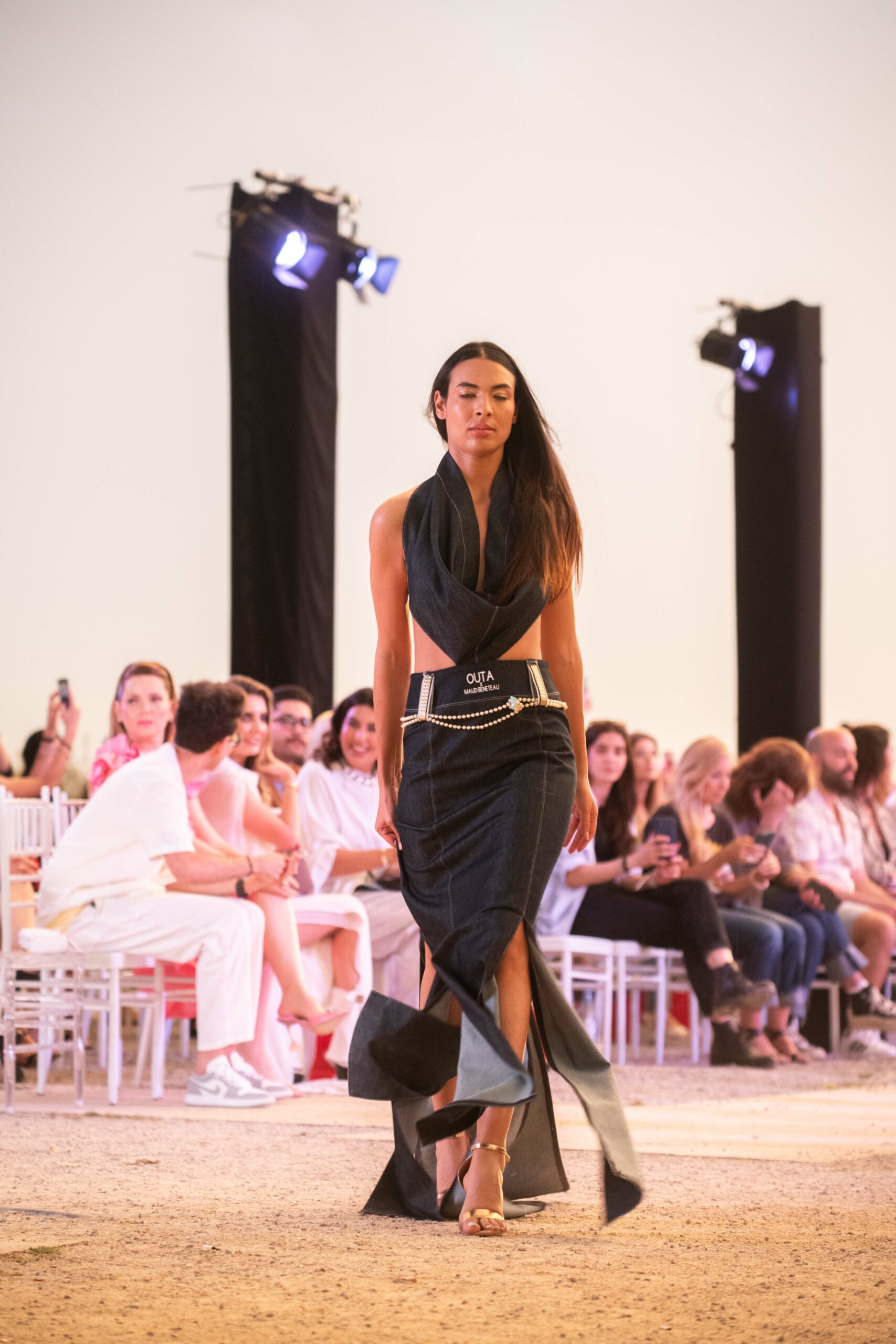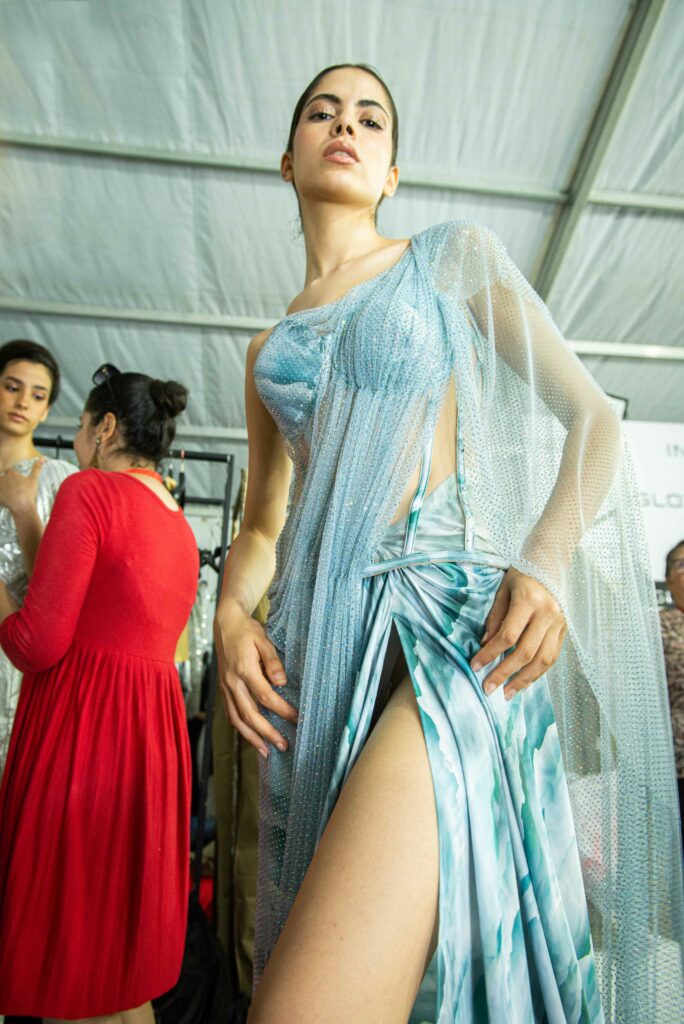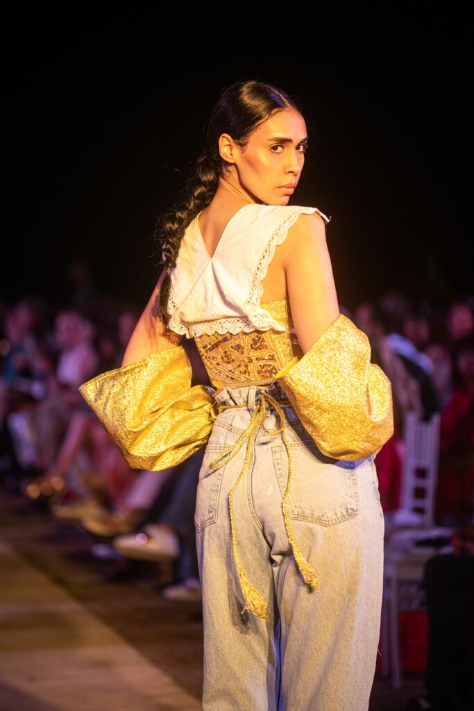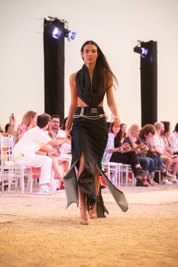 Dans l’ère post-Ben Ali, la Tunis Fashion Week (TNFW) a accompagné l’émergence d’une sous-culture résolument tournée vers l’Occident. Cette ambition se manifeste dans la présence de marques comme Soltana de Fatma Ben Soltane, Calestis, et Eye K d’Inès Kacem, mais aussi par l’émergence de nouveaux talents comme Haroun Ghanmi et Outa. Profondément ancrée dans la tendance durable qui domine l’Europe, Outa, dirigée par Maud Beneteau, a présenté six modèles Couture en denim, un tissu fabriqué à partir de fils de polyester recyclés à partir de déchets plastiques trouvés à Kerkennah, un archipel tunisien dans la mer Méditerranée.