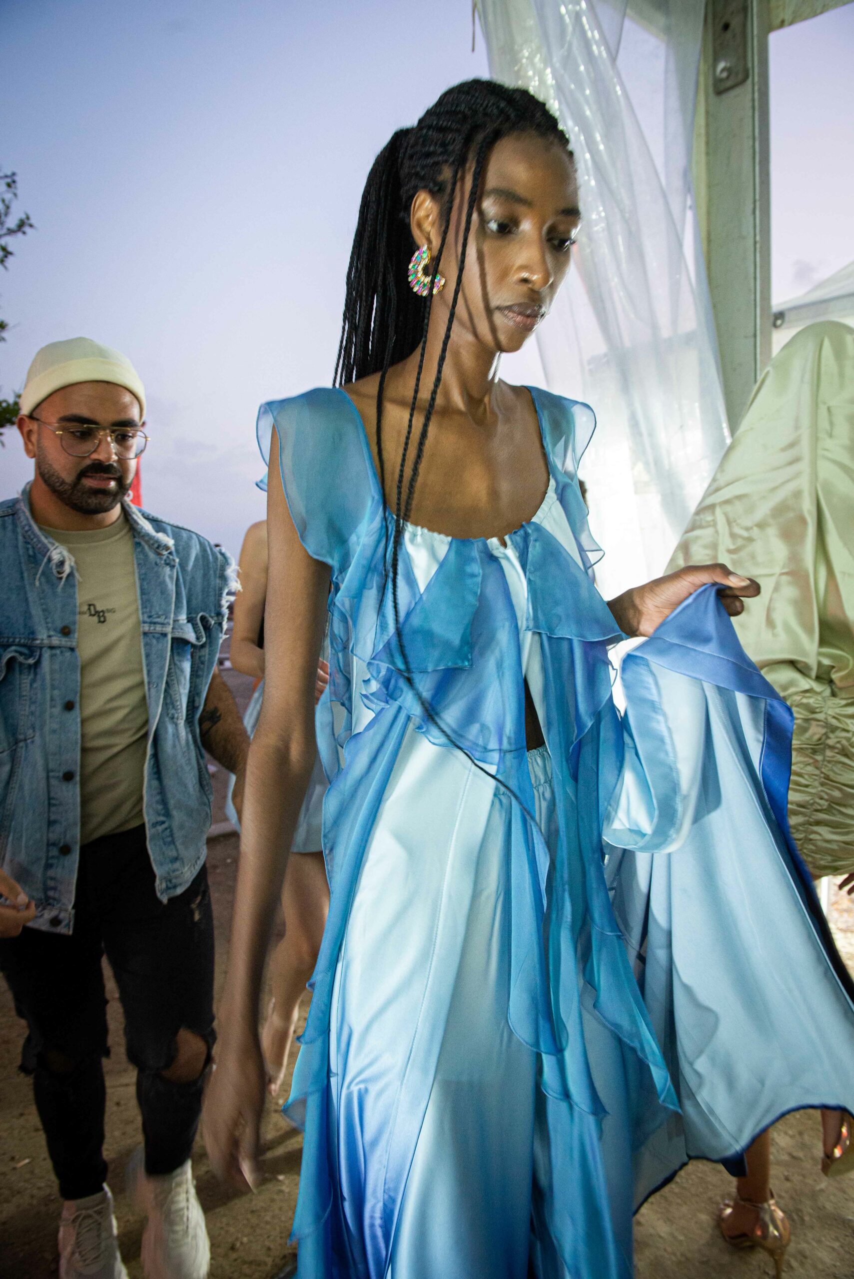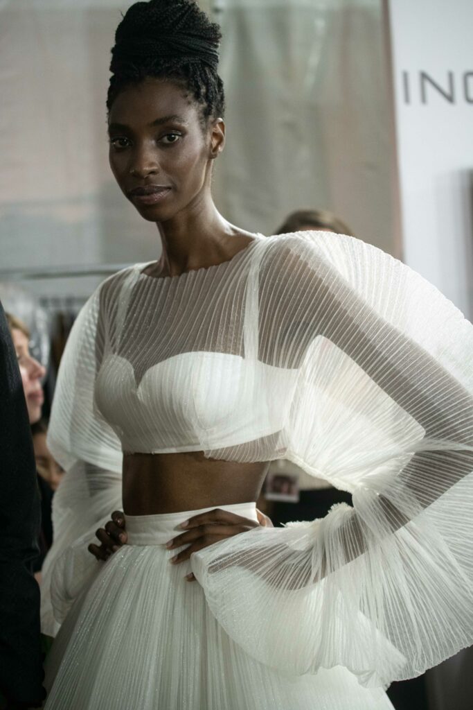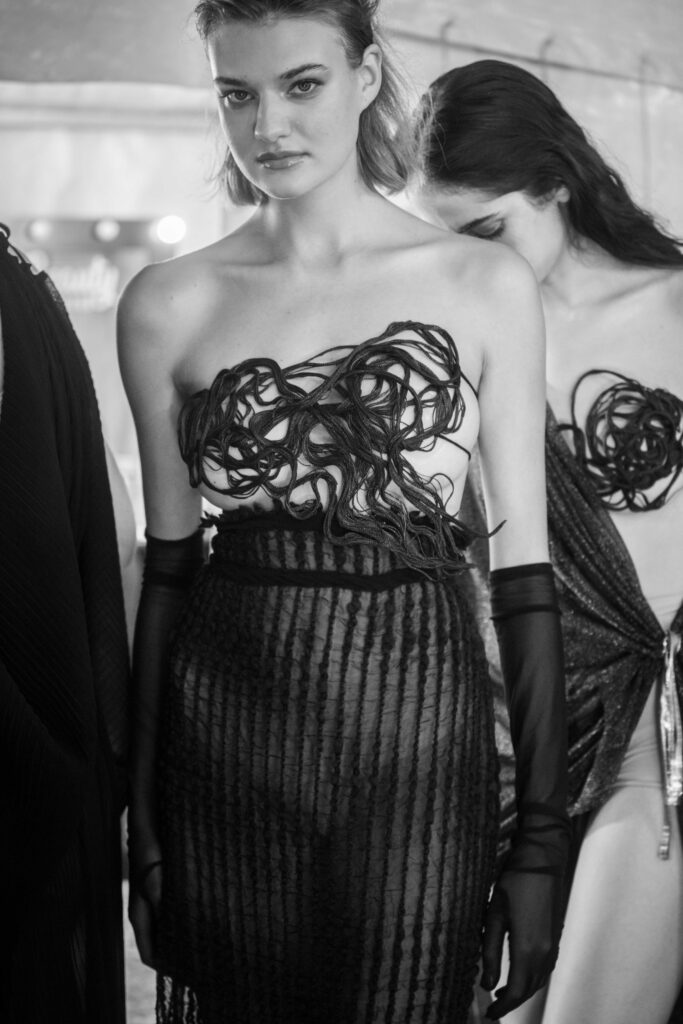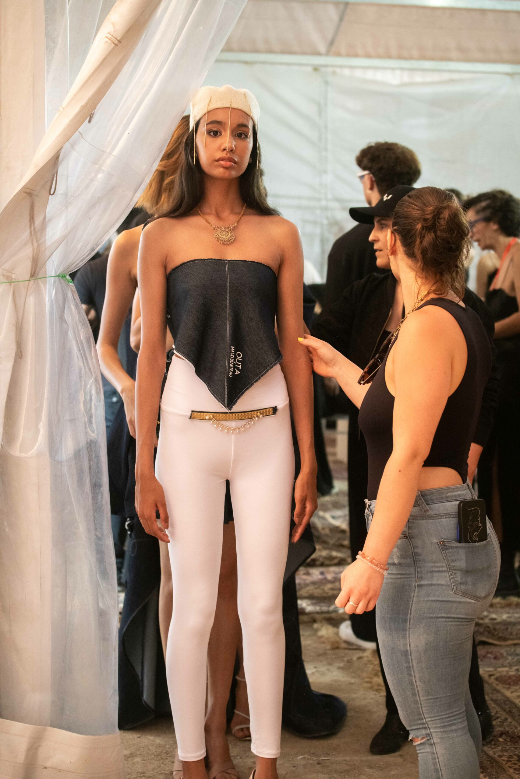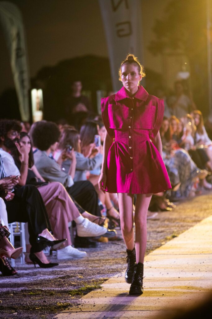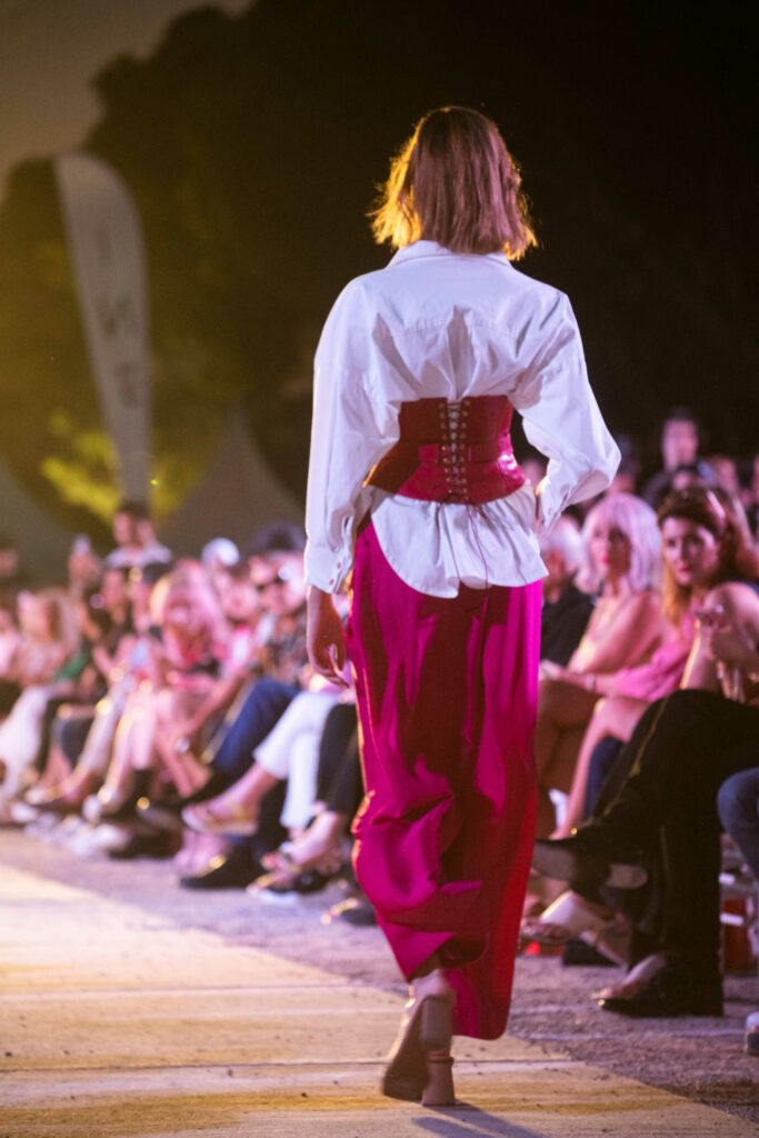 Dans l’ère post-Ben Ali, la Tunis Fashion Week (TNFW) a accompagné l’émergence d’une sous-culture résolument tournée vers l’Occident. Cette ambition se manifeste dans la présence de marques comme Soltana de Fatma Ben Soltane, Calestis, et Eye K d’Inès Kacem, mais aussi par l’émergence de nouveaux talents comme Haroun Ghanmi et Outa. Profondément ancrée dans la tendance durable qui domine l’Europe, Outa, dirigée par Maud Beneteau, a présenté six modèles Couture en denim, un tissu fabriqué à partir de fils de polyester recyclés à partir de déchets plastiques trouvés à Kerkennah, un archipel tunisien dans la mer Méditerranée.