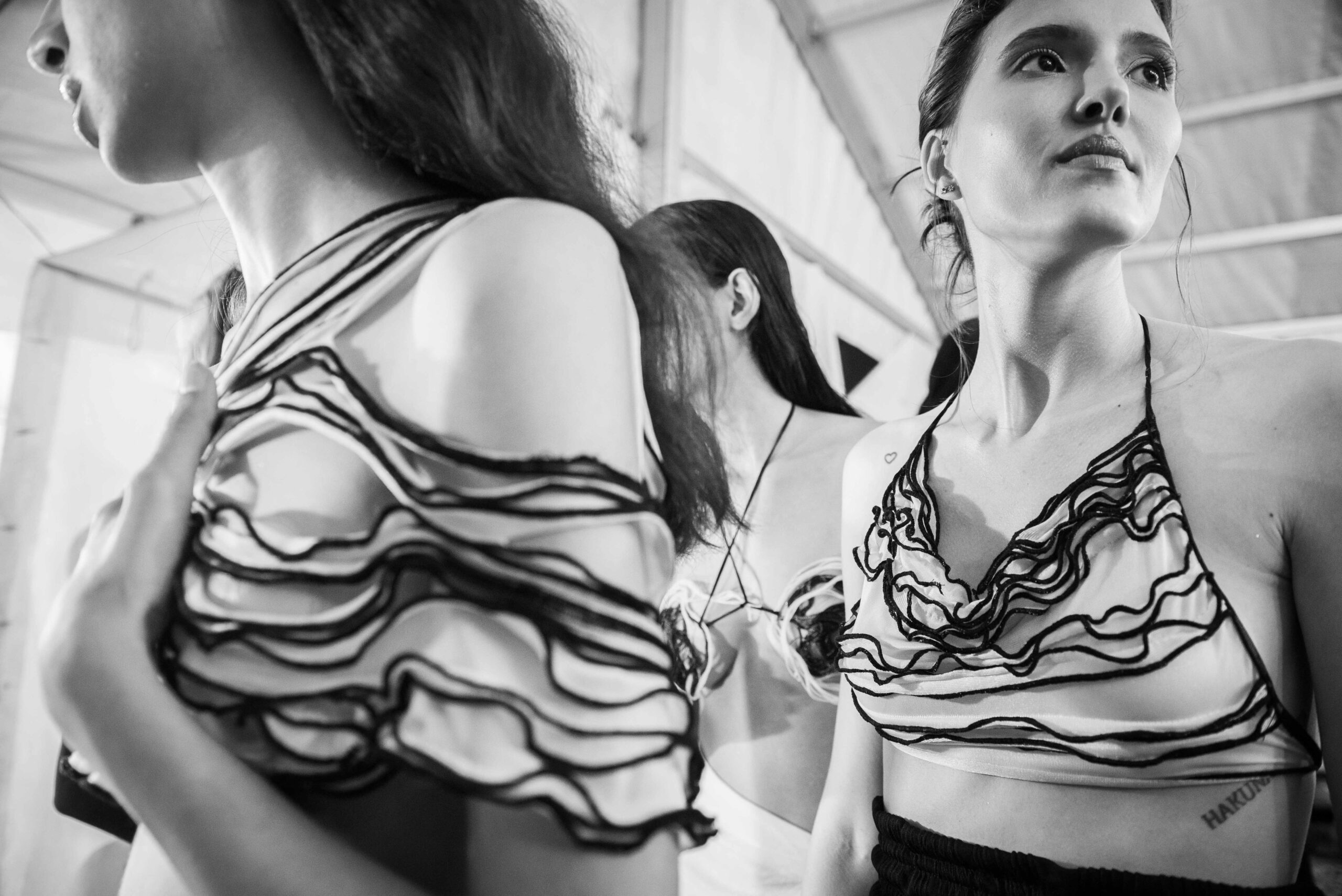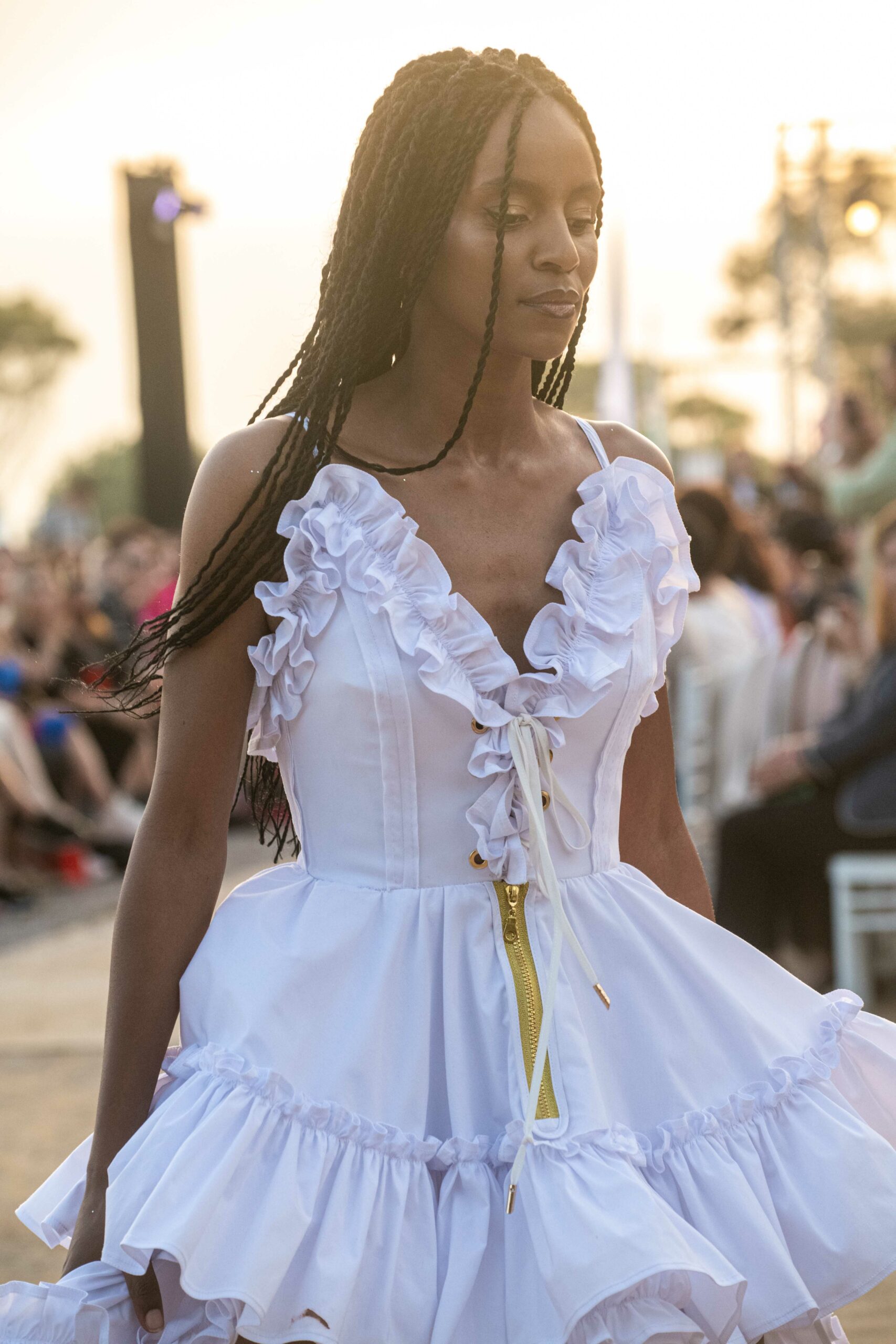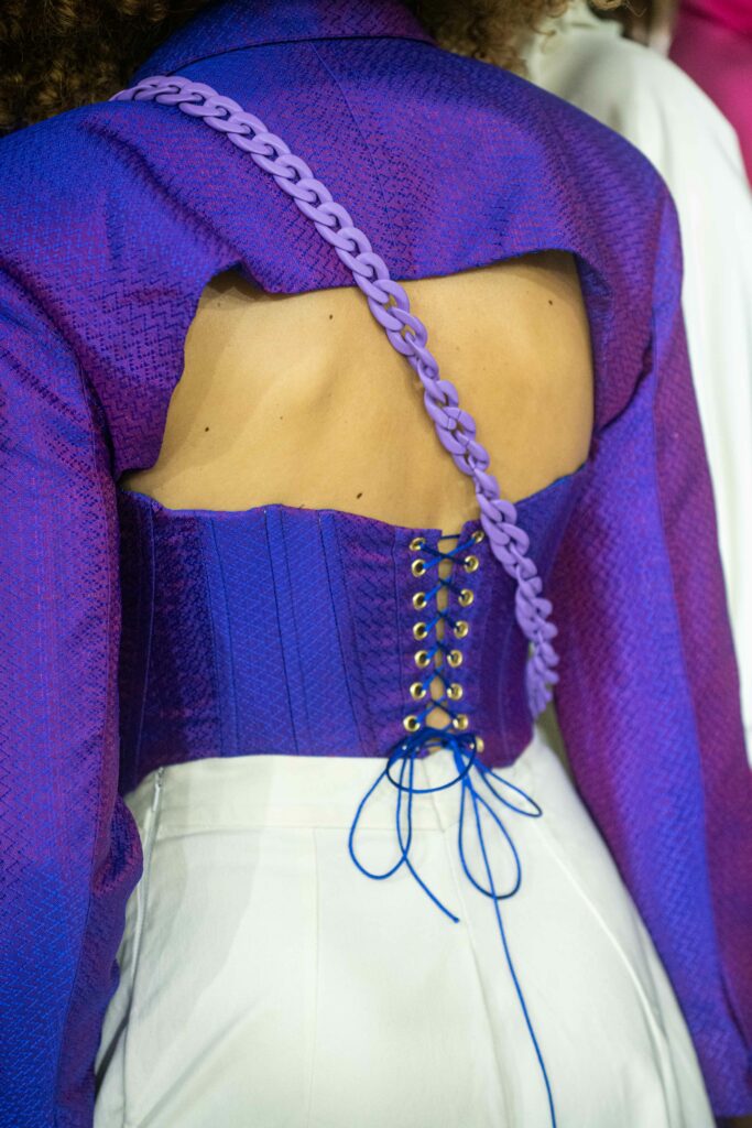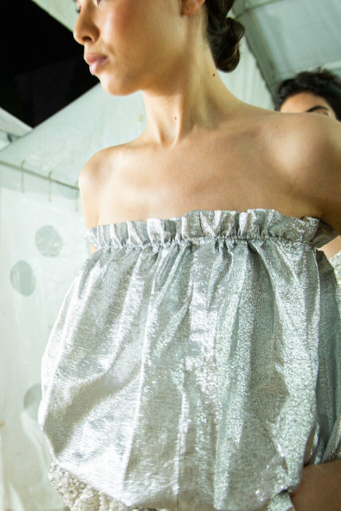 Dans l’ère post-Ben Ali, la Tunis Fashion Week (TNFW) a accompagné l’émergence d’une sous-culture résolument tournée vers l’Occident. Cette ambition se manifeste dans la présence de marques comme Soltana de Fatma Ben Soltane, Calestis, et Eye K d’Inès Kacem, mais aussi par l’émergence de nouveaux talents comme Haroun Ghanmi et Outa. Profondément ancrée dans la tendance durable qui domine l’Europe, Outa, dirigée par Maud Beneteau, a présenté six modèles Couture en denim, un tissu fabriqué à partir de fils de polyester recyclés à partir de déchets plastiques trouvés à Kerkennah, un archipel tunisien dans la mer Méditerranée.