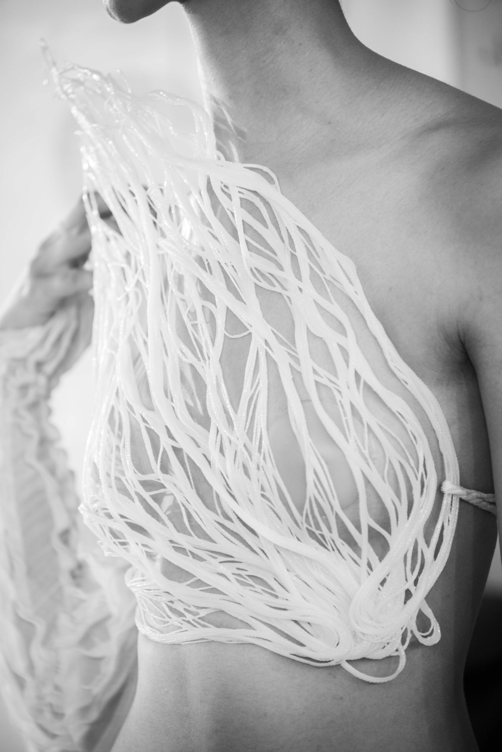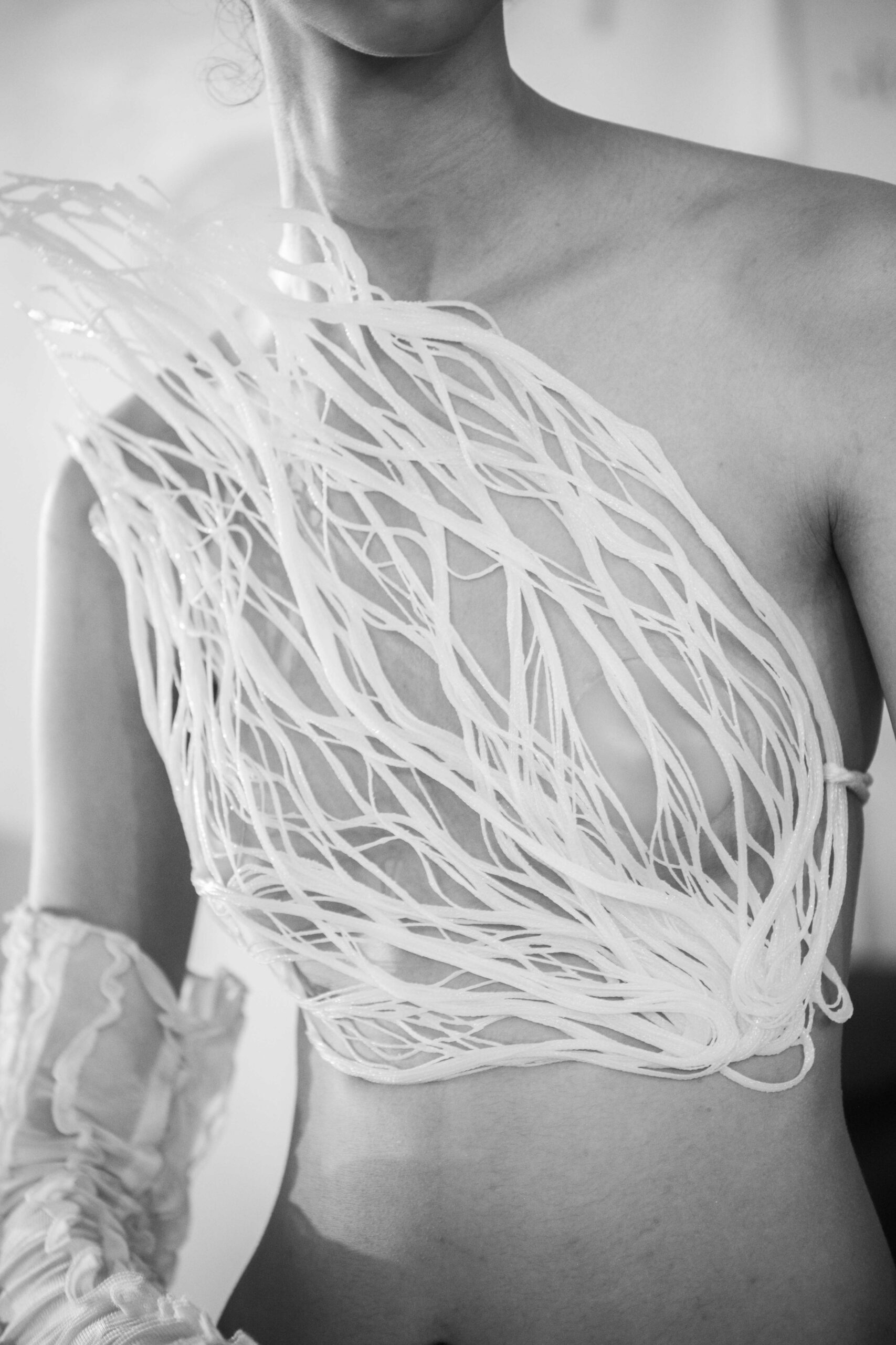 C’est une tendance que la TNFW choisit d’accompagner en sélectionnant des marques plus à même de sensibiliser le marché oriental. C’est le cas de Souraya Sahraoui, Circé, Achraf Baccouch ou Né à Tunis, qui travaille d’ailleurs une couture en dead stocks et recyclage.