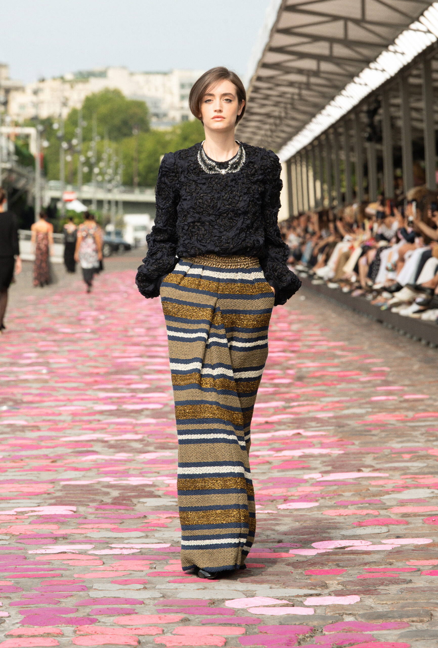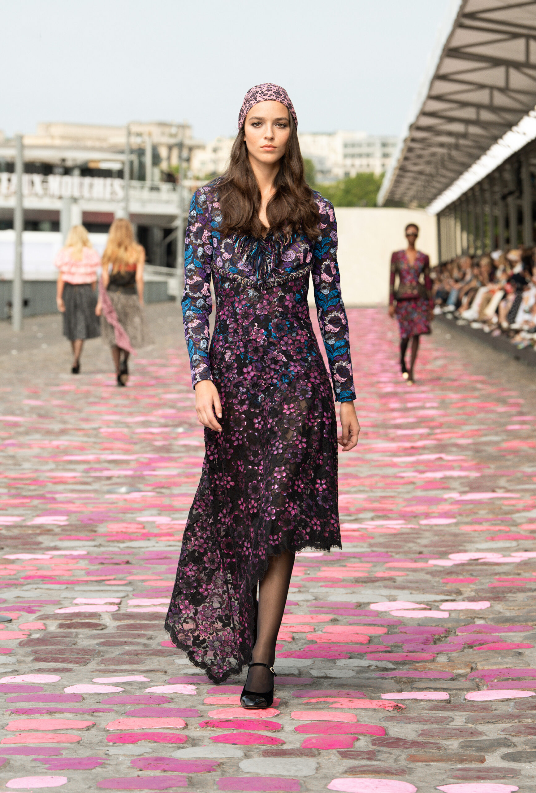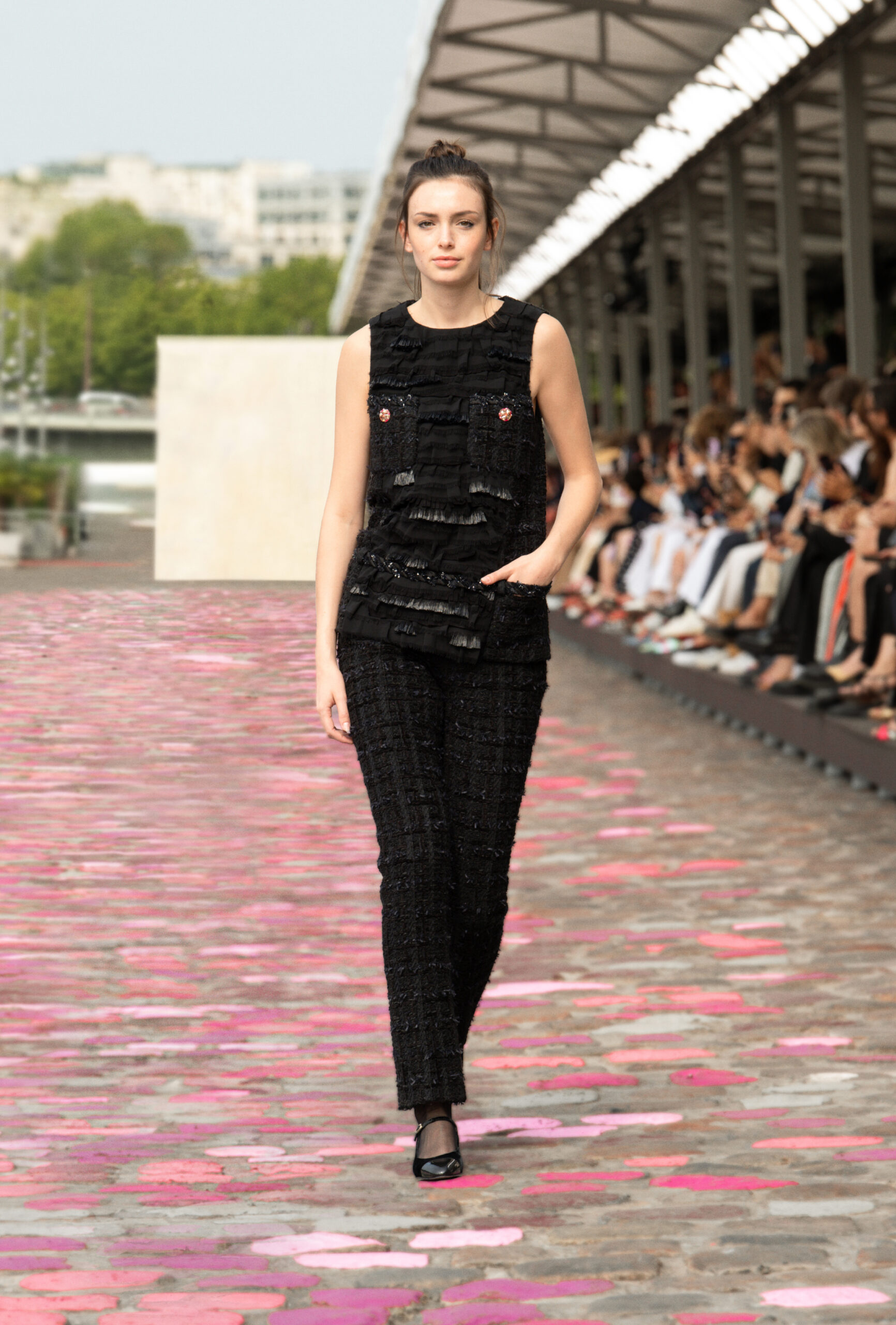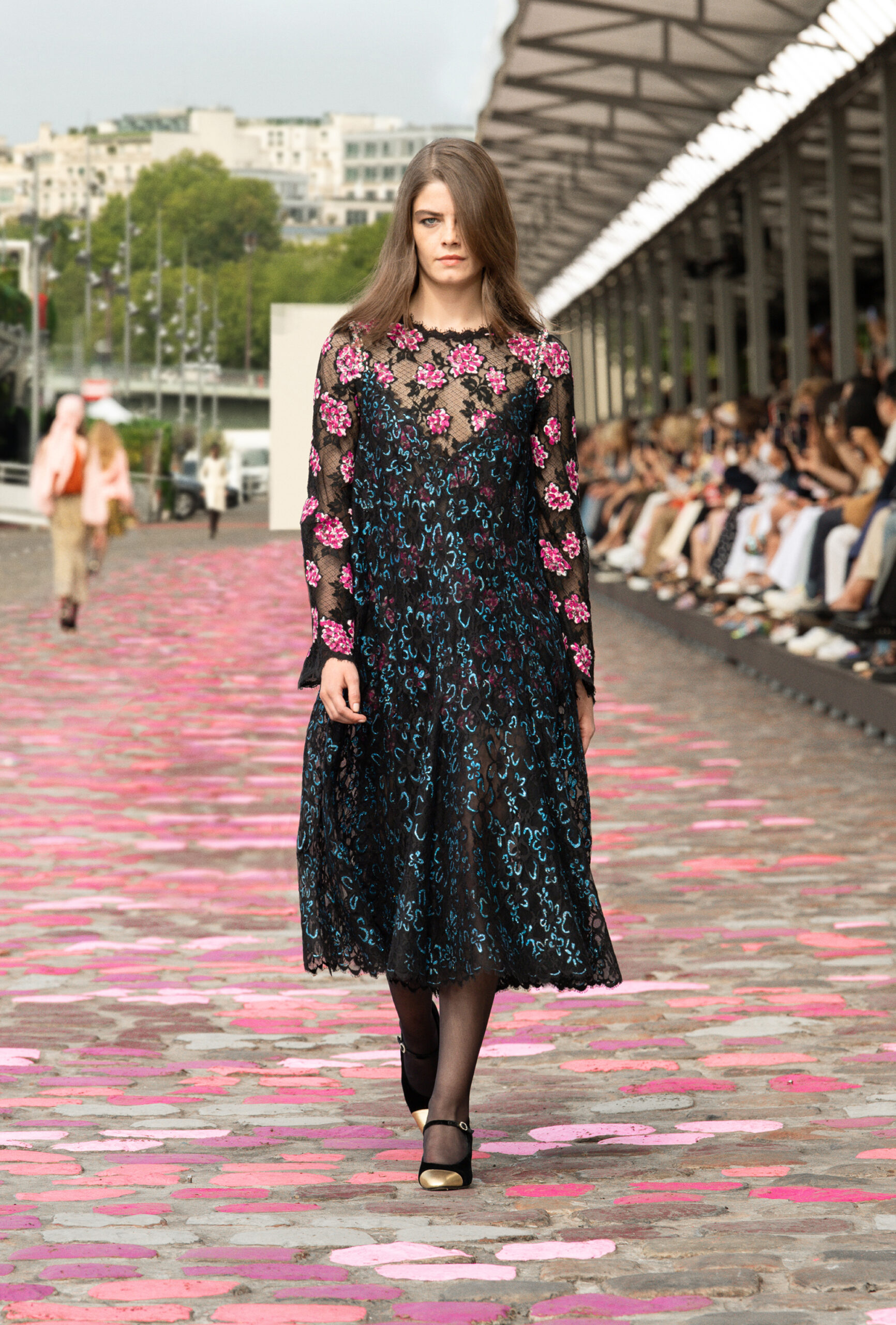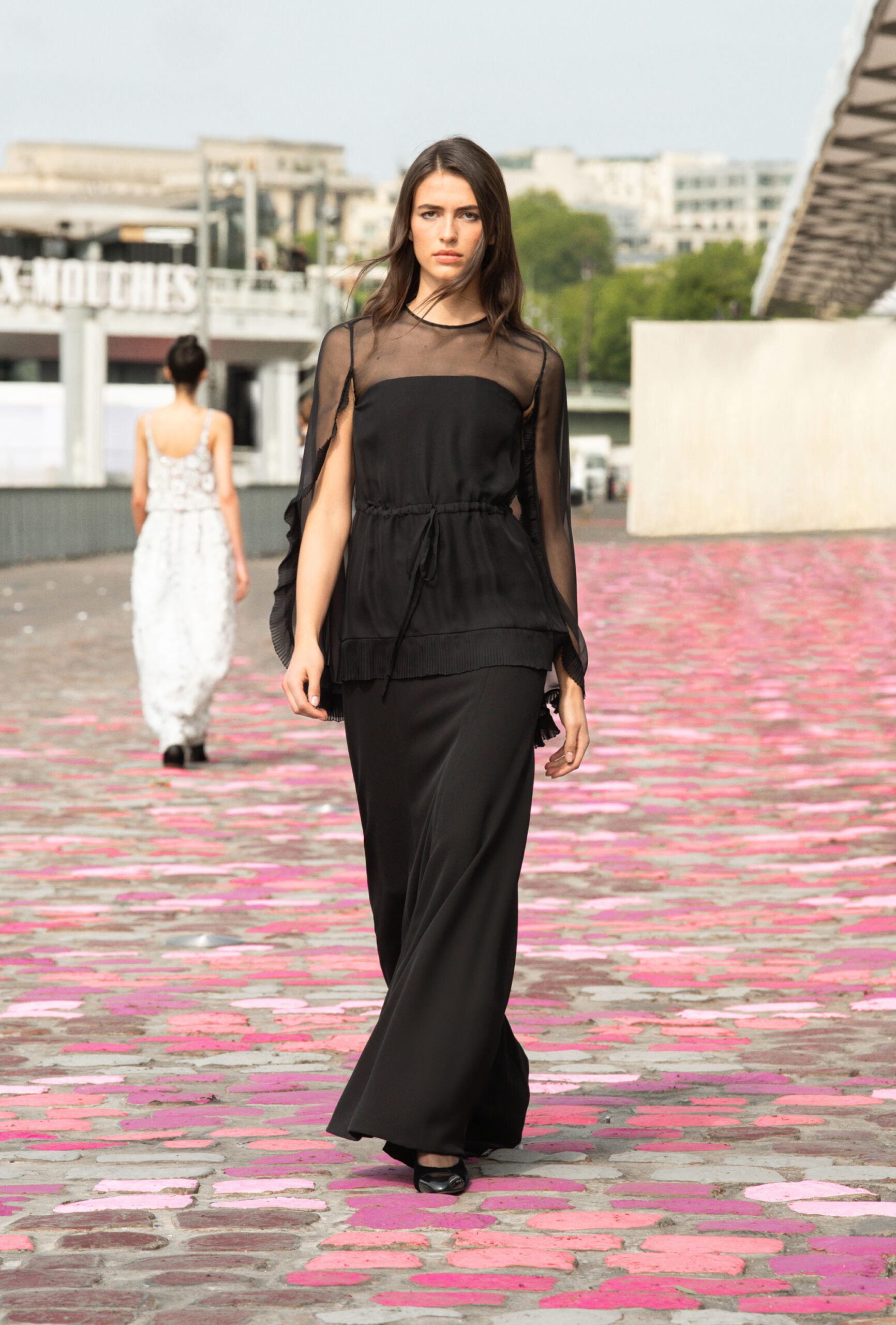 « Si nous sommes à Paris, ajoute-t-elle, nous sommes cette fois-ci dans Paris même, sur les quais. La rue et les pavés colorés appellent à la fois de la sophistication et de la simplicité. » Imaginer un défilé Haute Couture sur les berges de la Seine, avec Vanessa Paradis comme incarnation de l’allure parisienne, c’est voyager à travers un monde d’images et d’émotions, de permanence et de beauté.