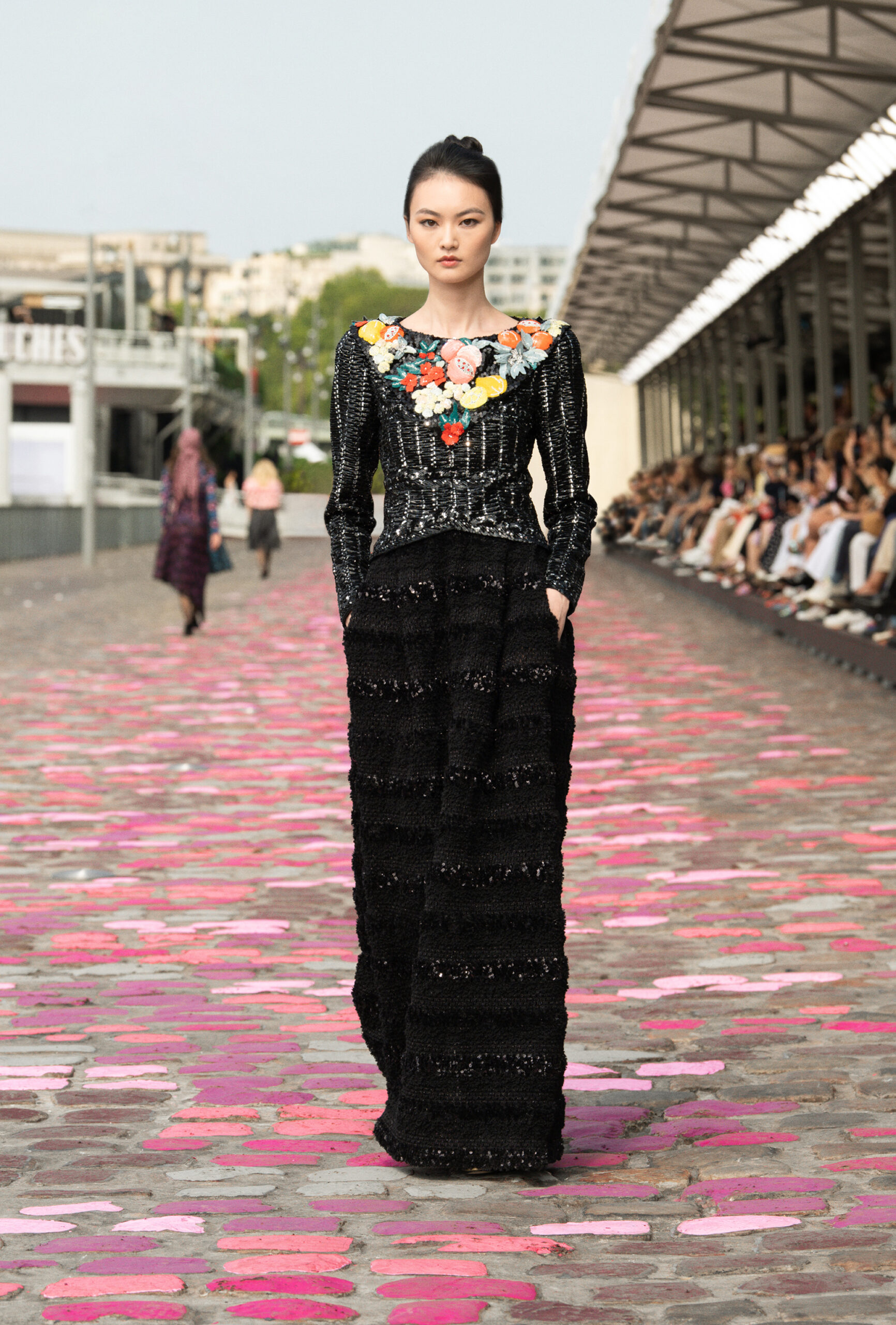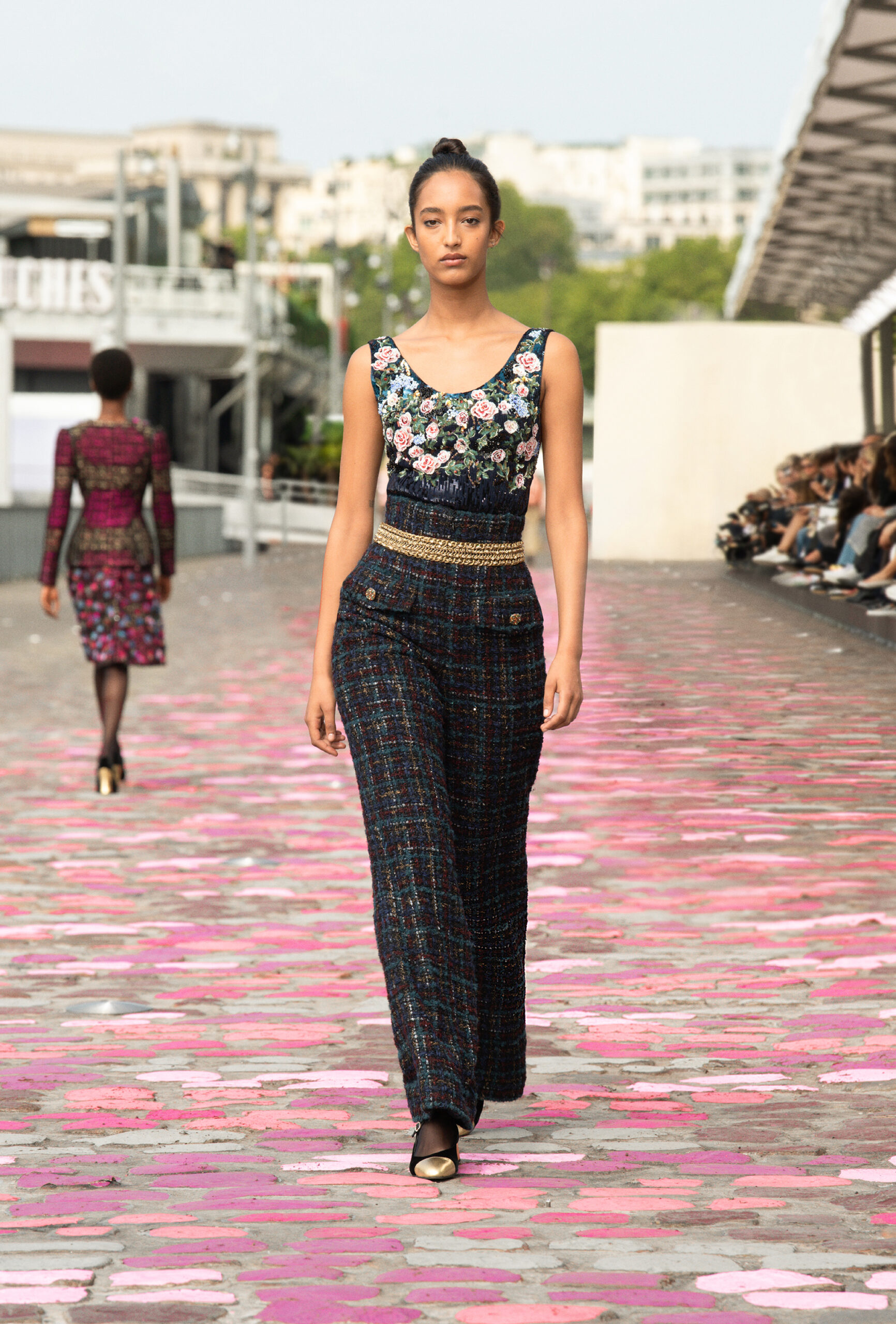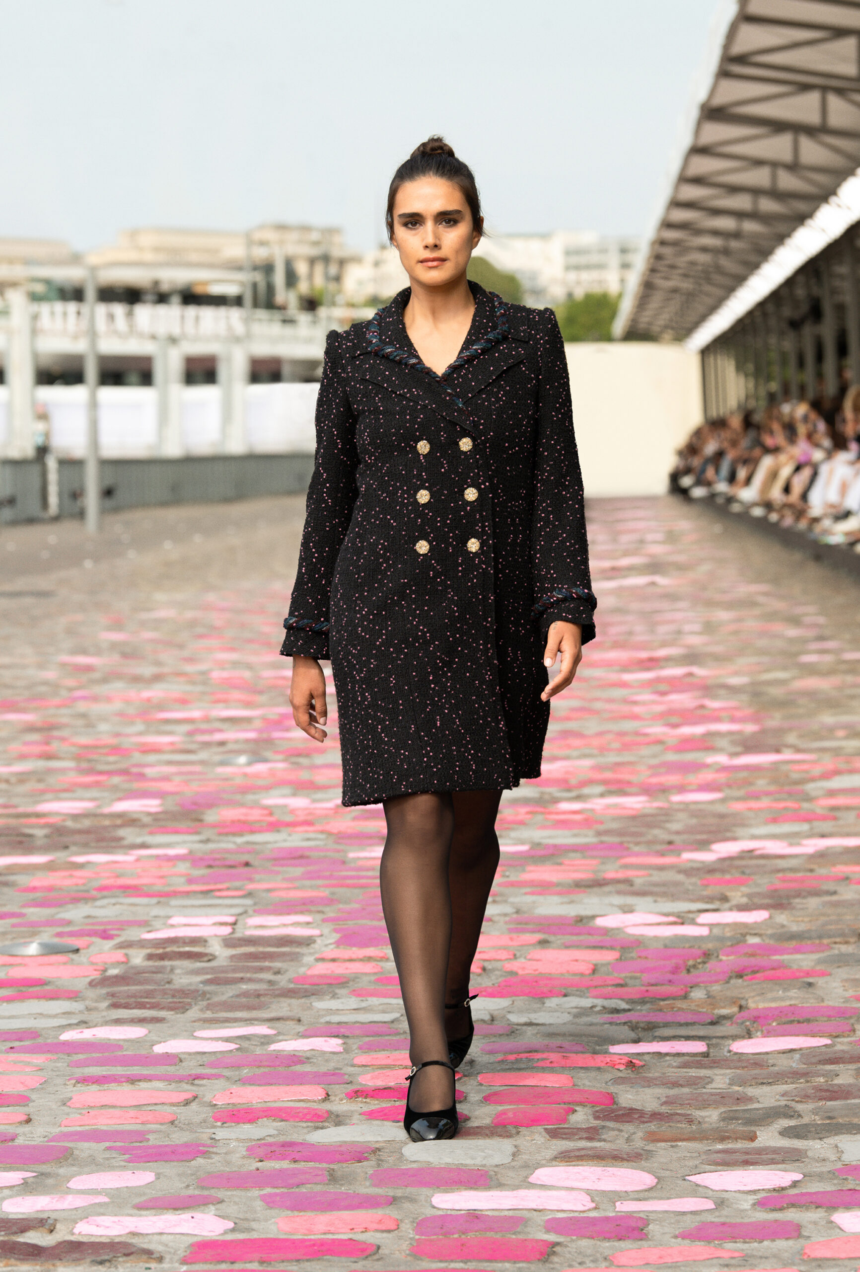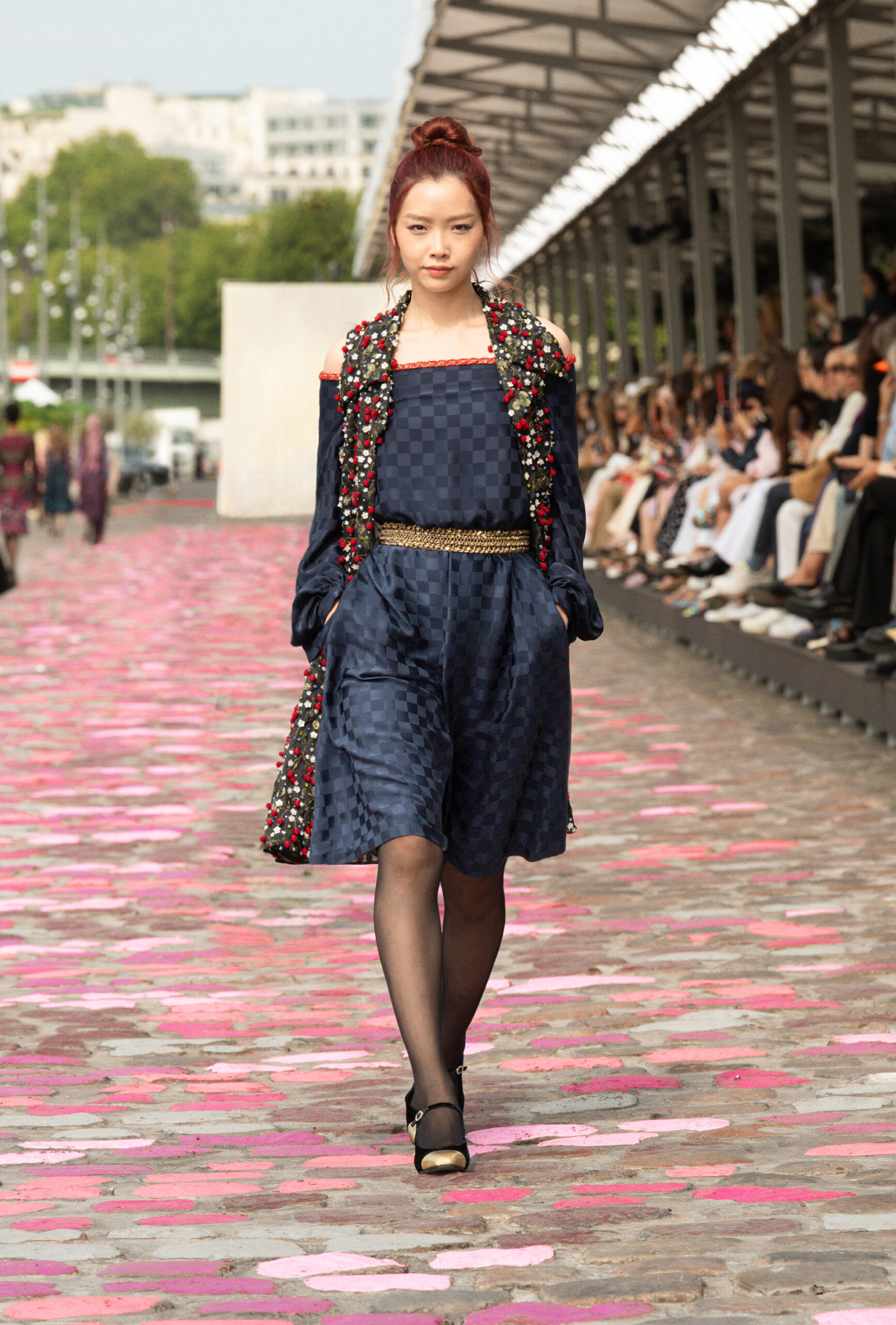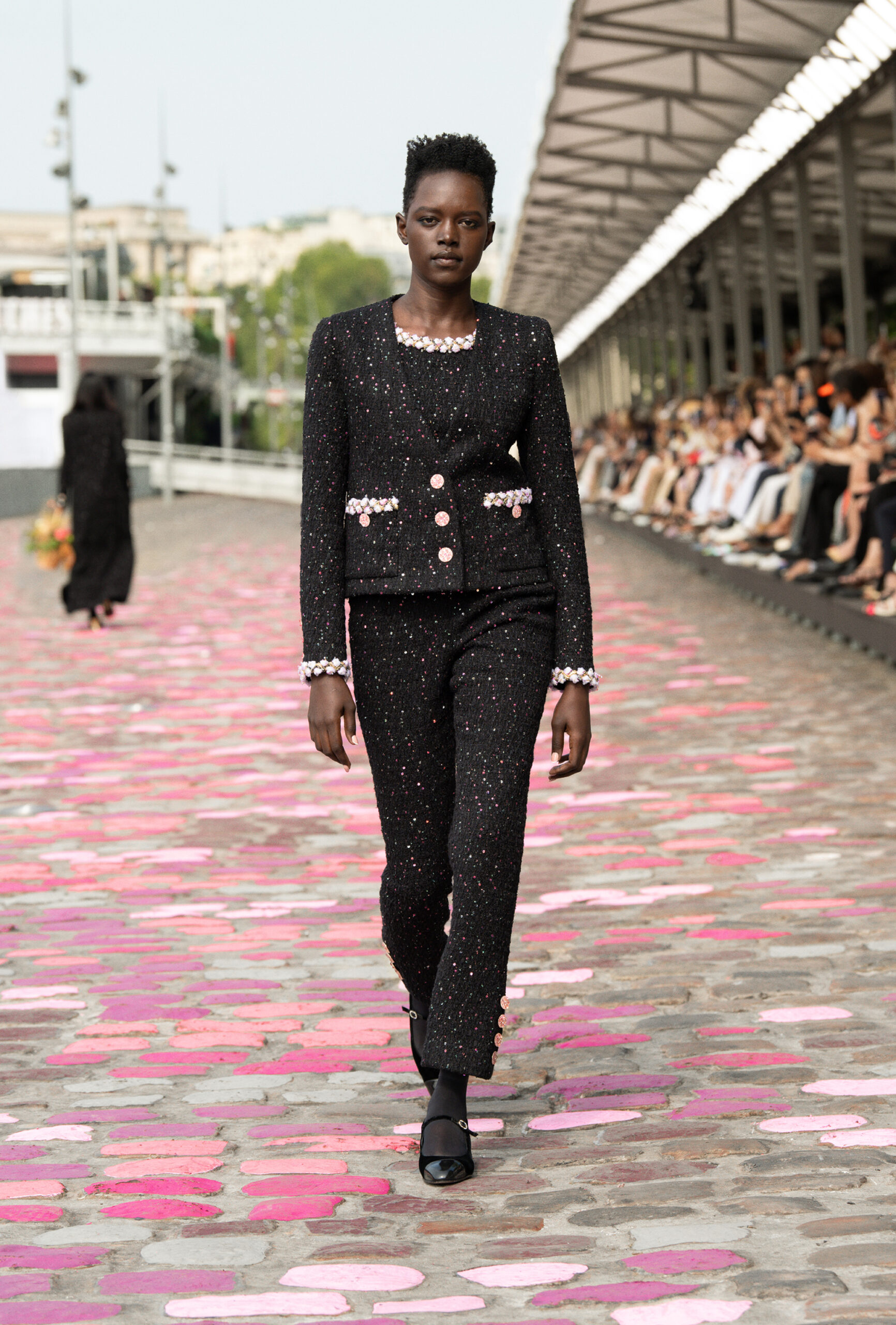 « Si nous sommes à Paris, ajoute-t-elle, nous sommes cette fois-ci dans Paris même, sur les quais. La rue et les pavés colorés appellent à la fois de la sophistication et de la simplicité. » Imaginer un défilé Haute Couture sur les berges de la Seine, avec Vanessa Paradis comme incarnation de l’allure parisienne, c’est voyager à travers un monde d’images et d’émotions, de permanence et de beauté.