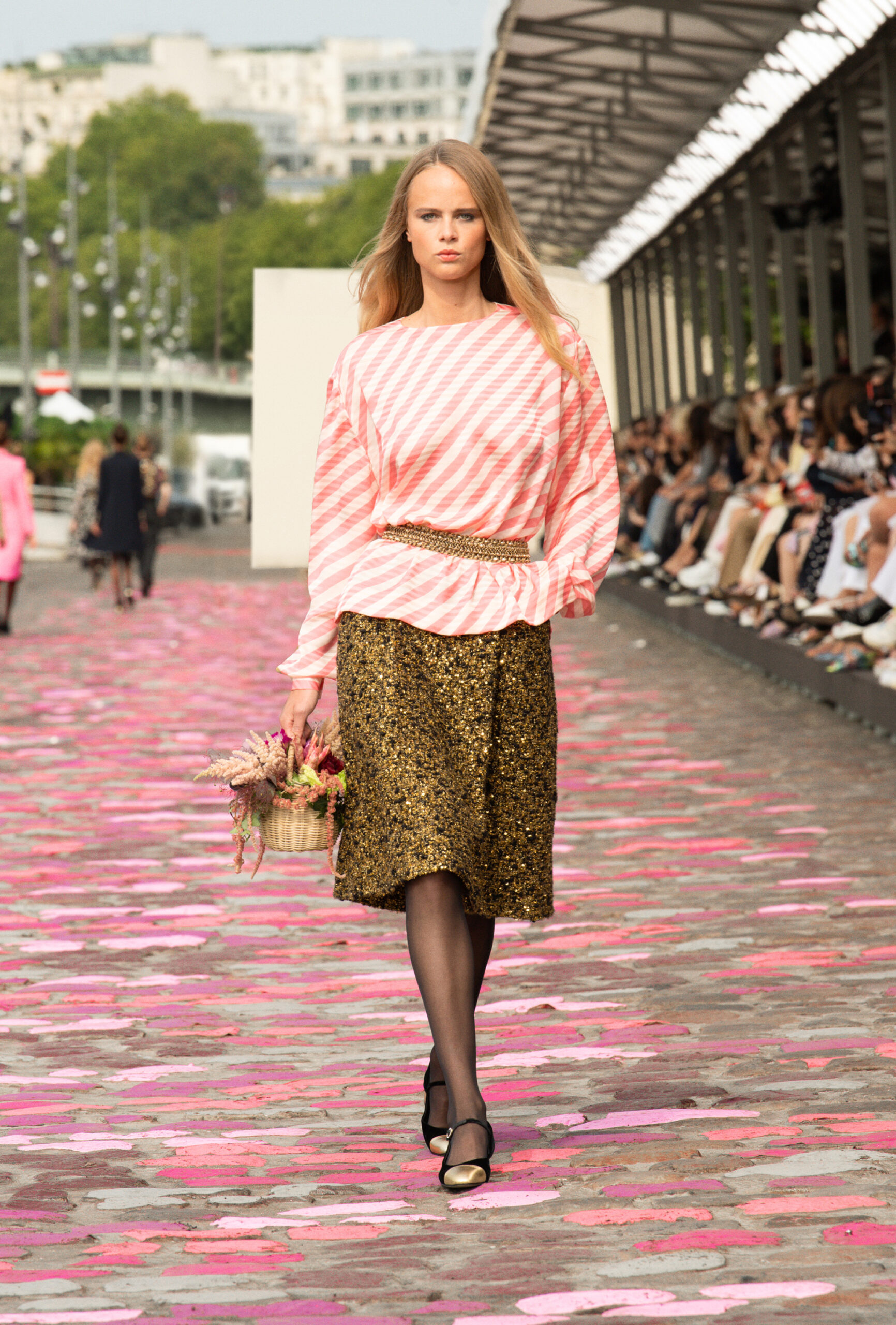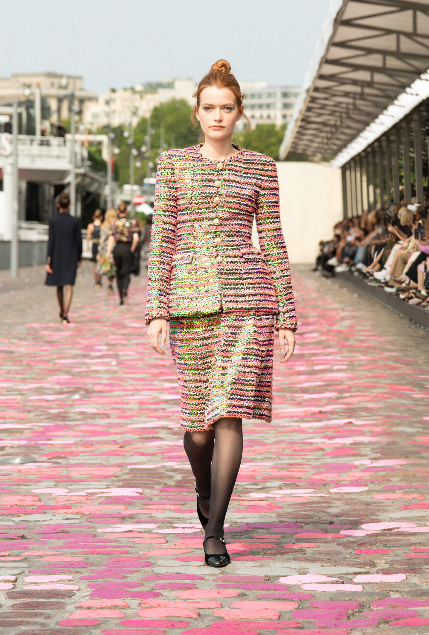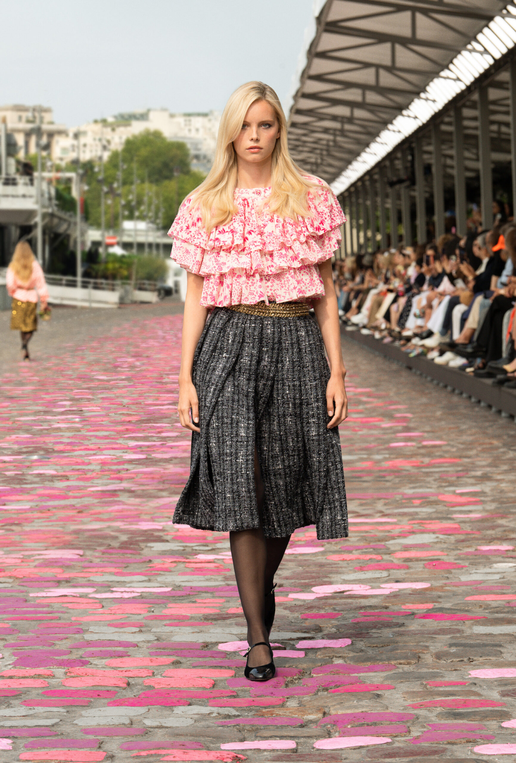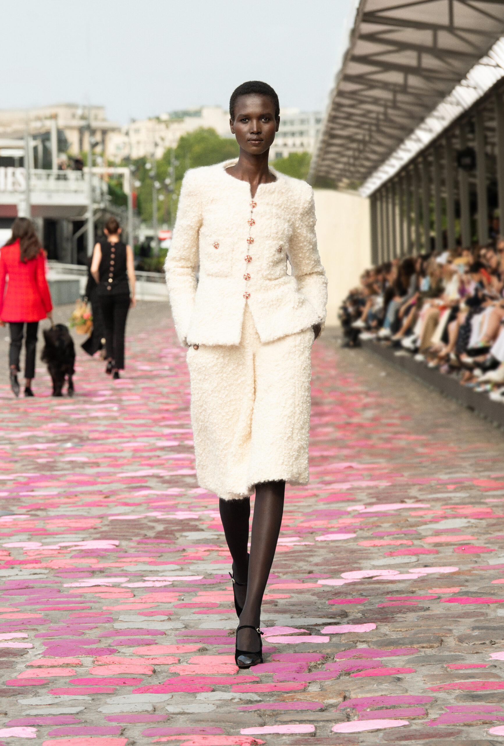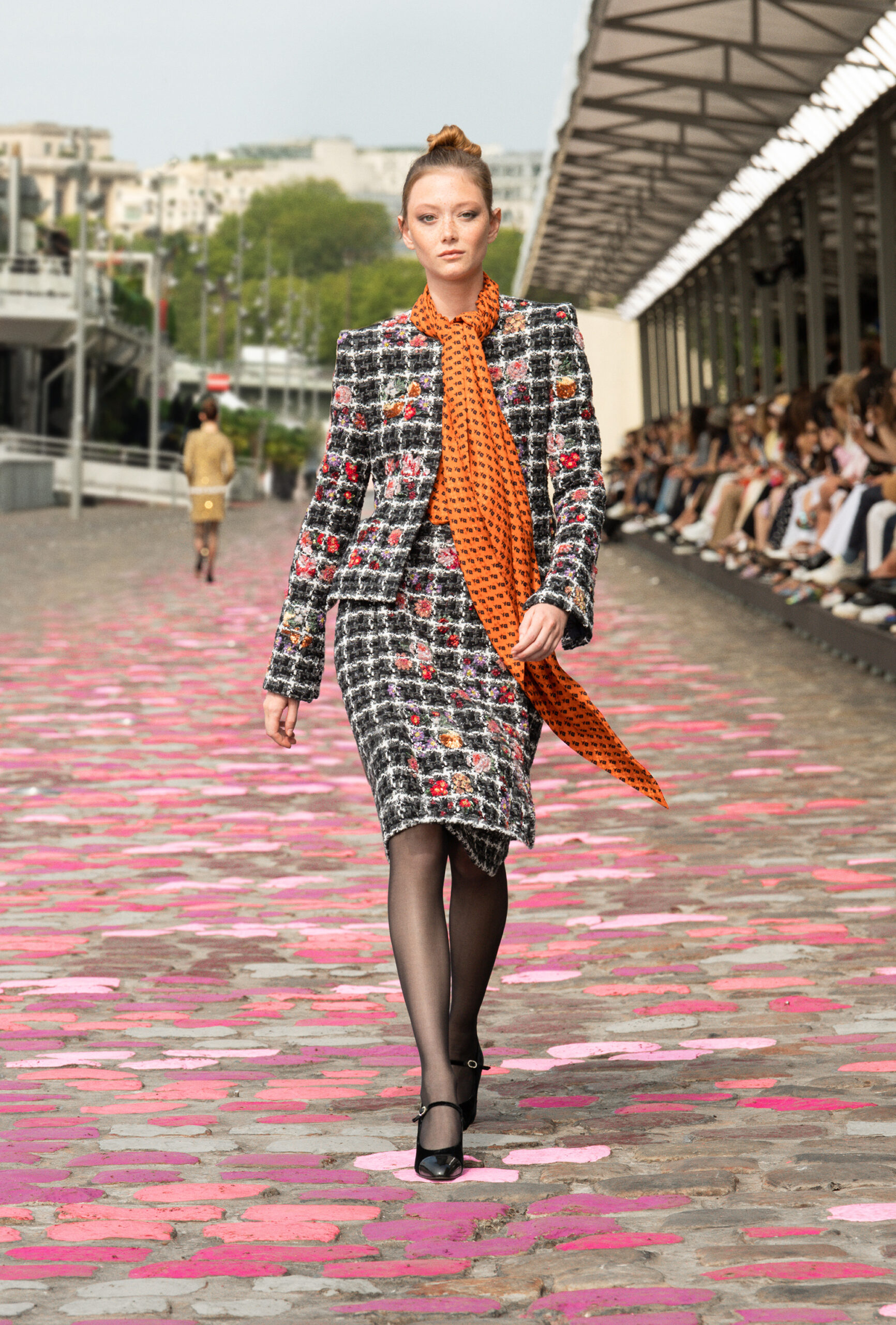 « Si nous sommes à Paris, ajoute-t-elle, nous sommes cette fois-ci dans Paris même, sur les quais. La rue et les pavés colorés appellent à la fois de la sophistication et de la simplicité. » Imaginer un défilé Haute Couture sur les berges de la Seine, avec Vanessa Paradis comme incarnation de l’allure parisienne, c’est voyager à travers un monde d’images et d’émotions, de permanence et de beauté.