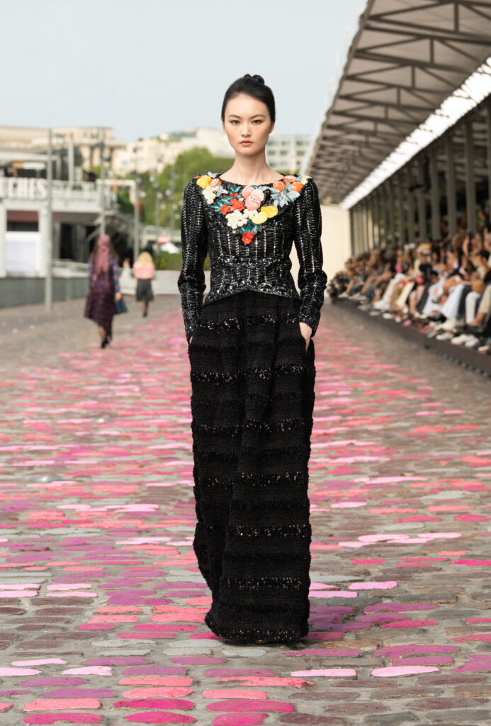 La collection Haute Couture Automne-Hiver 2023/24 conçue par Virginie Viard est un mélange de contrastes et d’équilibre, mettant en valeur la sensibilité et l’audace d’une Parisienne. Son charme singulier, souvent indéfinissable, réside dans sa capacité à renverser les conventions et à réunir ce que l’on préfère habituellement séparer, classer et hiérarchiser.