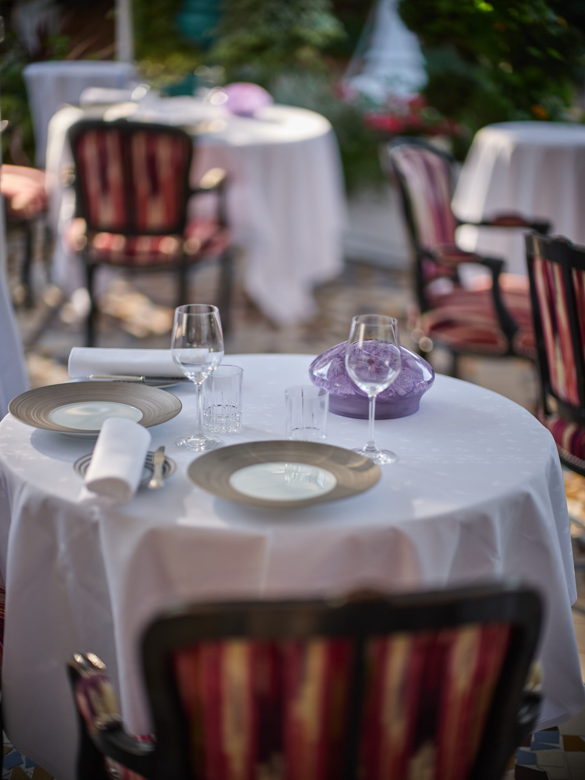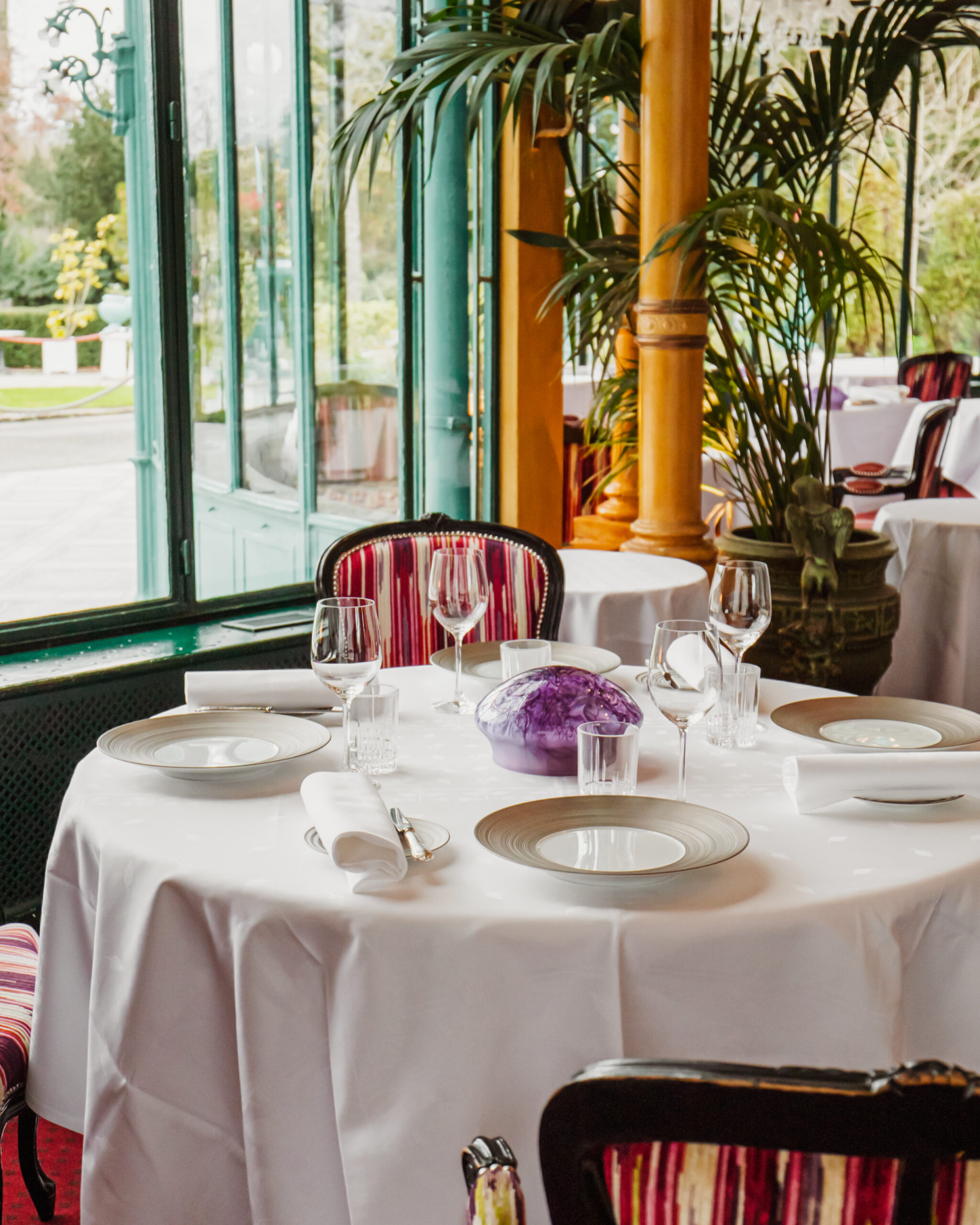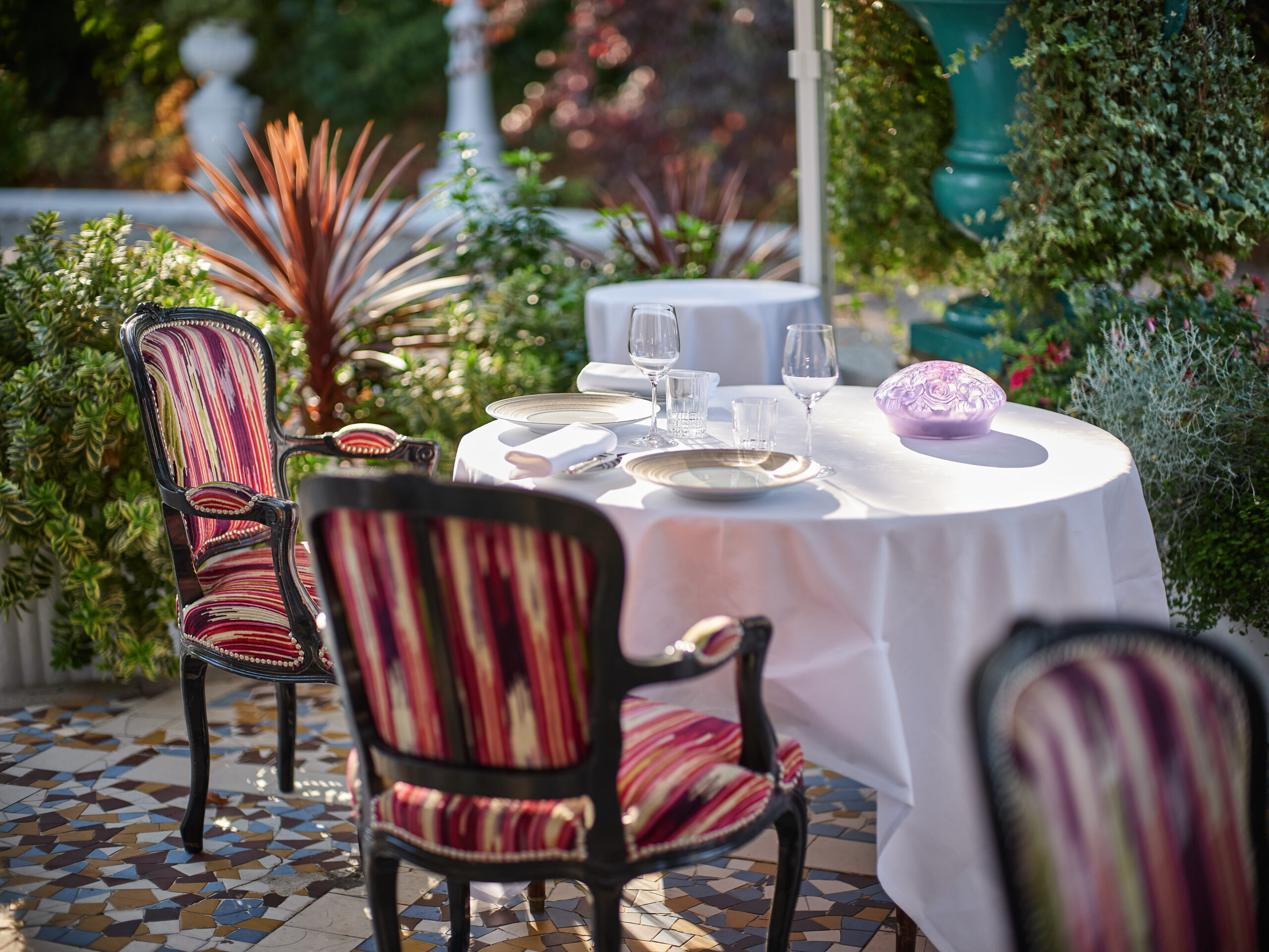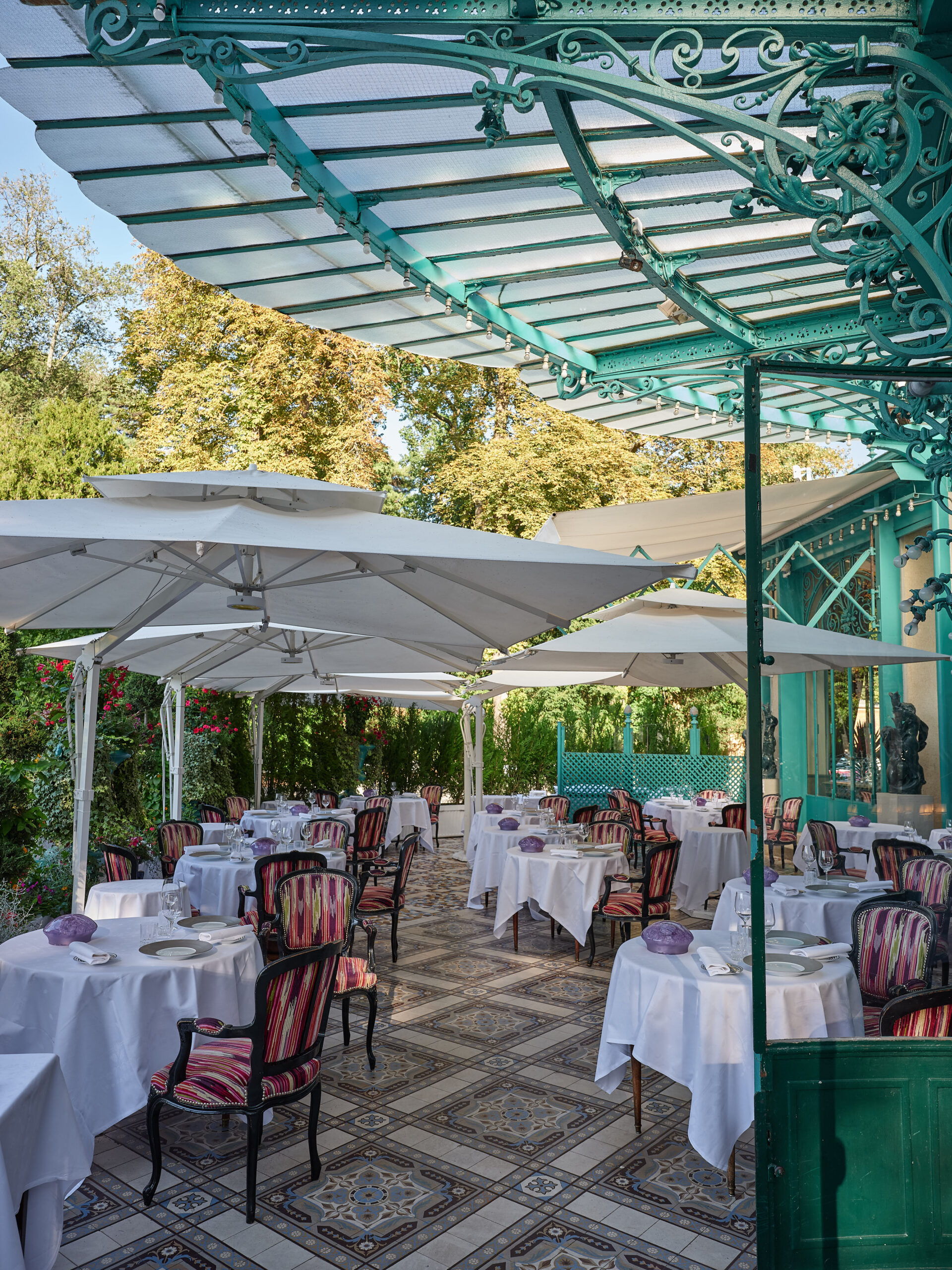 En été, le restaurant s’ouvre vers l’extérieur, la terrasse devient le cœur de l’établissement, offrant aux convives une parenthèse enchantée baignée de soleil. À quelques mètres, l’eau de la cascade ruisselle, tandis que la végétation luxuriante du Bois de Boulogne et le calme environnant procurent un sentiment d’isolement bienvenu loin du tumulte de la ville.