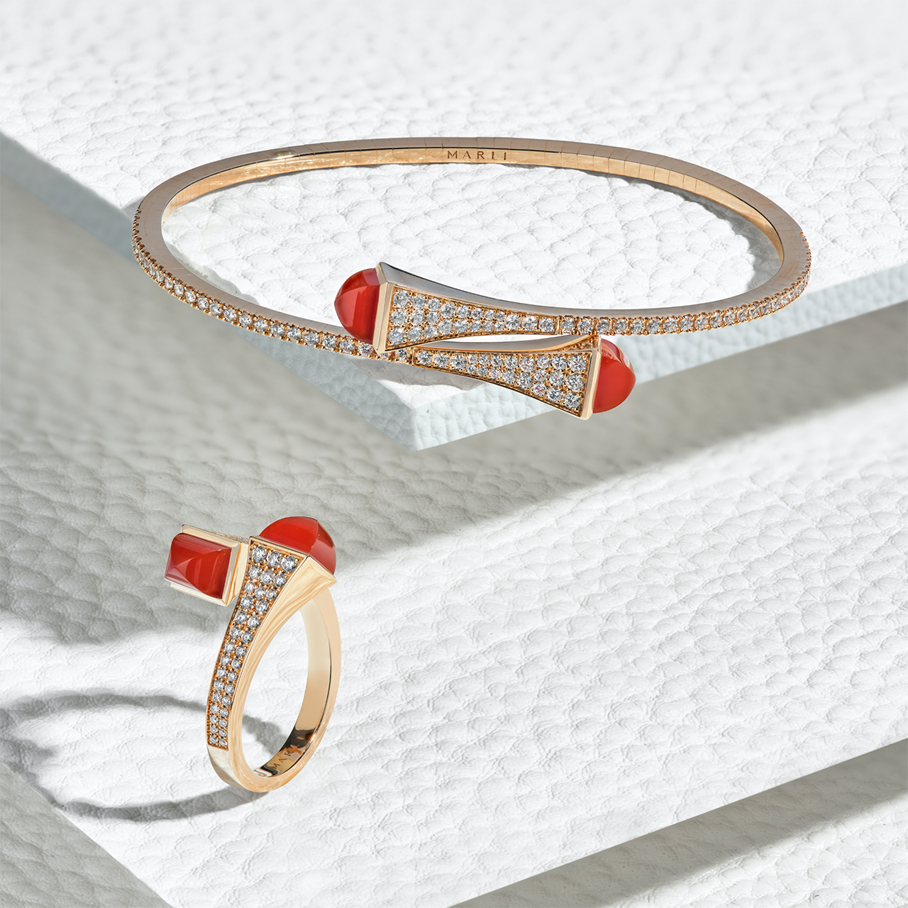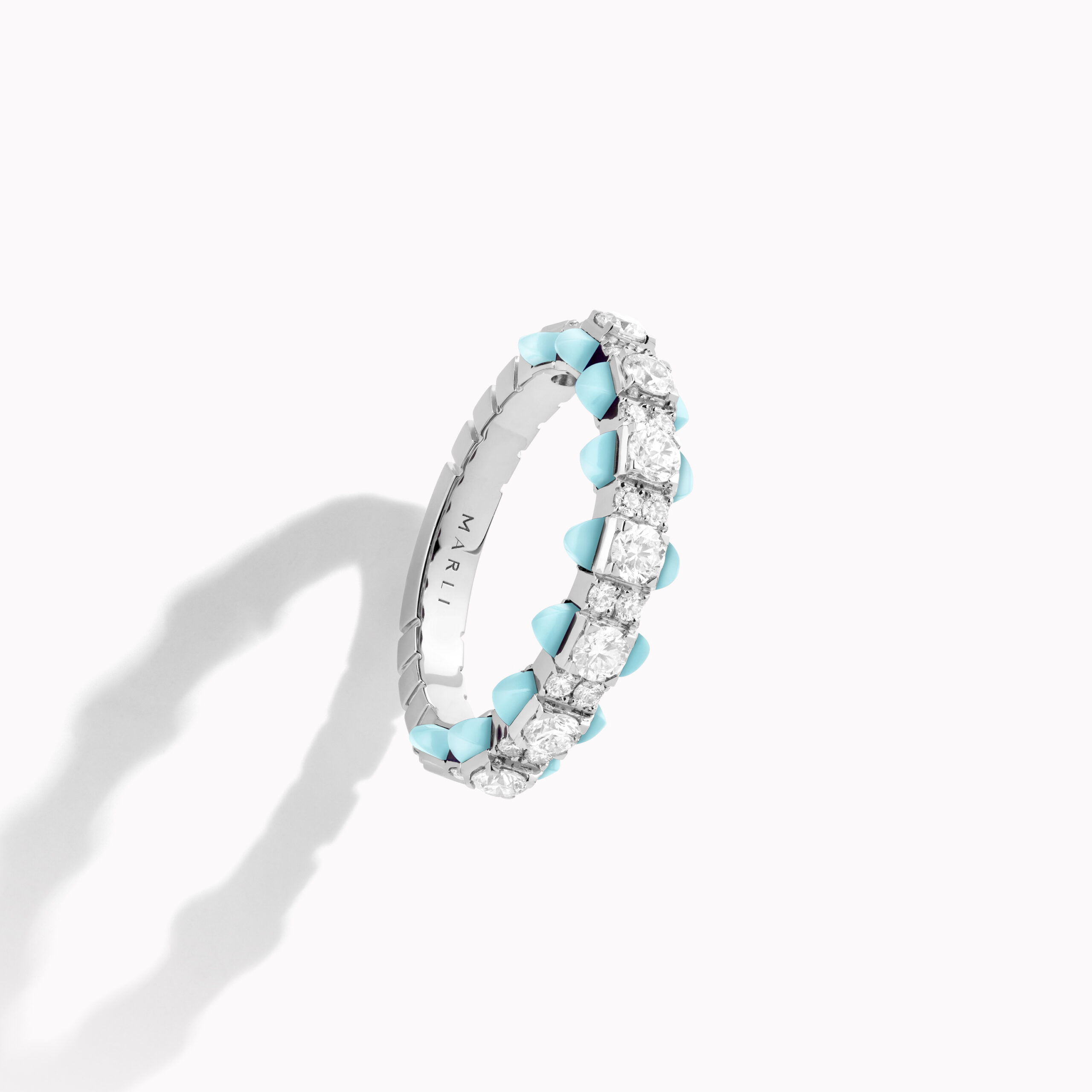 Chaque création MARLI est réalisée à la main grâce au savoir-faire des artisans joailliers, qui repoussent les limites de la création. Les bijoux MARLI sont conçus en or 18 carats, et une attention particulière est portée à la sélection et à la taille des diamants pour maximiser leur éclat. La recherche et le développement sont au cœur du processus de création de MARLI, permettant à la maison de redéfinir la beauté par l’innovation. MARLI s’approvisionne en or, diamants et pierres précieuses 100% éthiques, s’engageant ainsi à préserver la planète et à promouvoir l’égalité des chances en matière d’emploi et la protection des droits de l’homme et du travail.