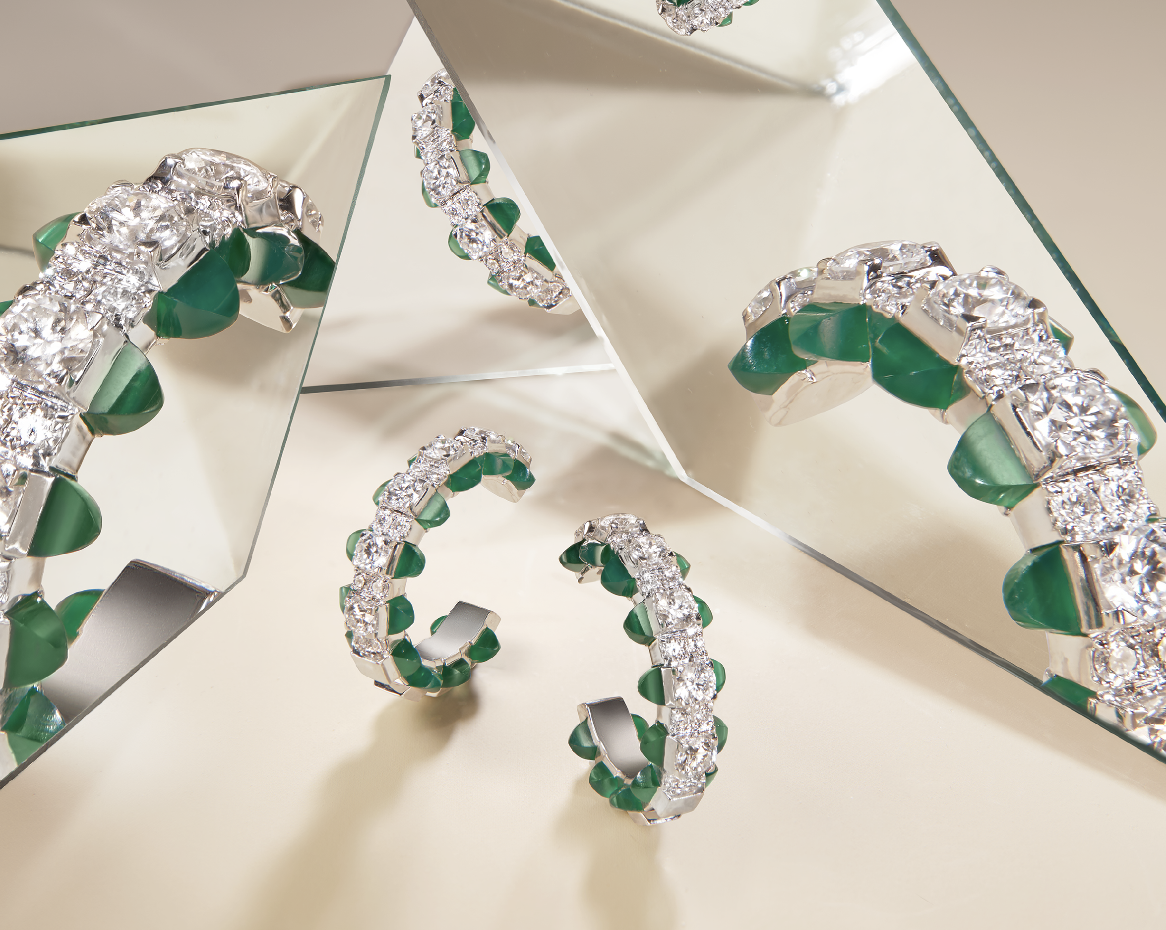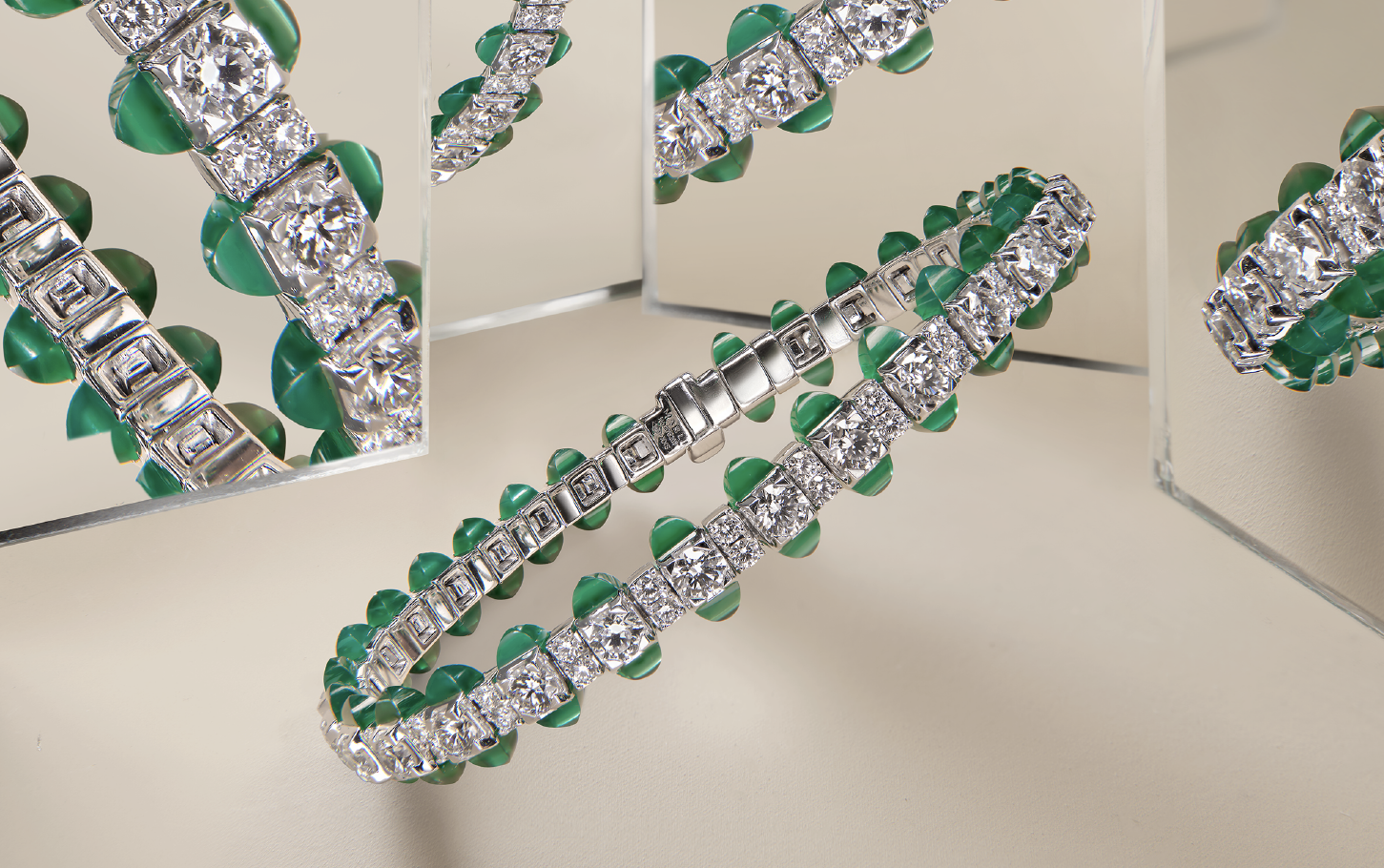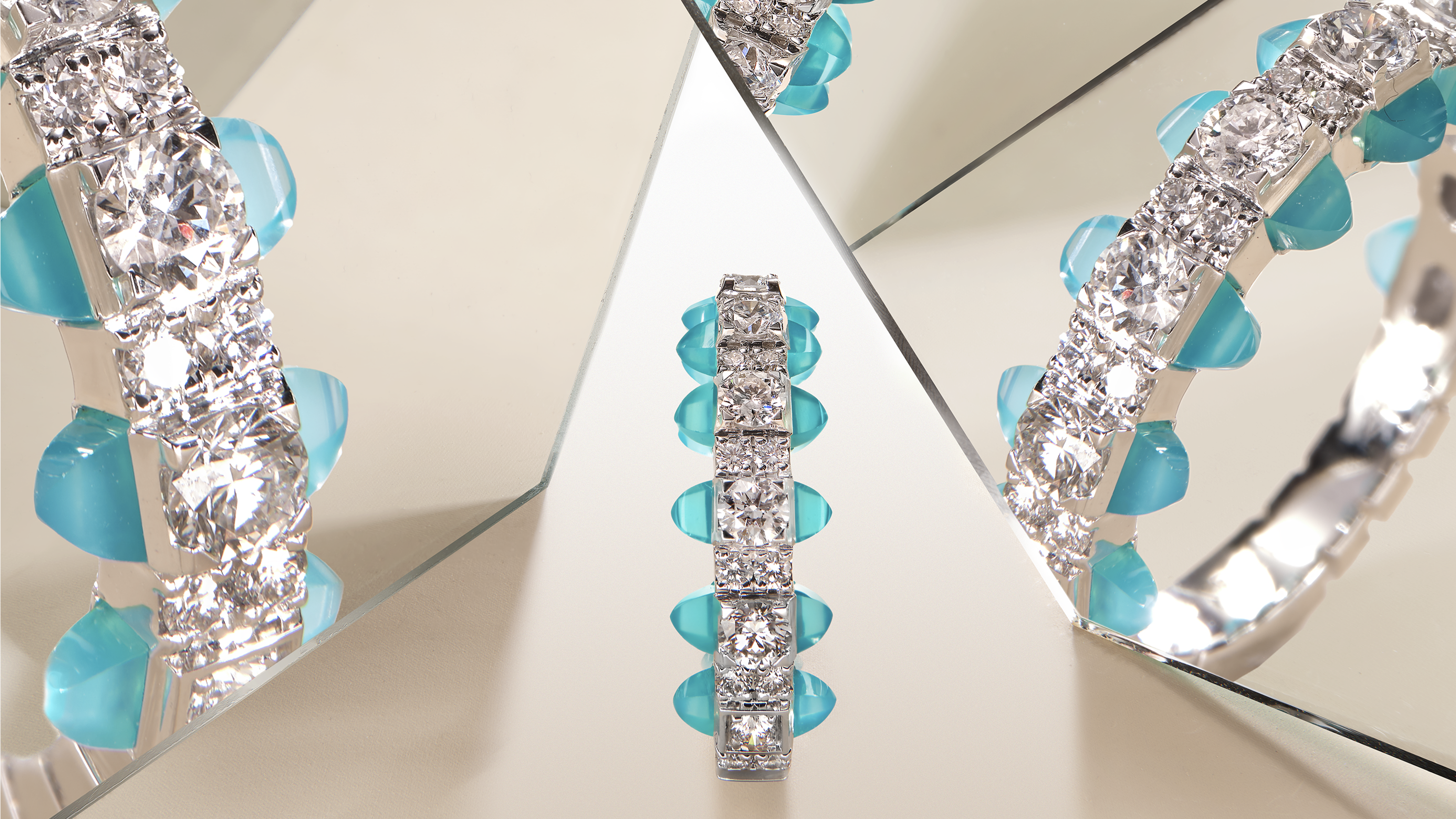 2. Collection TIP TOP : La collection Tip-Top revisite le bracelet tennis traditionnel avec une touche de modernité et de contemporanéité. Les bagues, les bracelets et les colliers, ornés de rangées de diamants, sont associés à une sélection variée de pierres fines taillées en forme pyramidale, signature de la maison.
