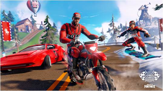La première expérience « Race to Greatness » par Polo Ralph Lauren sera lancée le 3 août 2023. Cette île unique sur Fortnite, dont les contours s’inspirent du poney emblématique de Polo, offre trois topographies uniques : le hangar à avions de Ralph, les montagnes Rocheuses, et les Grandes Forêts.
