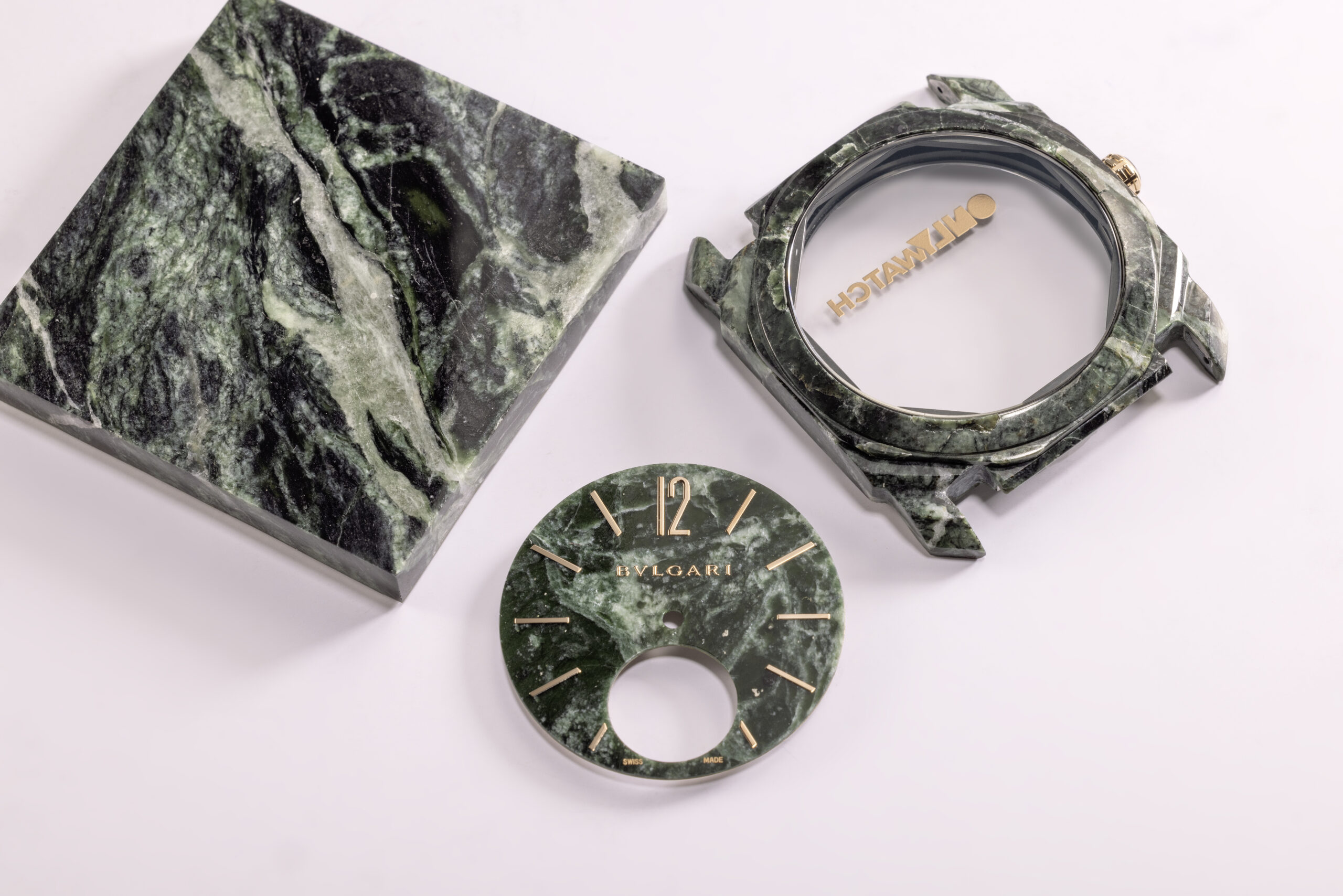 En réponse à cette grande cause, les designers, ingénieurs et horlogers de Bulgari ont une fois de plus repoussé leurs limites pour proposer une pièce unique exceptionnelle pour Only Watch 2023. Il a fallu près de cinq ans de recherche, de changements de direction, de redéploiement et de mise au point pour réaliser ce projet sans précédent : une montre en marbre.