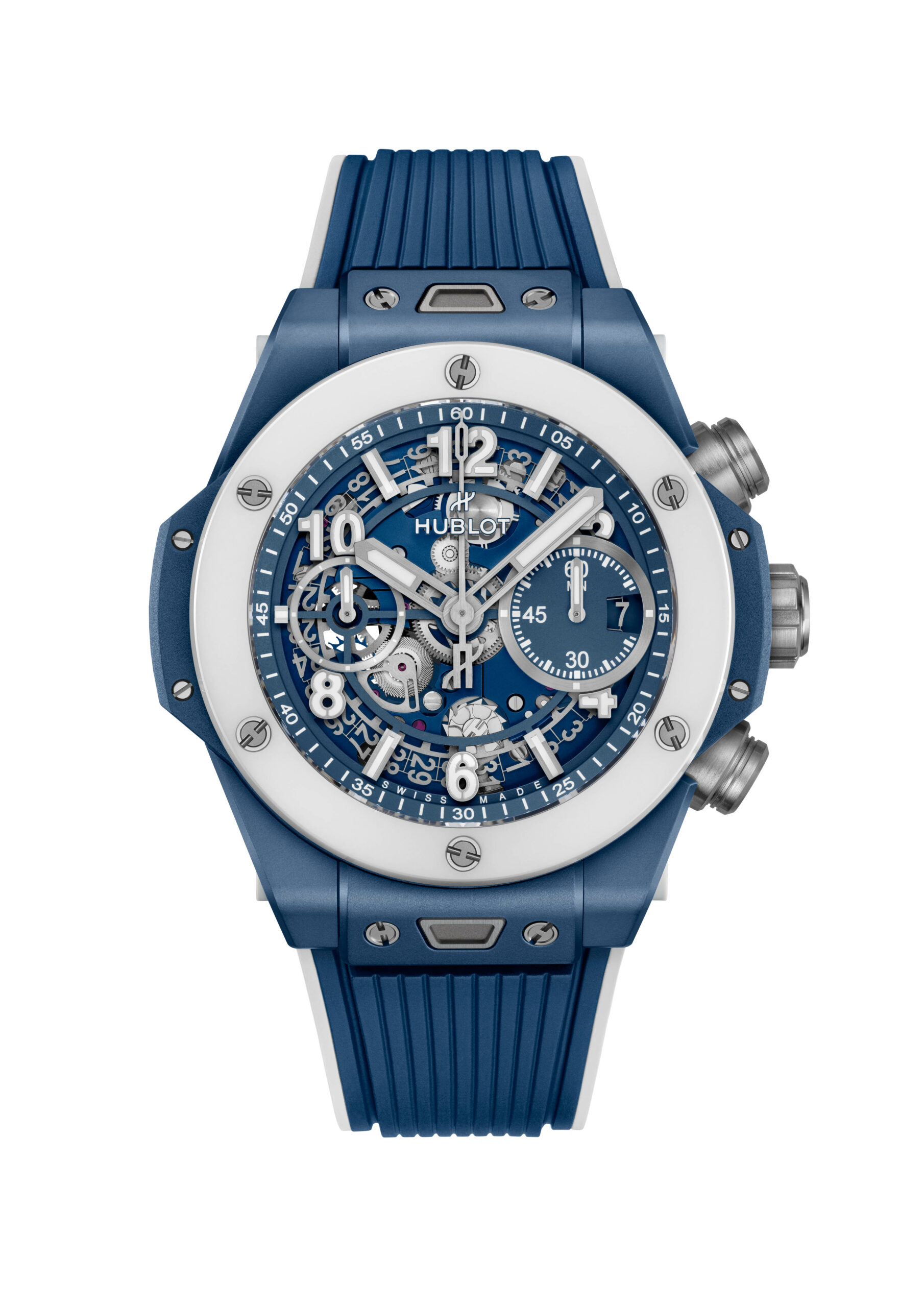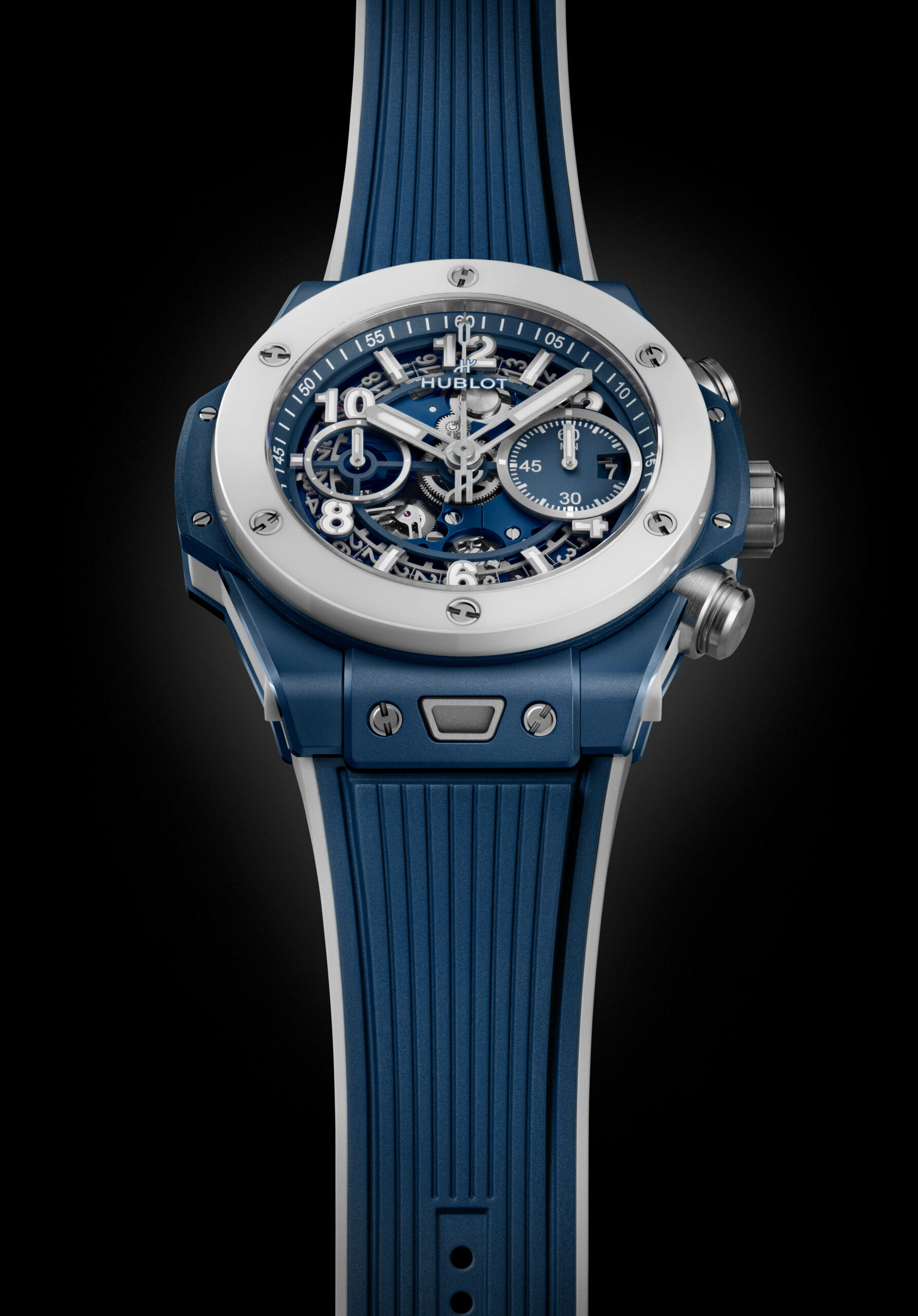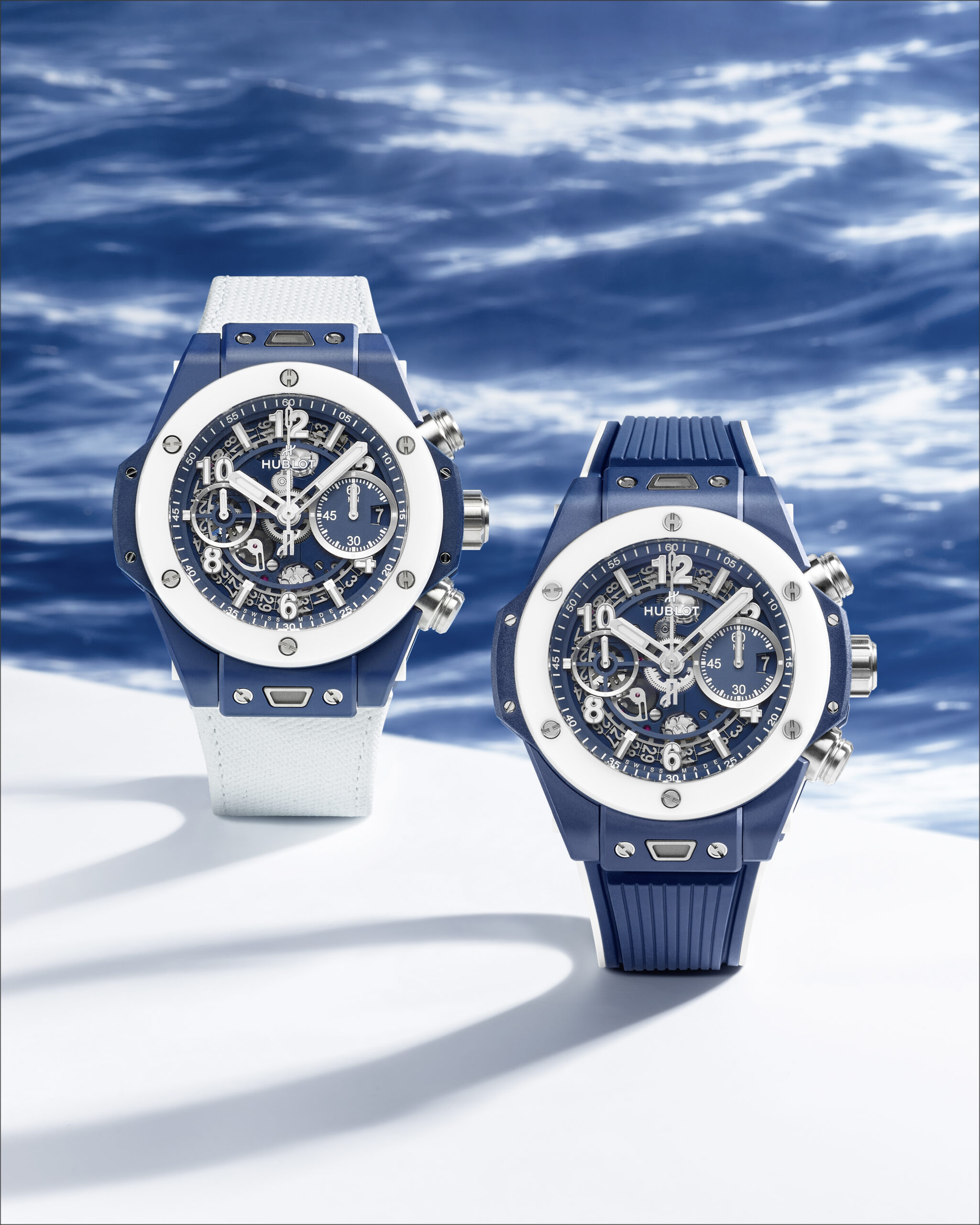 Avec un boîtier de 42 mm en céramique blanche, un matériau high-tech inoxydable et hypoallergénique, la montre abrite le mouvement 100% manufacture Unico chronographe à remontage automatique HUB1280. L’esthétique est complétée par deux bracelets, l’un en caoutchouc naturel ligné et l’autre en cuir de veau blanc, tous deux assortis au cadran.