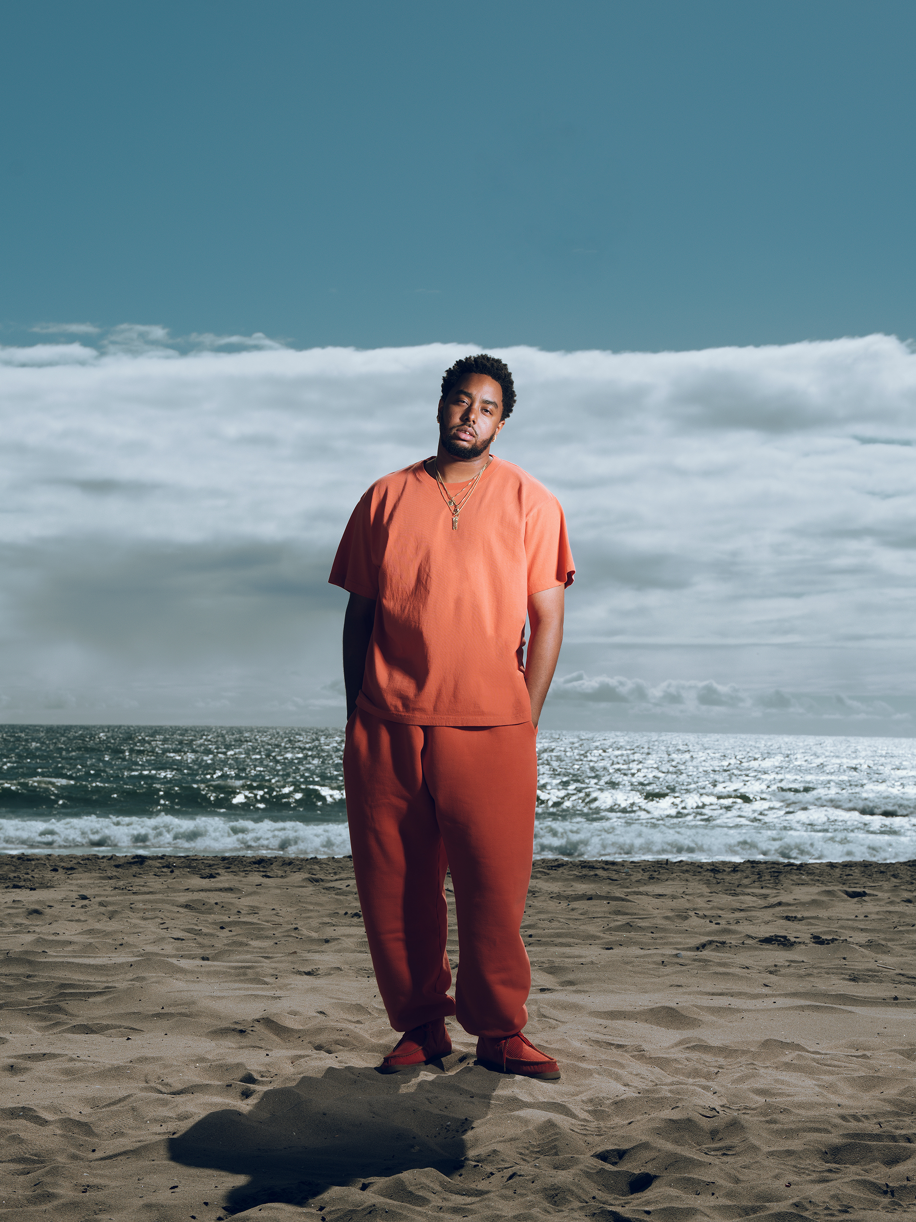 Le velours côtelé apporte texture et profondeur à cette palette délavée. Les matières douces et les teintes évoquent un coucher de soleil sur Venice Beach.