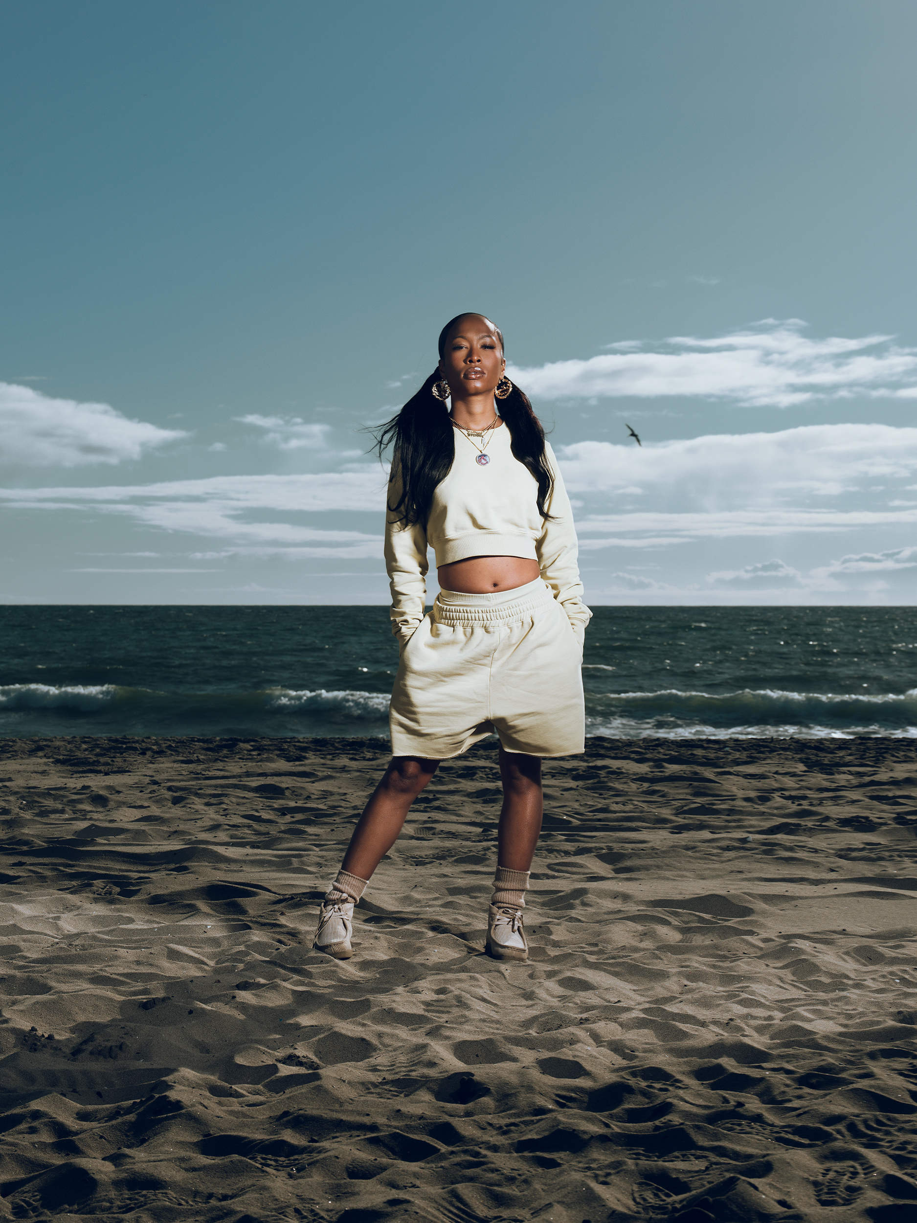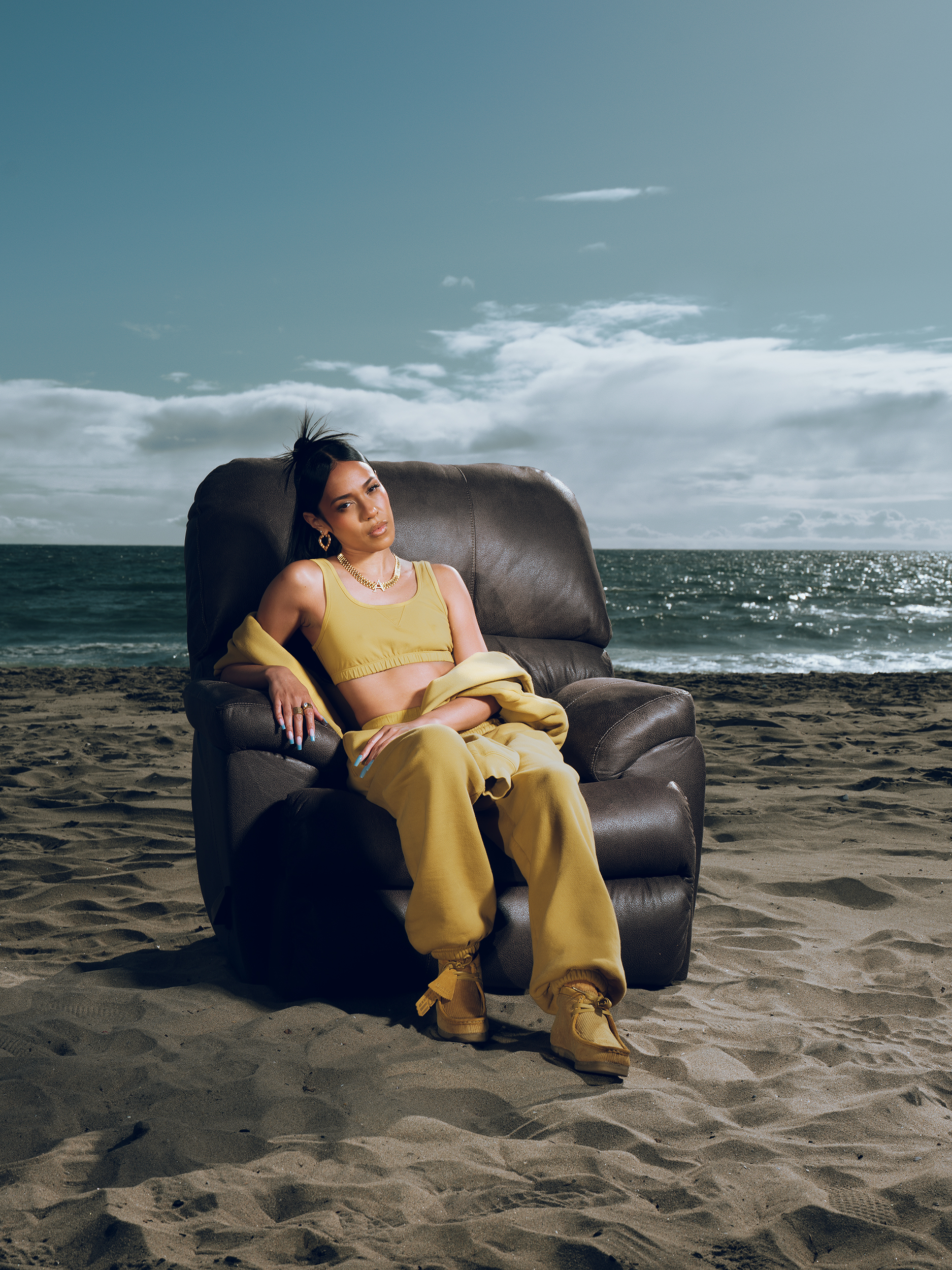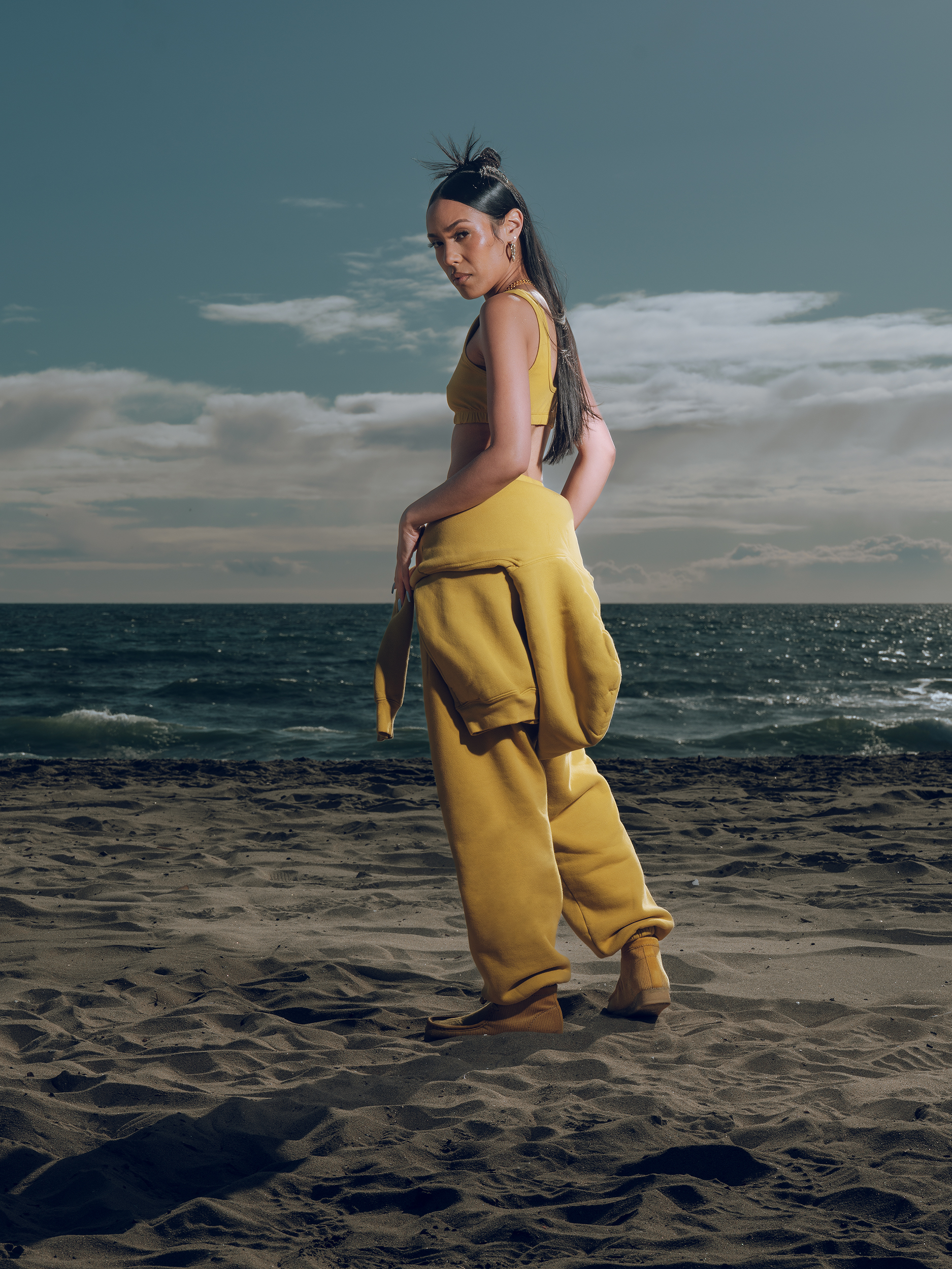 Inspirée par l’éclectisme de la mode à Los Angeles, sa ville natale, elle crée des silhouettes décontractées aux imprimés colorés. Le sportswear rencontre une esthétique résolument californienne.